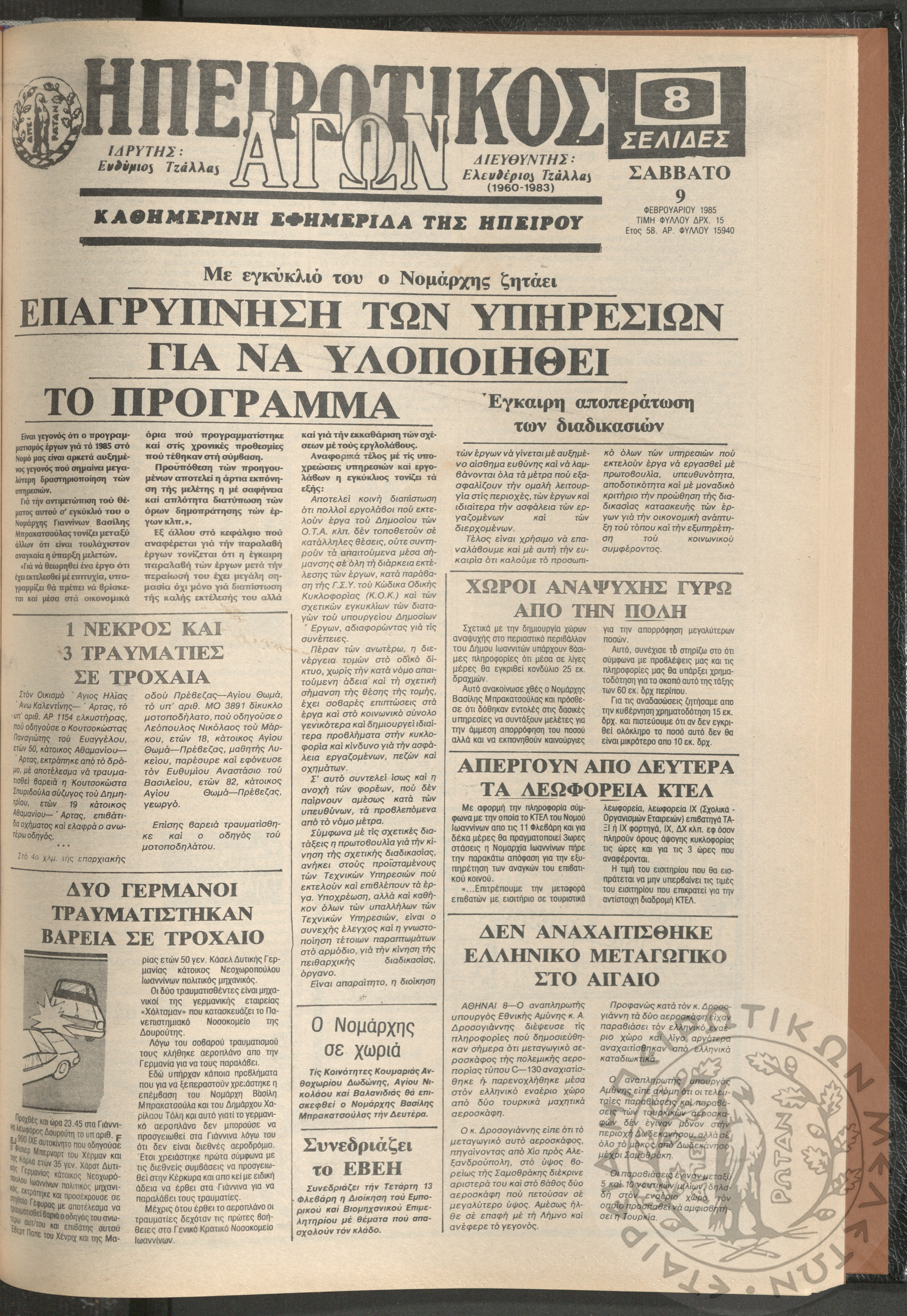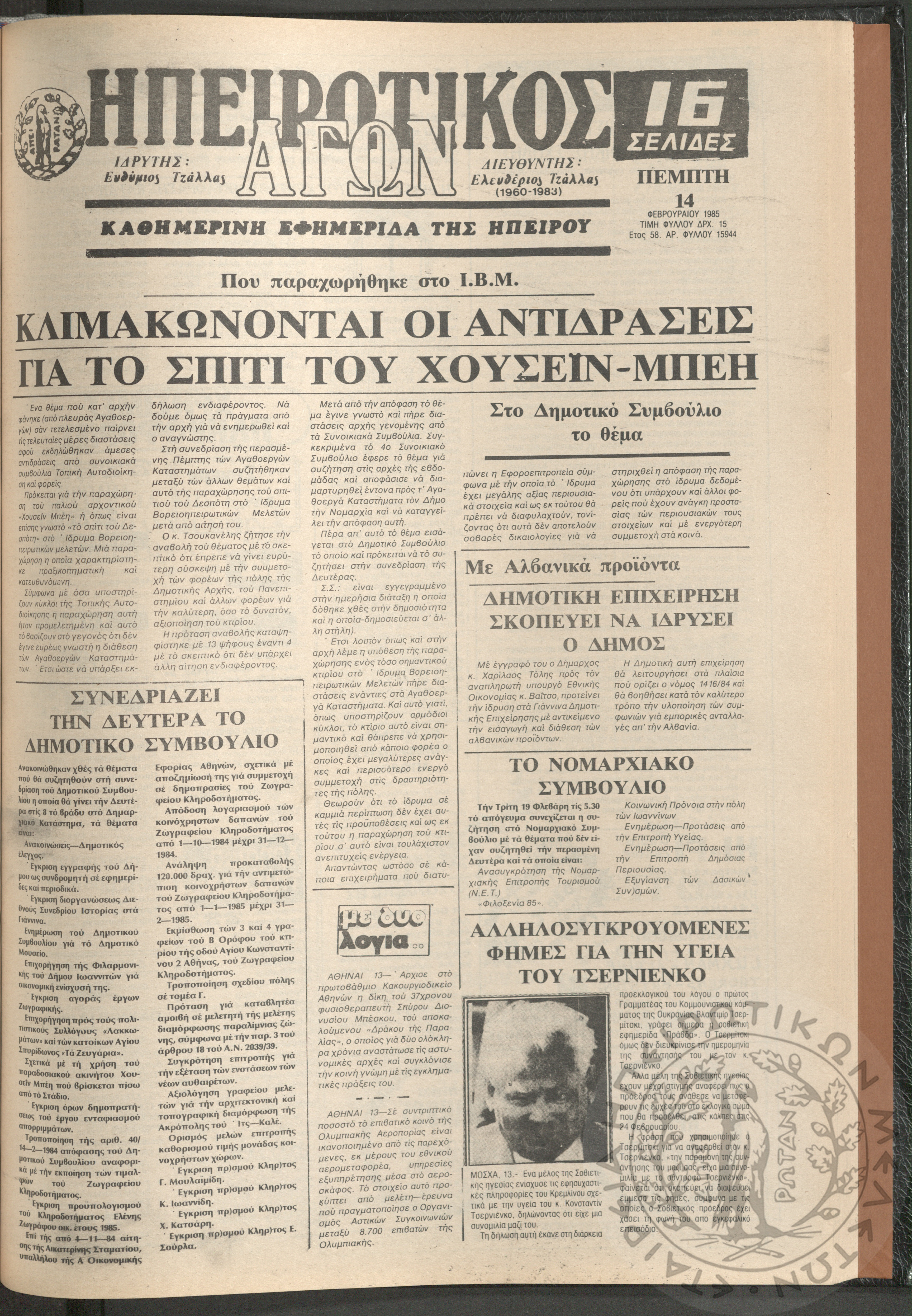 Ηπειρωτικός Αγών: καθημερινή εφημερίδα της Ηπείρου, 1985, φ. 15935