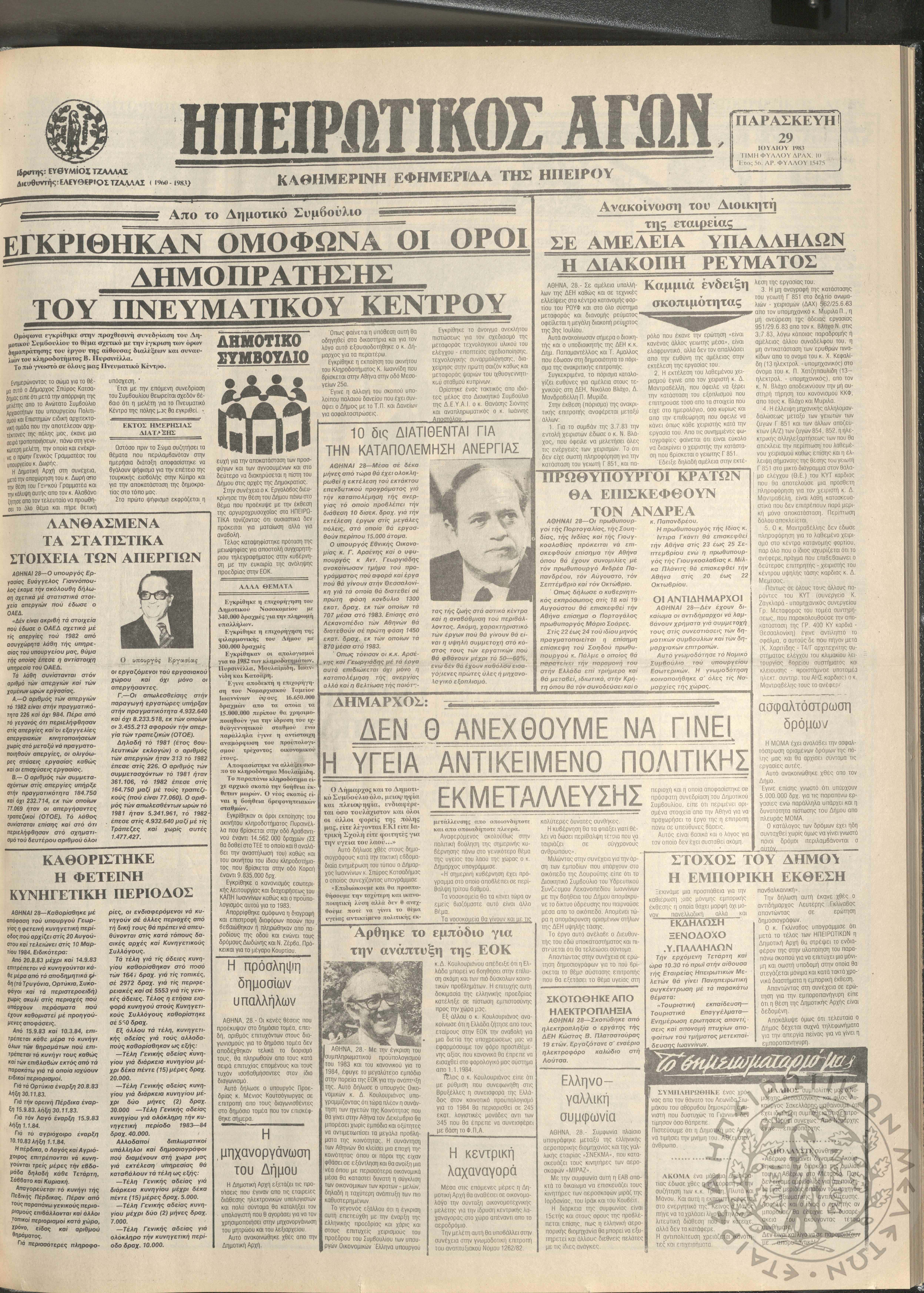 Ηπειρωτικός Αγών: καθημερινή εφημερίδα της Ηπείρου, 1983, φ. 15373