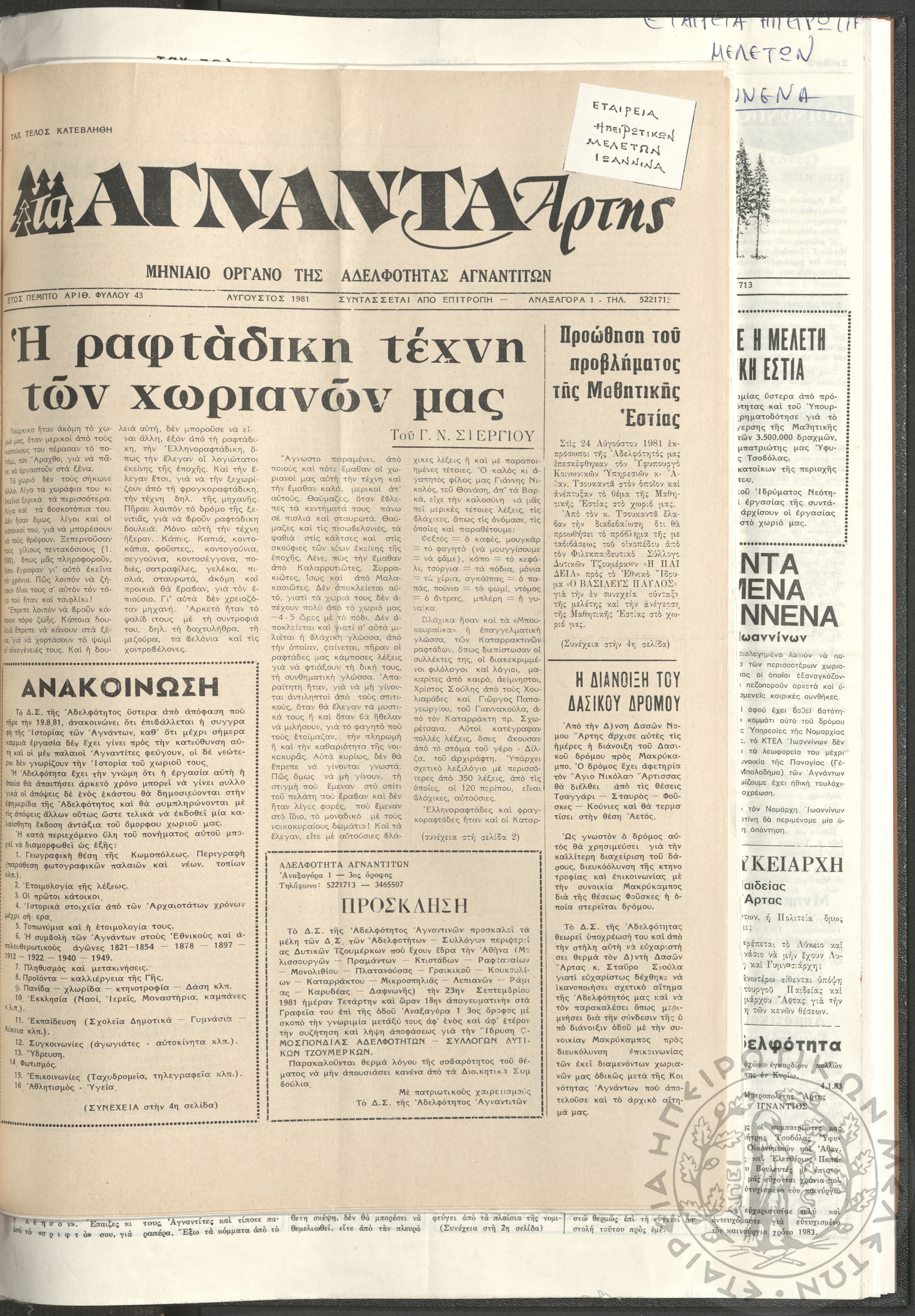 Τα Άγναντα Άρτης: μηνιαίο όργανο της Αδελφότητας Αγναντιτών, 1981, φ. 43