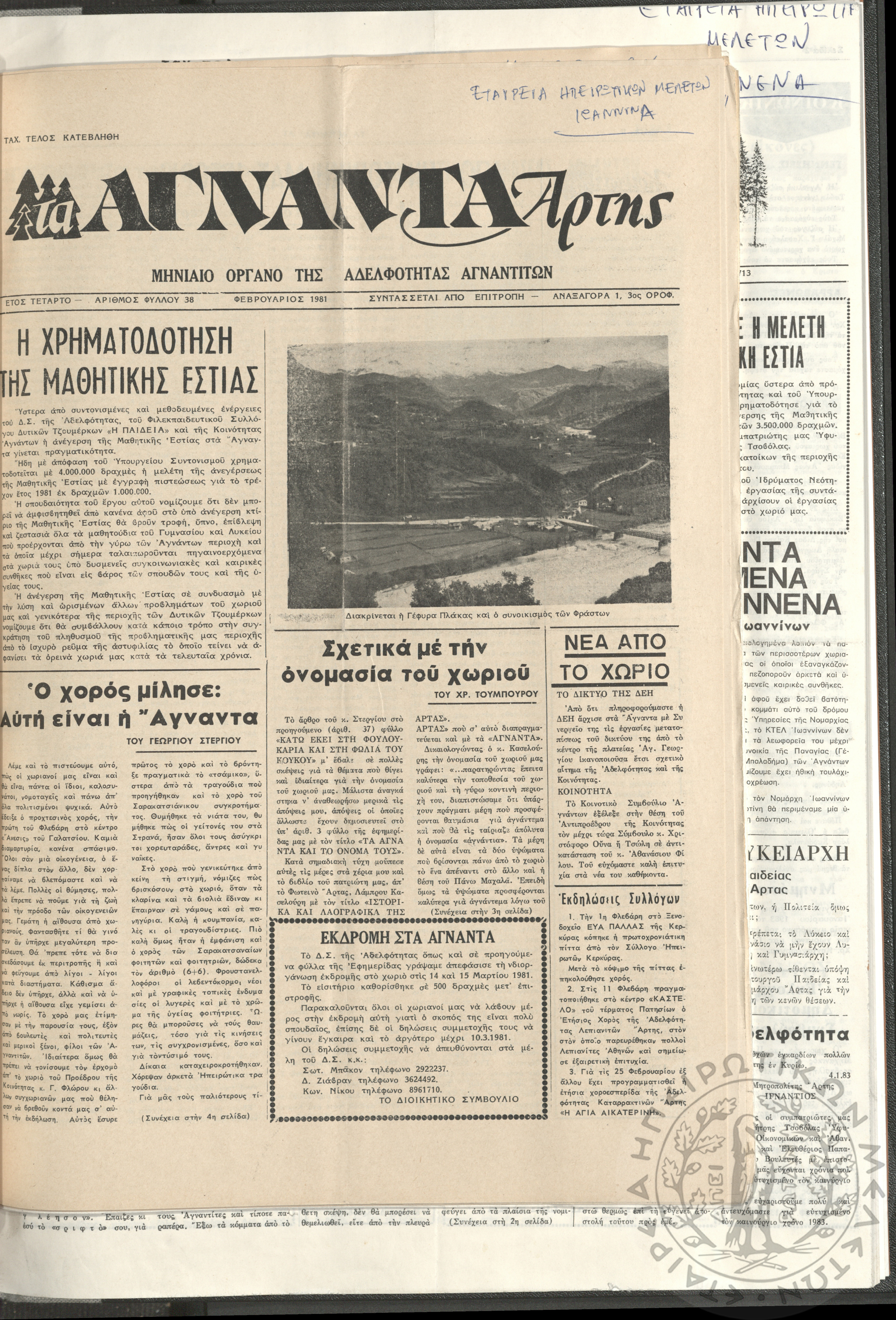 Τα Άγναντα Άρτης: μηνιαίο όργανο της Αδελφότητας Αγναντιτών, 1981, φ. 38