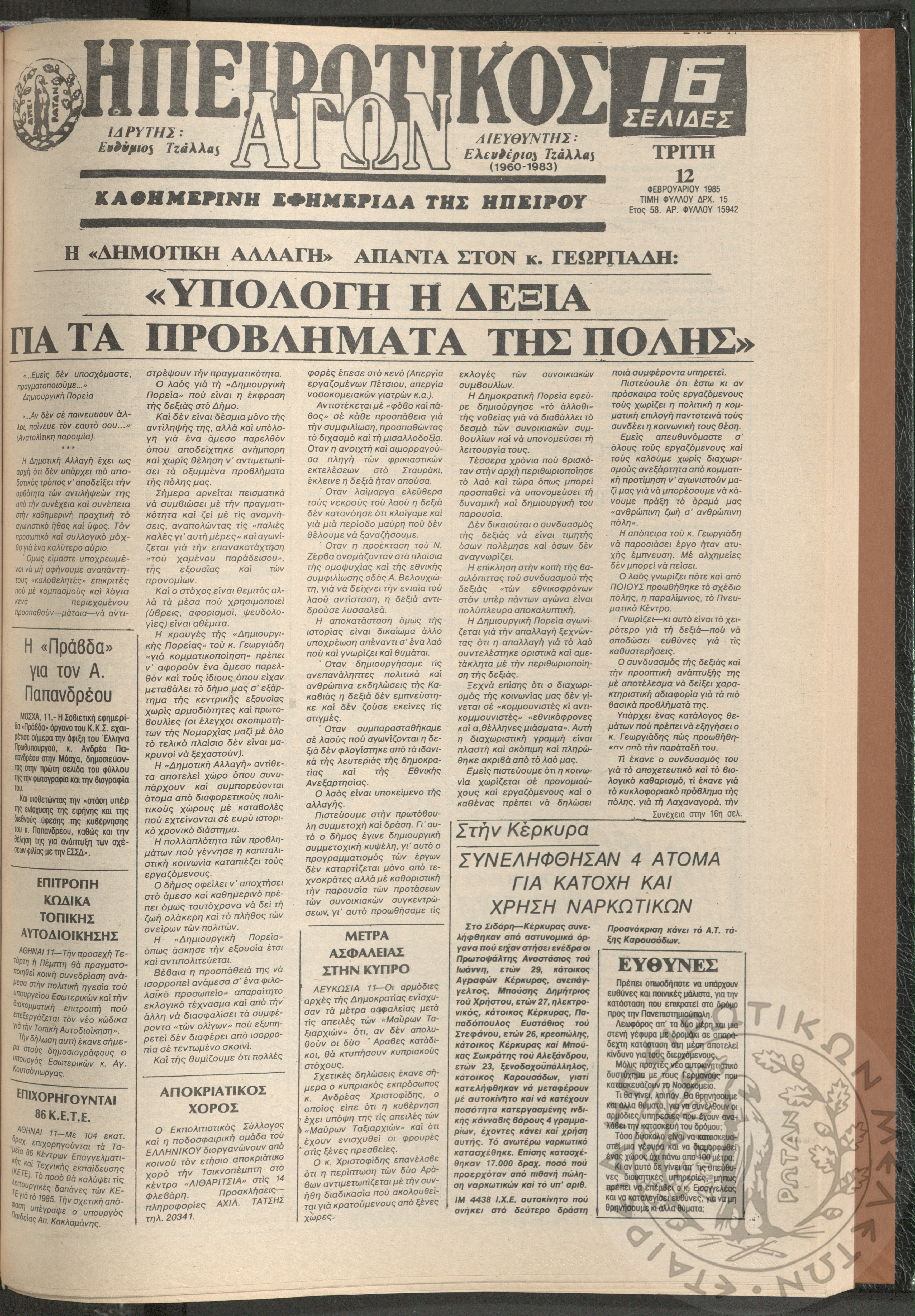 Ηπειρωτικός Αγών: καθημερινή εφημερίδα της Ηπείρου, 1985, φ. 15942