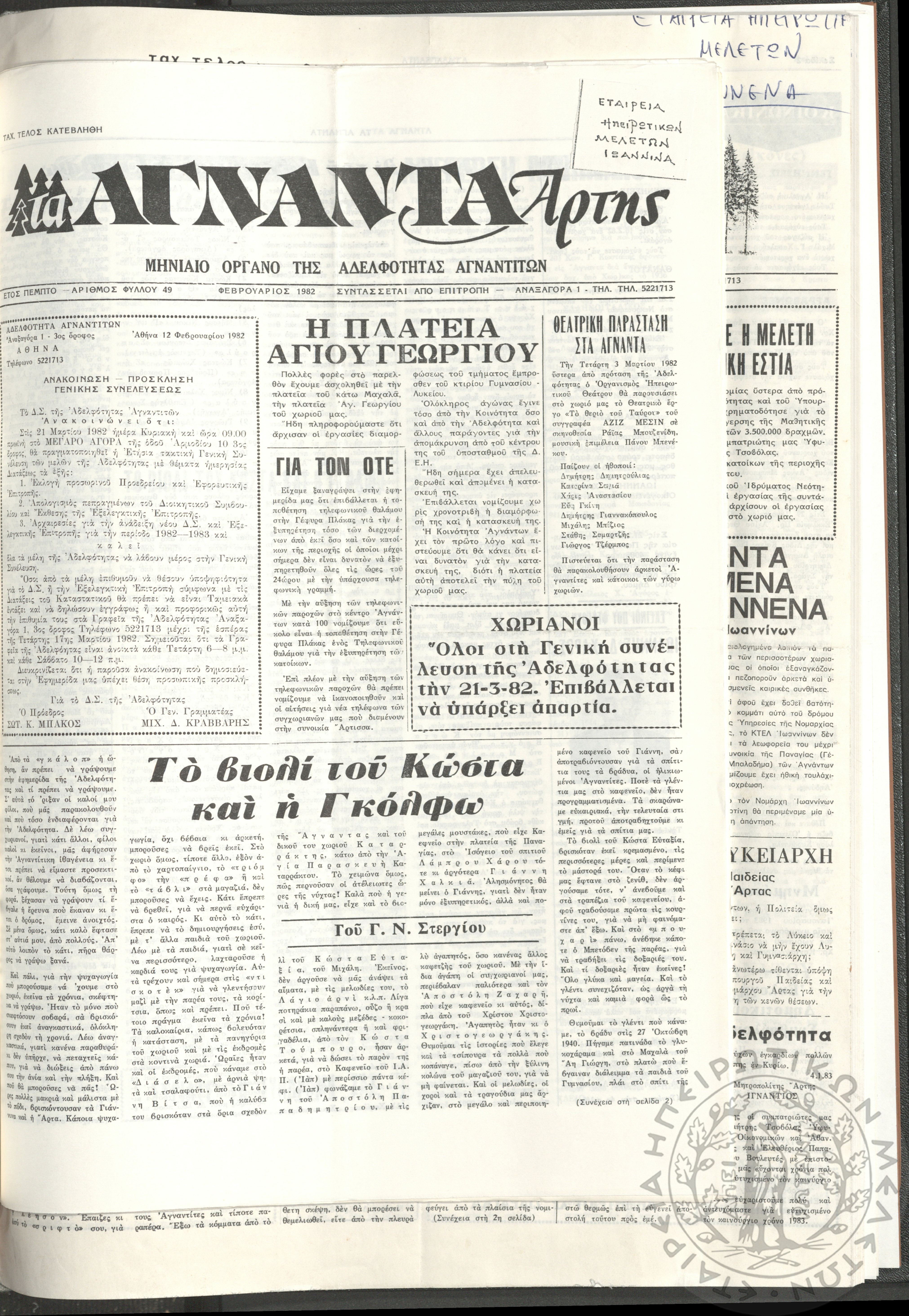 Τα Άγναντα Άρτης: μηνιαίο όργανο της Αδελφότητας Αγναντιτών, 1982, φ. 49