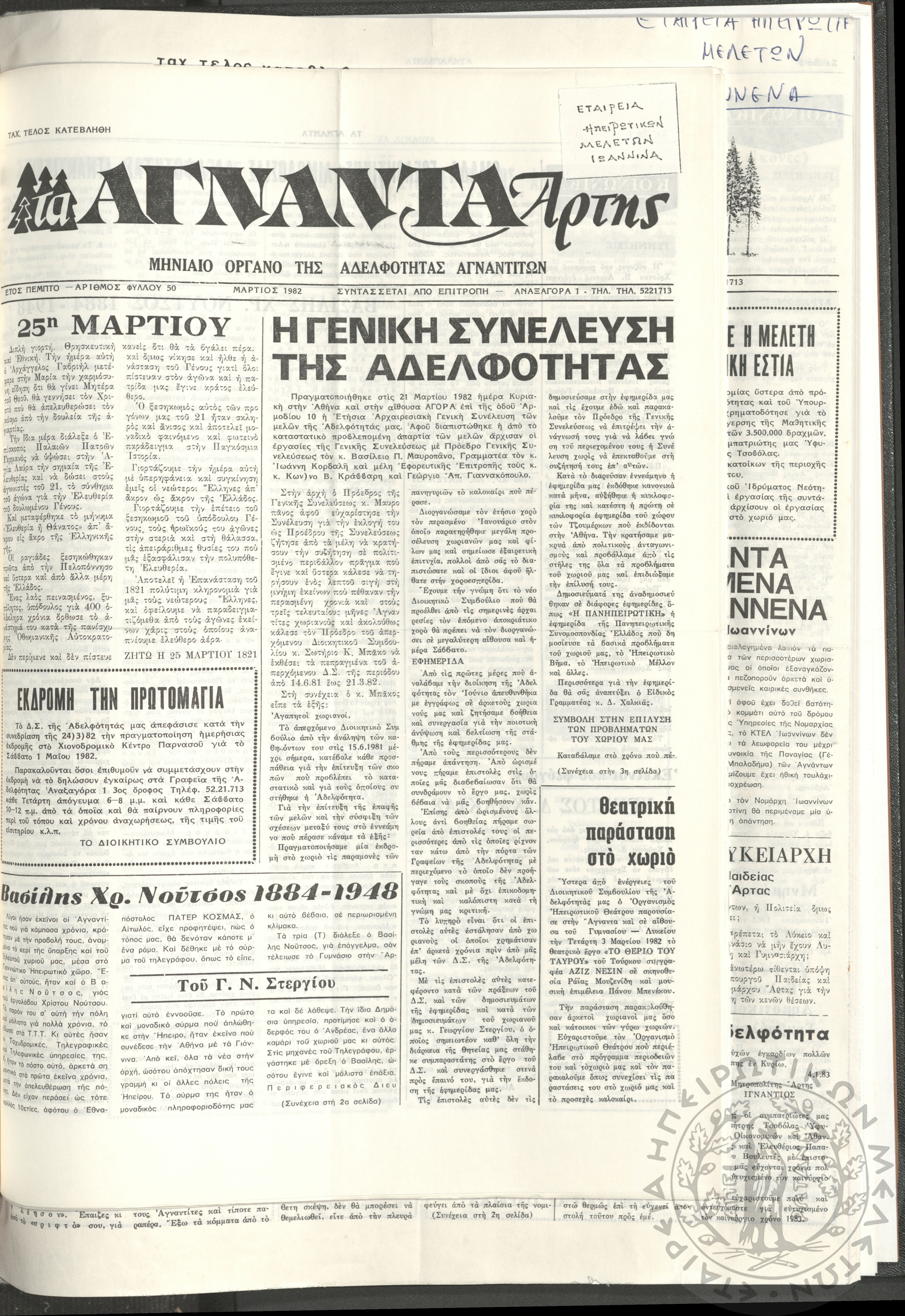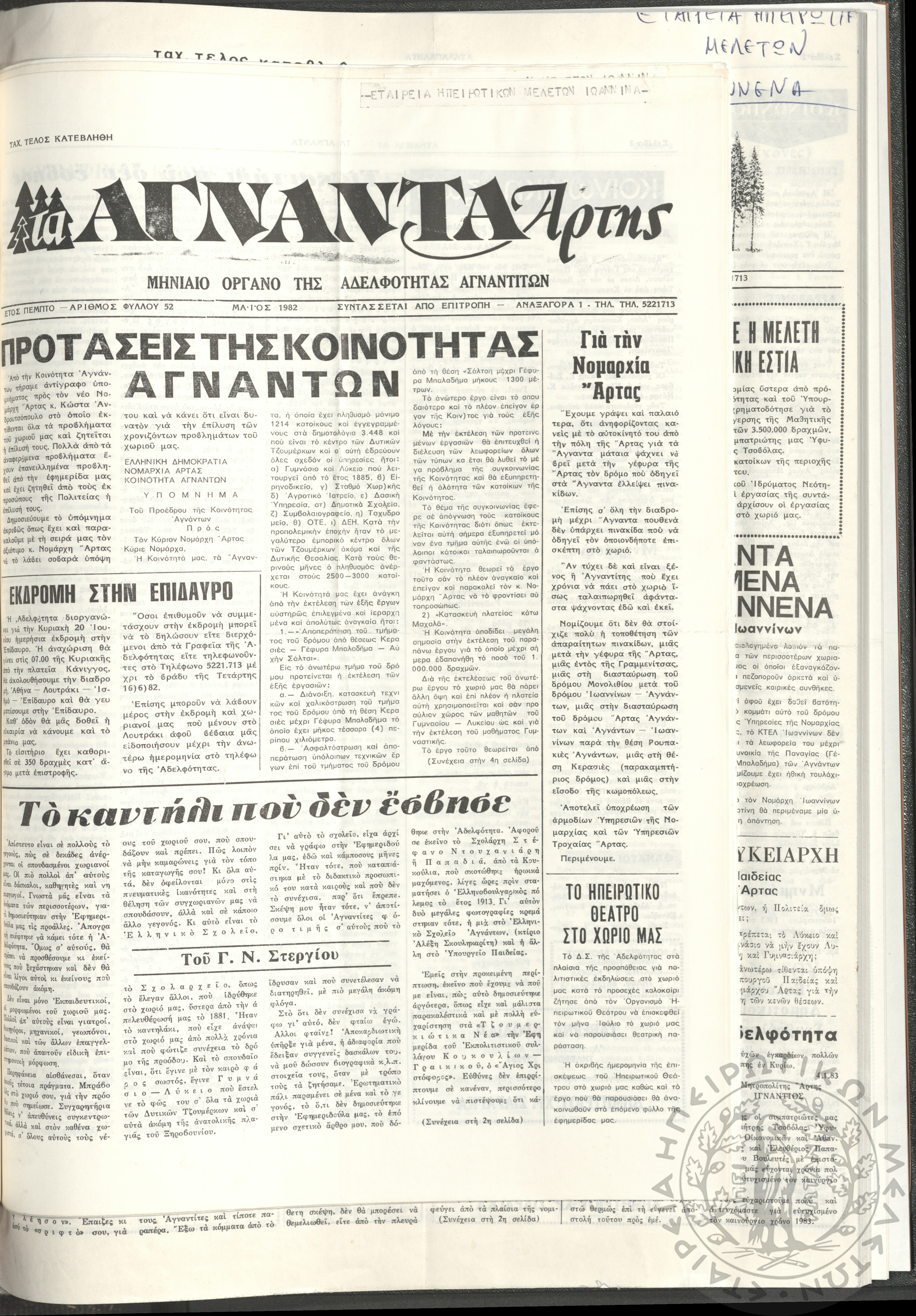Τα Άγναντα Άρτης: μηνιαίο όργανο της Αδελφότητας Αγναντιτών, 1982, φ. 52