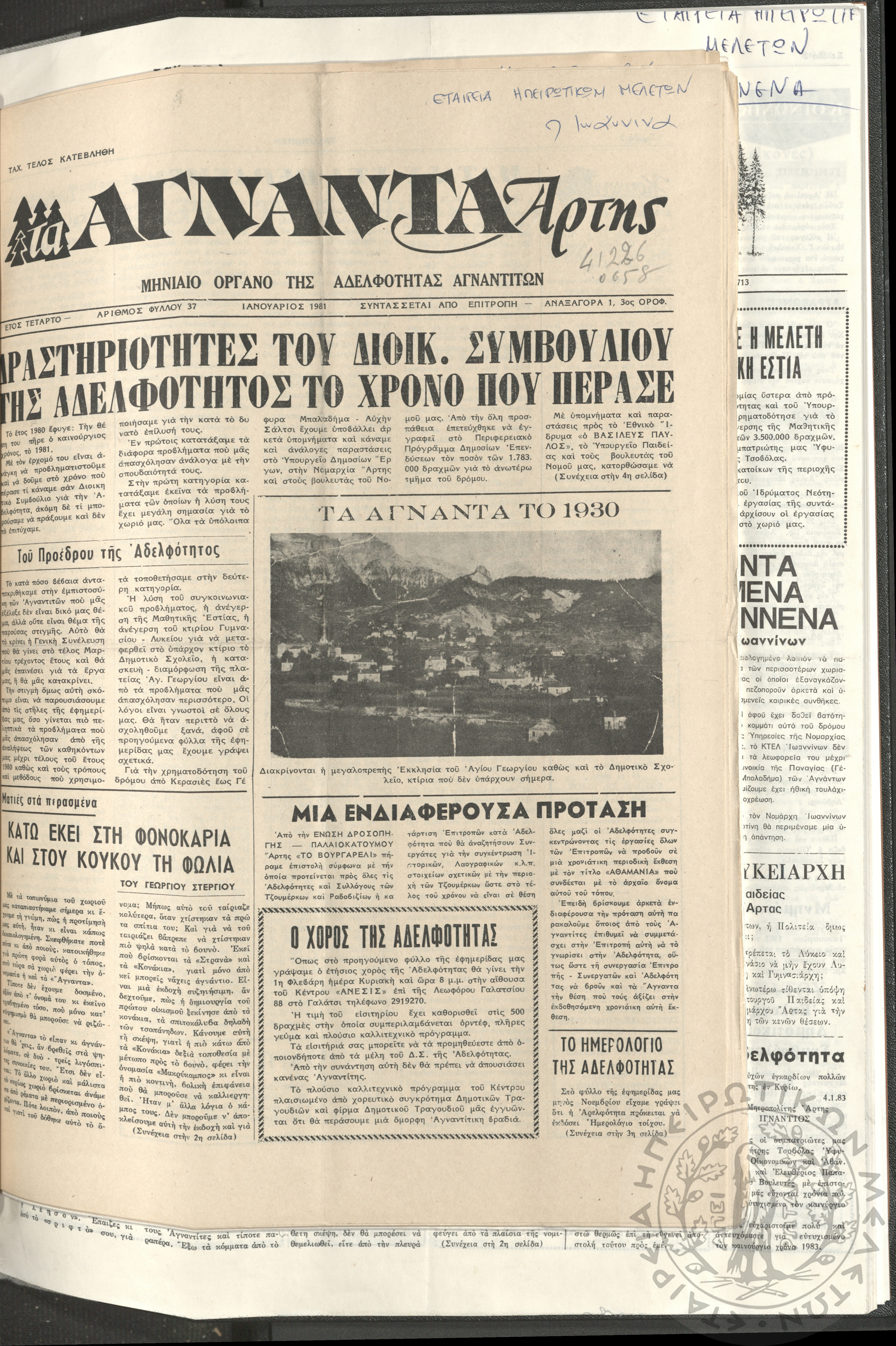 Τα Άγναντα Άρτης: μηνιαίο όργανο της Αδελφότητας Αγναντιτών, 1981, φ. 37