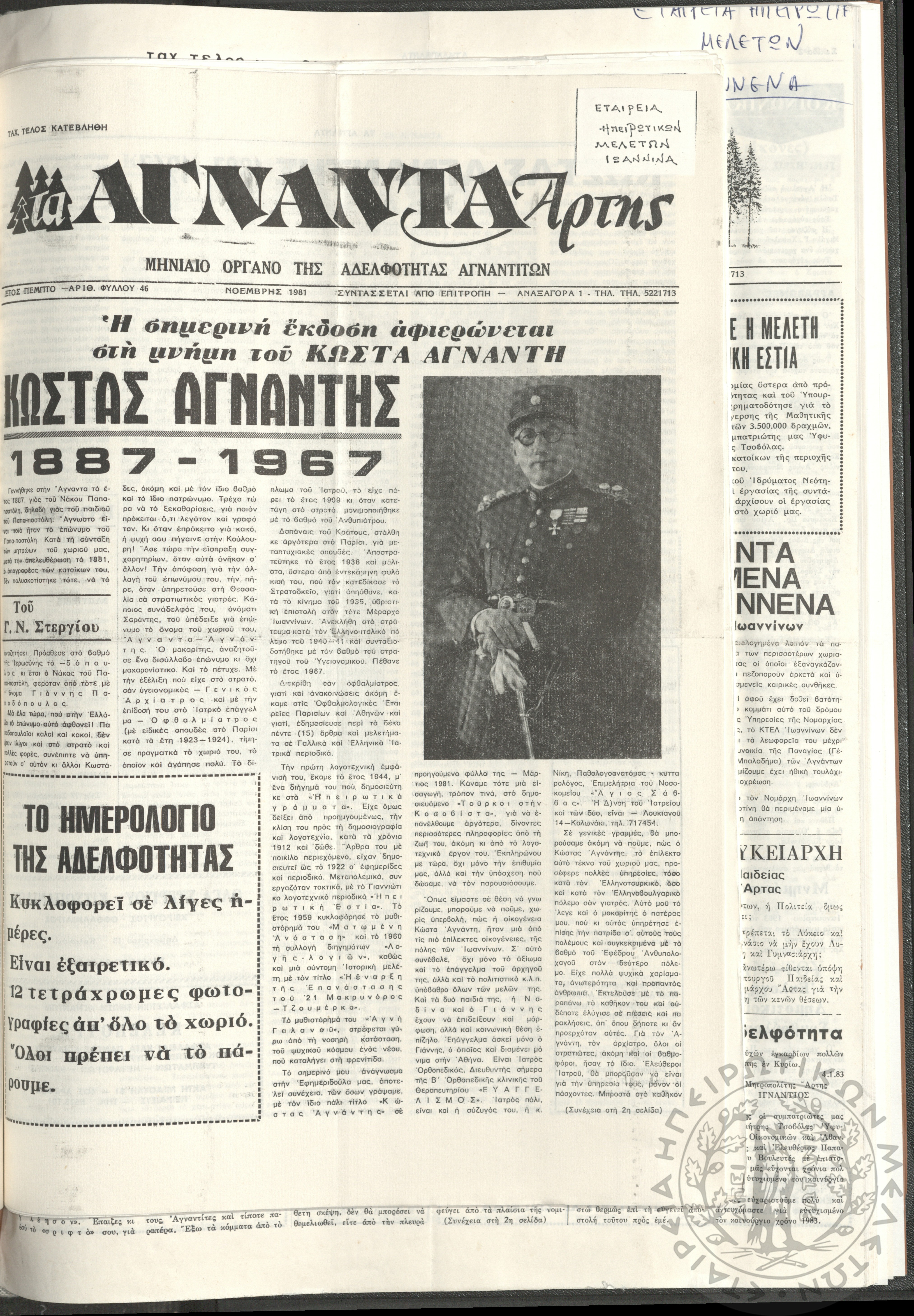 Τα Άγναντα Άρτης: μηνιαίο όργανο της Αδελφότητας Αγναντιτών, 1981, φ. 46
