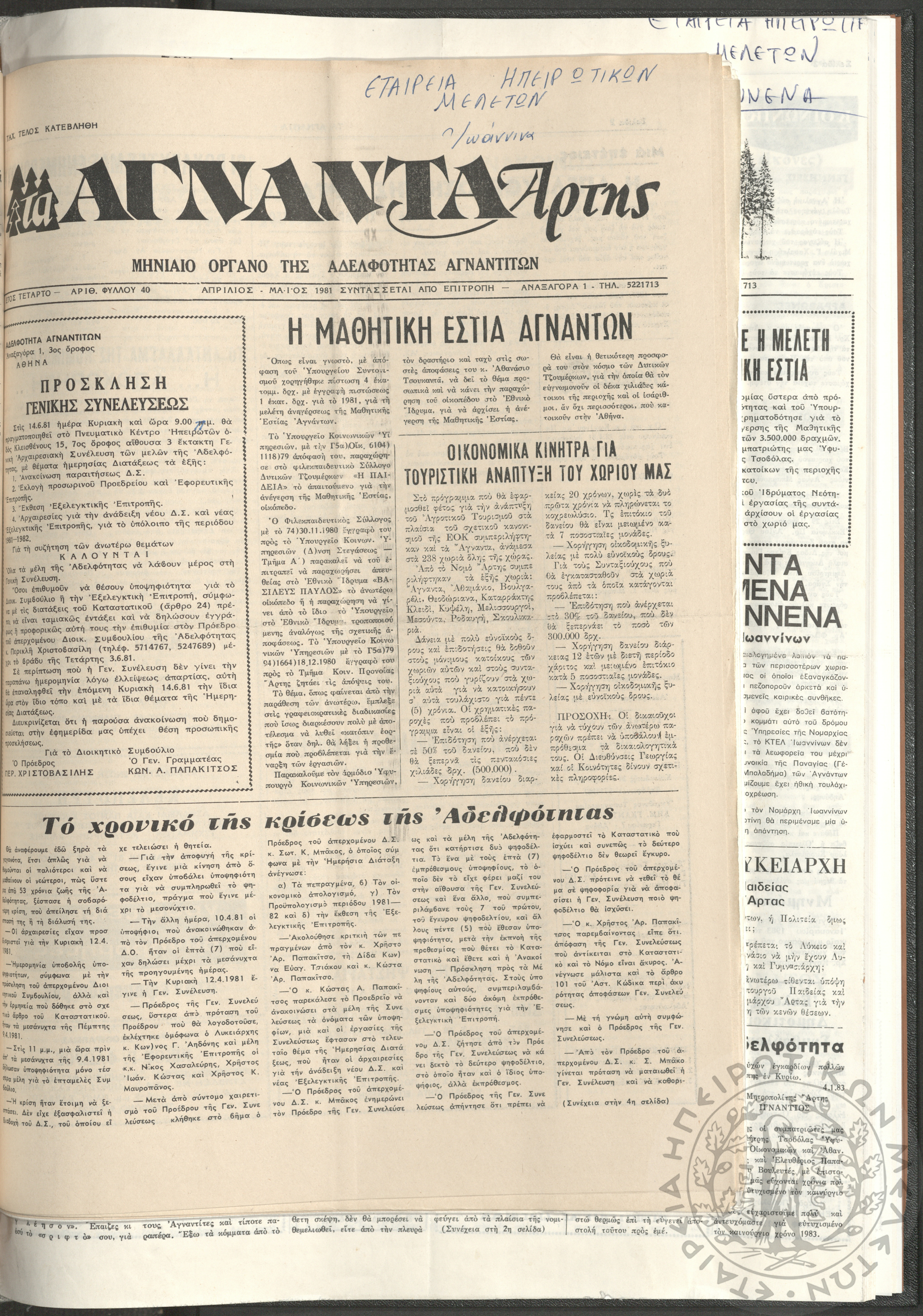 Τα Άγναντα Άρτης: μηνιαίο όργανο της Αδελφότητας Αγναντιτών, 1981, φ. 40