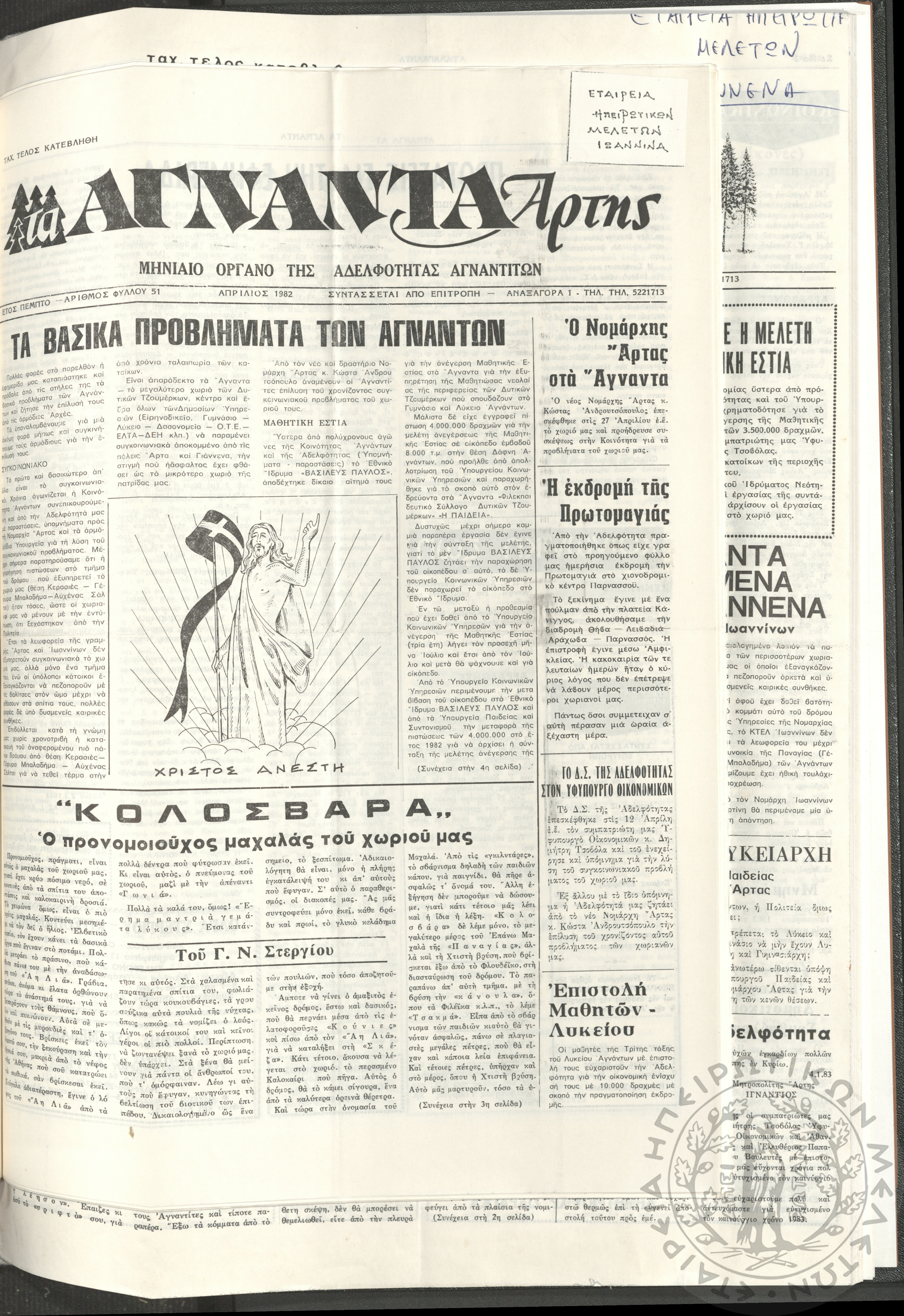 Τα Άγναντα Άρτης: μηνιαίο όργανο της Αδελφότητας Αγναντιτών, 1982, φ. 51