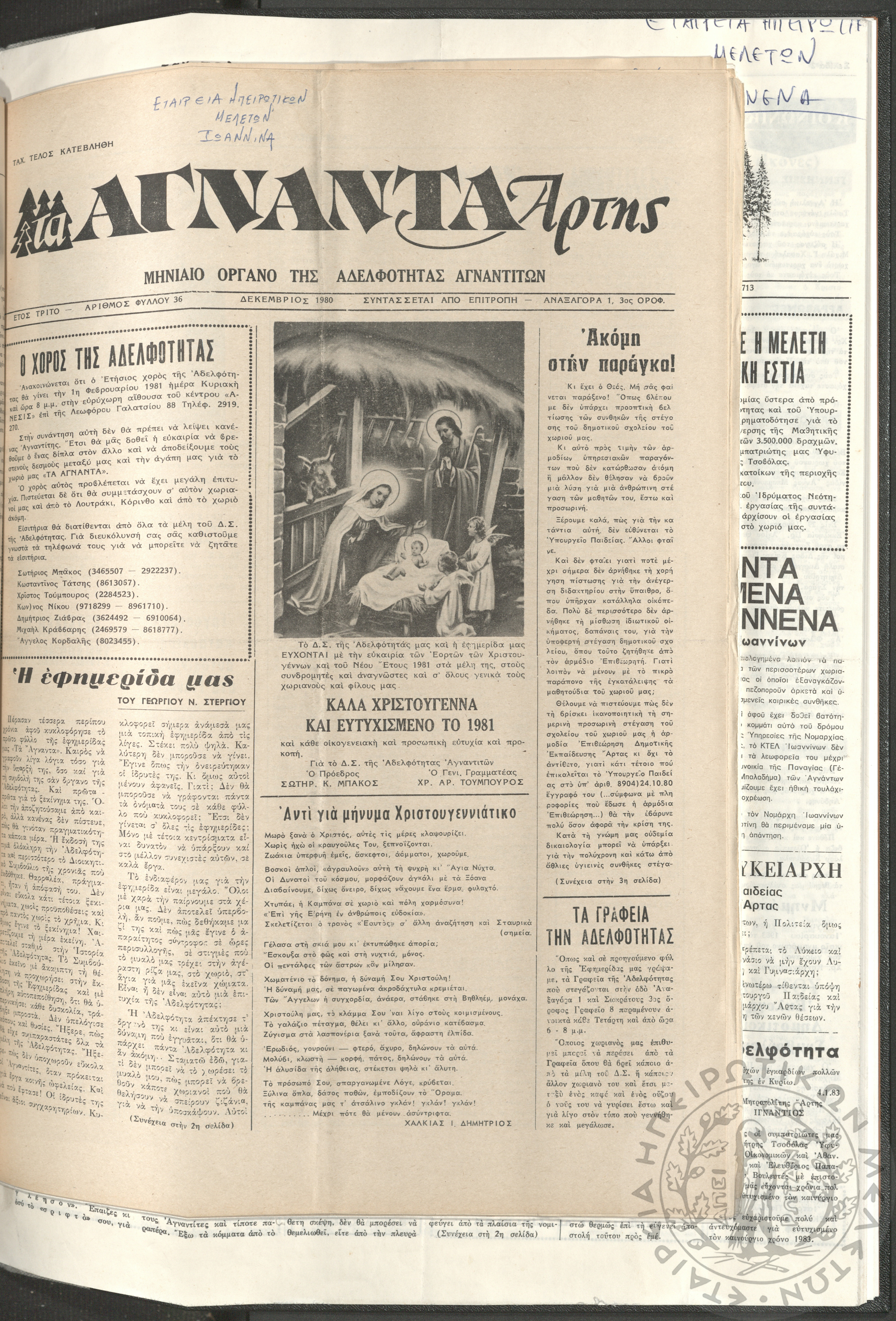 Τα Άγναντα Άρτης: μηνιαίο όργανο της Αδελφότητας Αγναντιτών, 1980, φ. 36