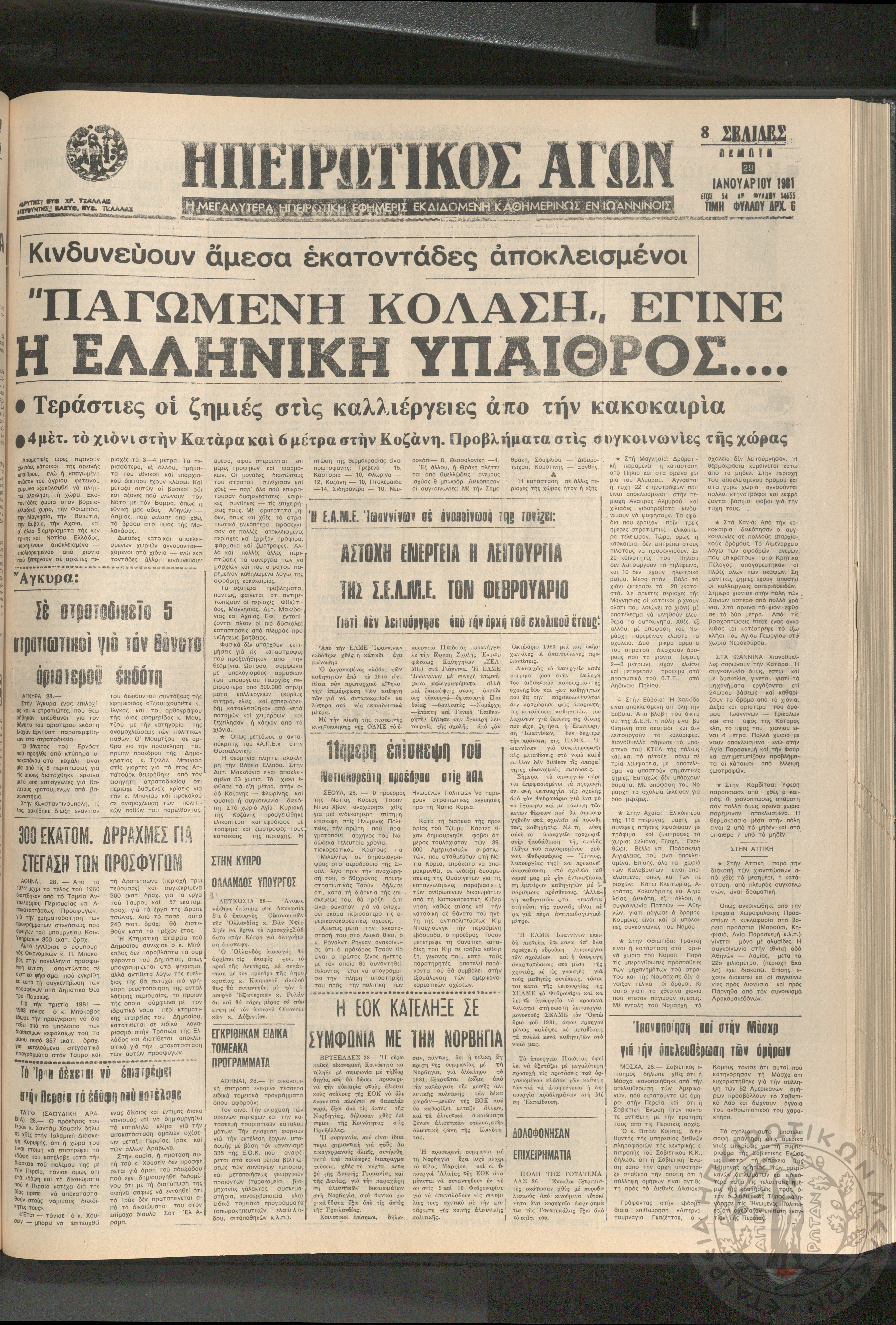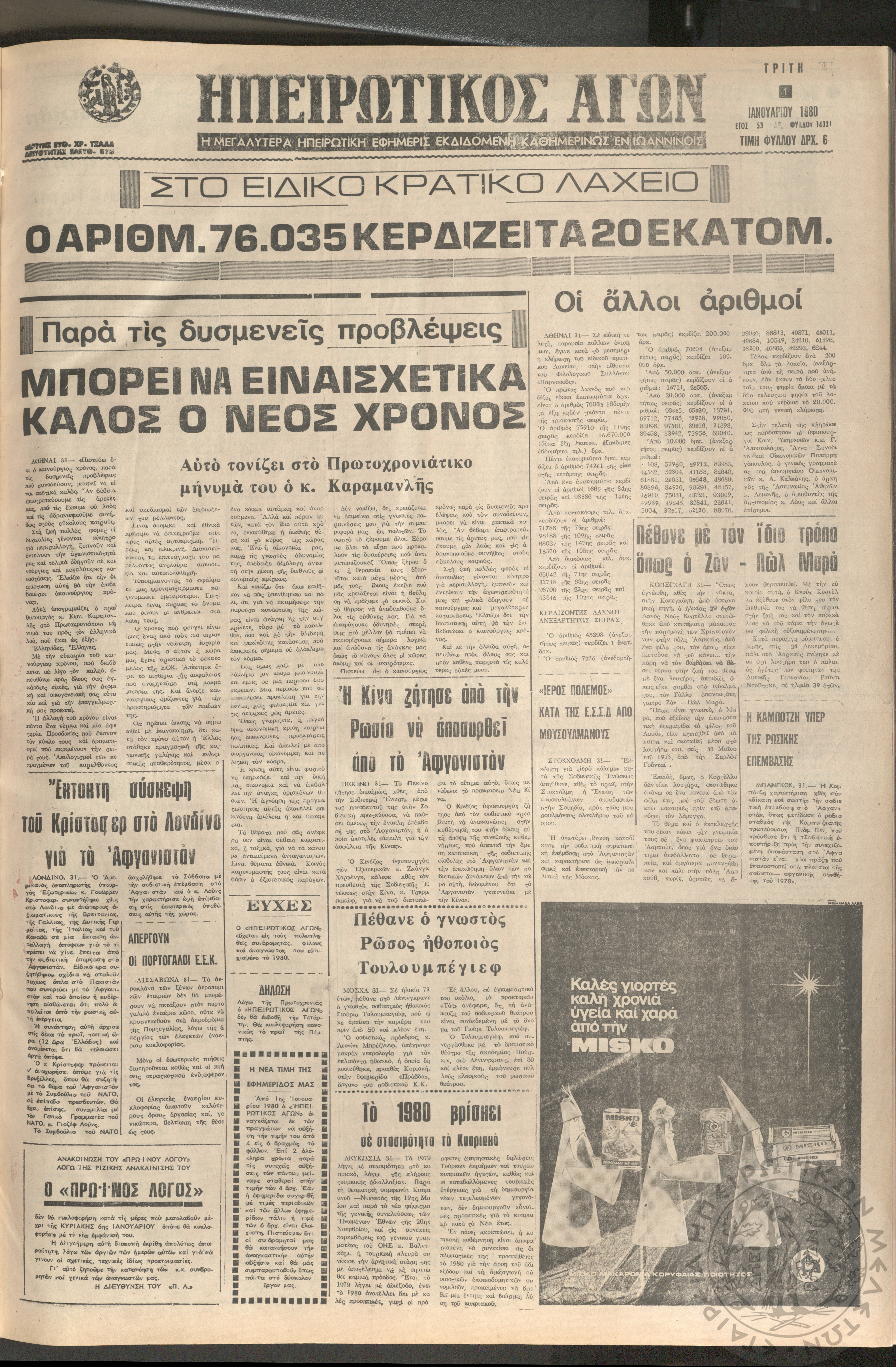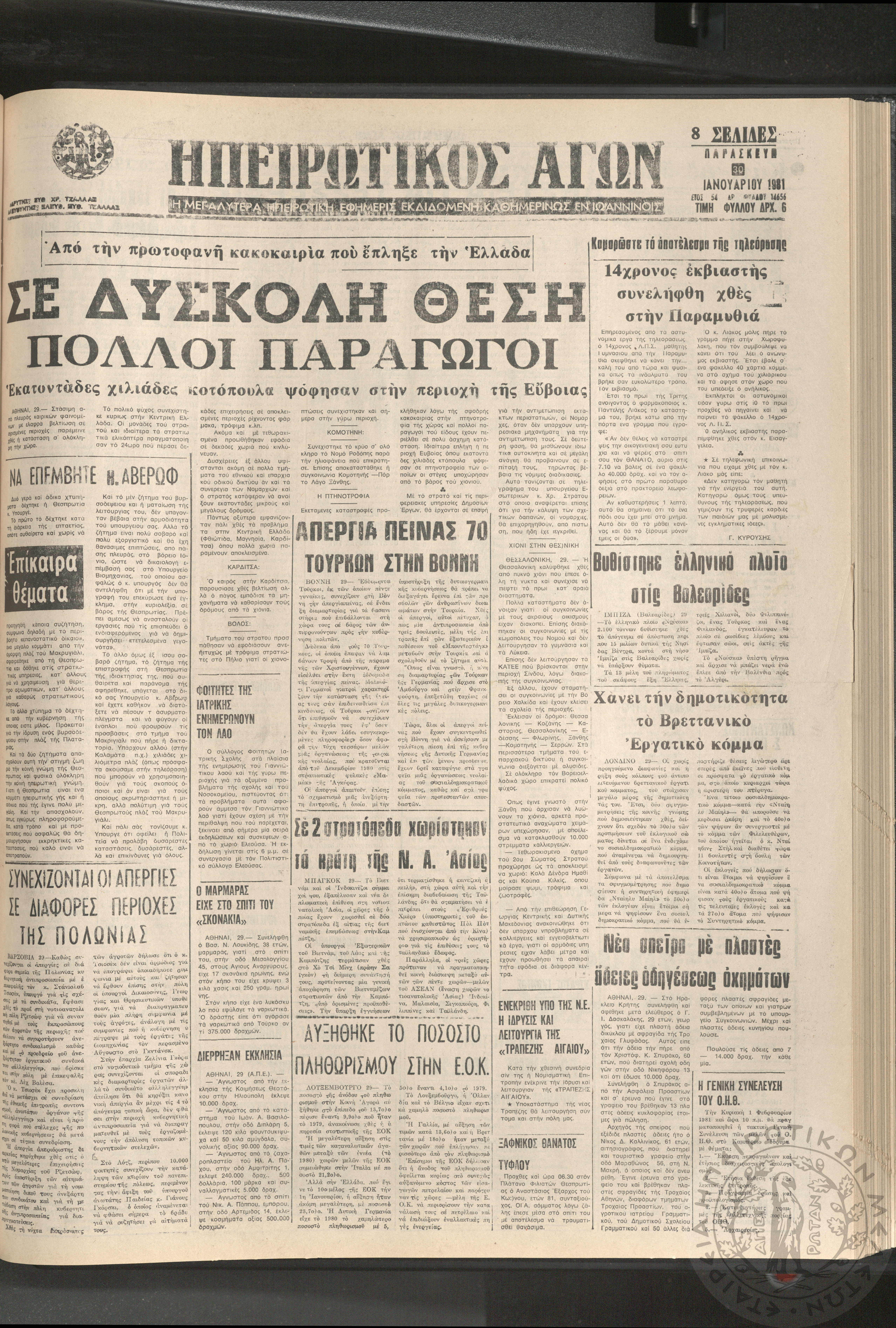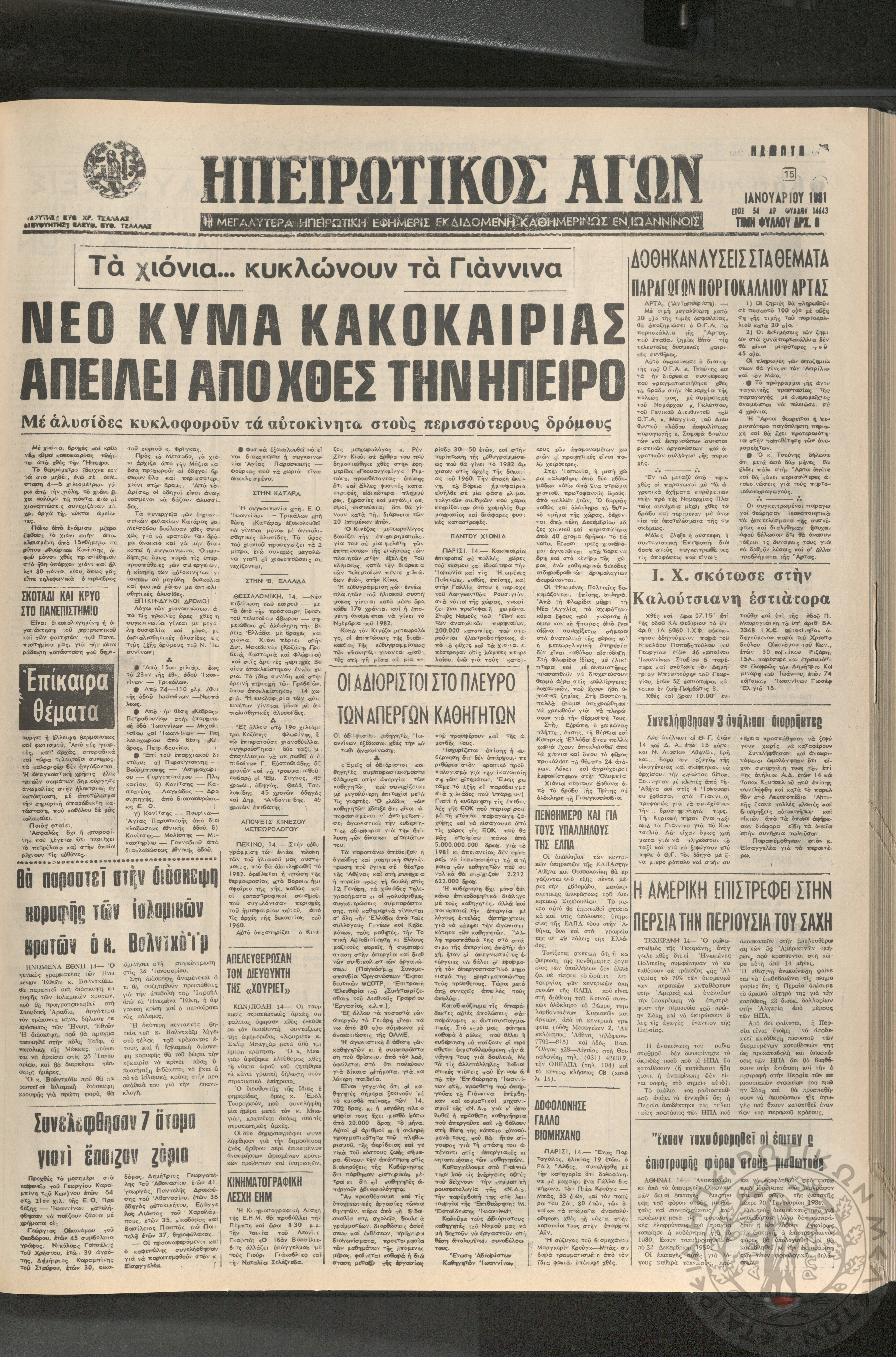 Ηπειρωτικός Αγών: η μεγαλυτέρα Ηπειρωτική εφημερίς εκδιδόμενη καθημερινώς εν Ιωαννίνοις, 1980, φ. 14331Έτος 53, φ. 14331...