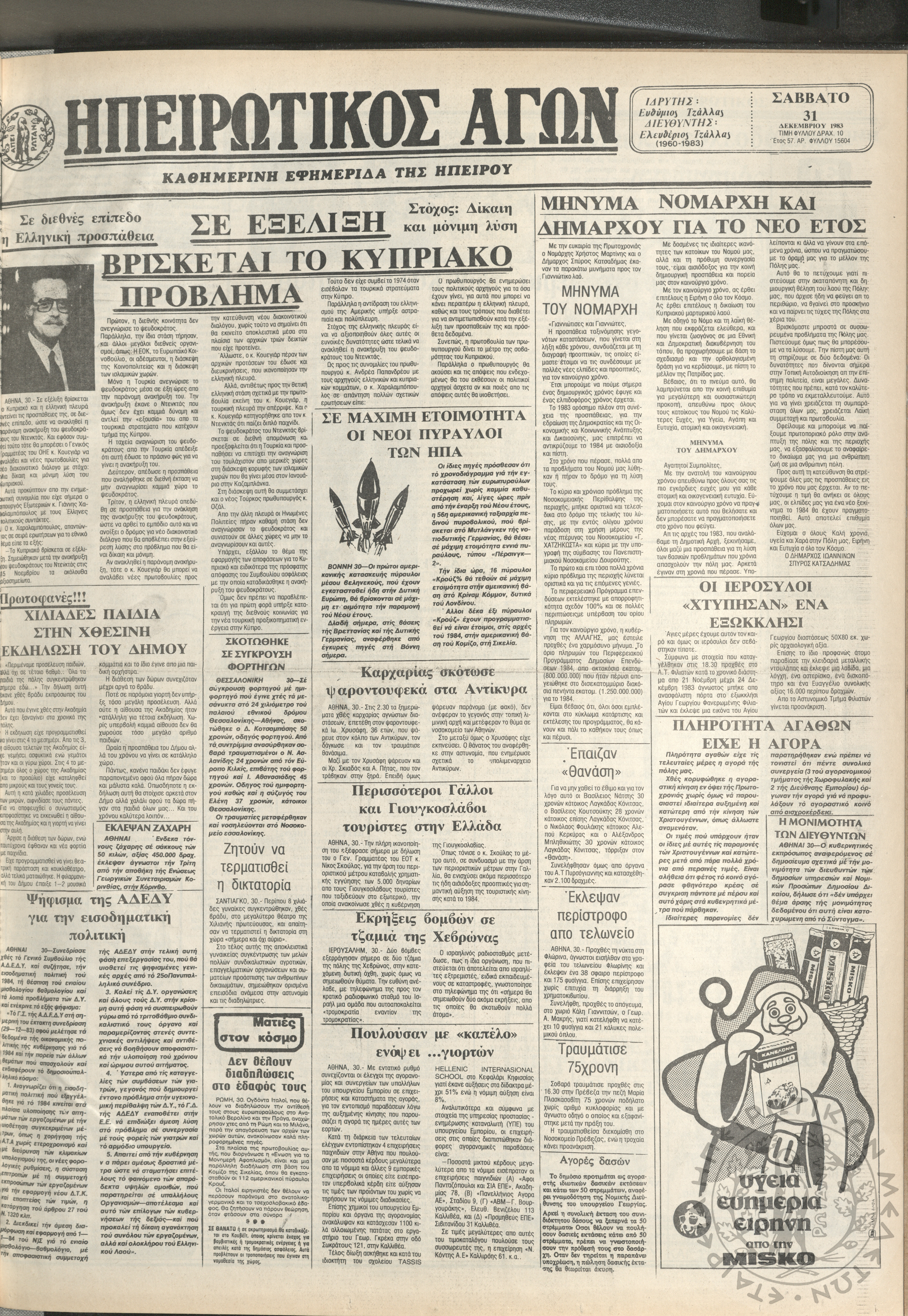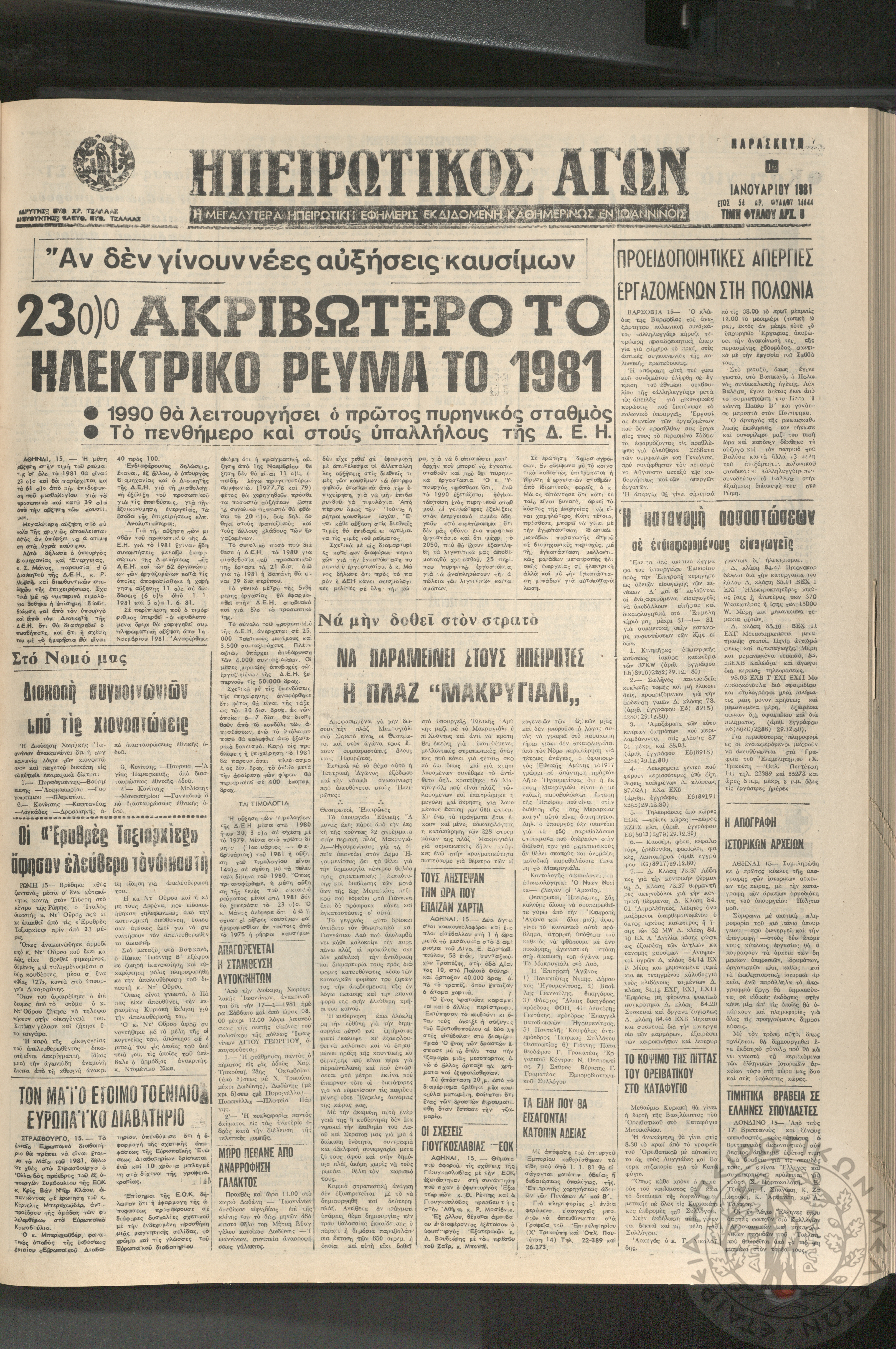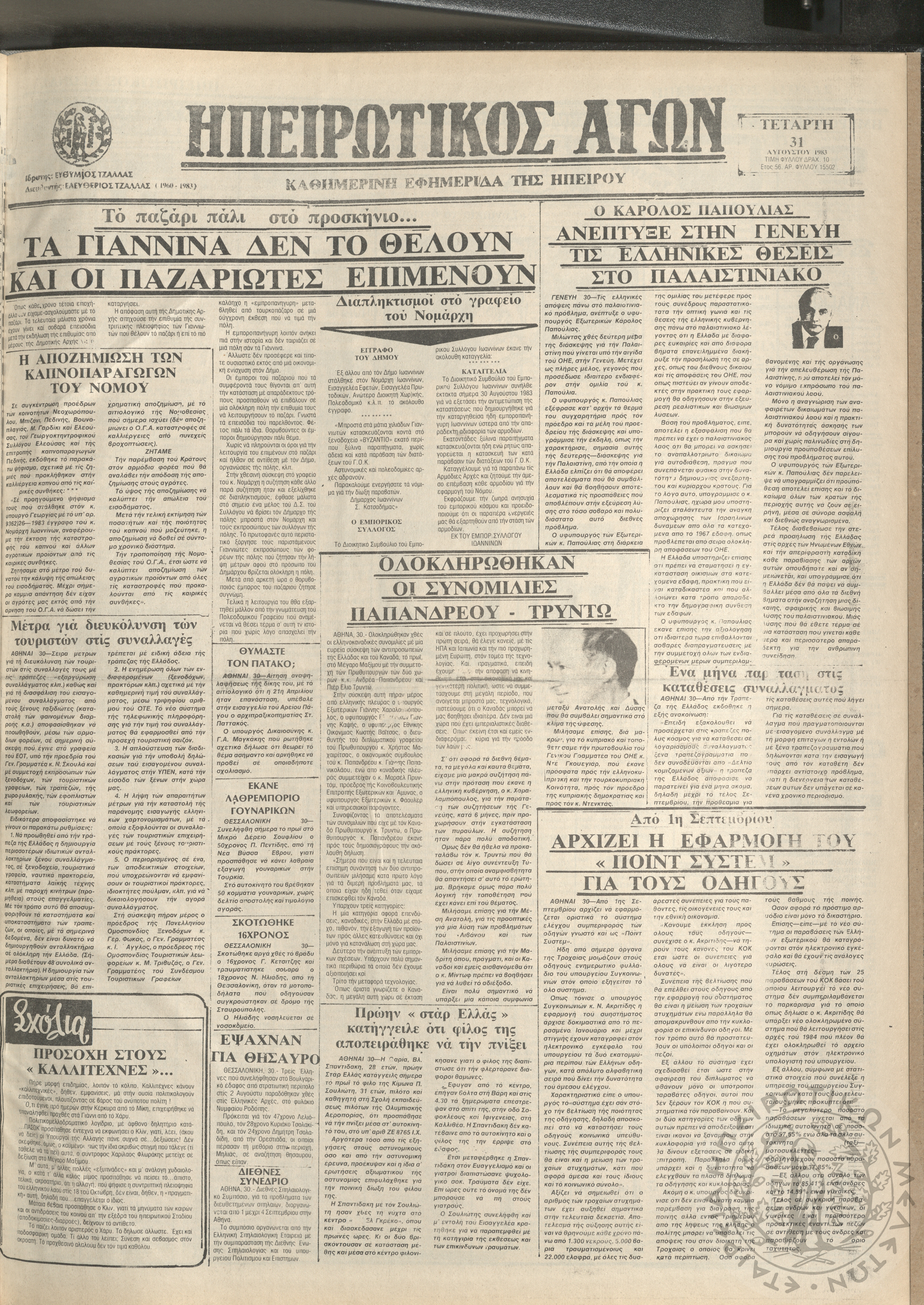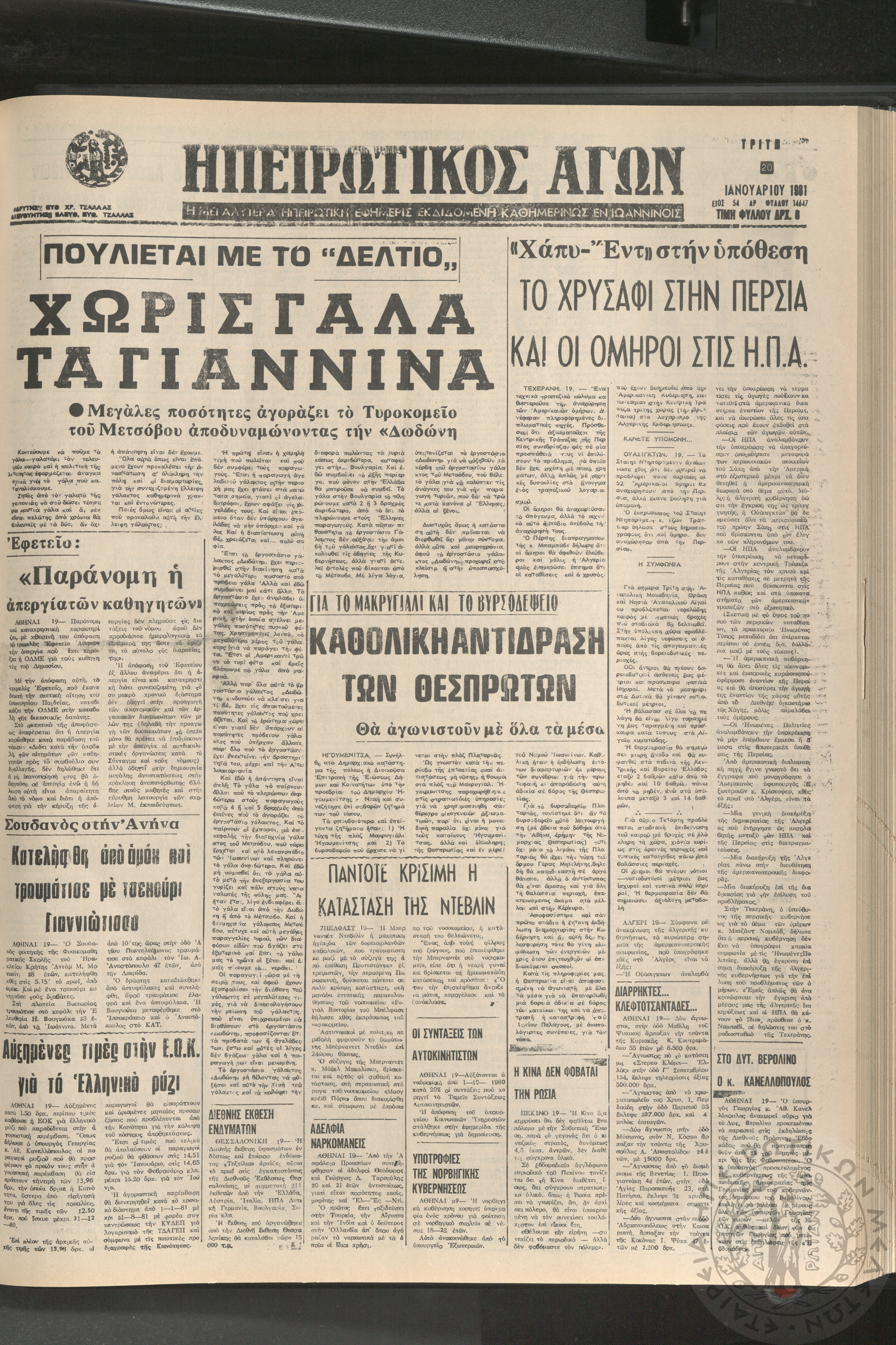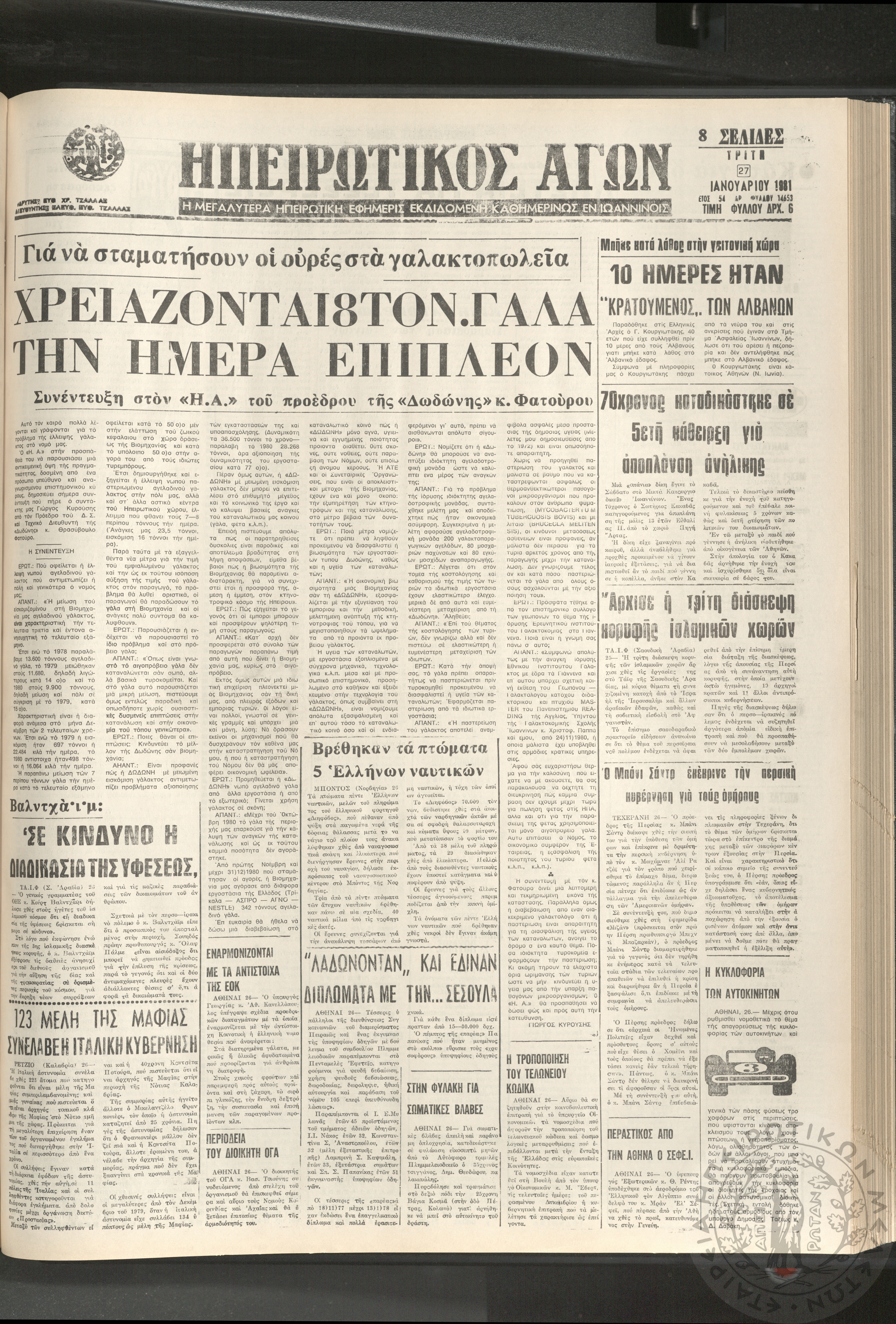 Ηπειρωτικός Αγών: η μεγαλυτέρα Ηπειρωτική εφημερίς εκδιδόμενη καθημερινώς εν Ιωαννίνοις, 1980, φ. 14331Έτος 53, φ. 14331...