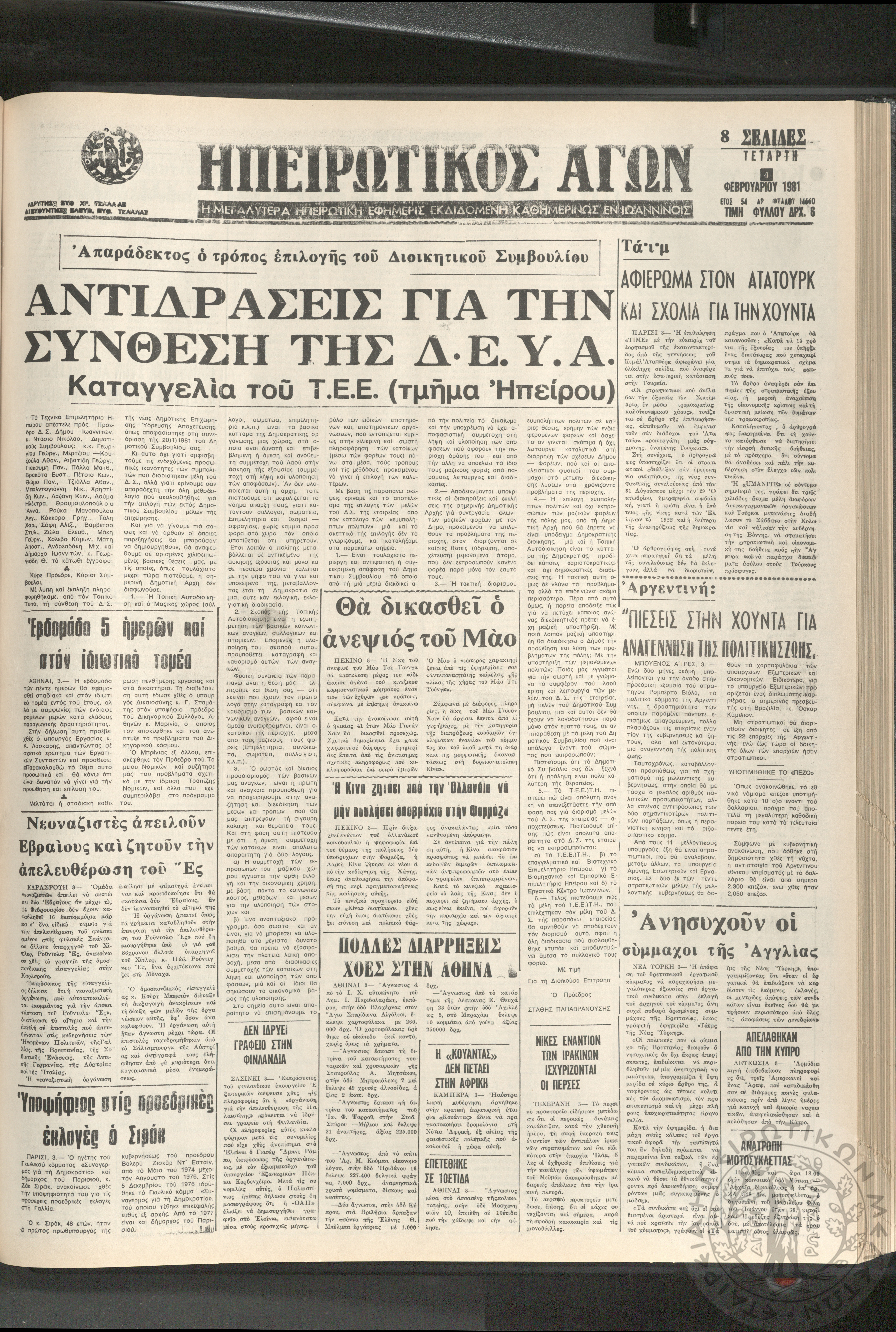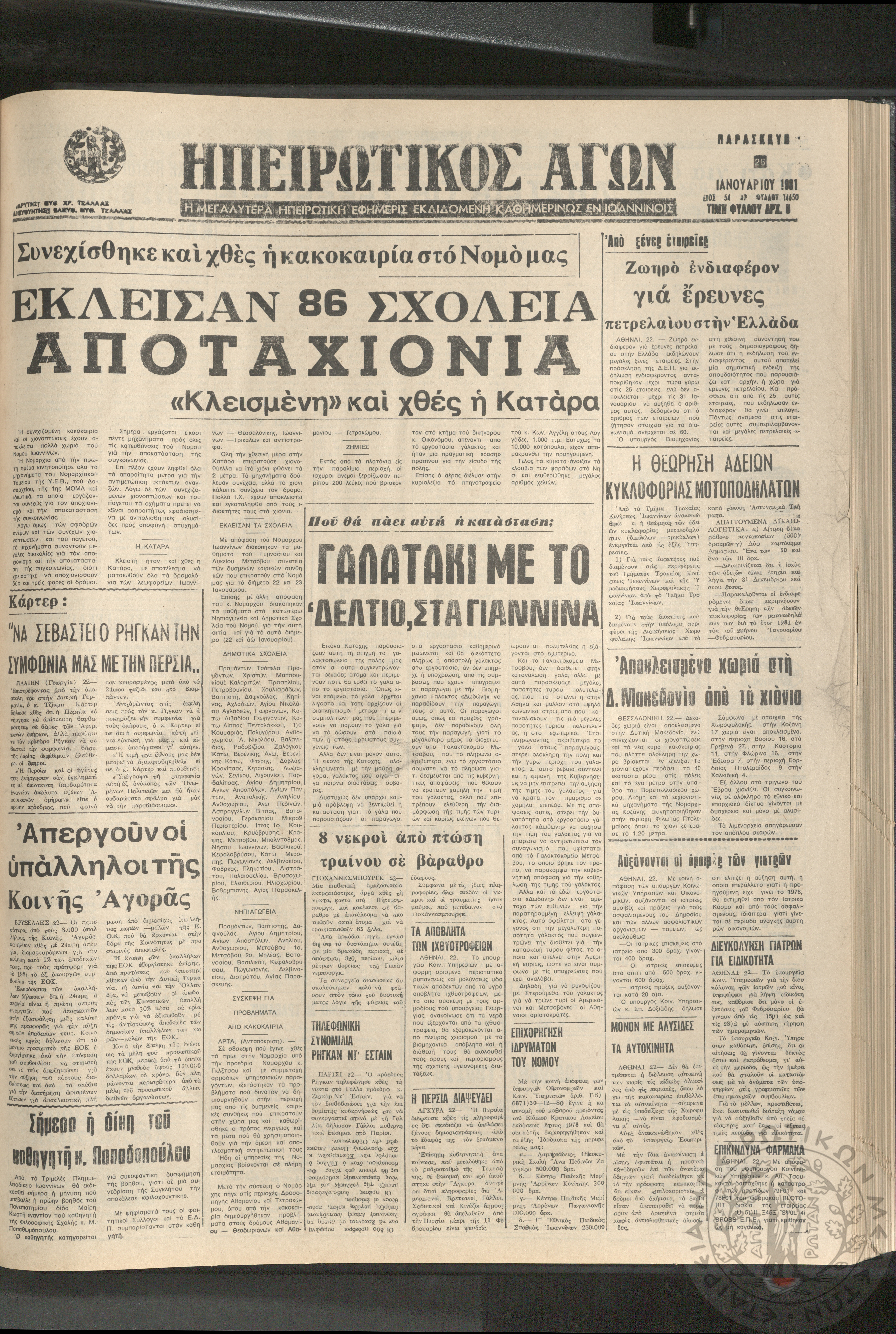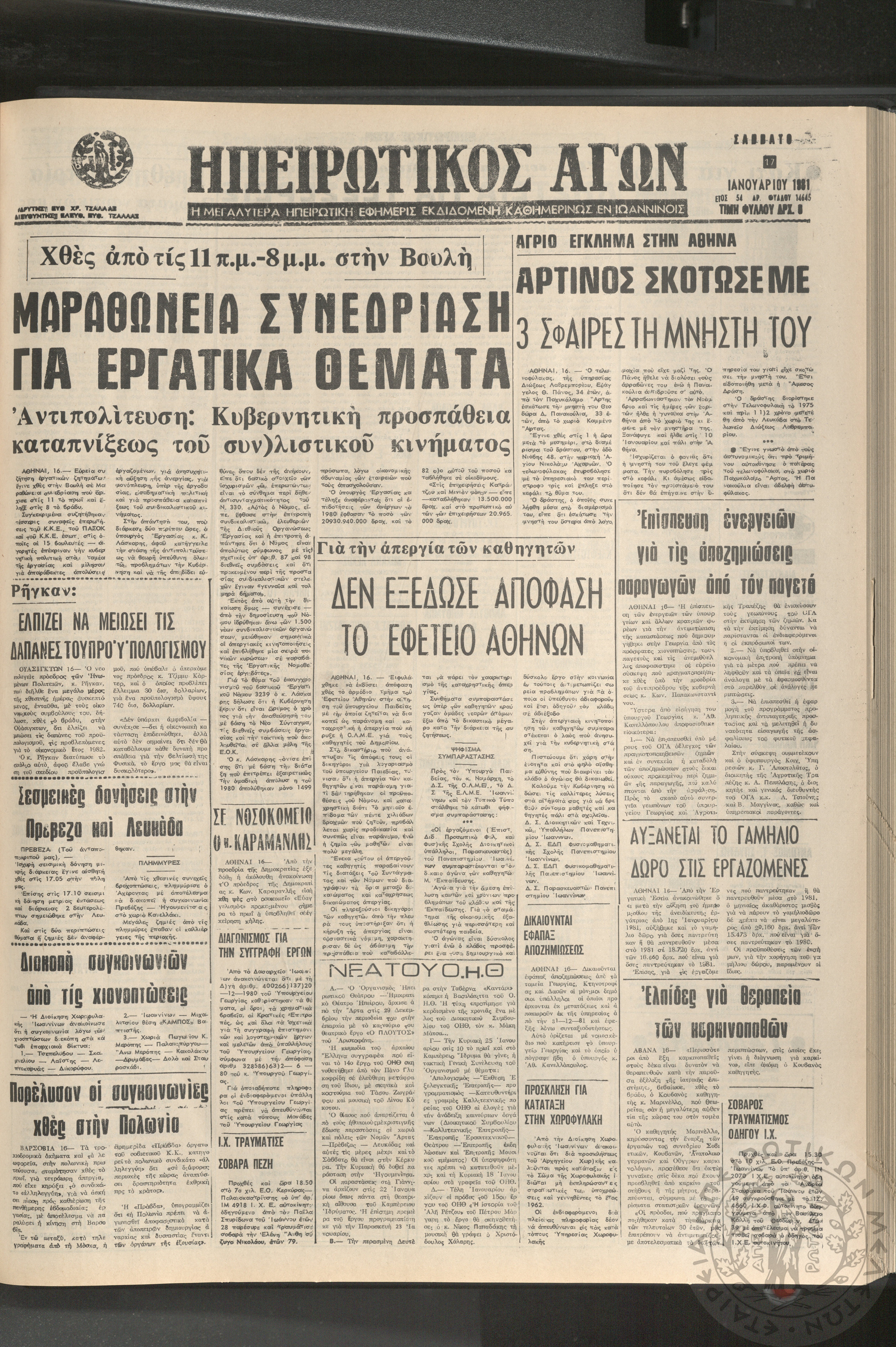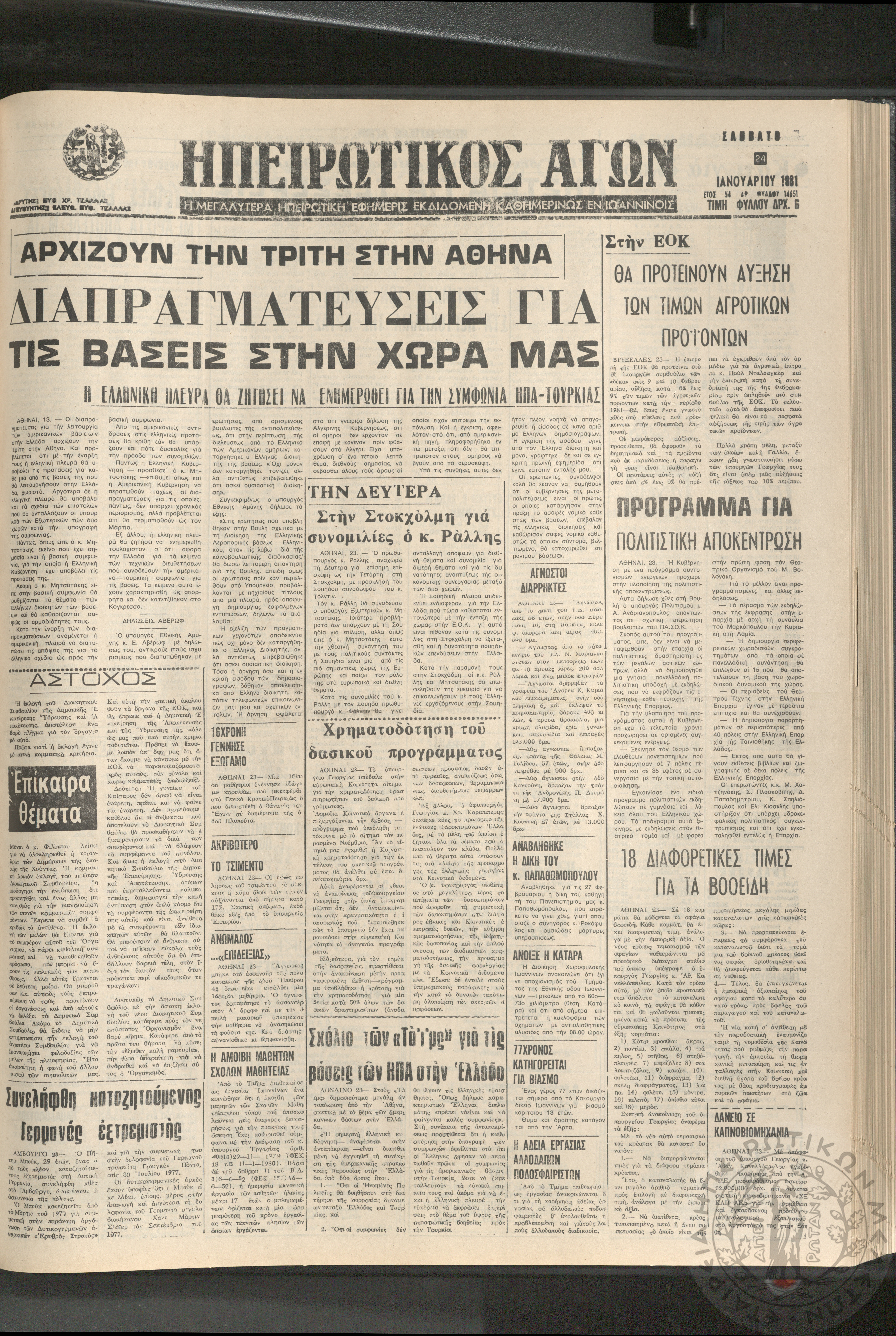 Ηπειρωτικός Αγών: η μεγαλυτέρα Ηπειρωτική εφημερίς εκδιδόμενη καθημερινώς εν Ιωαννίνοις, 1980, φ. 14331Έτος 53, φ. 14331...