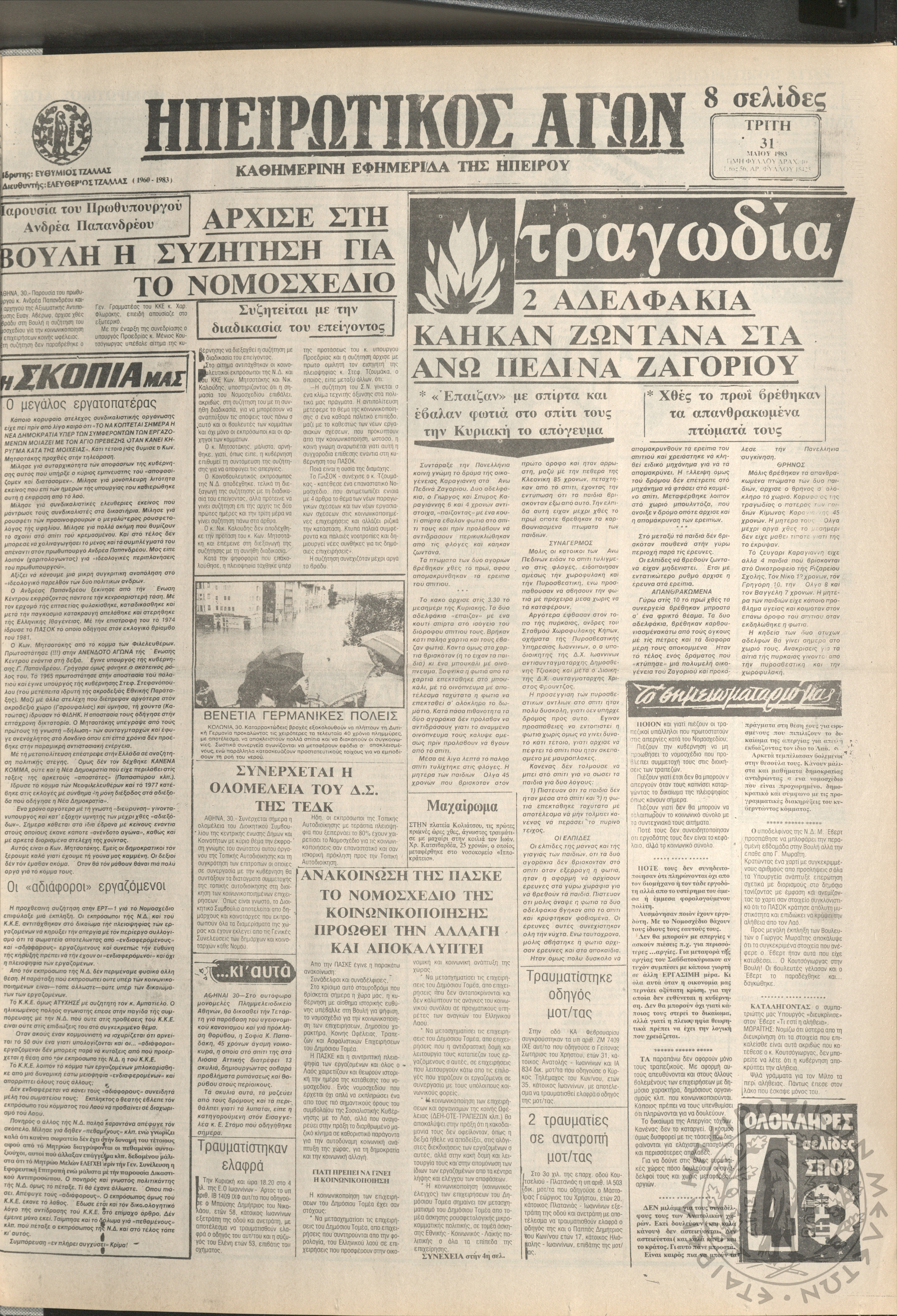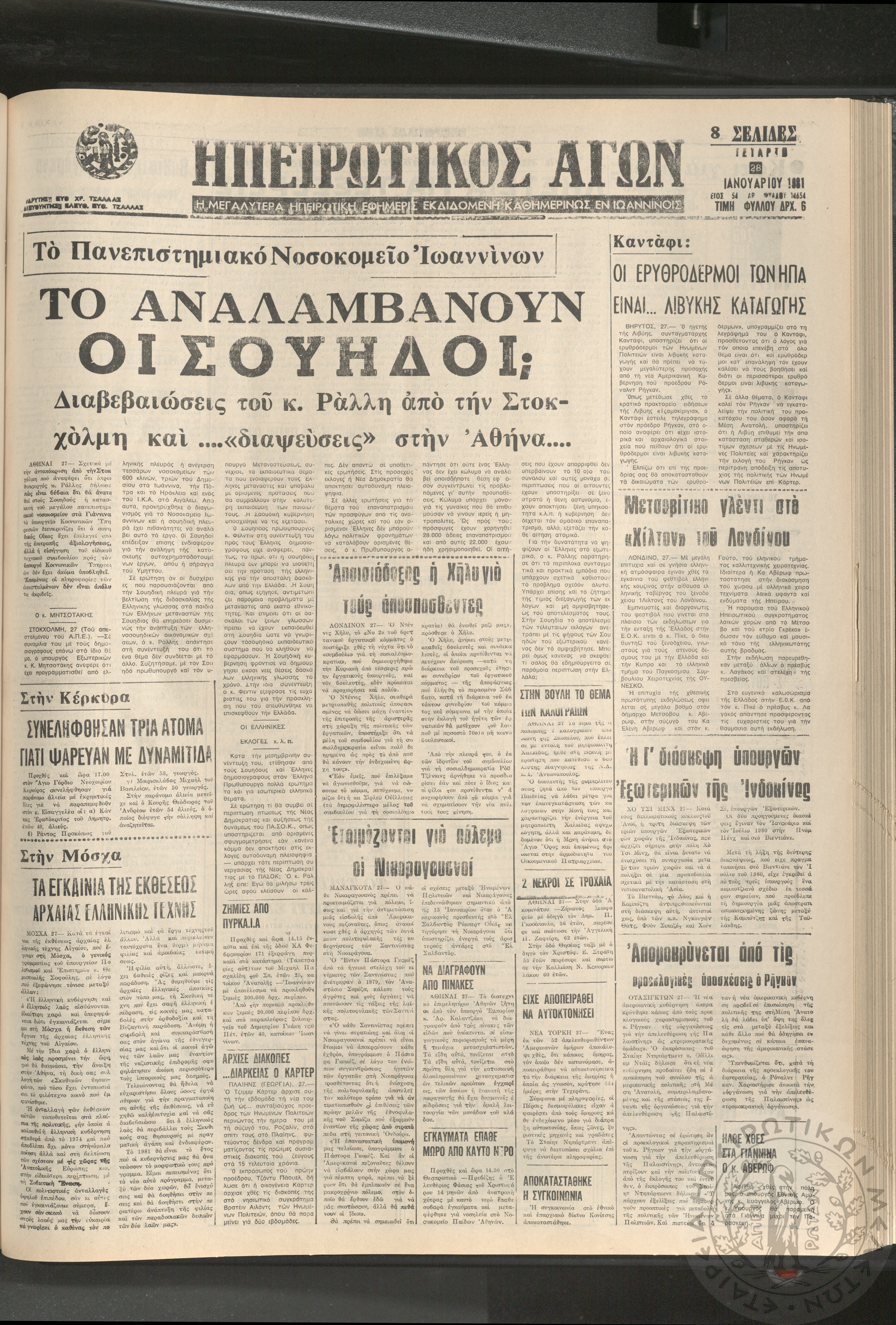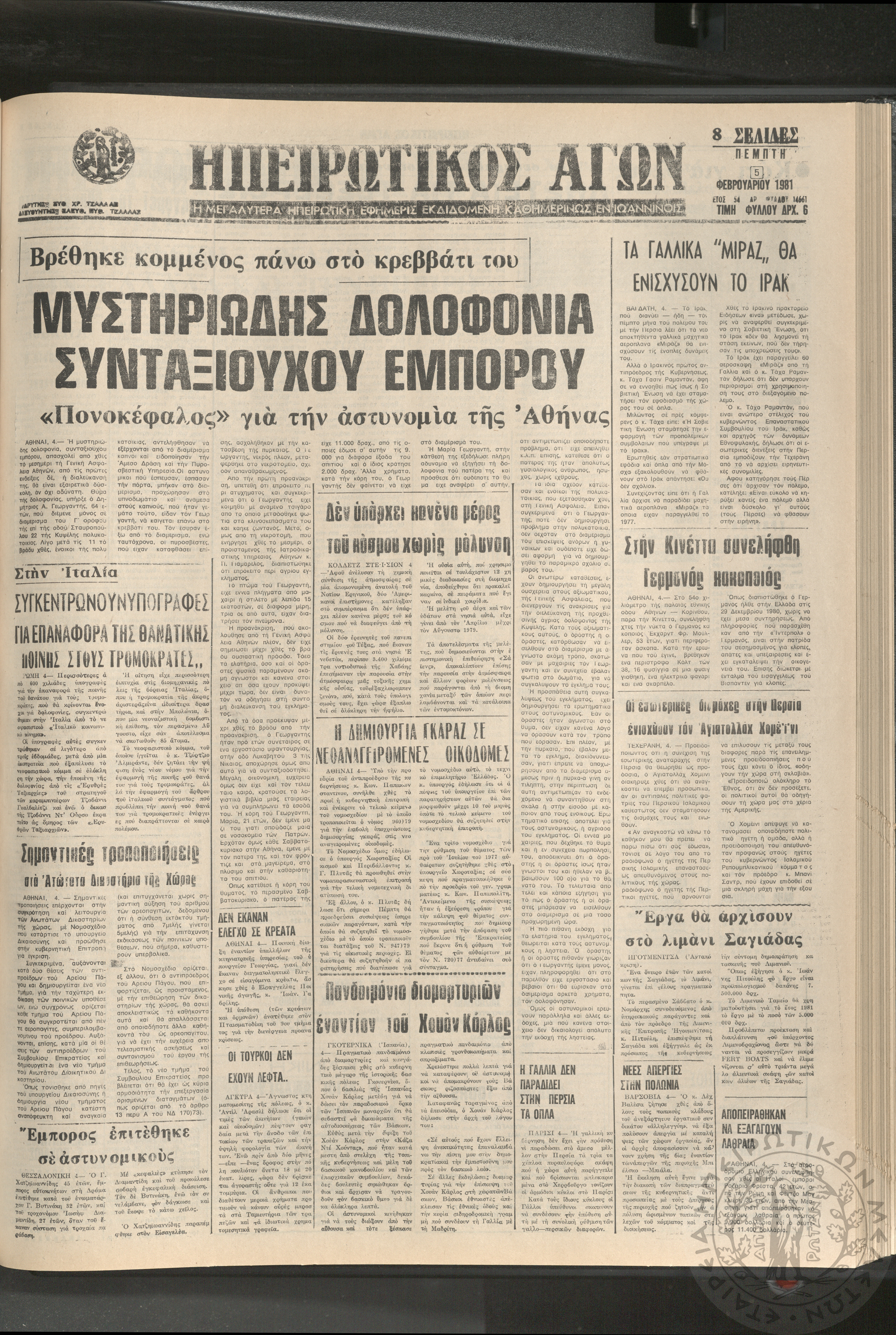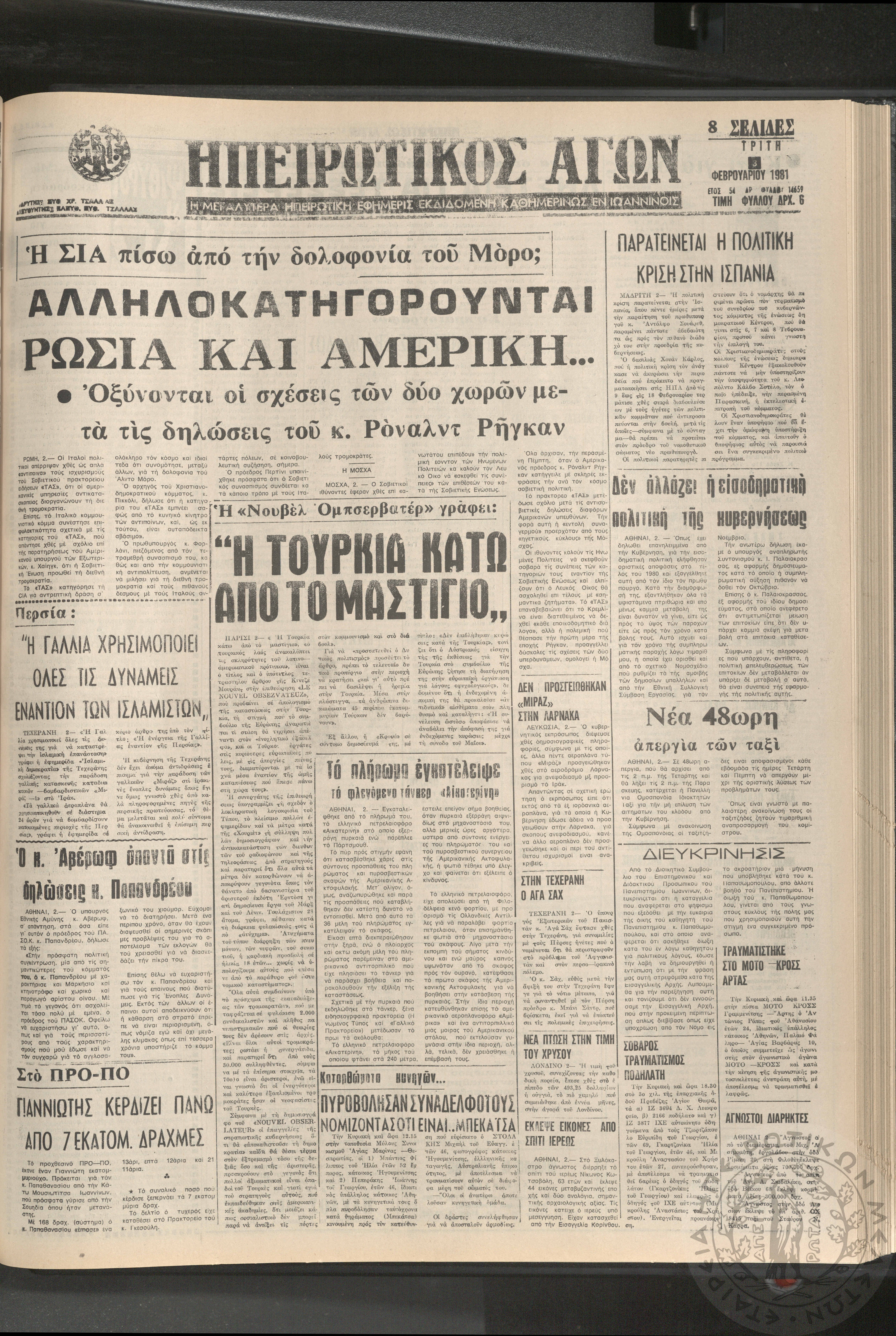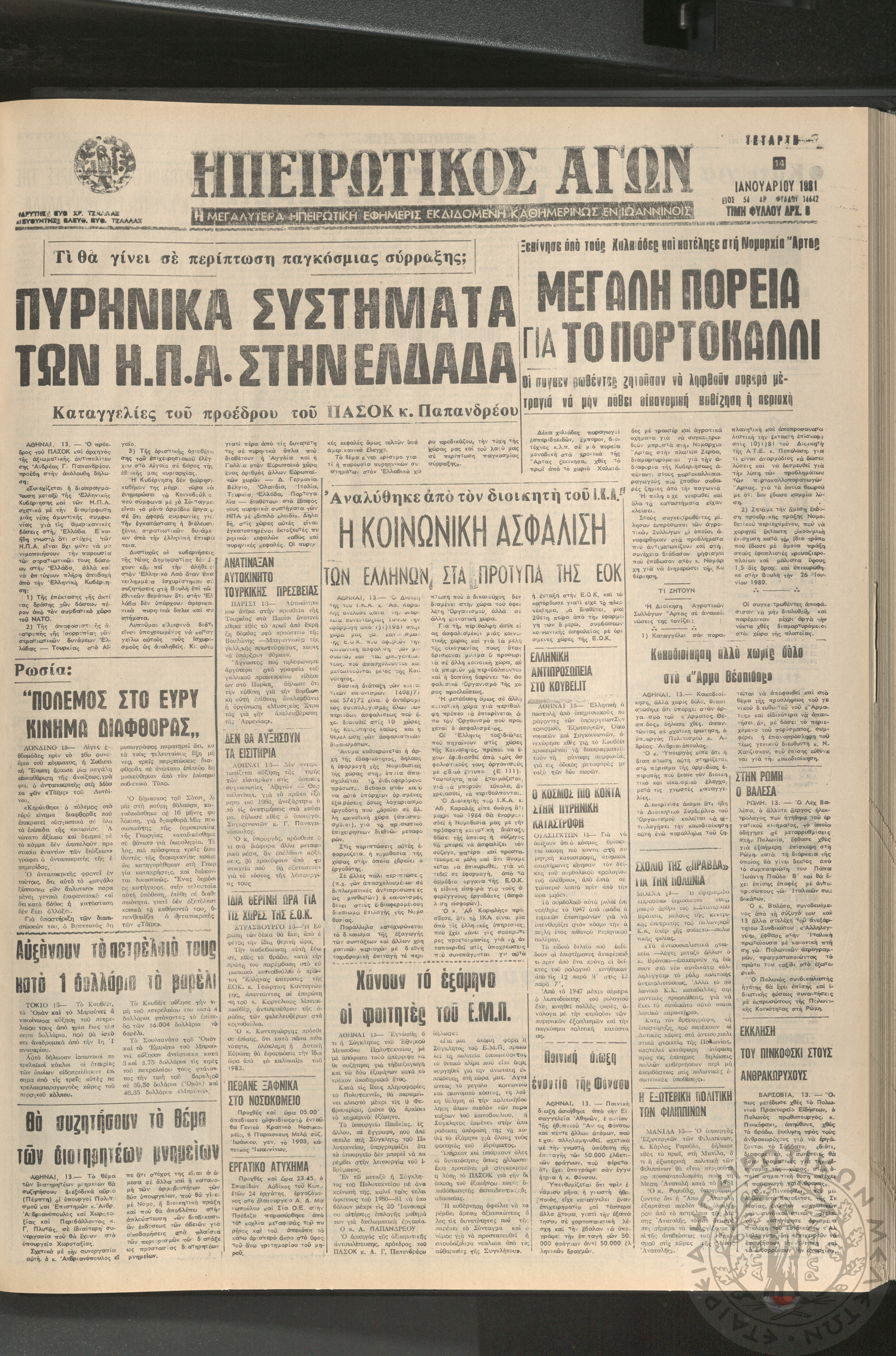 Ηπειρωτικός Αγών: η μεγαλυτέρα Ηπειρωτική εφημερίς εκδιδόμενη καθημερινώς εν Ιωαννίνοις, 1980, φ. 14331Έτος 53, φ. 14331...