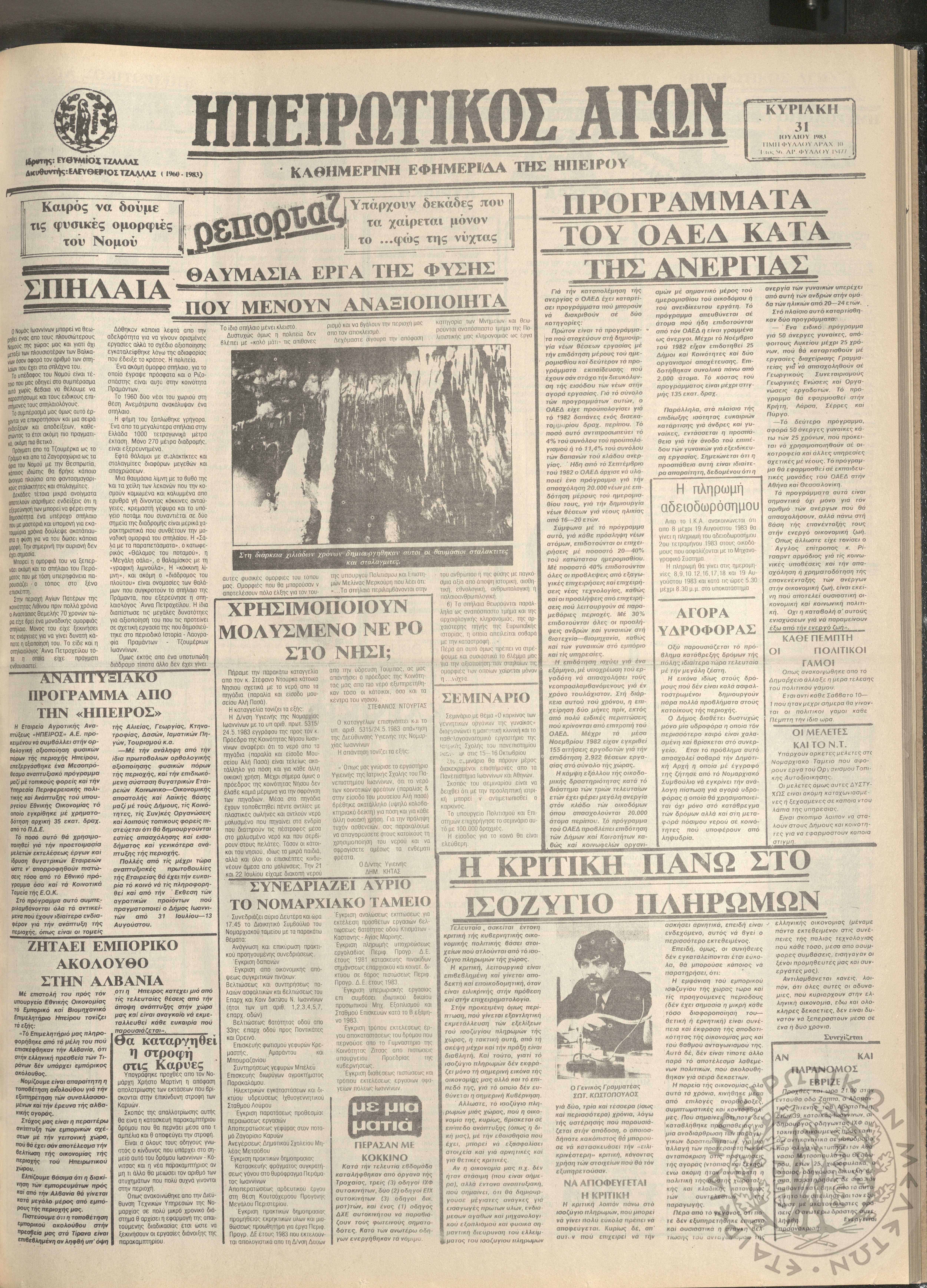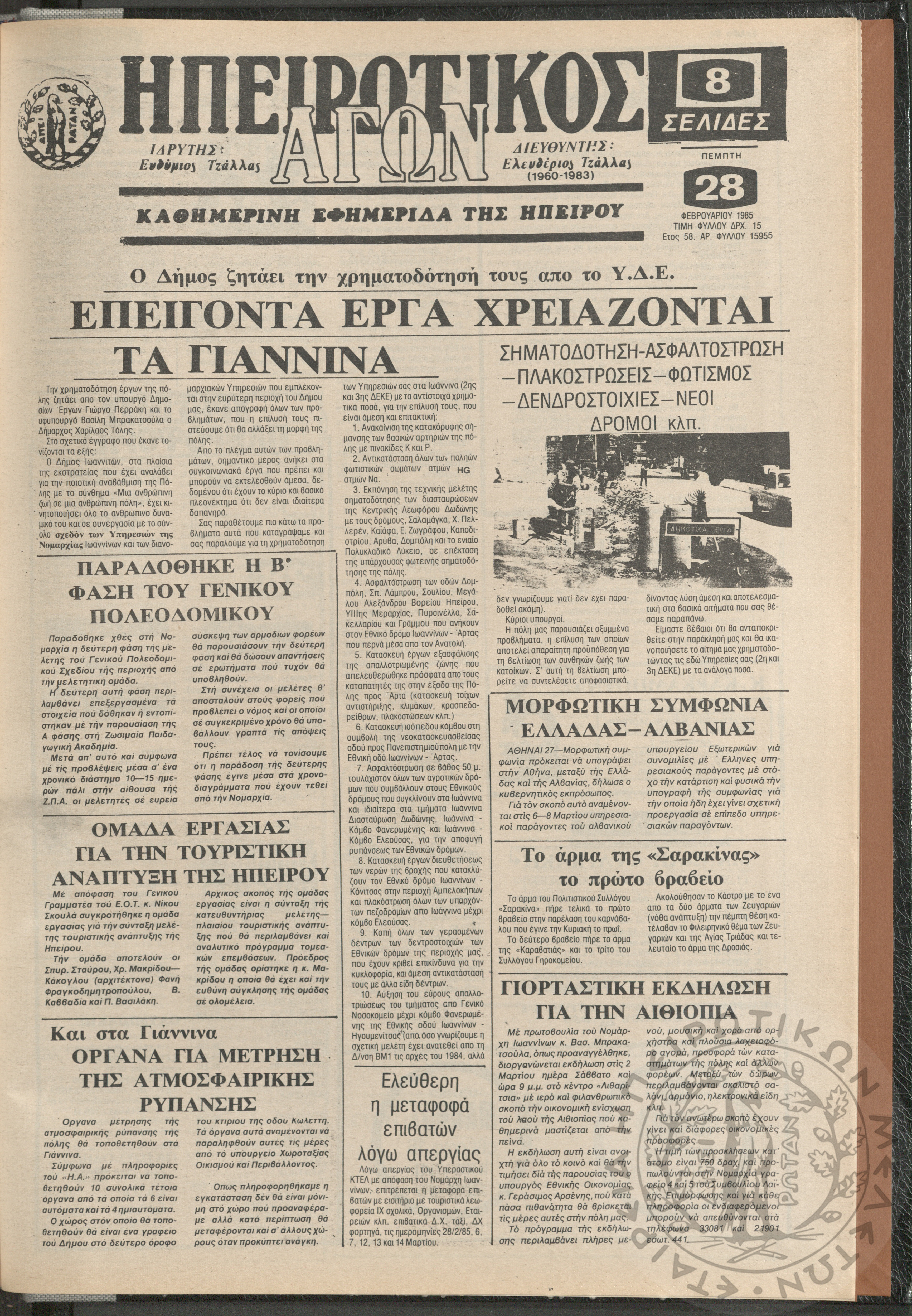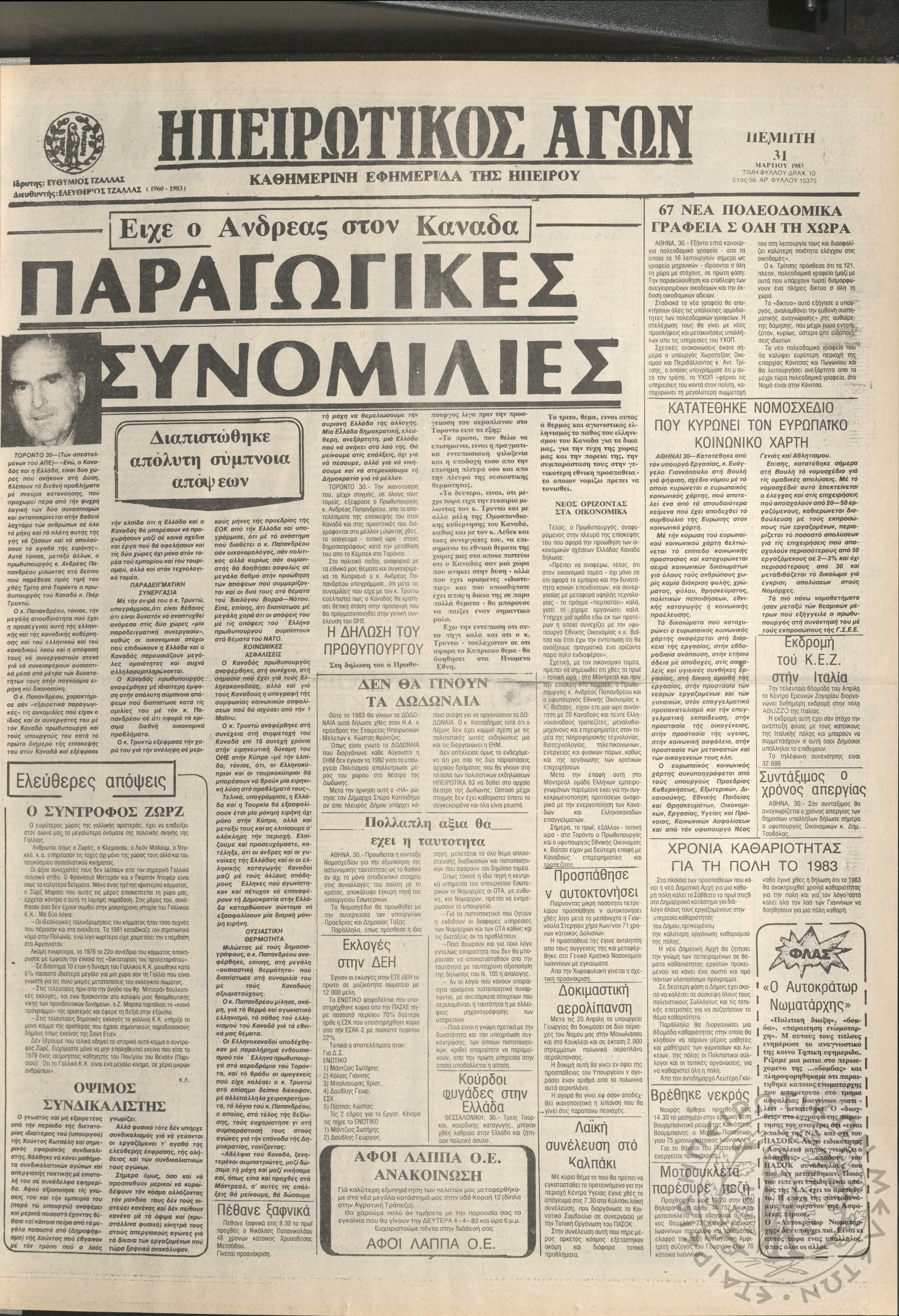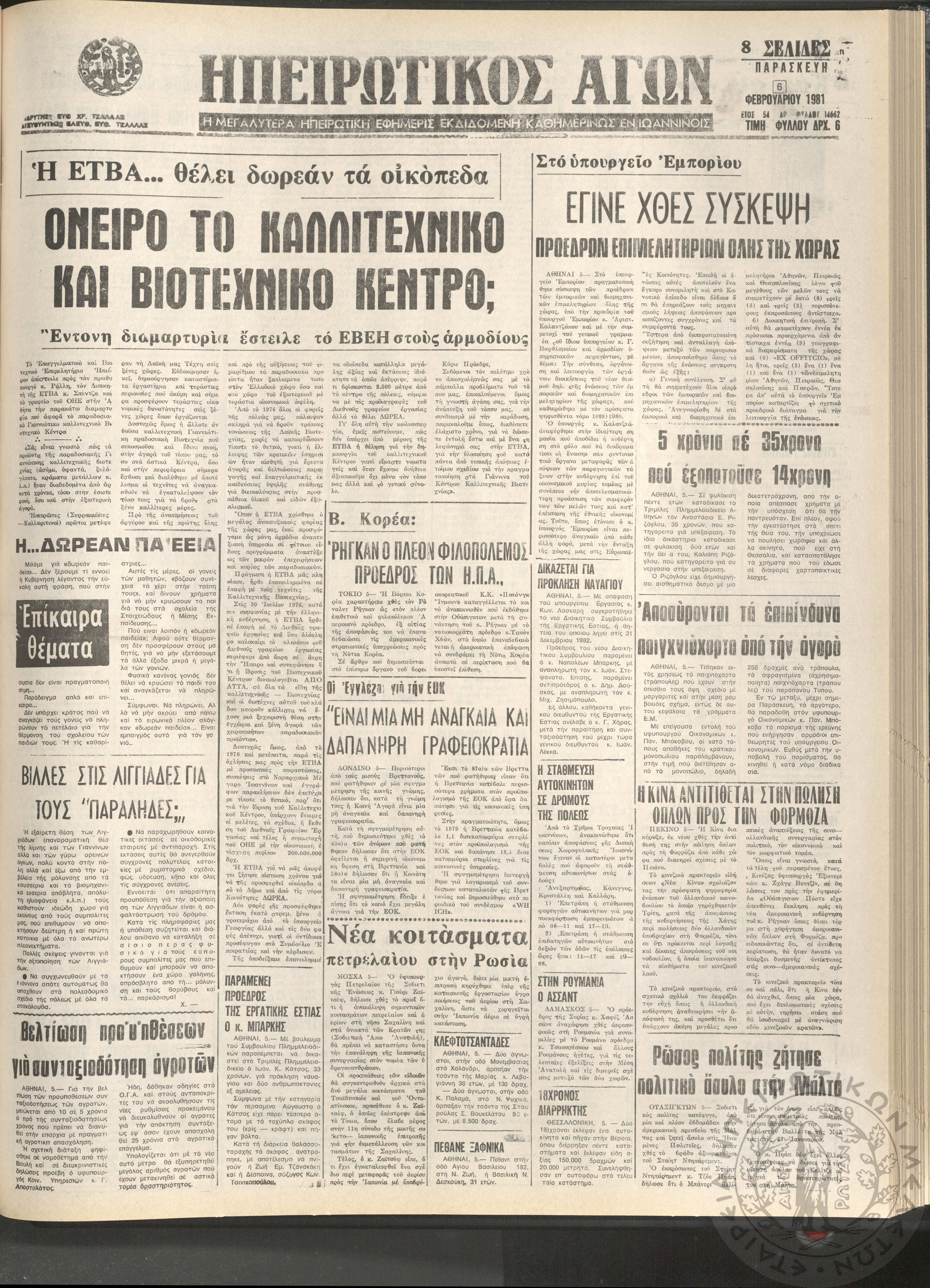 Ηπειρωτικός Αγών: η μεγαλυτέρα Ηπειρωτική εφημερίς εκδιδόμενη καθημερινώς εν Ιωαννίνοις, 1980, φ. 14331Έτος 53, φ. 14331...