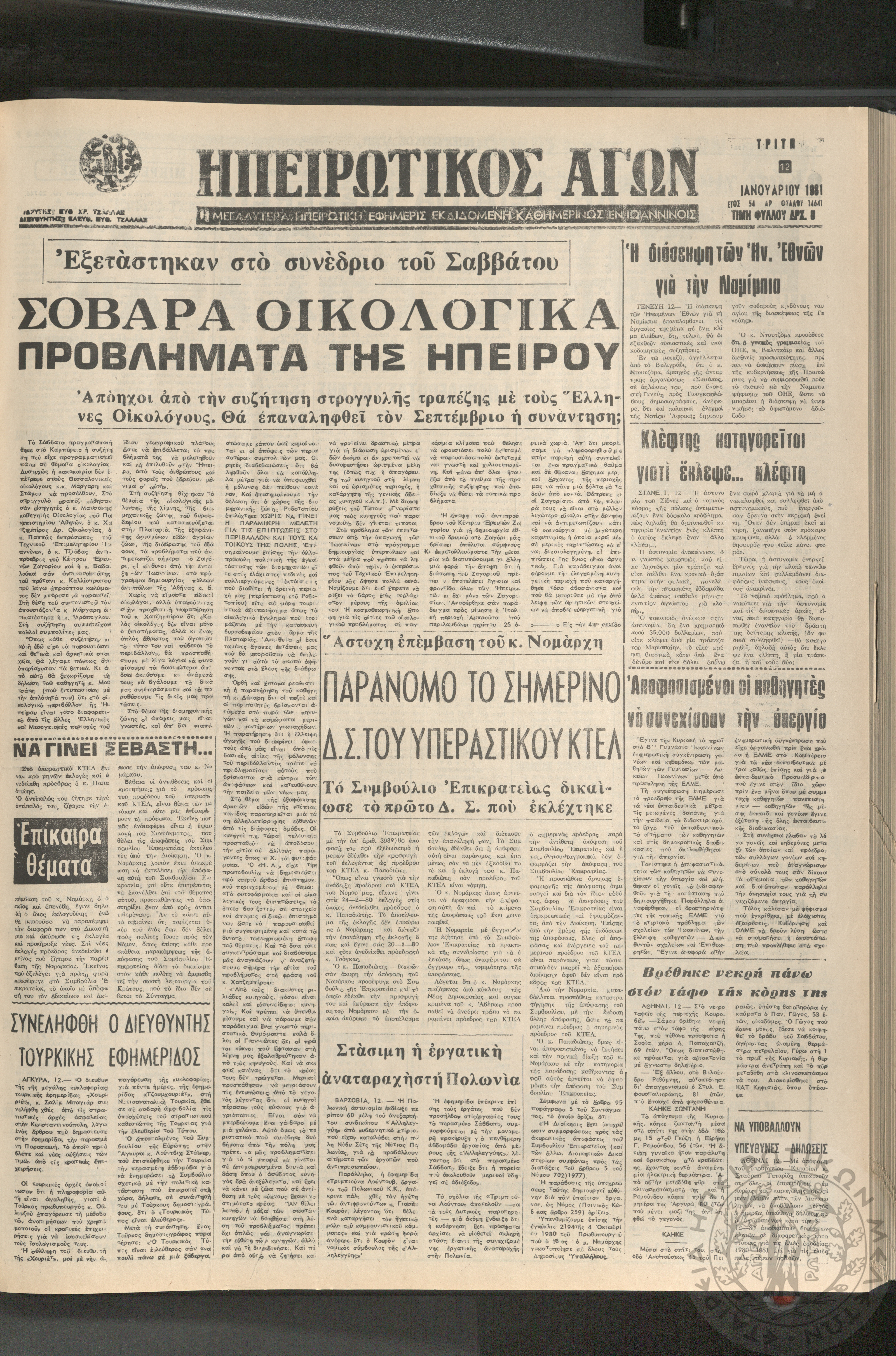 Ηπειρωτικός Αγών: η μεγαλυτέρα Ηπειρωτική εφημερίς εκδιδόμενη καθημερινώς εν Ιωαννίνοις, φ. 14649Έτος 54, φ. 14649...