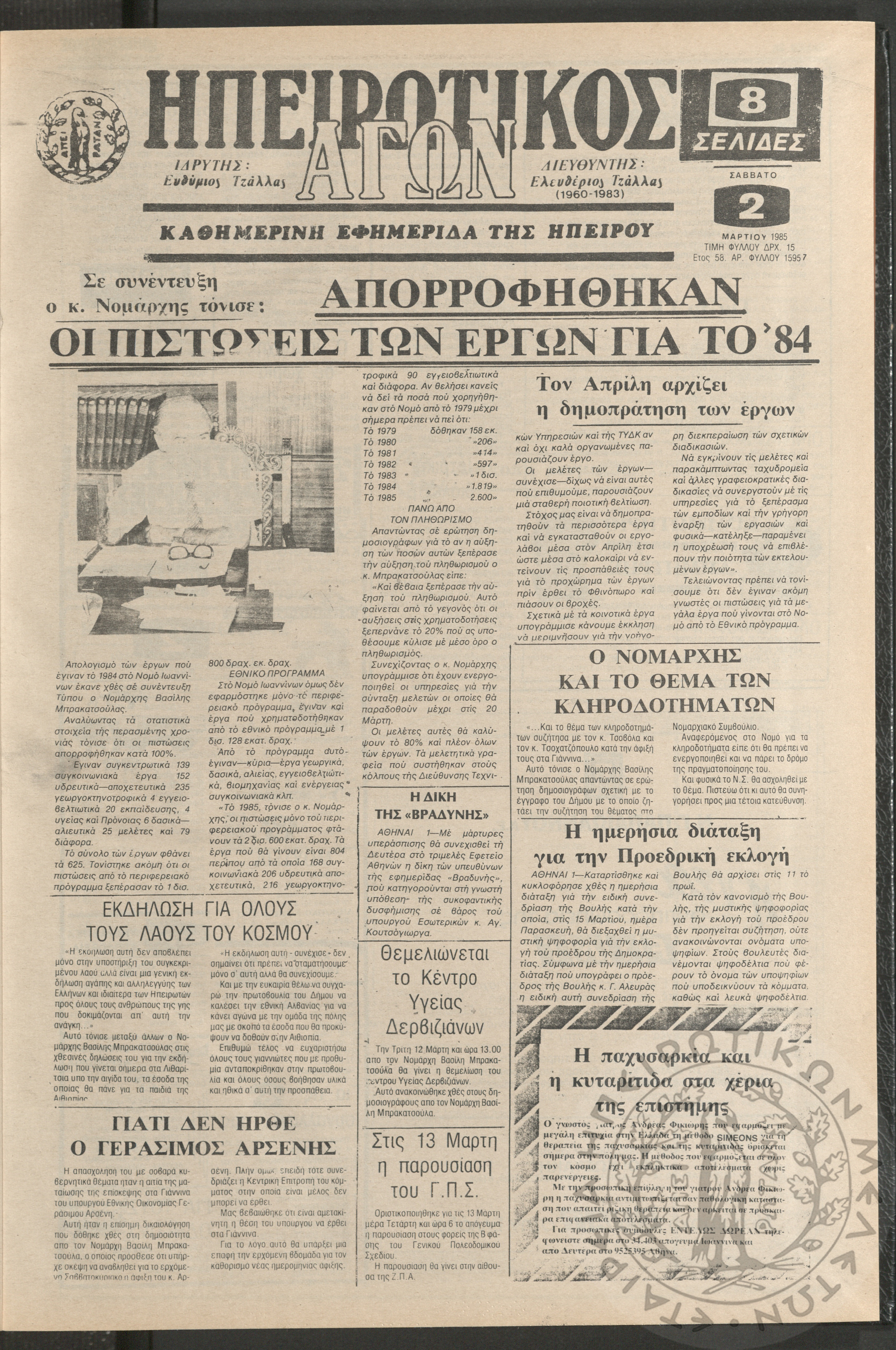 Ηπειρωτικός Αγών: η μεγαλυτέρα Ηπειρωτική εφημερίς εκδιδόμενη καθημερινώς εν Ιωαννίνοις, φ. 14657Έτος 54, φ. 14657...