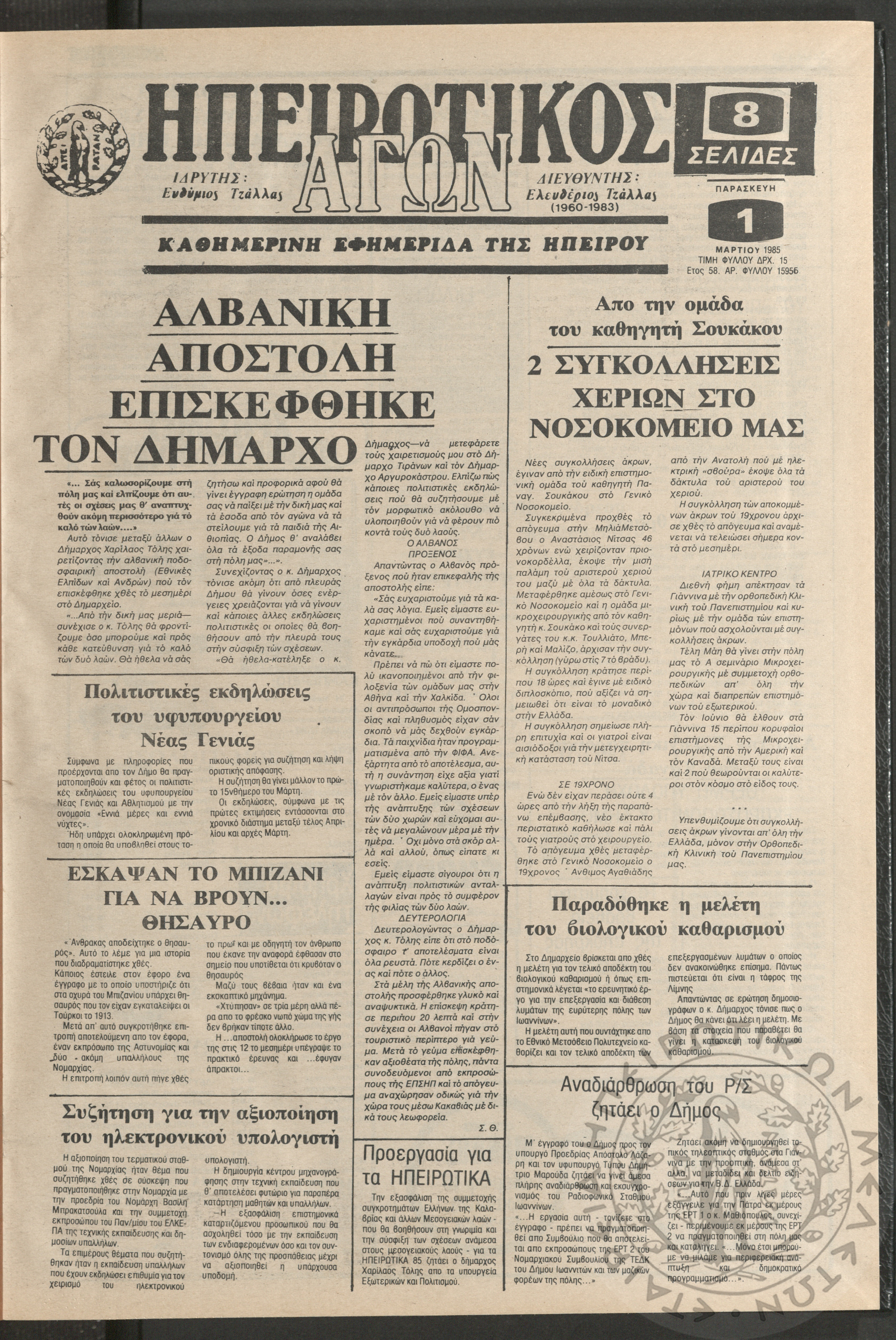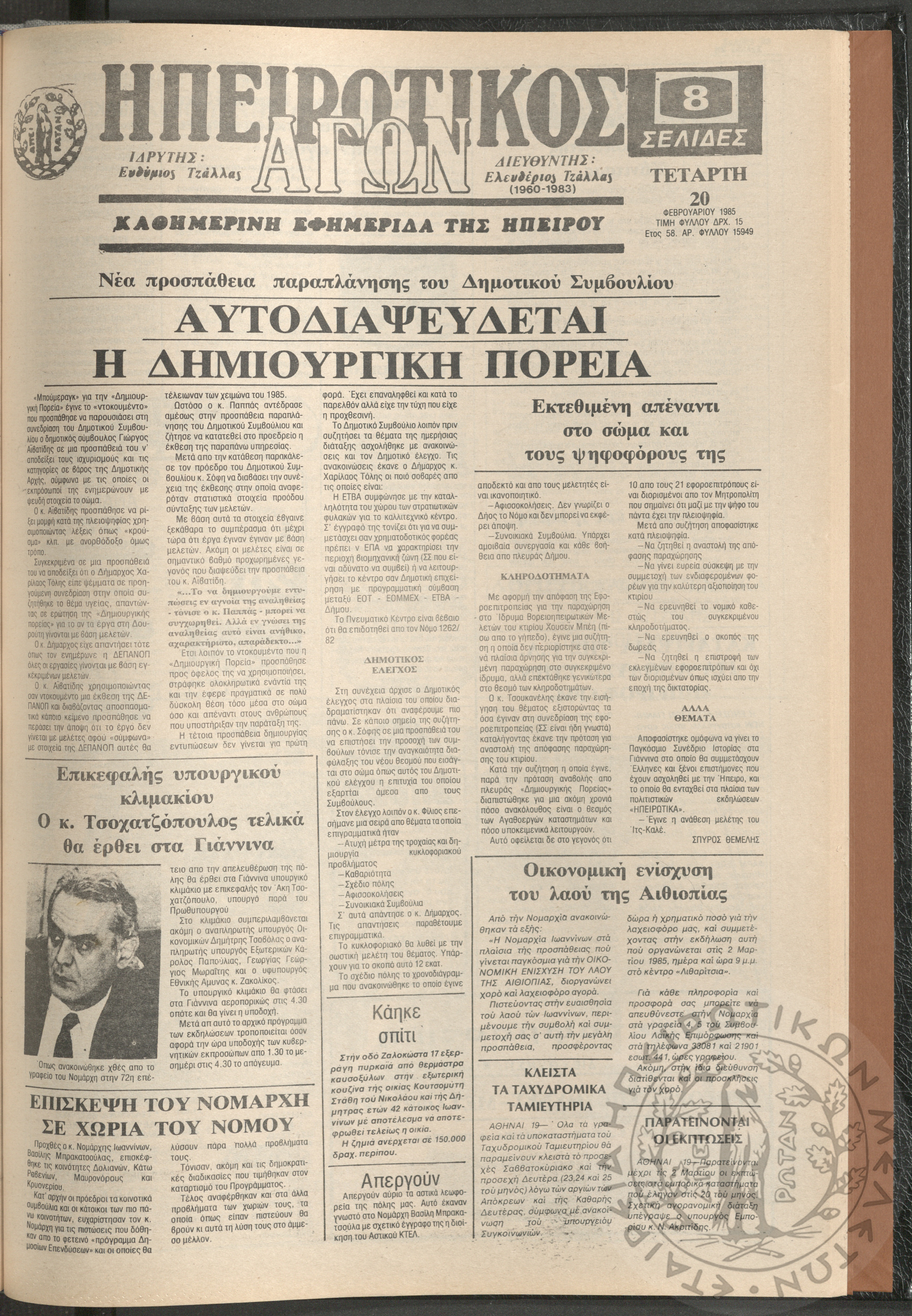 Ηπειρωτικός Αγών: η μεγαλυτέρα Ηπειρωτική εφημερίς εκδιδόμενη καθημερινώς εν Ιωαννίνοις, φ. 14655Έτος 54, φ. 14655...