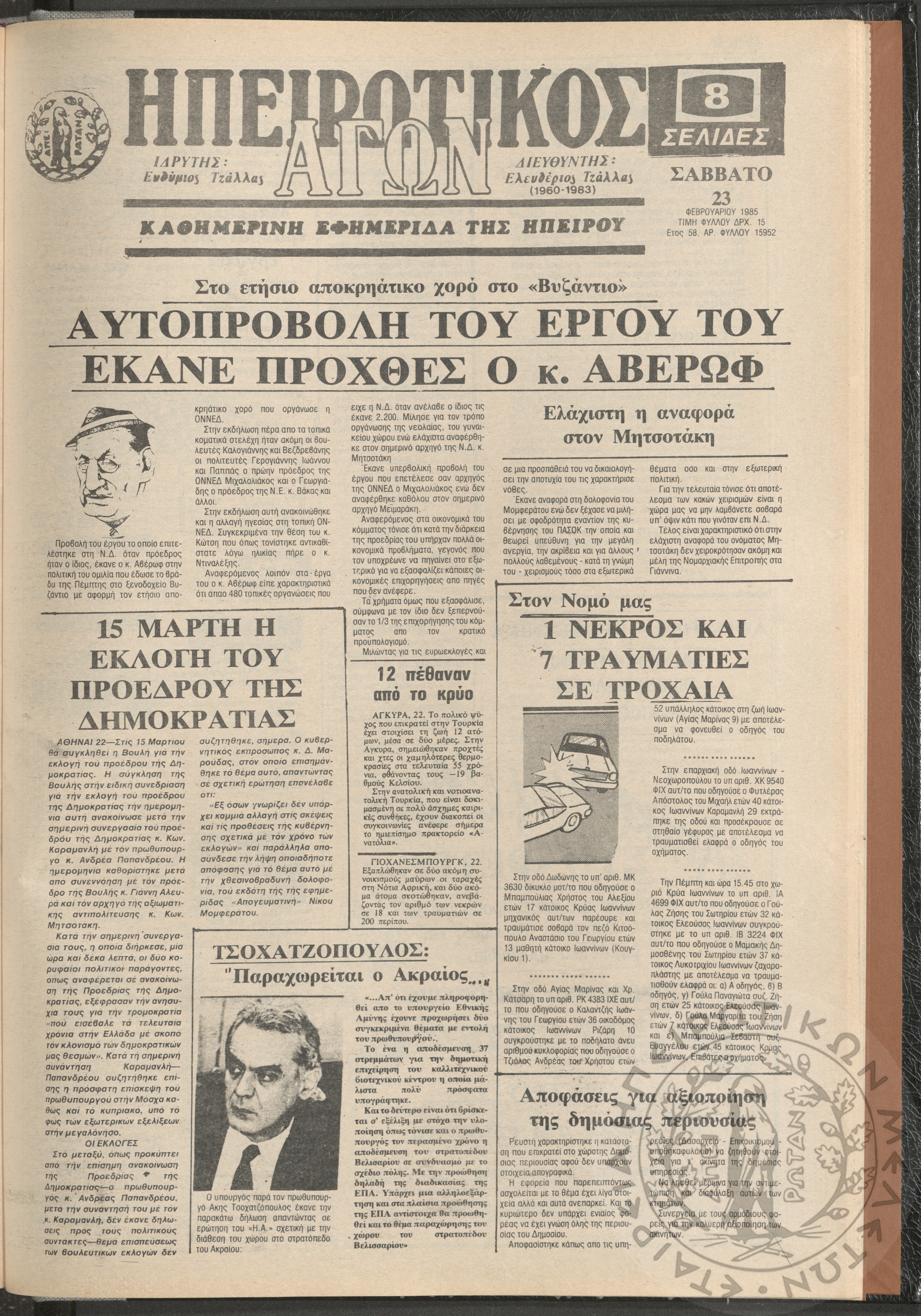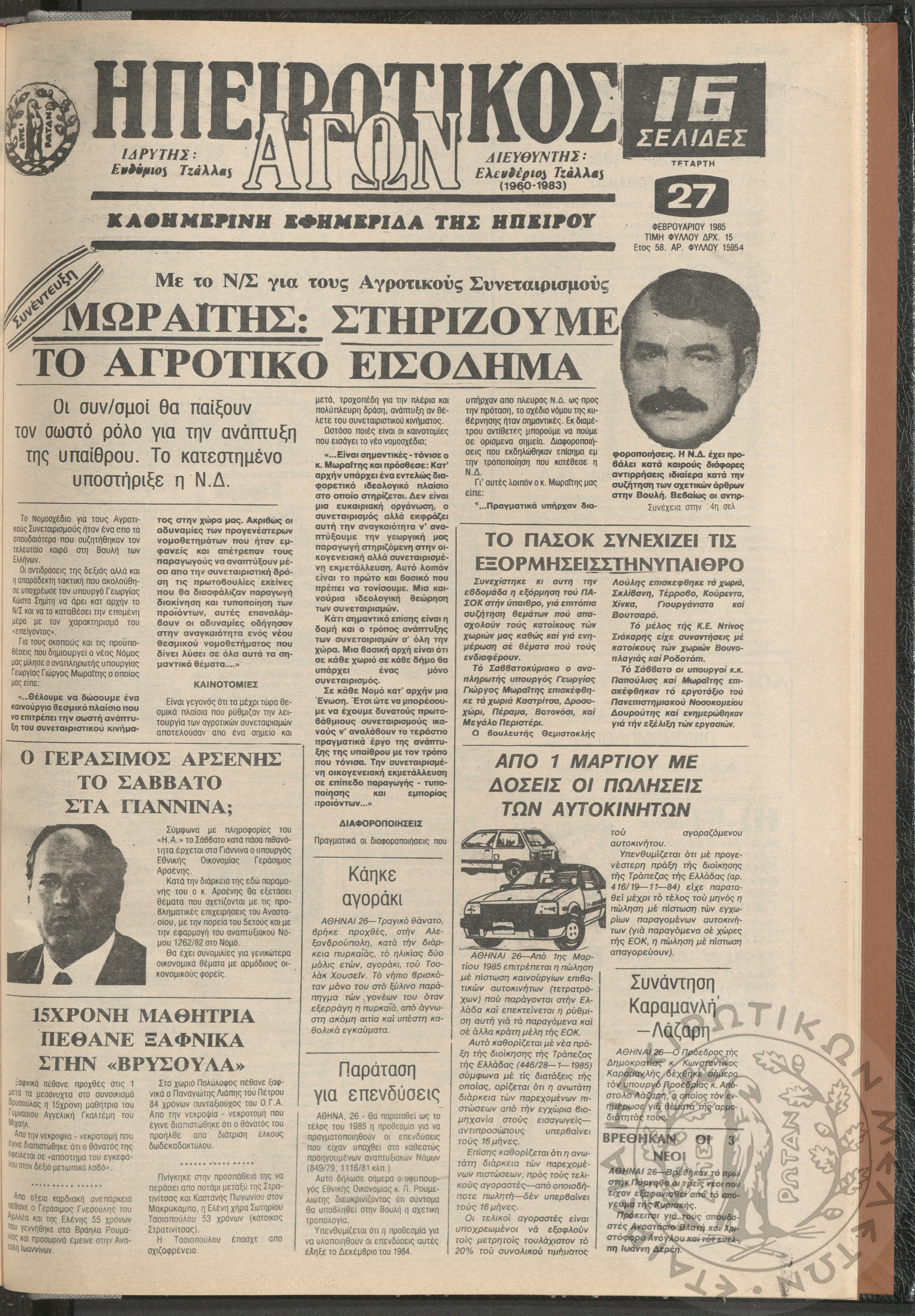 Ηπειρωτικός Αγών: η μεγαλυτέρα Ηπειρωτική εφημερίς εκδιδόμενη καθημερινώς εν Ιωαννίνοις, φ. 14652Έτος 54, φ. 14652...