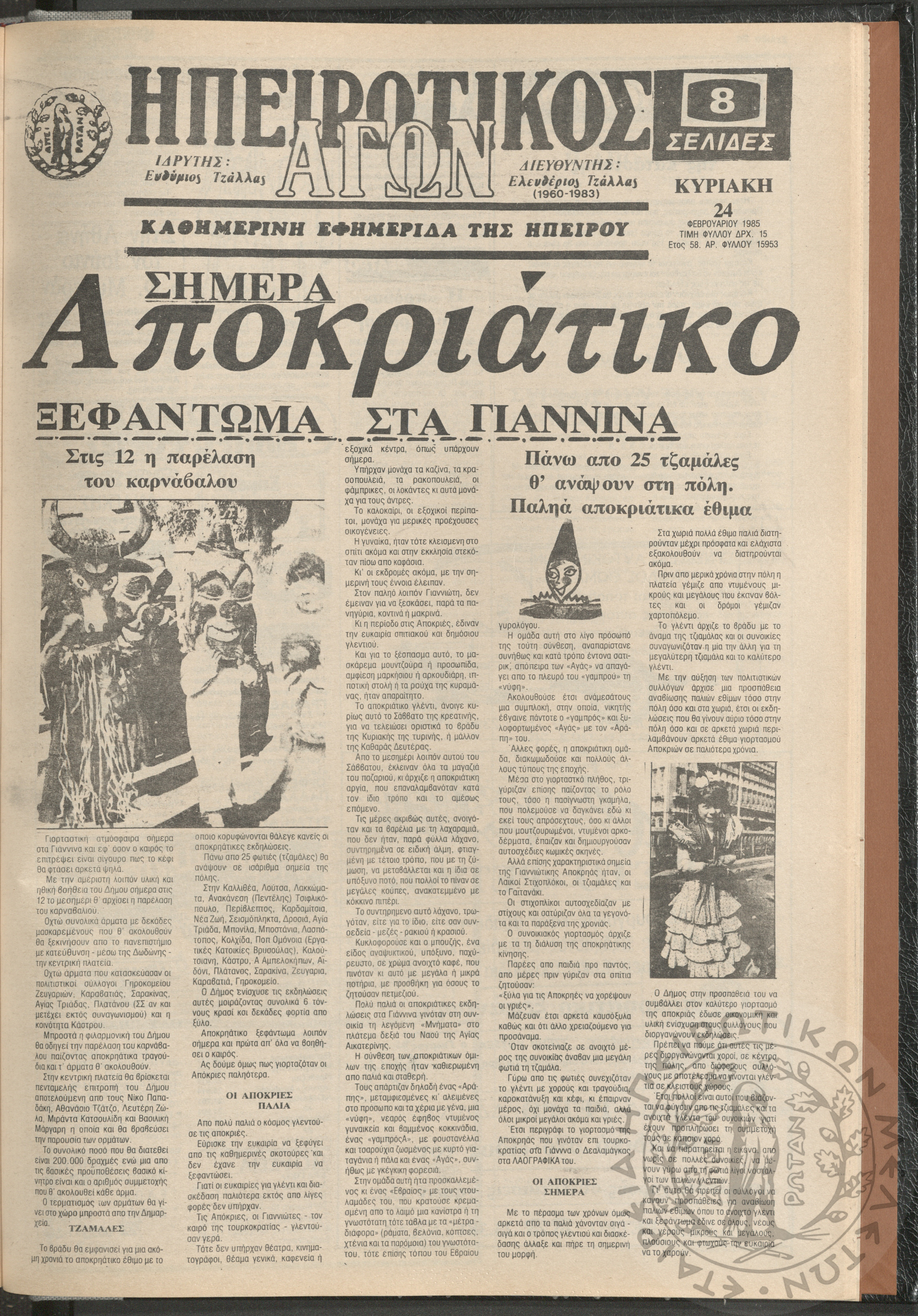 Ηπειρωτικός Αγών: η μεγαλυτέρα Ηπειρωτική εφημερίς εκδιδόμενη καθημερινώς εν Ιωαννίνοις, φ. 14653Έτος 54, φ. 14653...