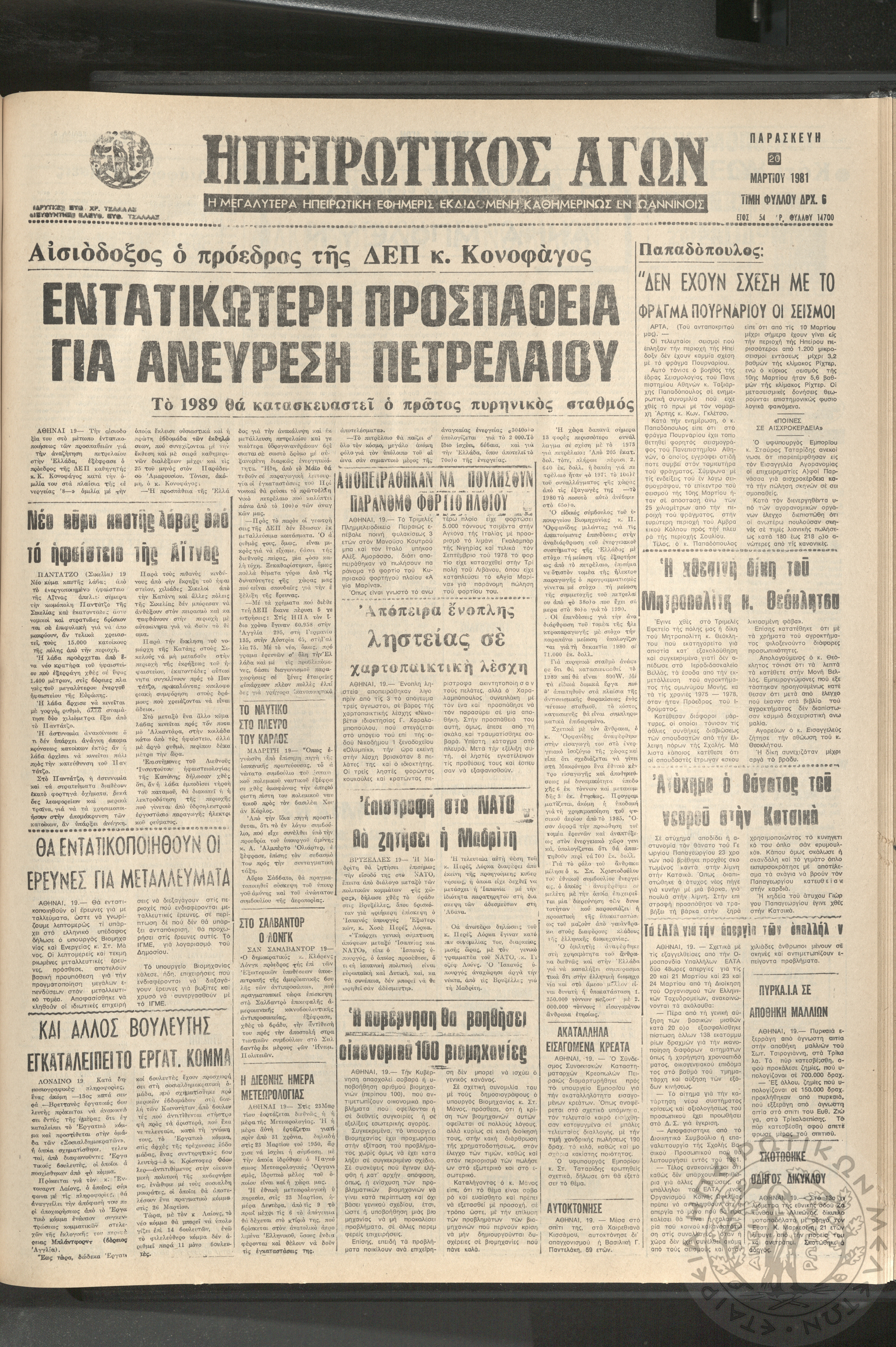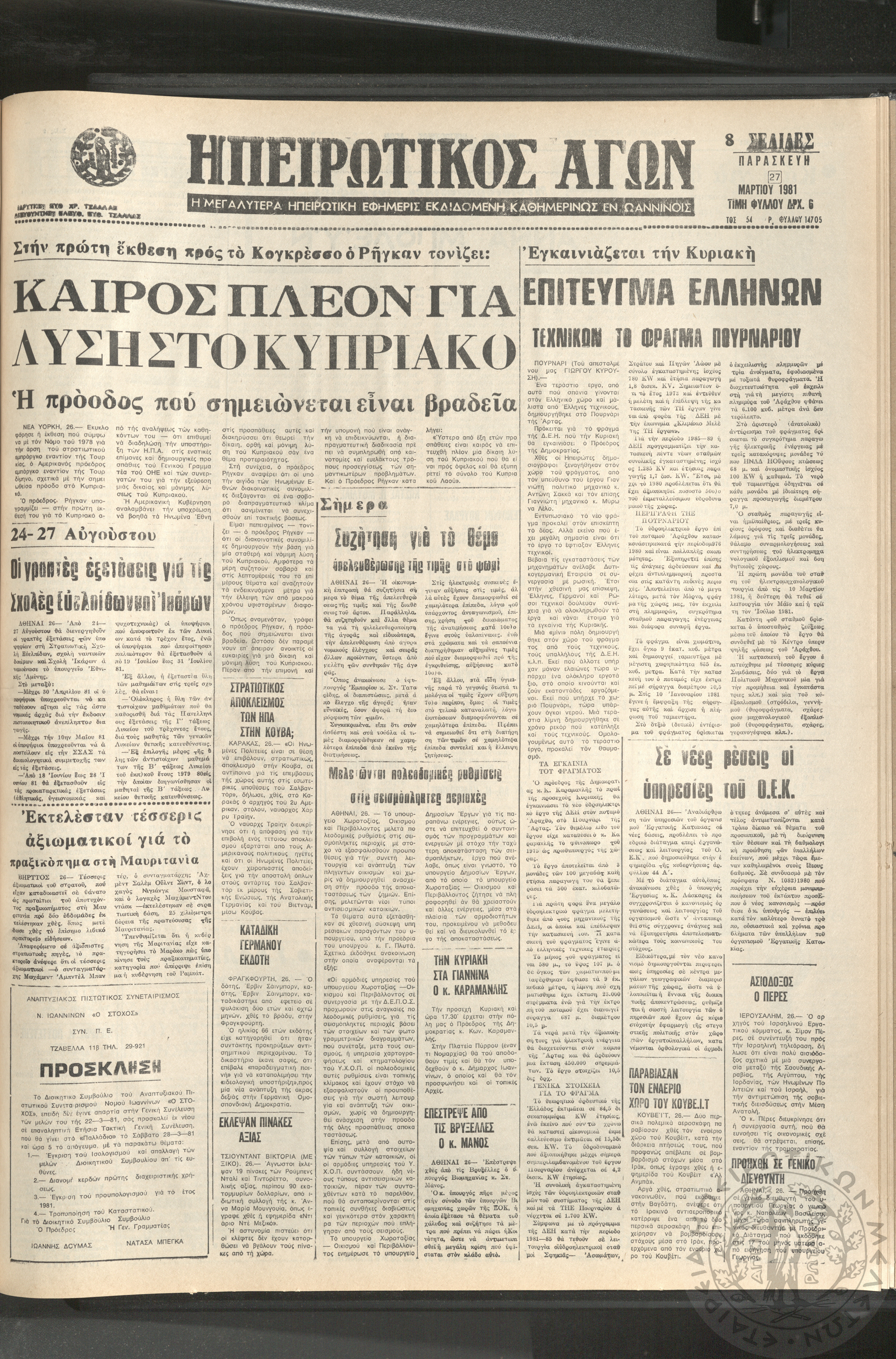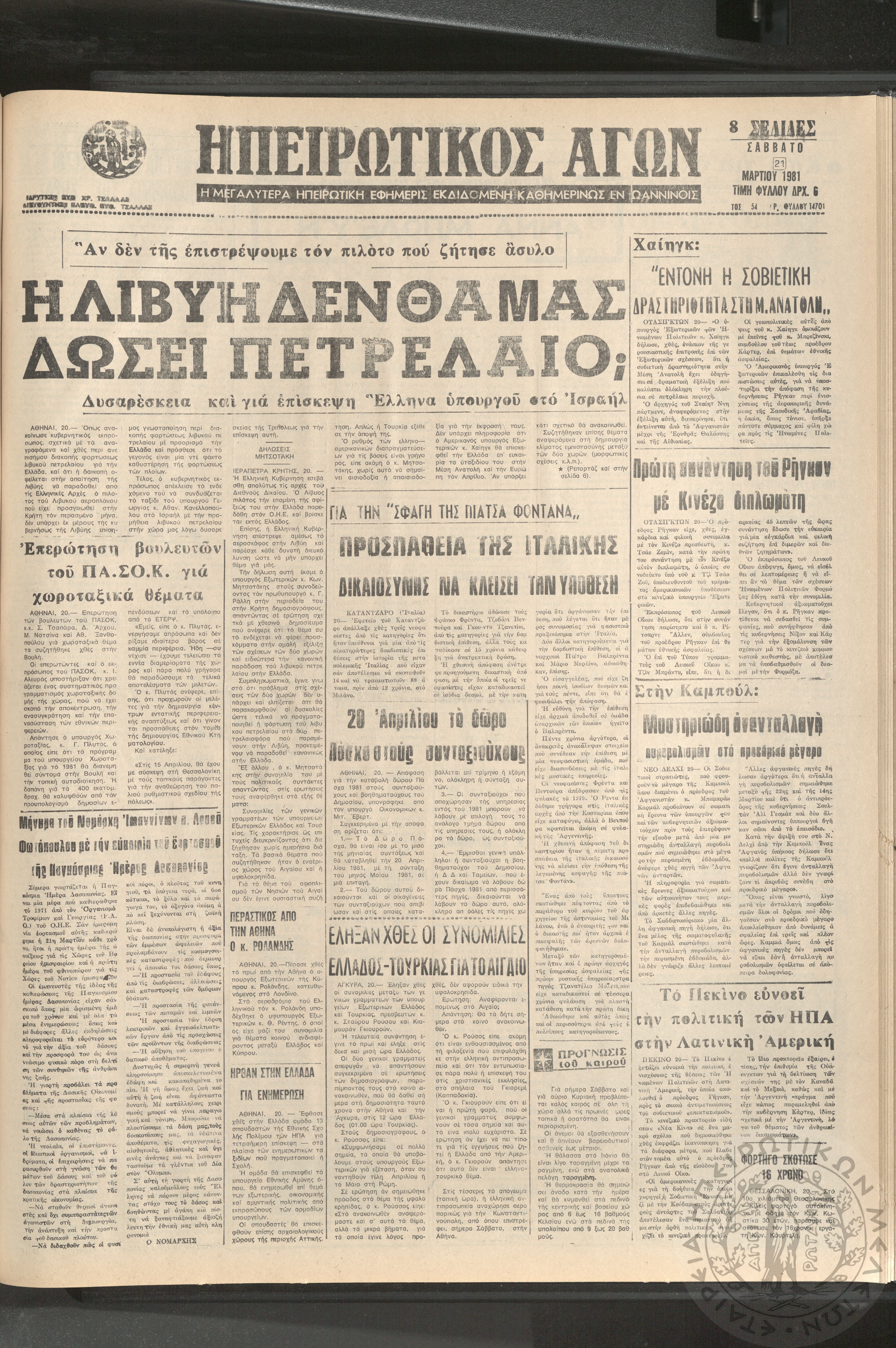 Ηπειρωτικός Αγών: η μεγαλυτέρα Ηπειρωτική εφημερίς εκδιδόμενη καθημερινώς εν Ιωαννίνοις, φ. 14706Έτος 54, φ. 14706...
