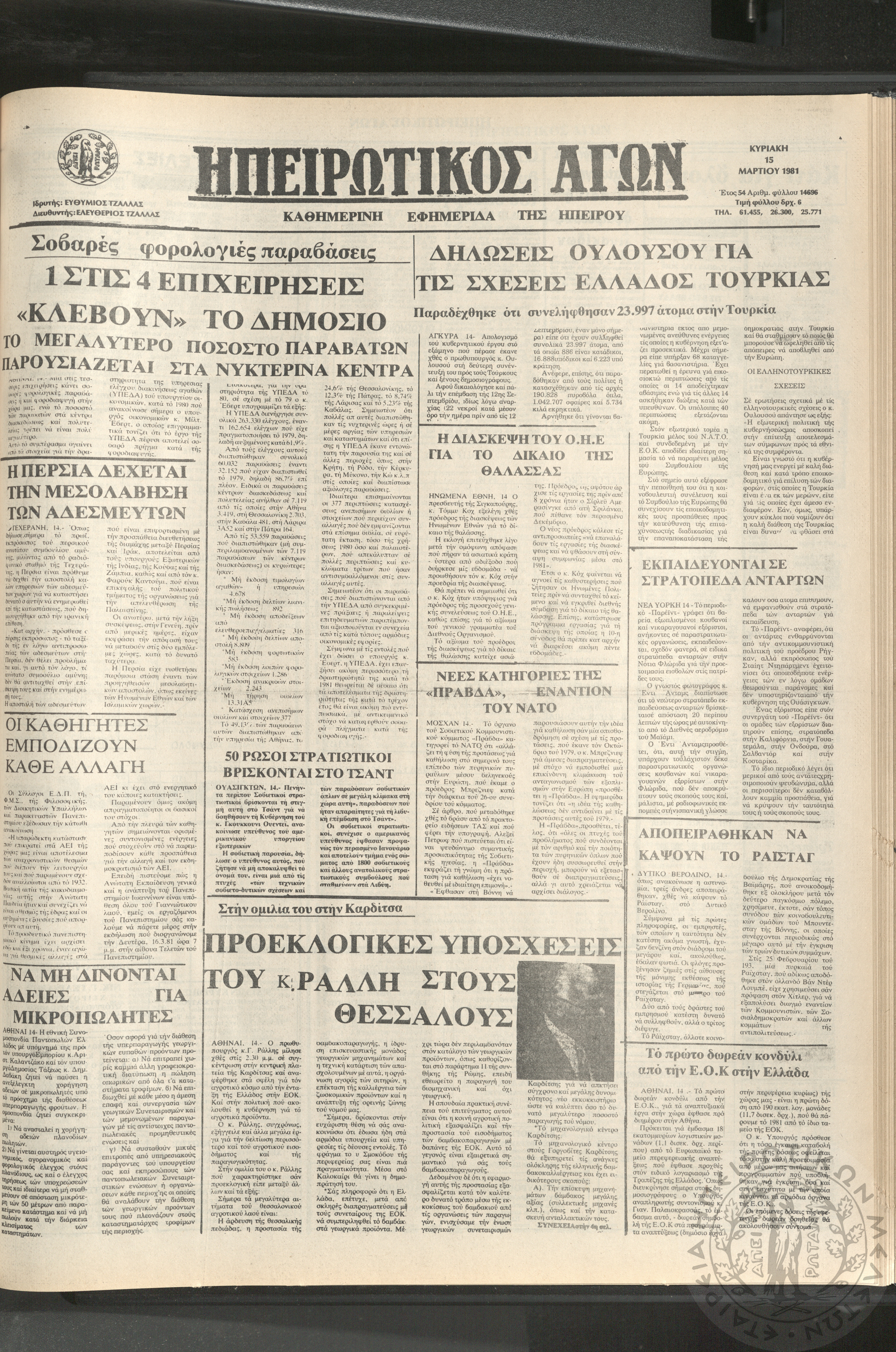 Ηπειρωτικός Αγών: η μεγαλυτέρα Ηπειρωτική εφημερίς εκδιδόμενη καθημερινώς εν Ιωαννίνοις, φ. 14691Έτος 54, φ. 14691...