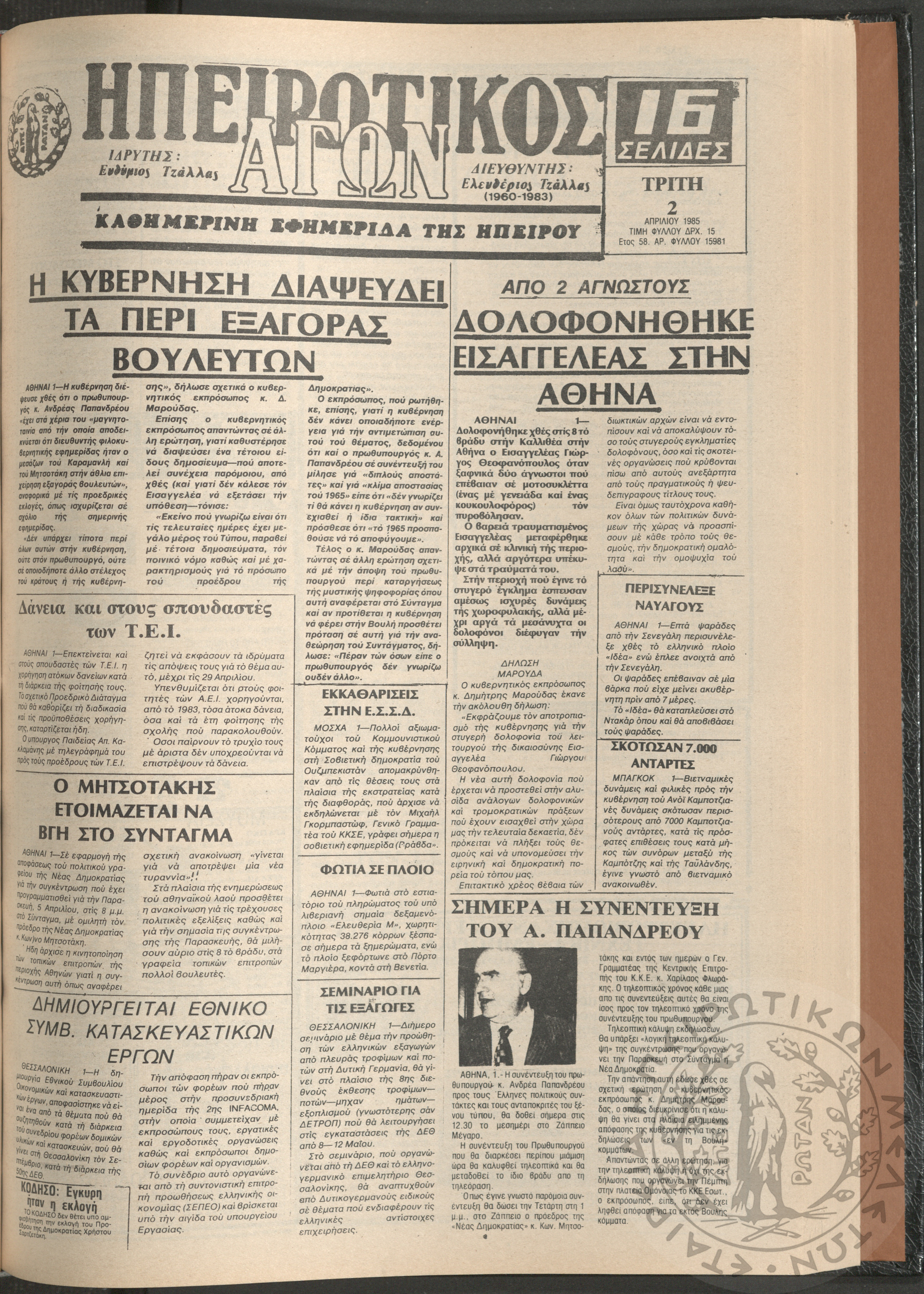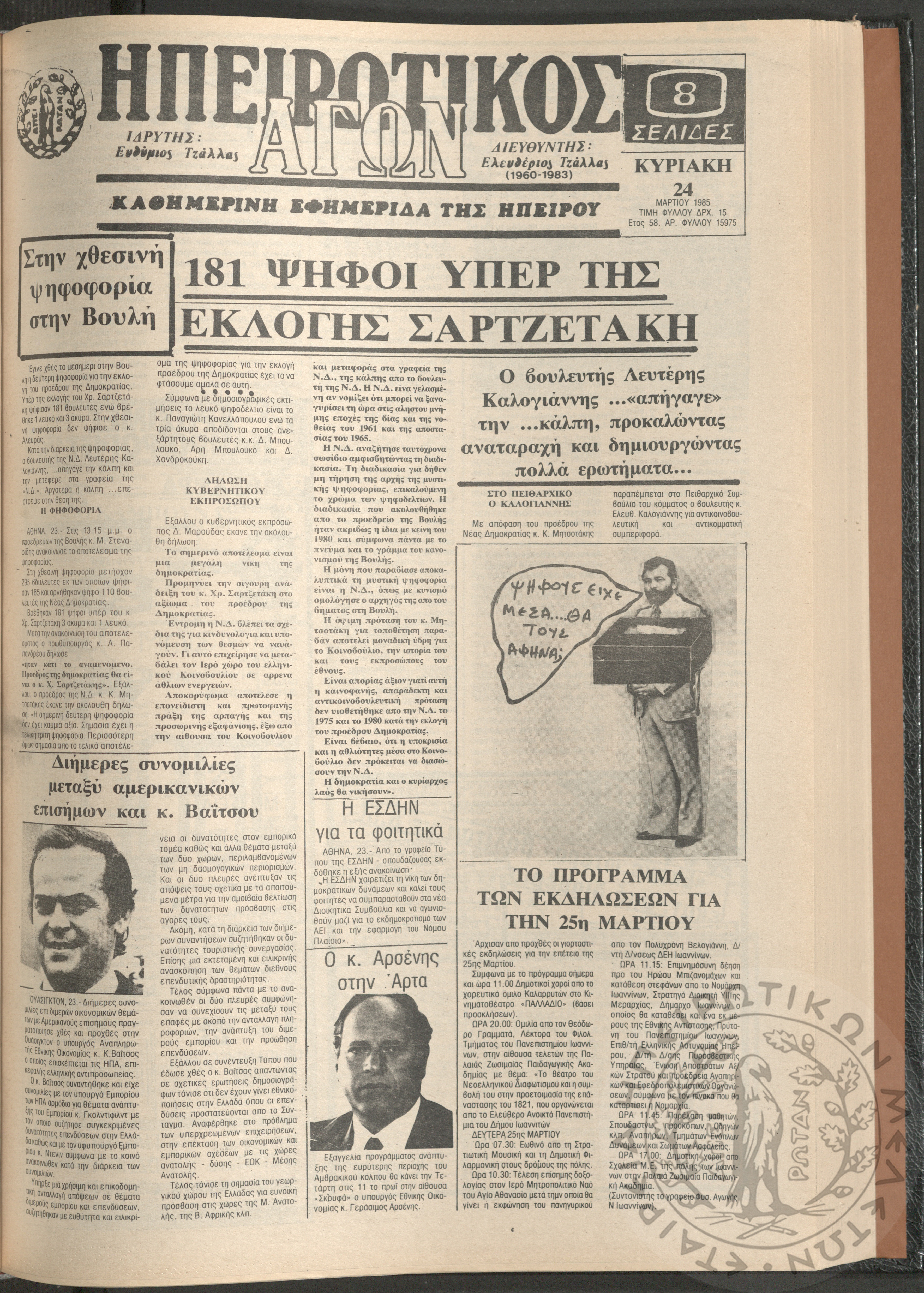 Ηπειρωτικός Αγών: η μεγαλυτέρα Ηπειρωτική εφημερίς εκδιδόμενη καθημερινώς εν Ιωαννίνοις, φ. 14695Έτος 54, φ. 14695...
