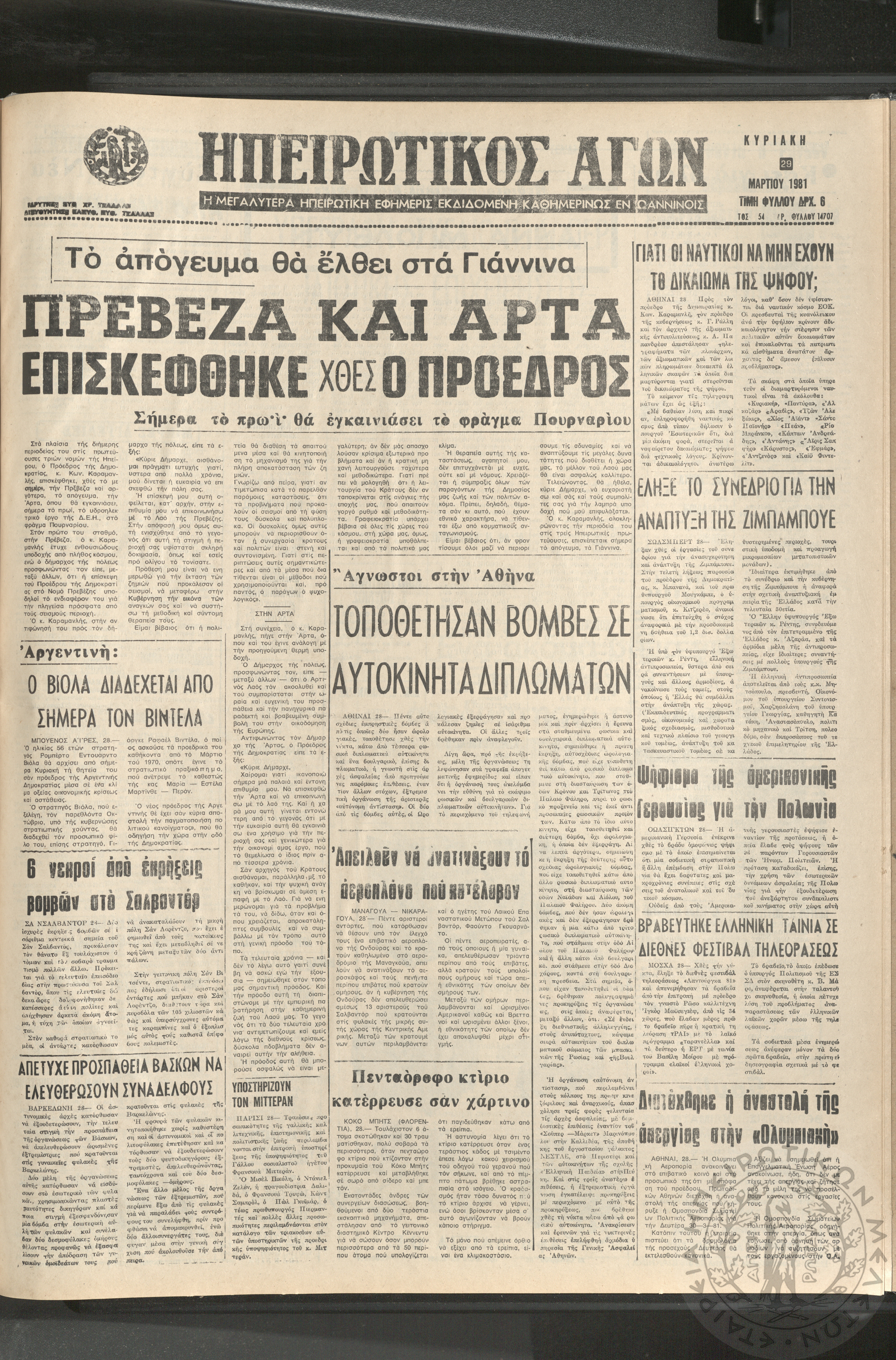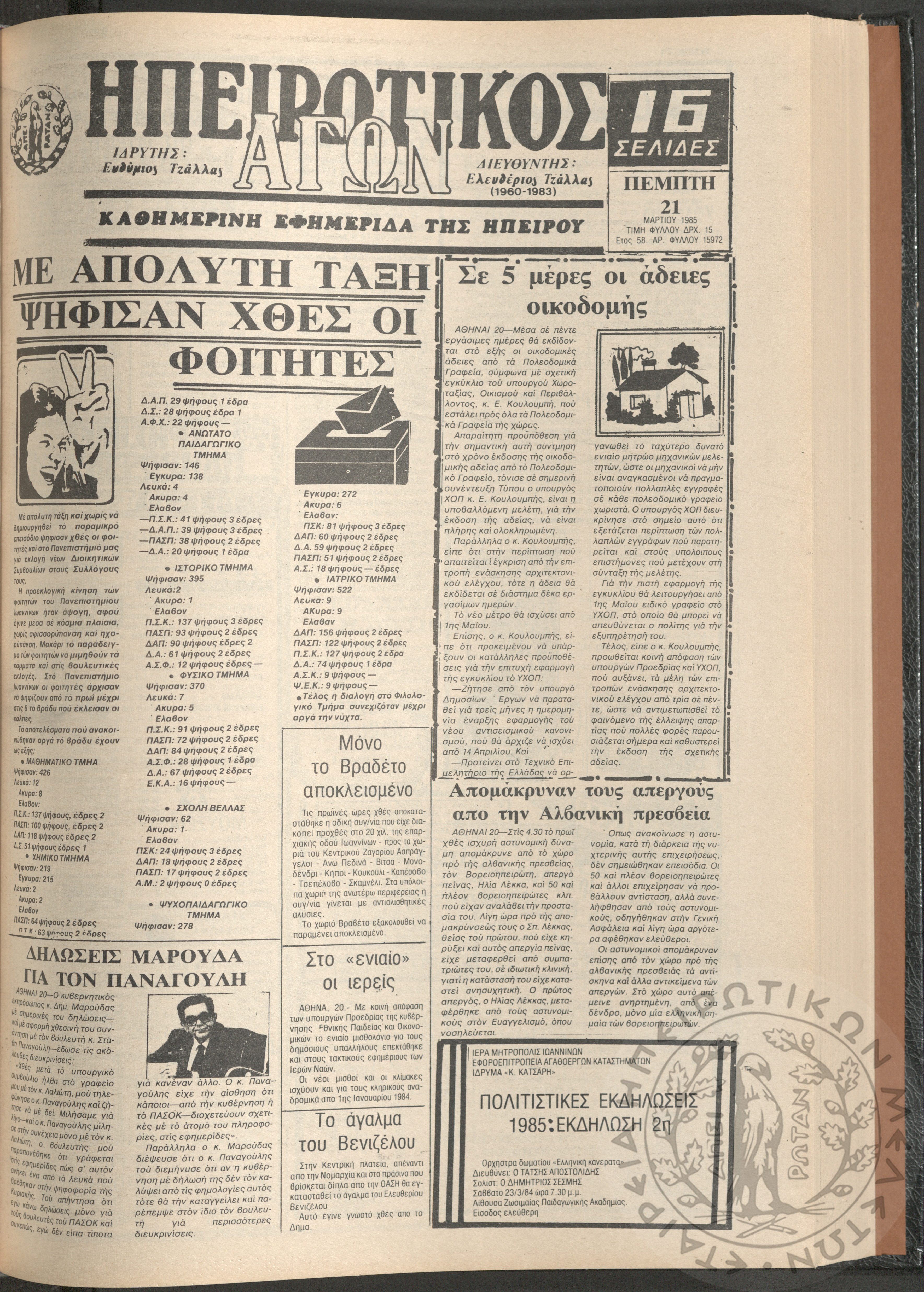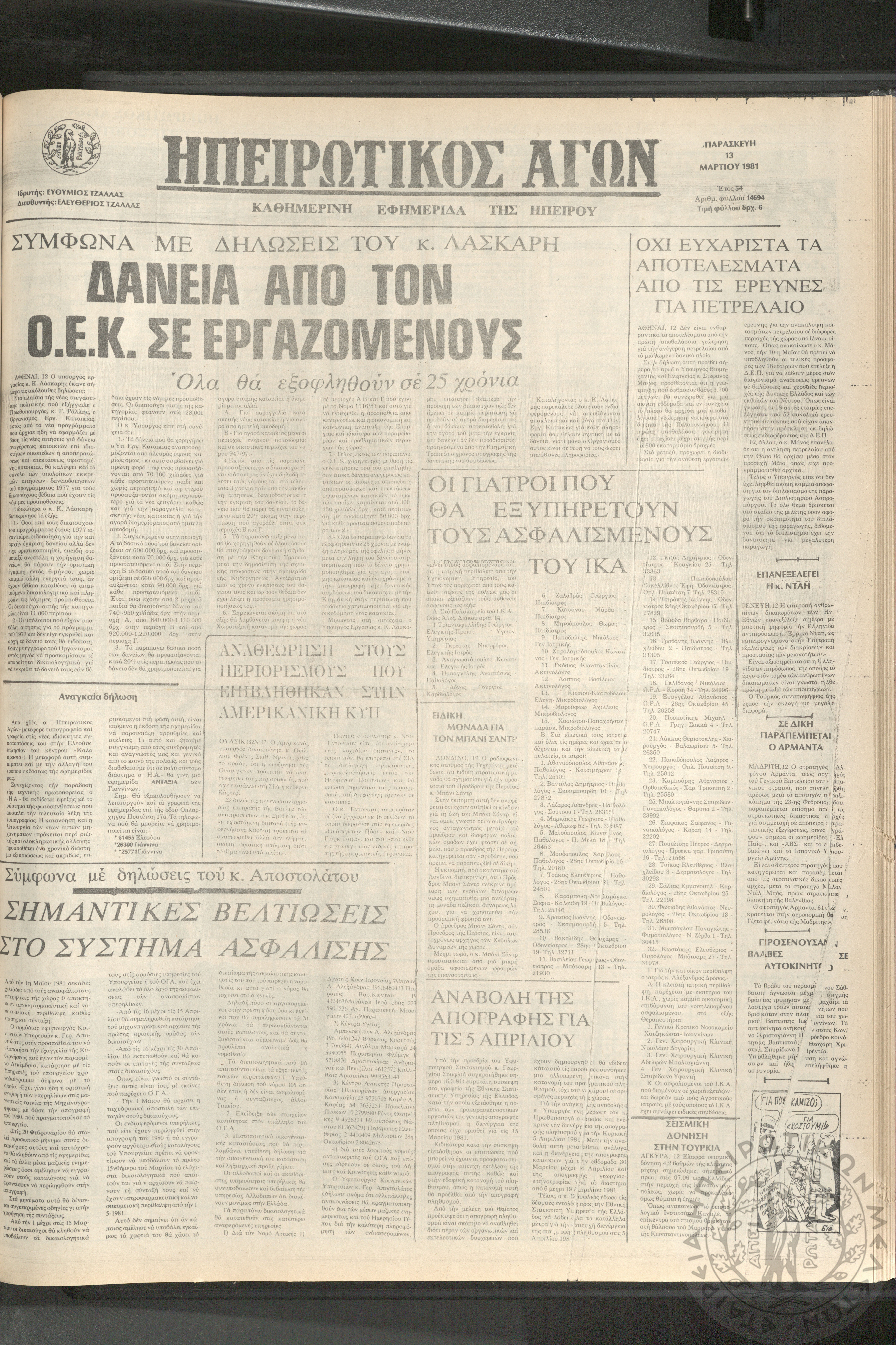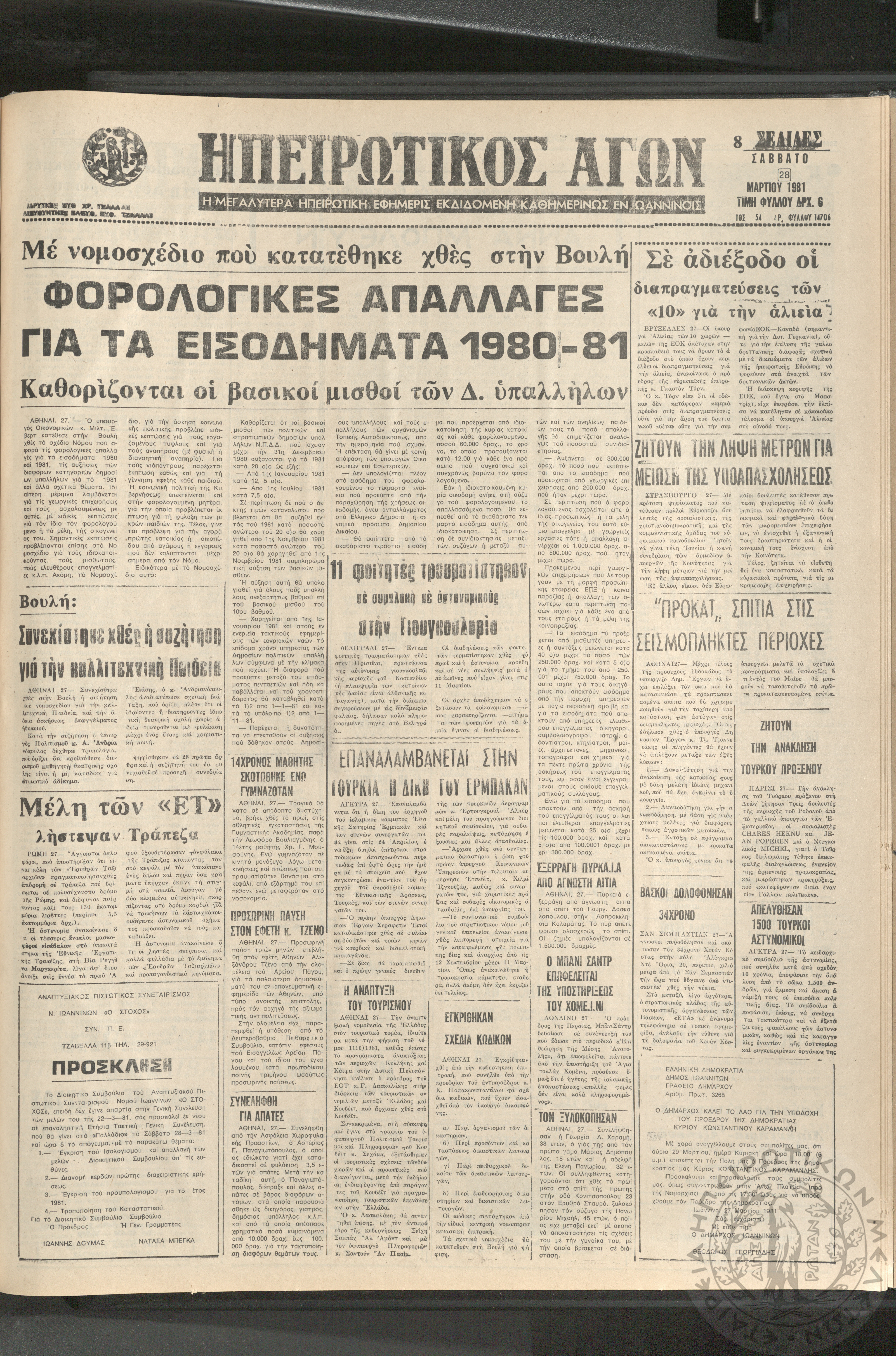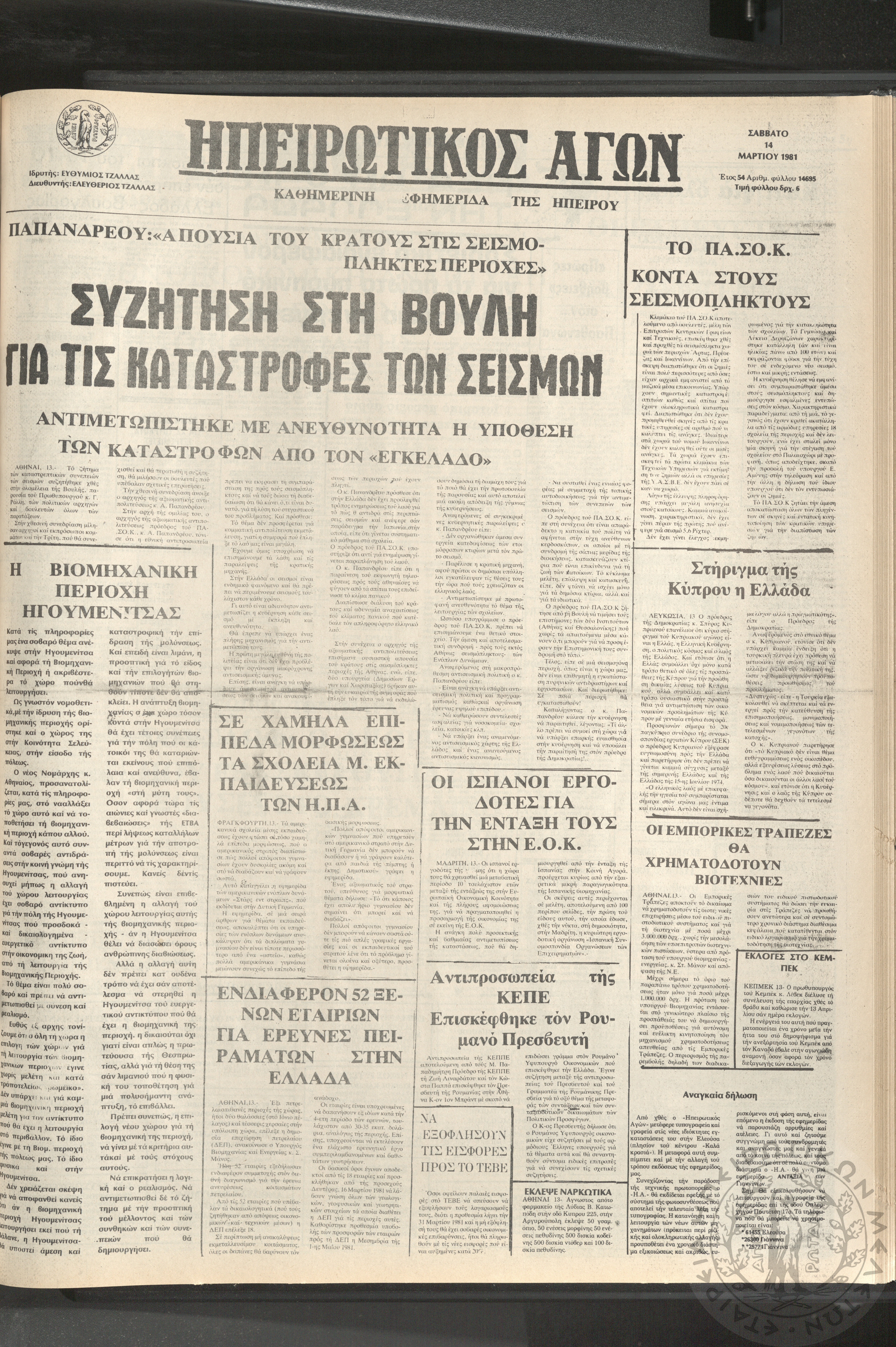 Ηπειρωτικός Αγών: η μεγαλυτέρα Ηπειρωτική εφημερίς εκδιδόμενη καθημερινώς εν Ιωαννίνοις, φ. 14700Έτος 54, φ. 14700...