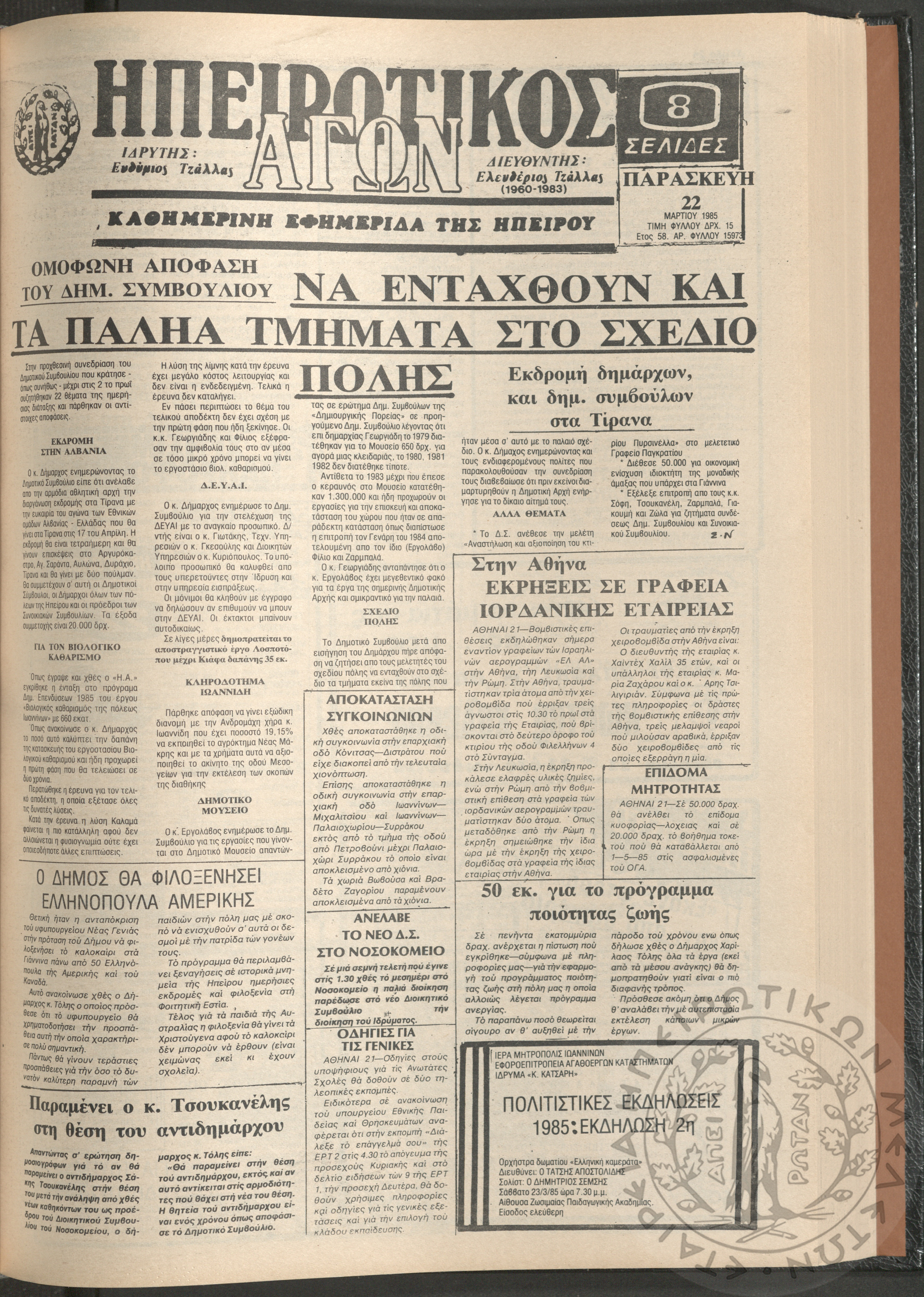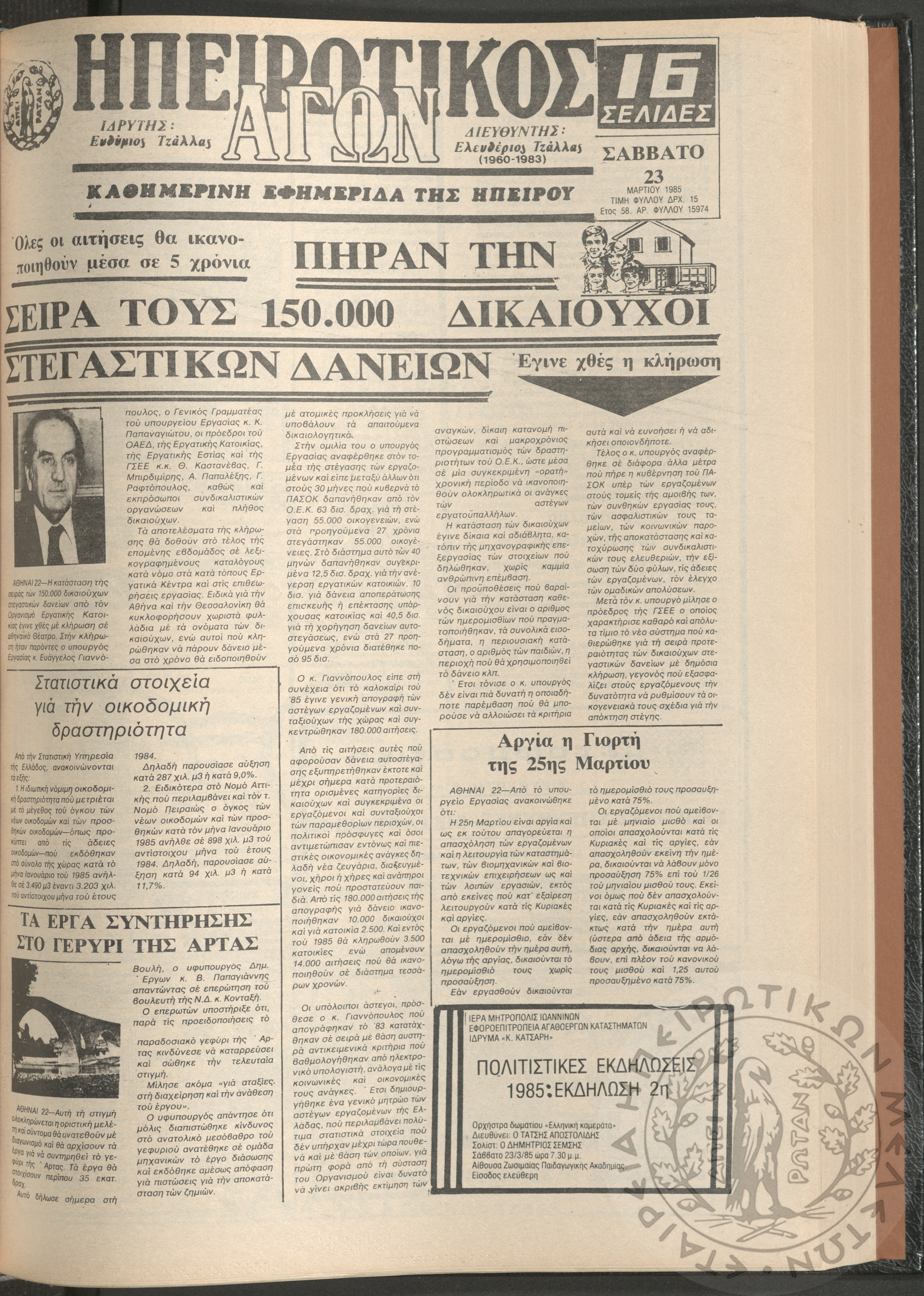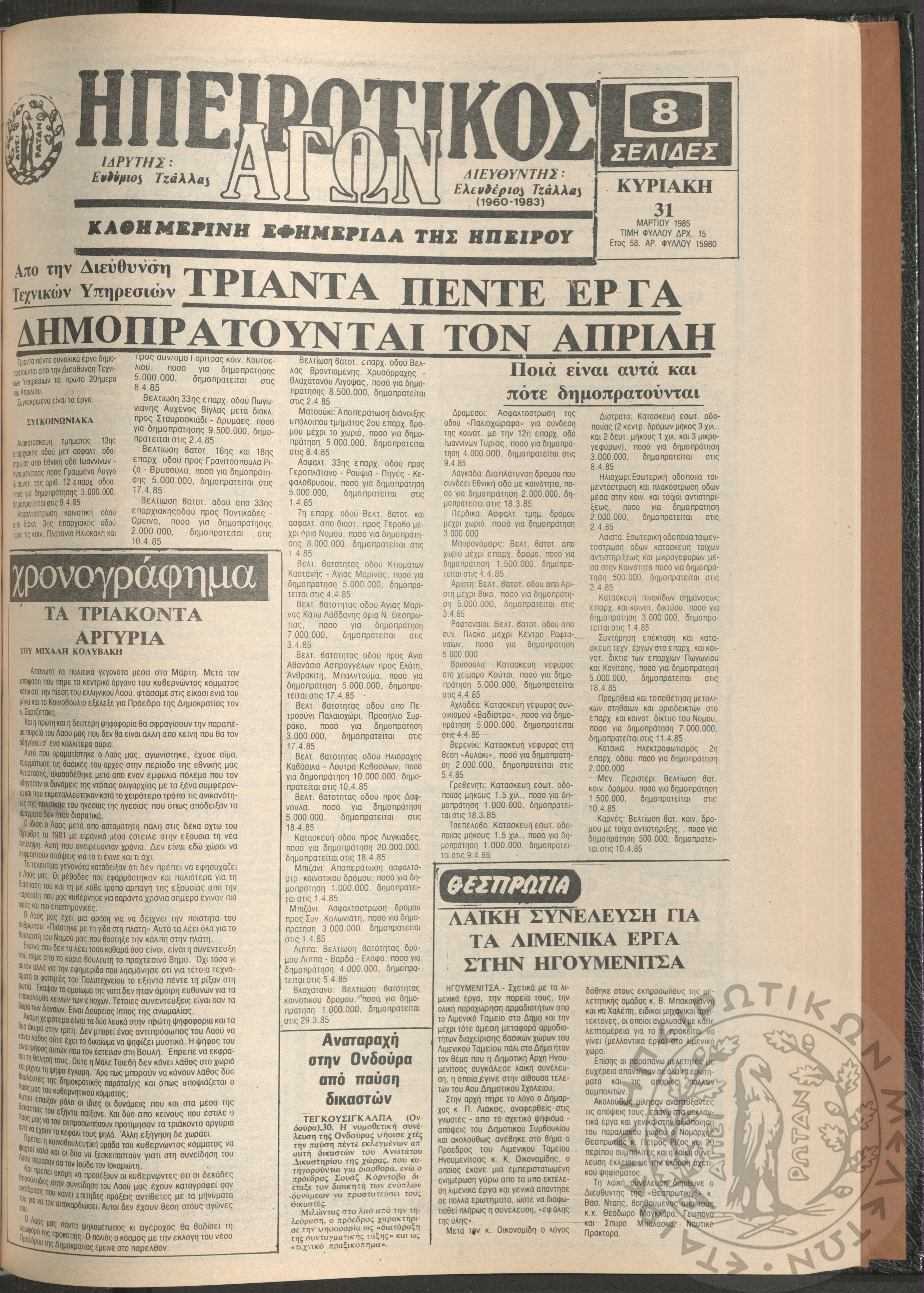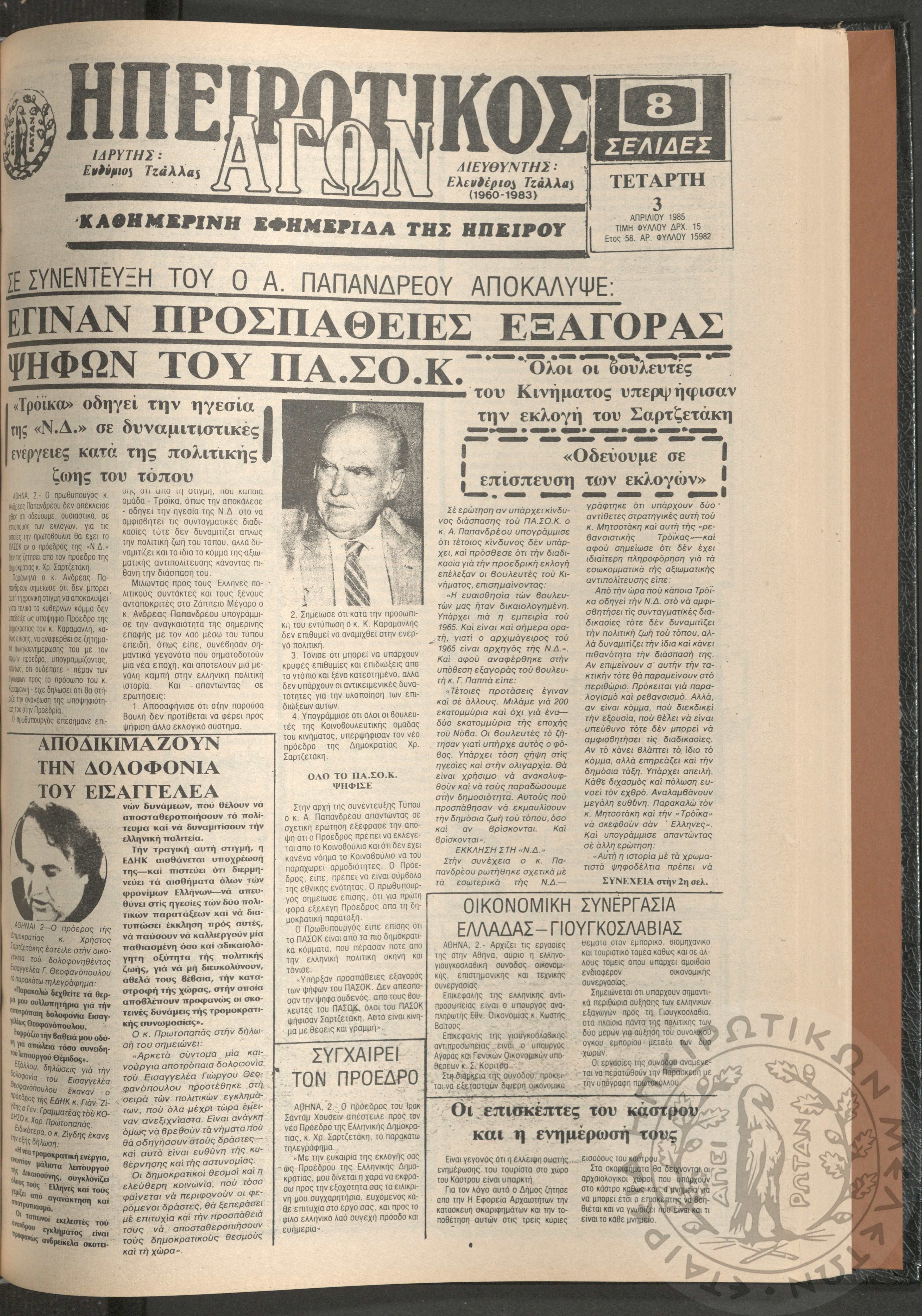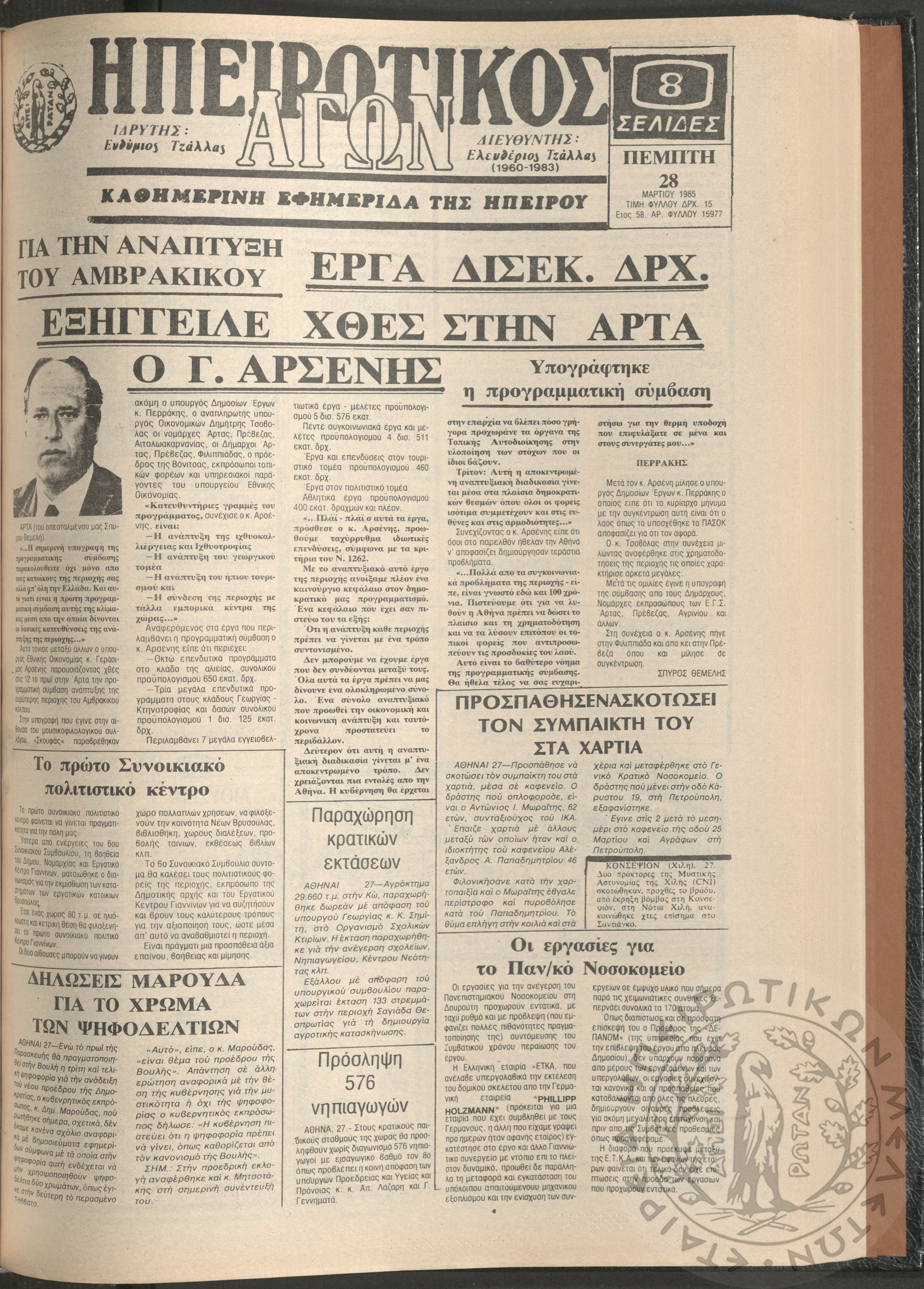 Ηπειρωτικός Αγών: η μεγαλυτέρα Ηπειρωτική εφημερίς εκδιδόμενη καθημερινώς εν Ιωαννίνοις, φ. 14700Έτος 54, φ. 14700...