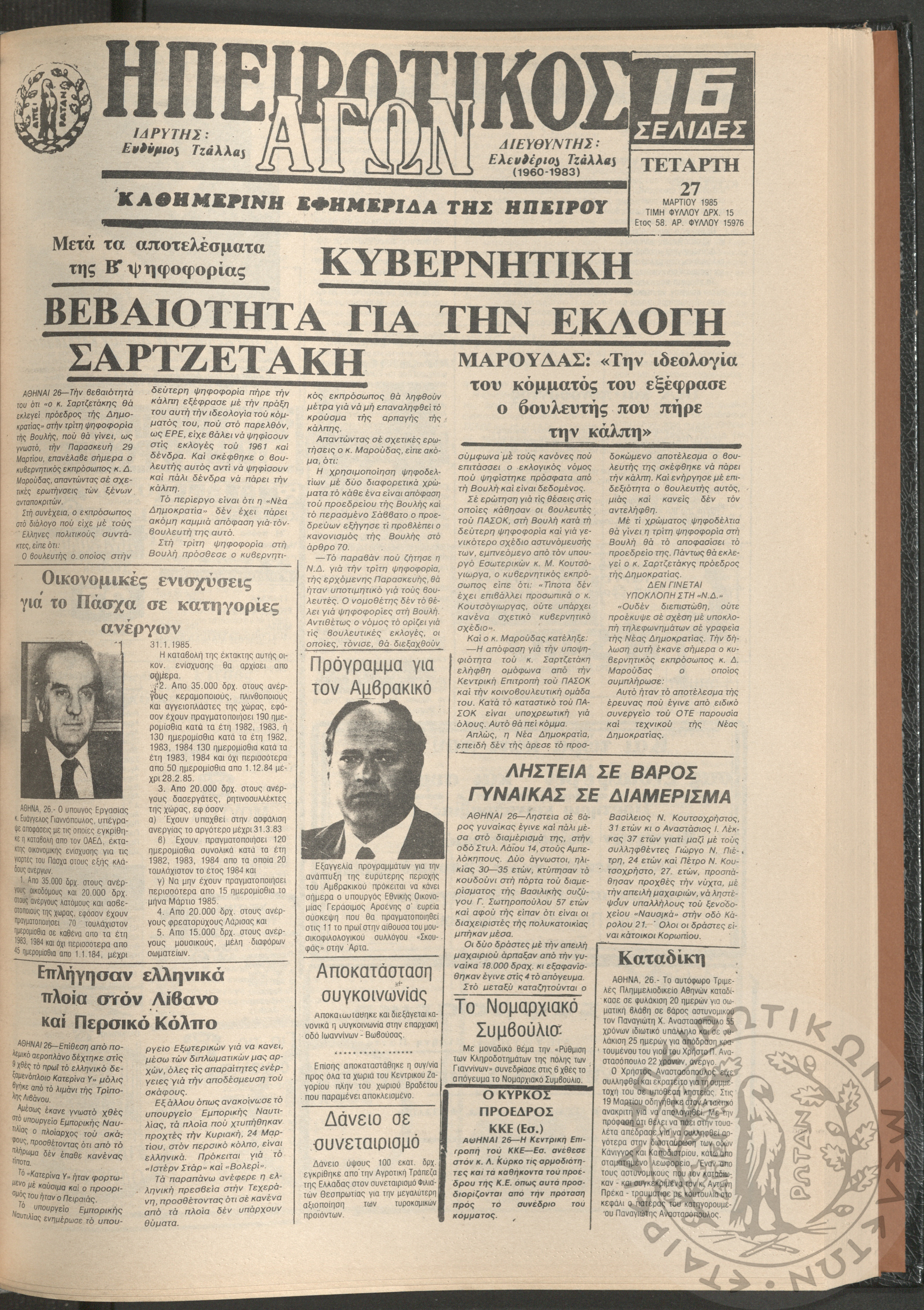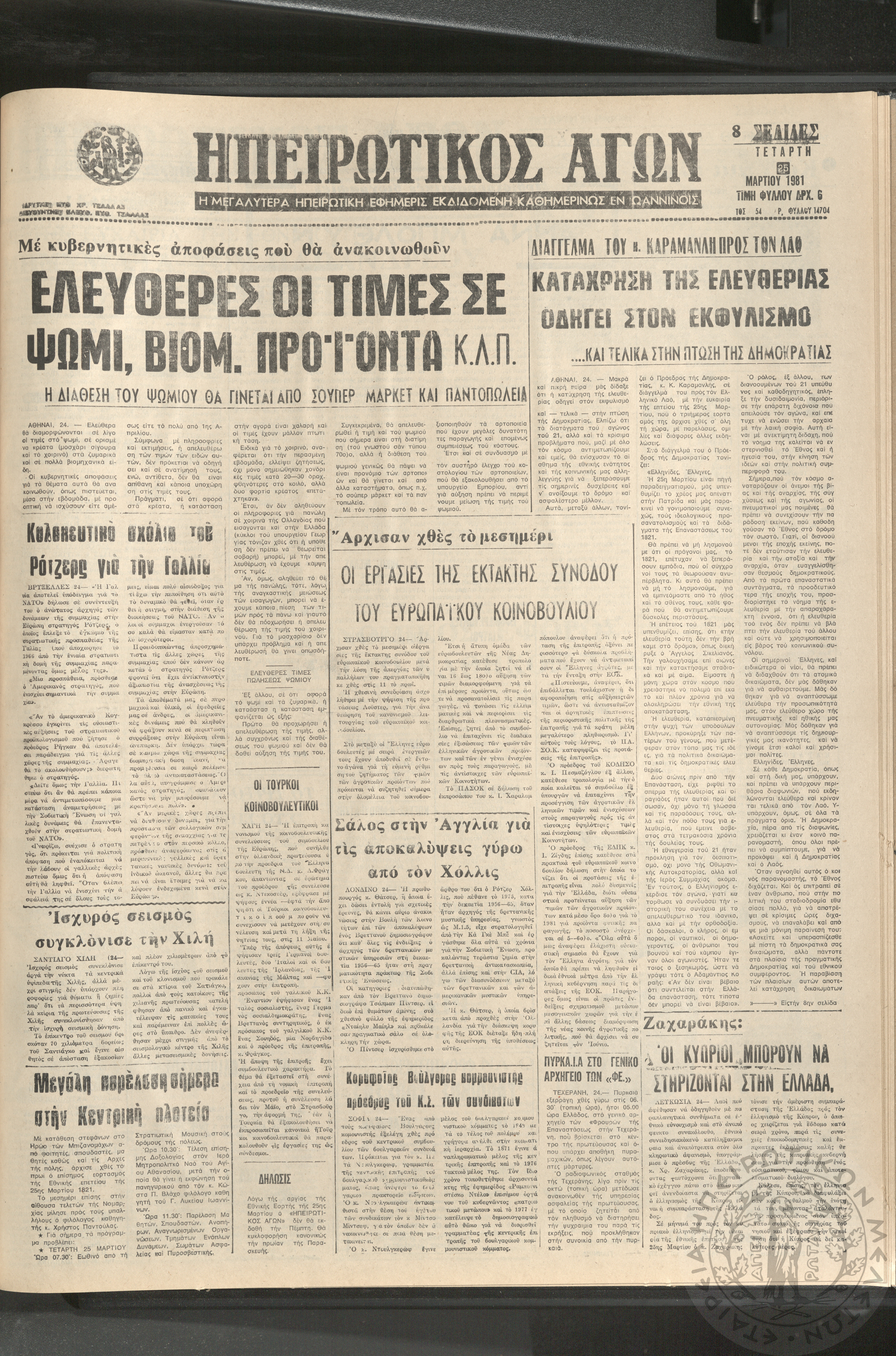 Ηπειρωτικός Αγών: η μεγαλυτέρα Ηπειρωτική εφημερίς εκδιδόμενη καθημερινώς εν Ιωαννίνοις, φ. 14707Έτος 54, φ. 14707...