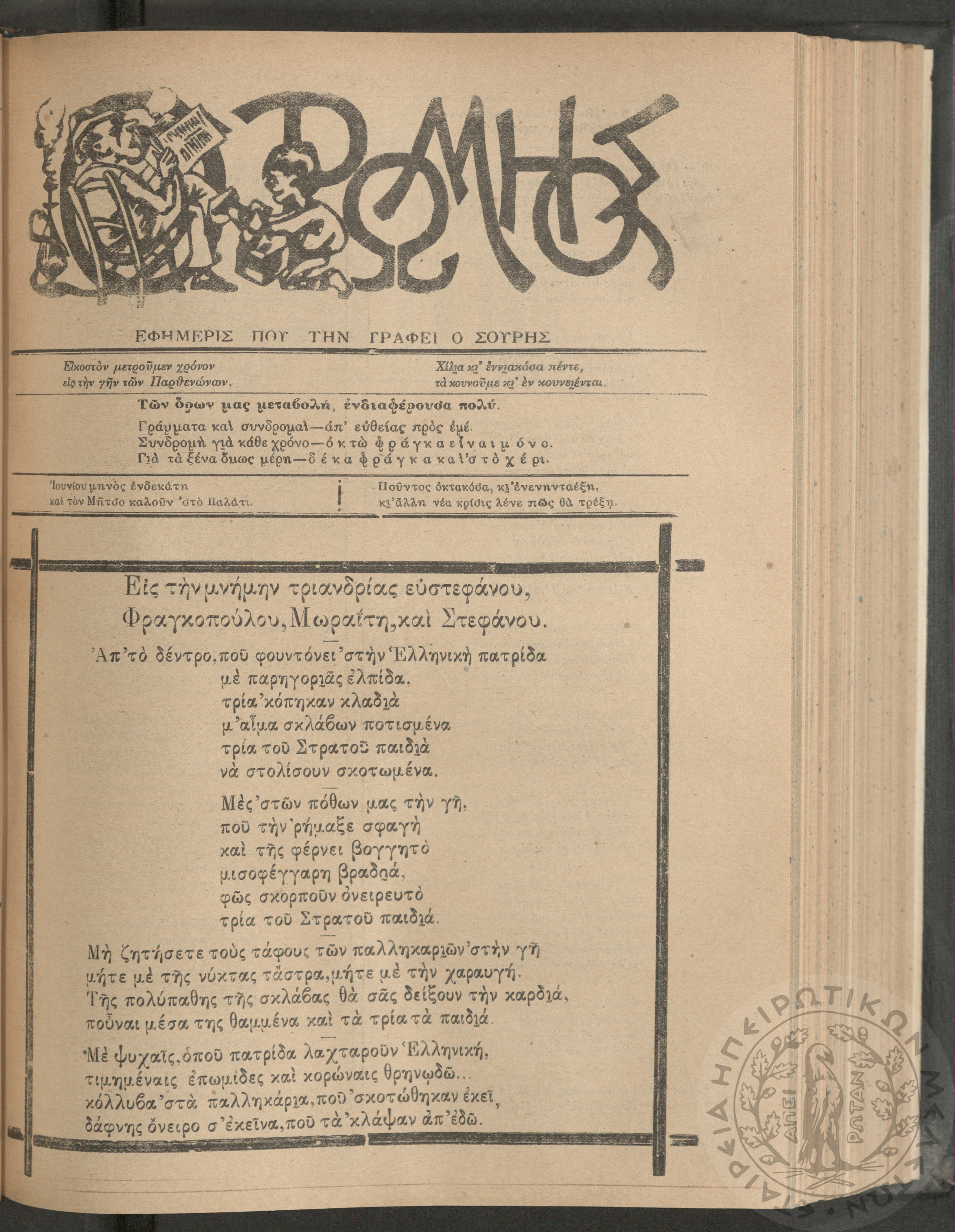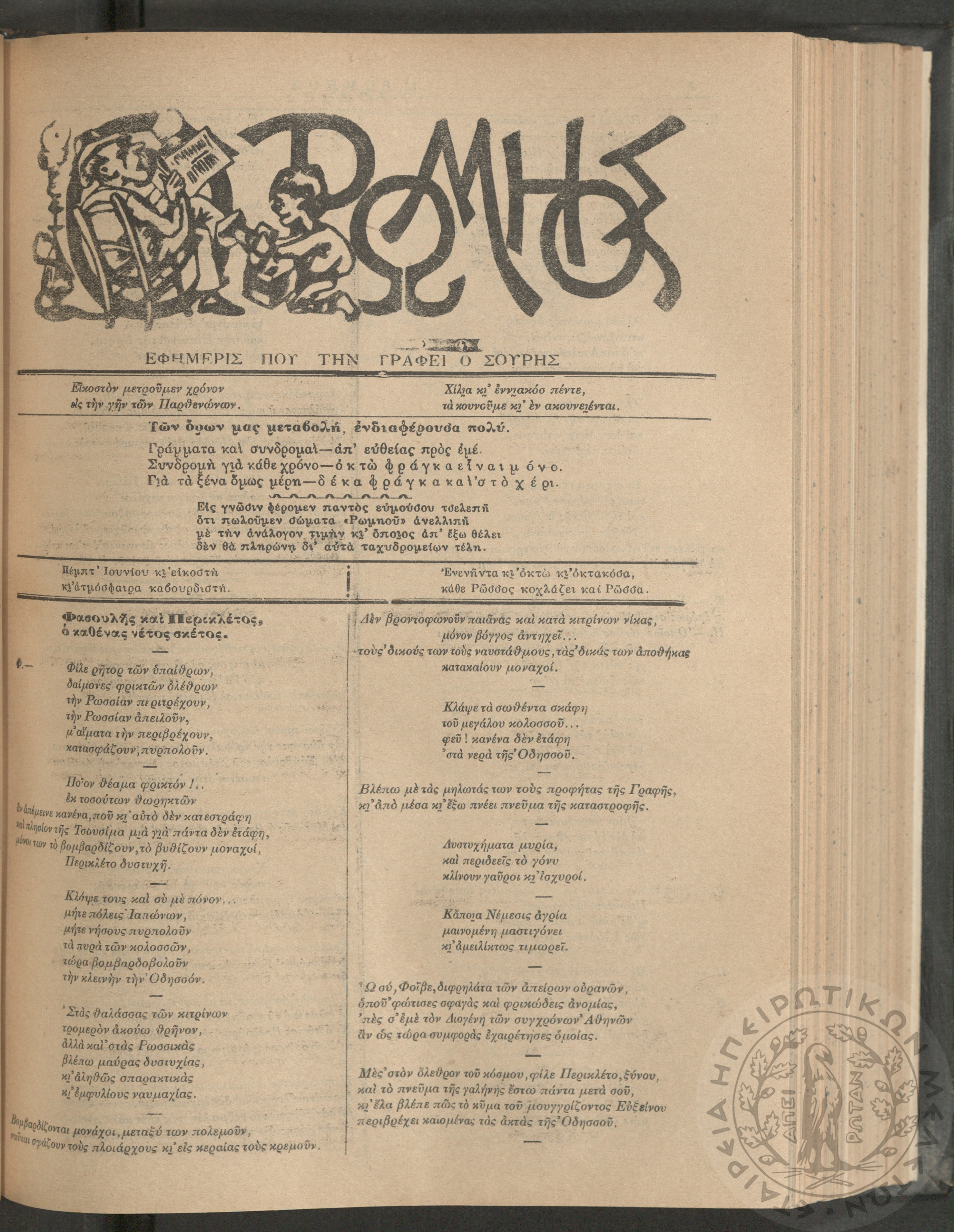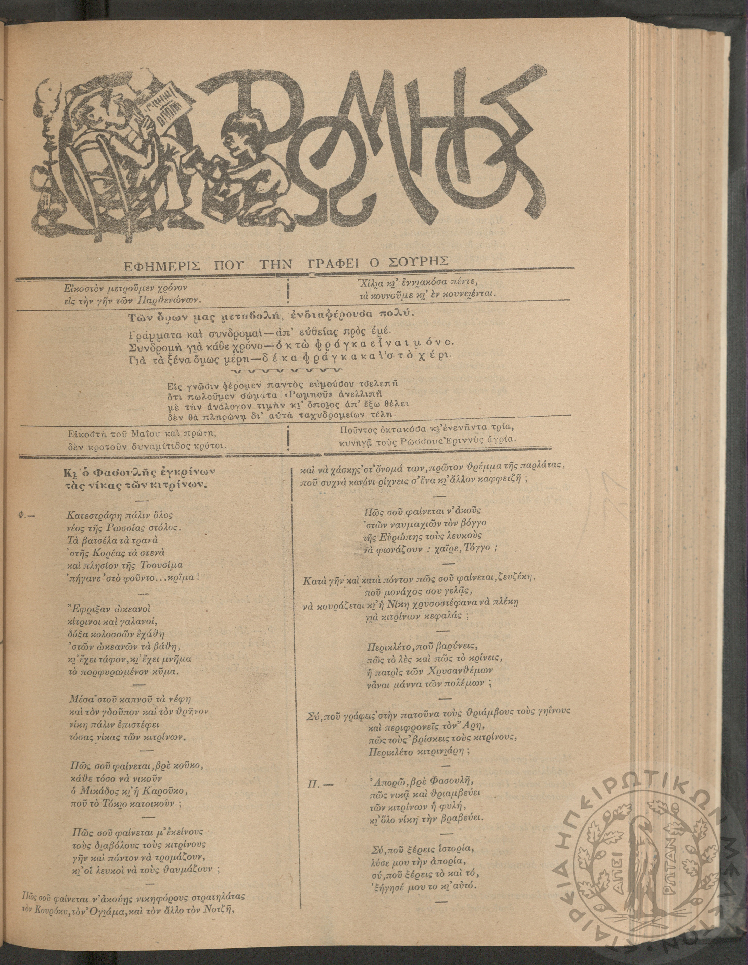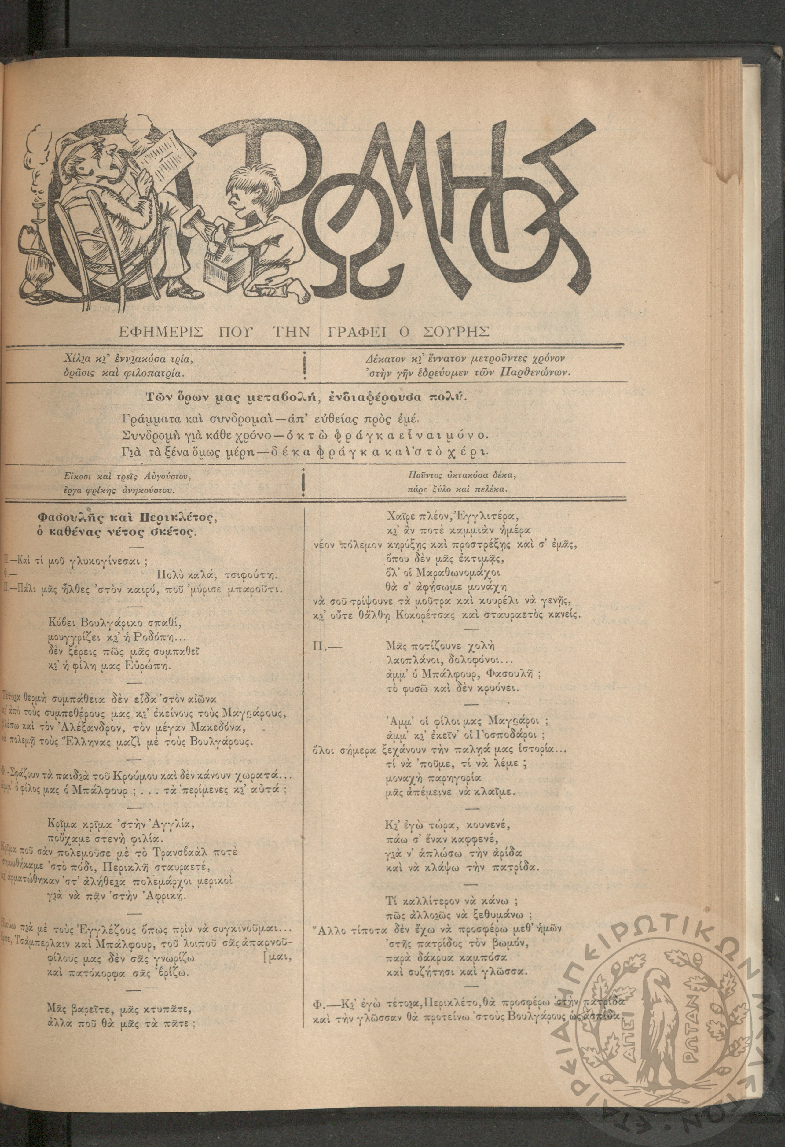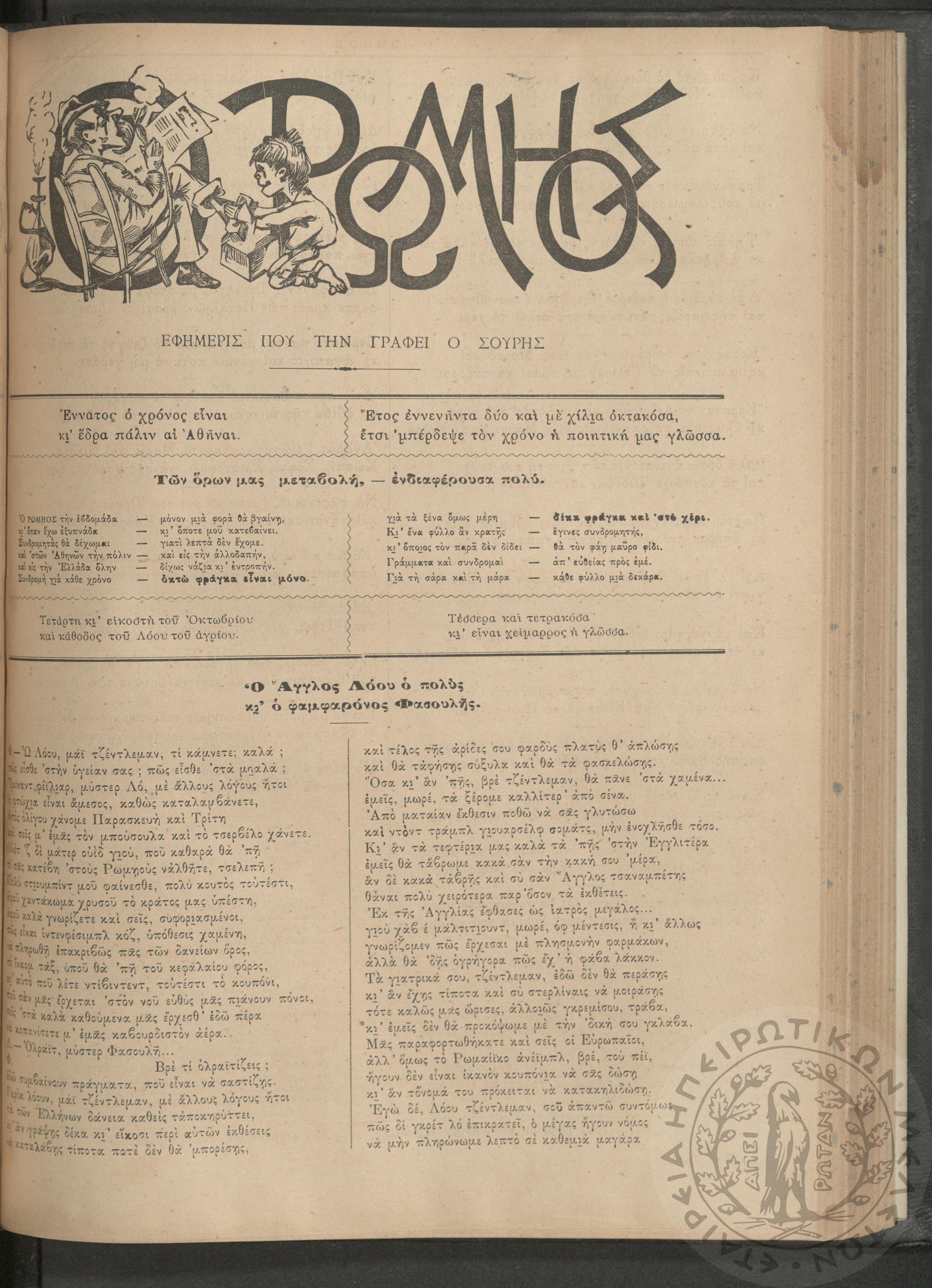 Ο Ρωμηός: Εφημερίς που την γράφει ο Σουρής, 1905, φ. 907