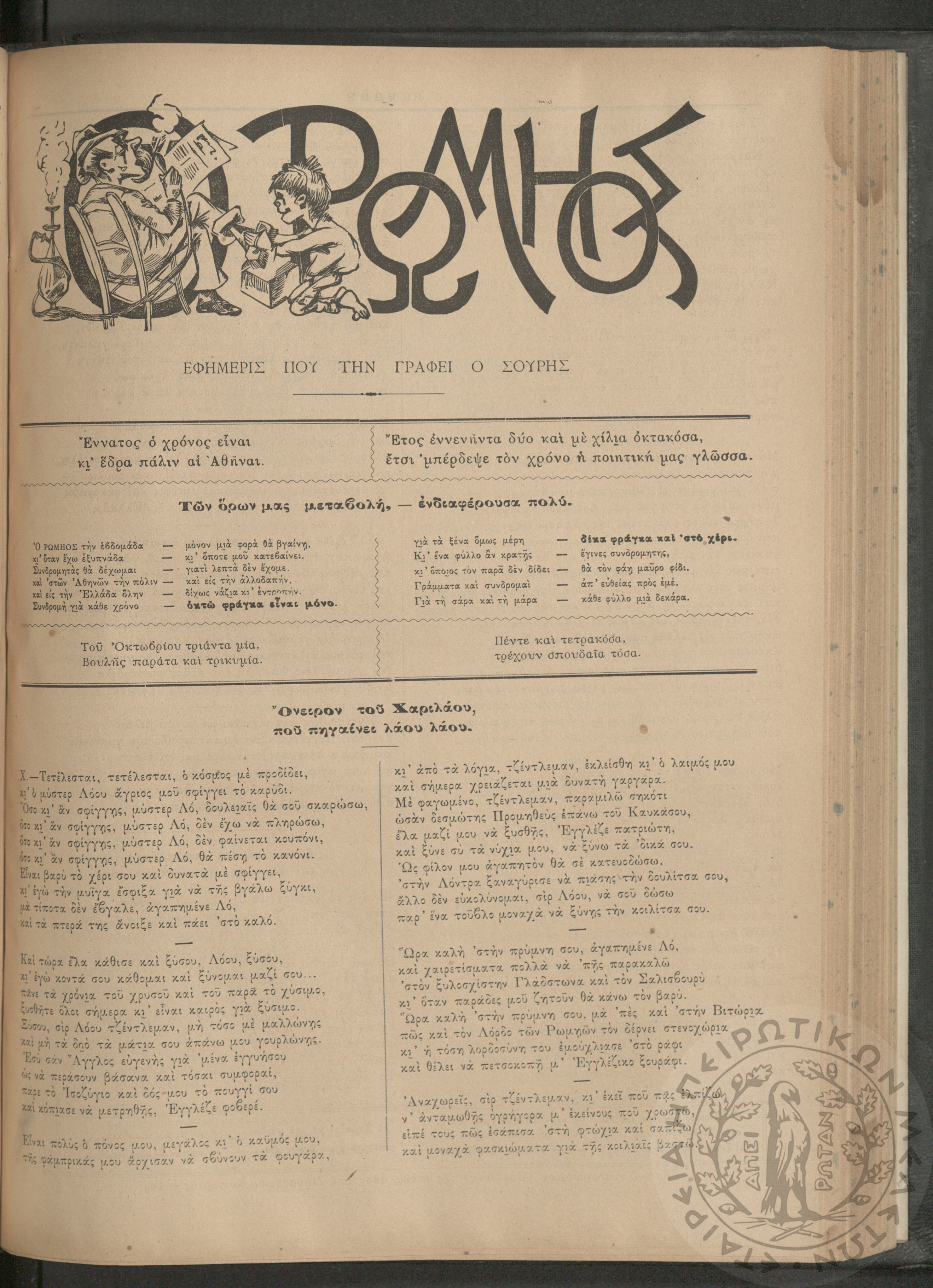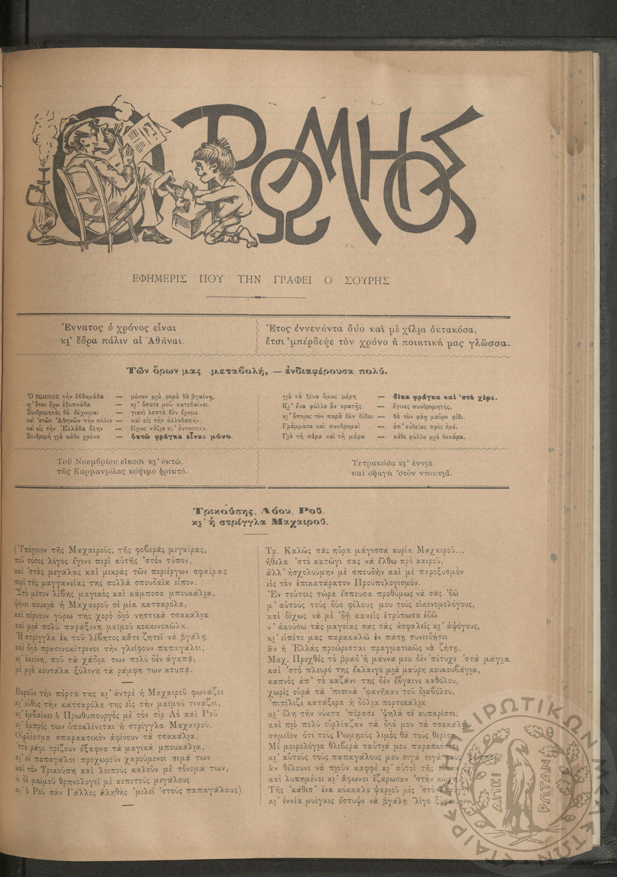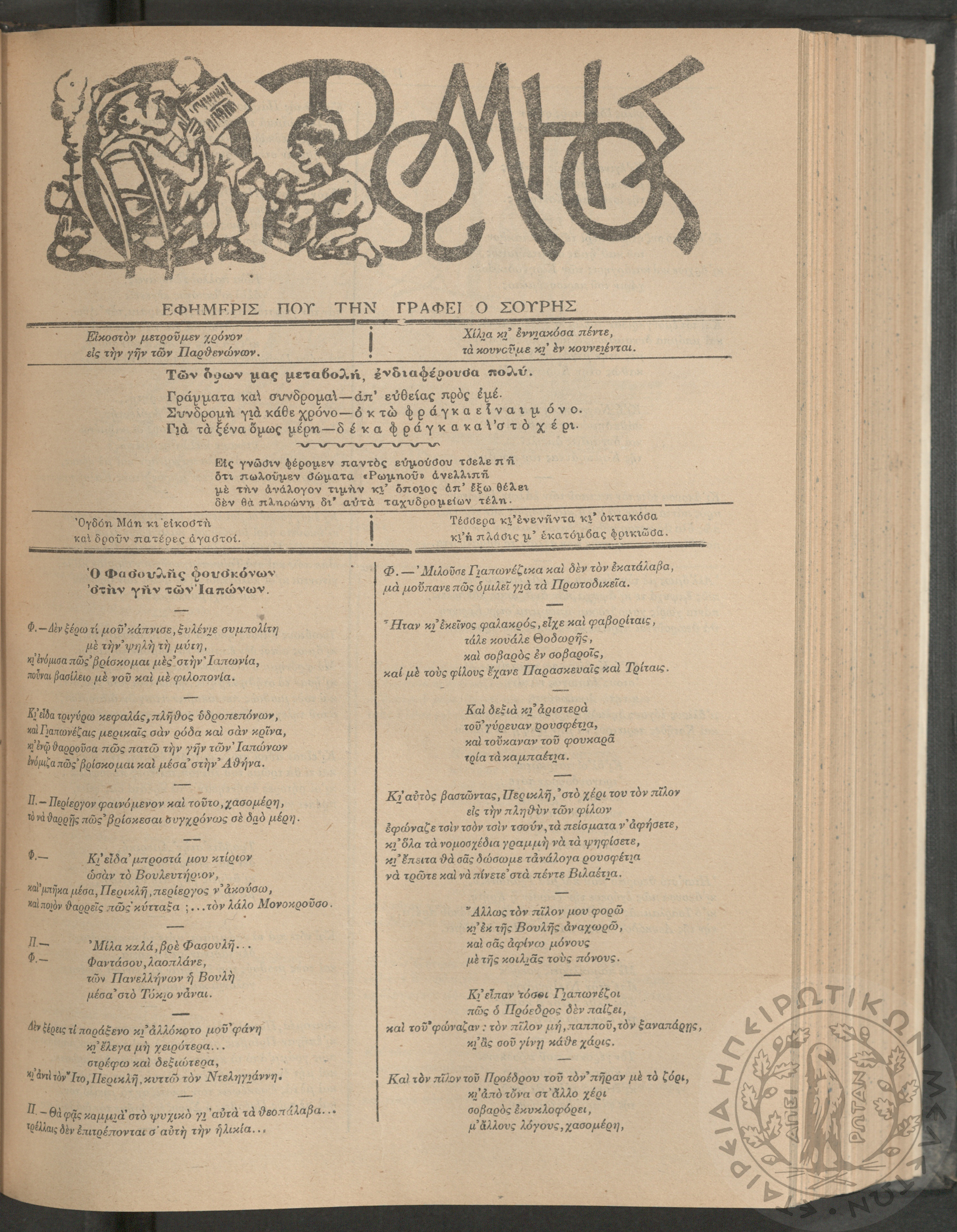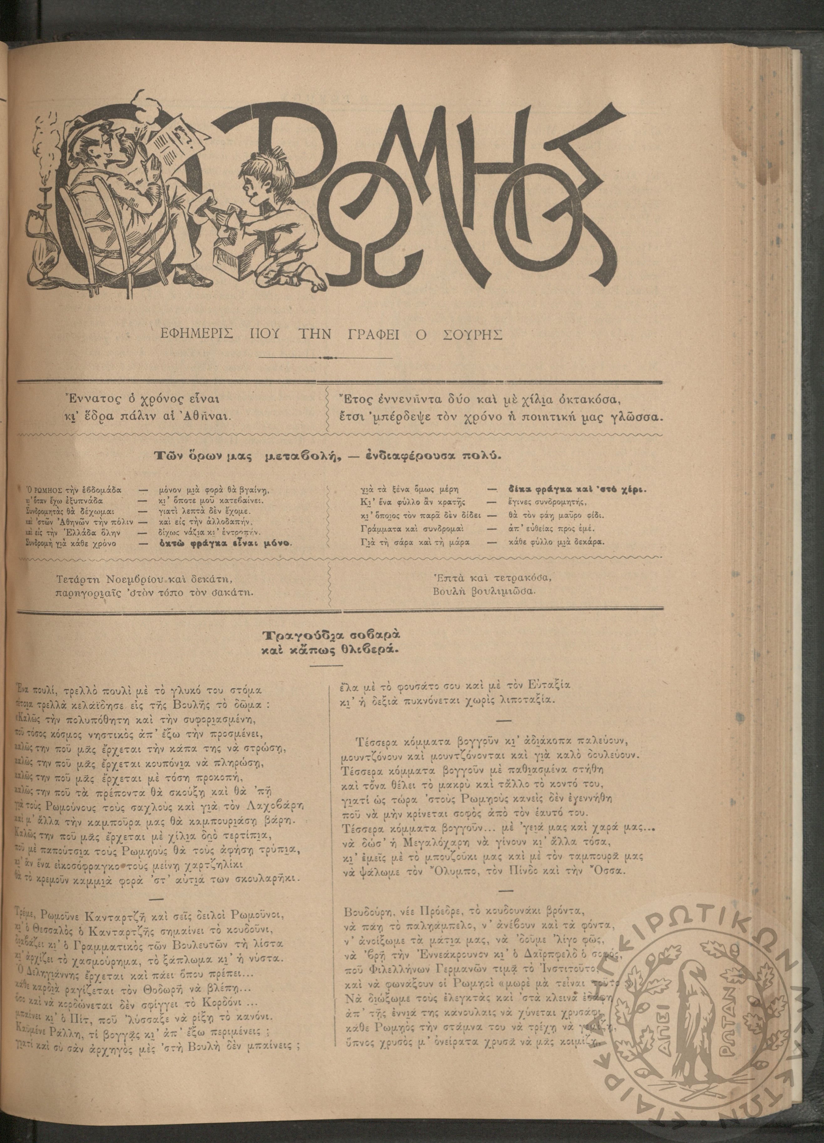 Ο Ρωμηός: Εφημερίς που την γράφει ο Σουρής, 1905, φ. 906