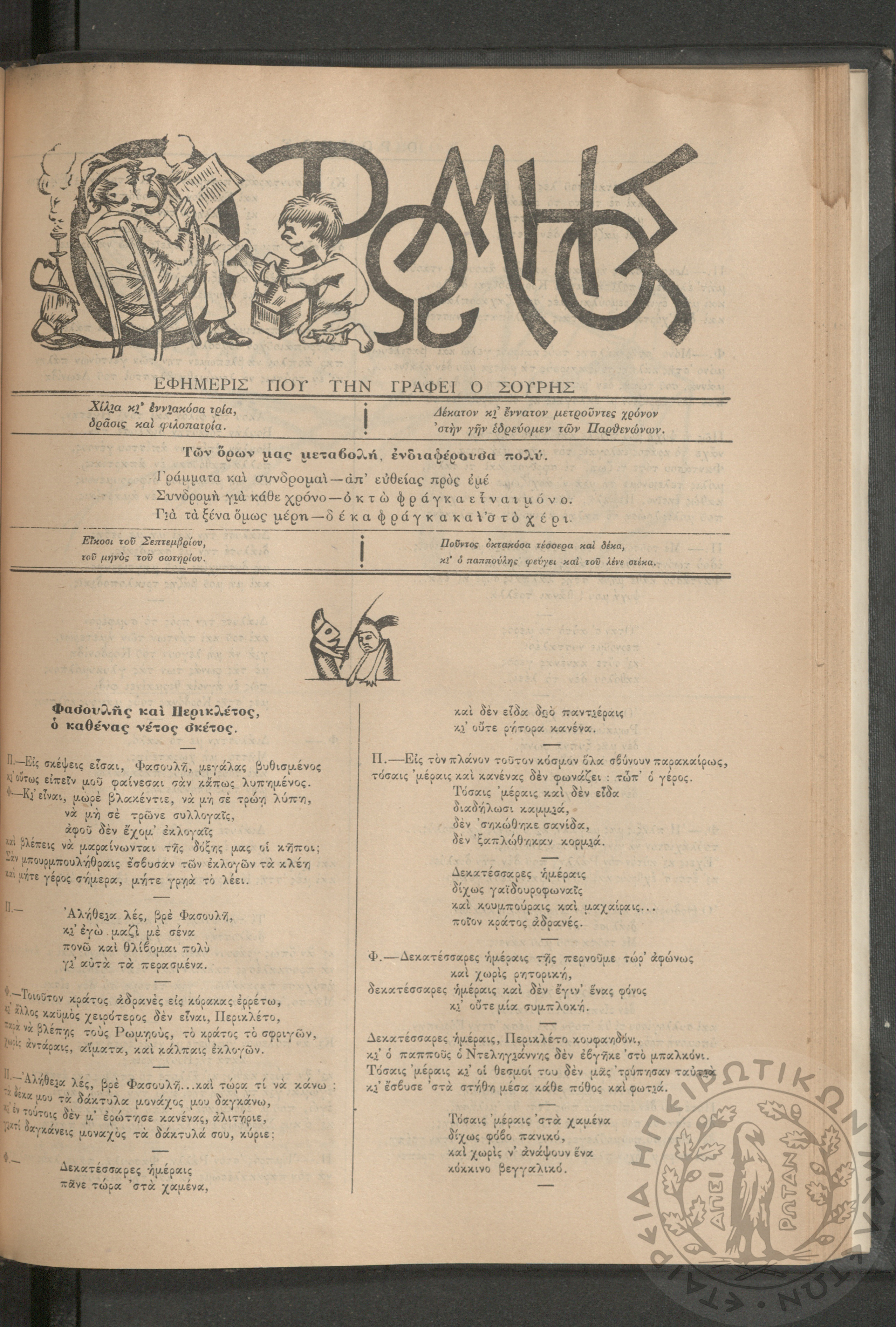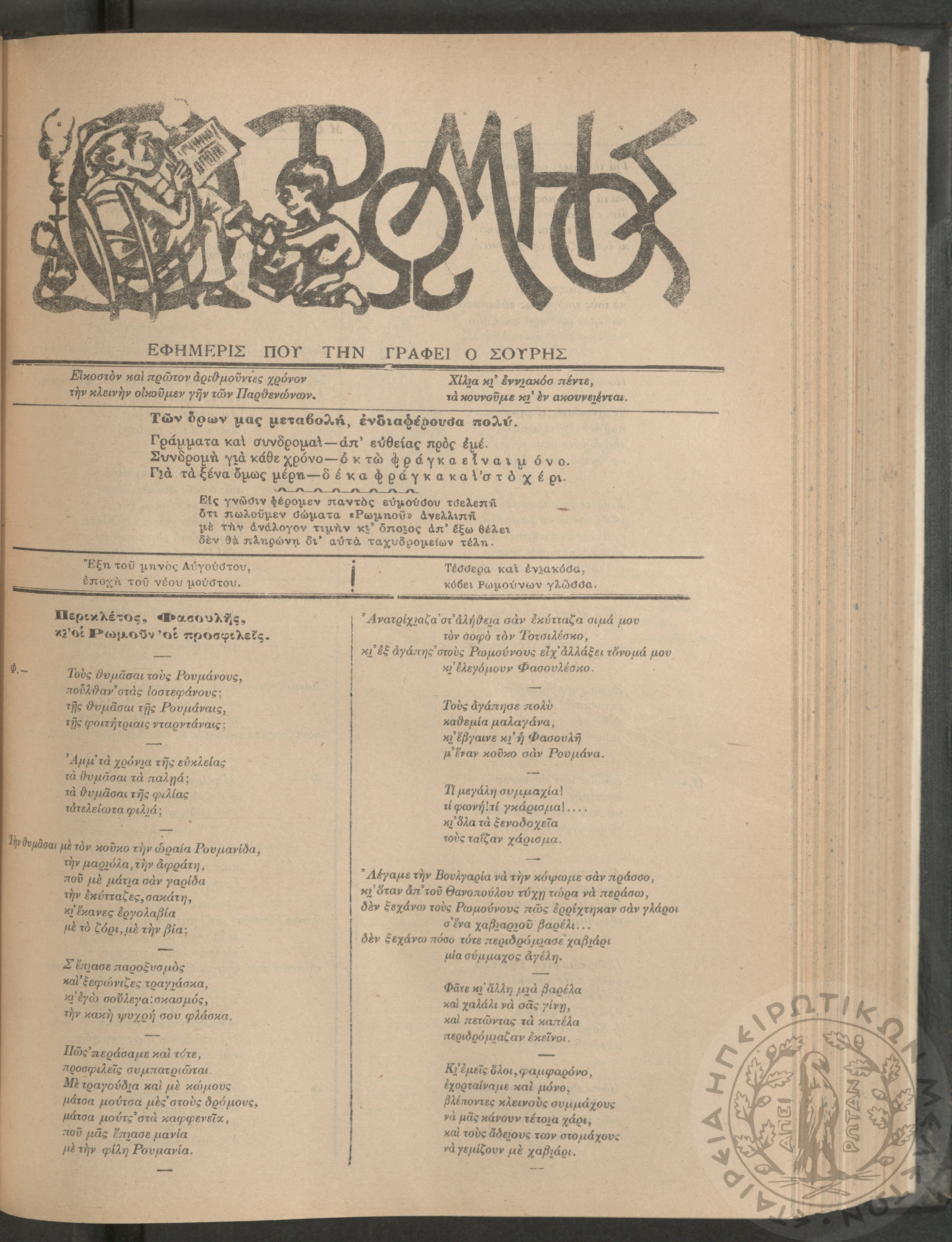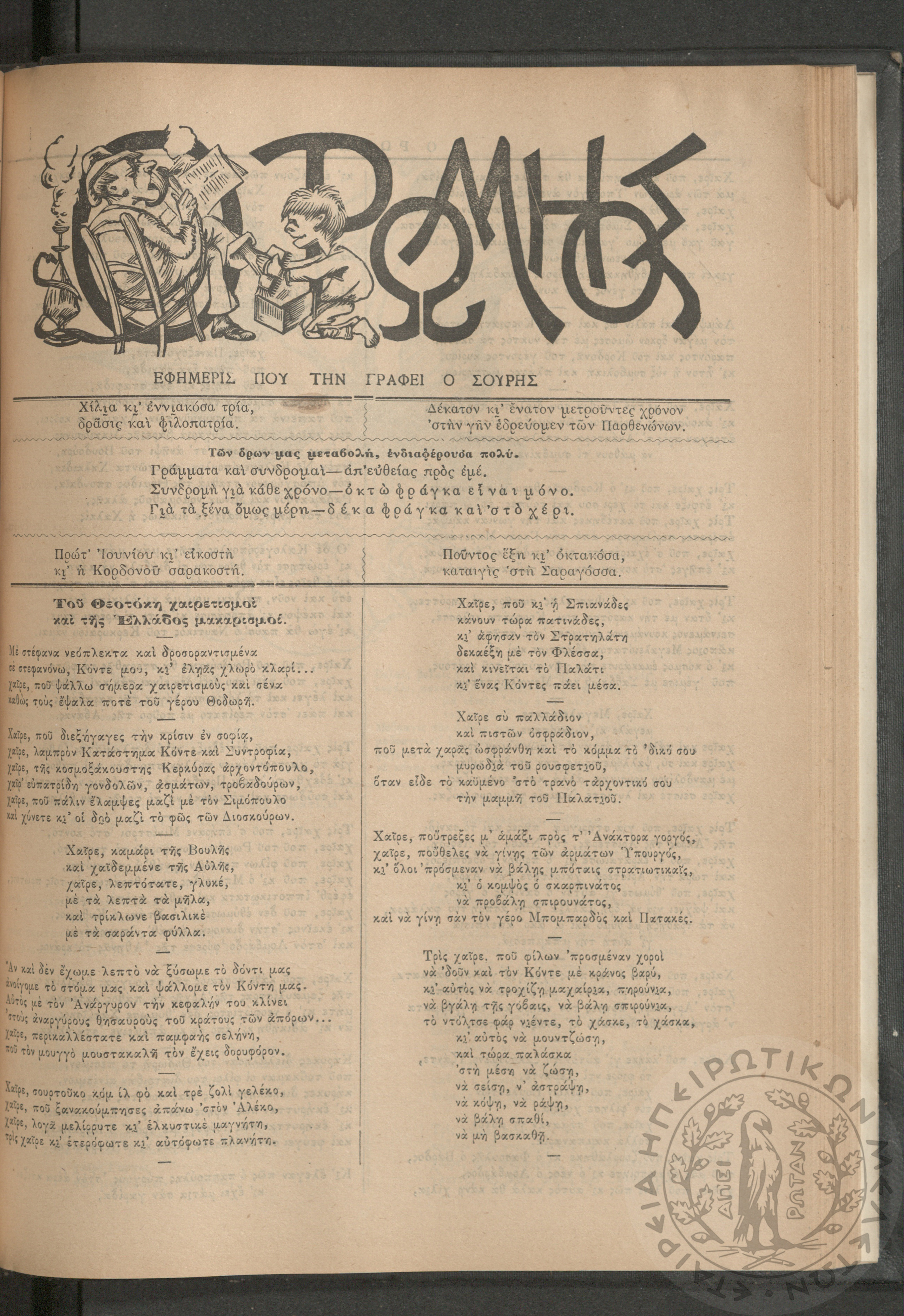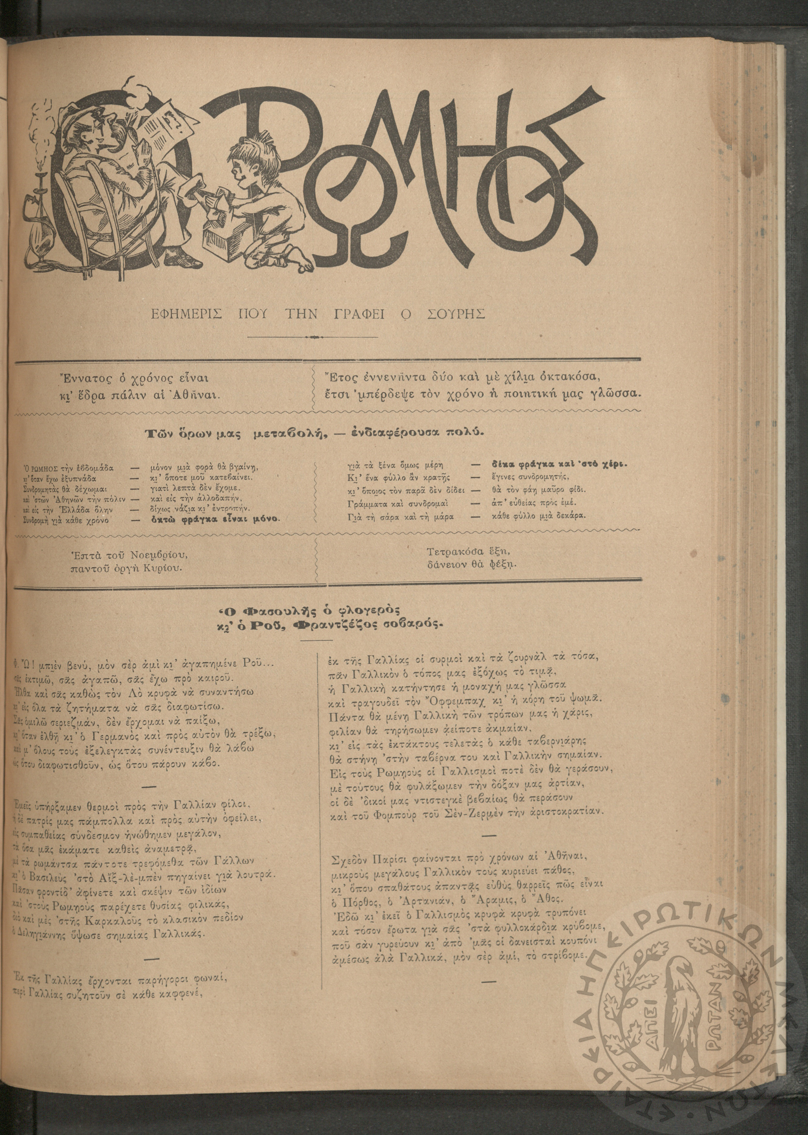 Ο Ρωμηός: Εφημερίς που την γράφει ο Σουρής, 1905, φ. 906