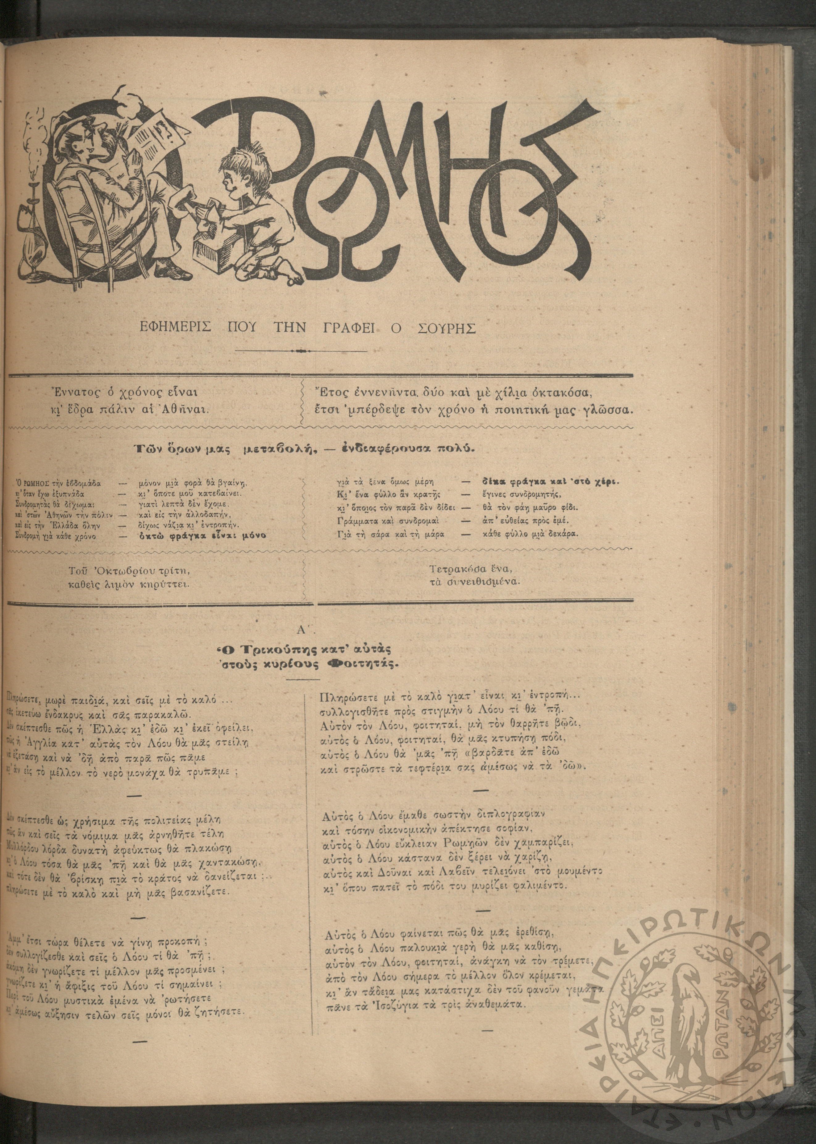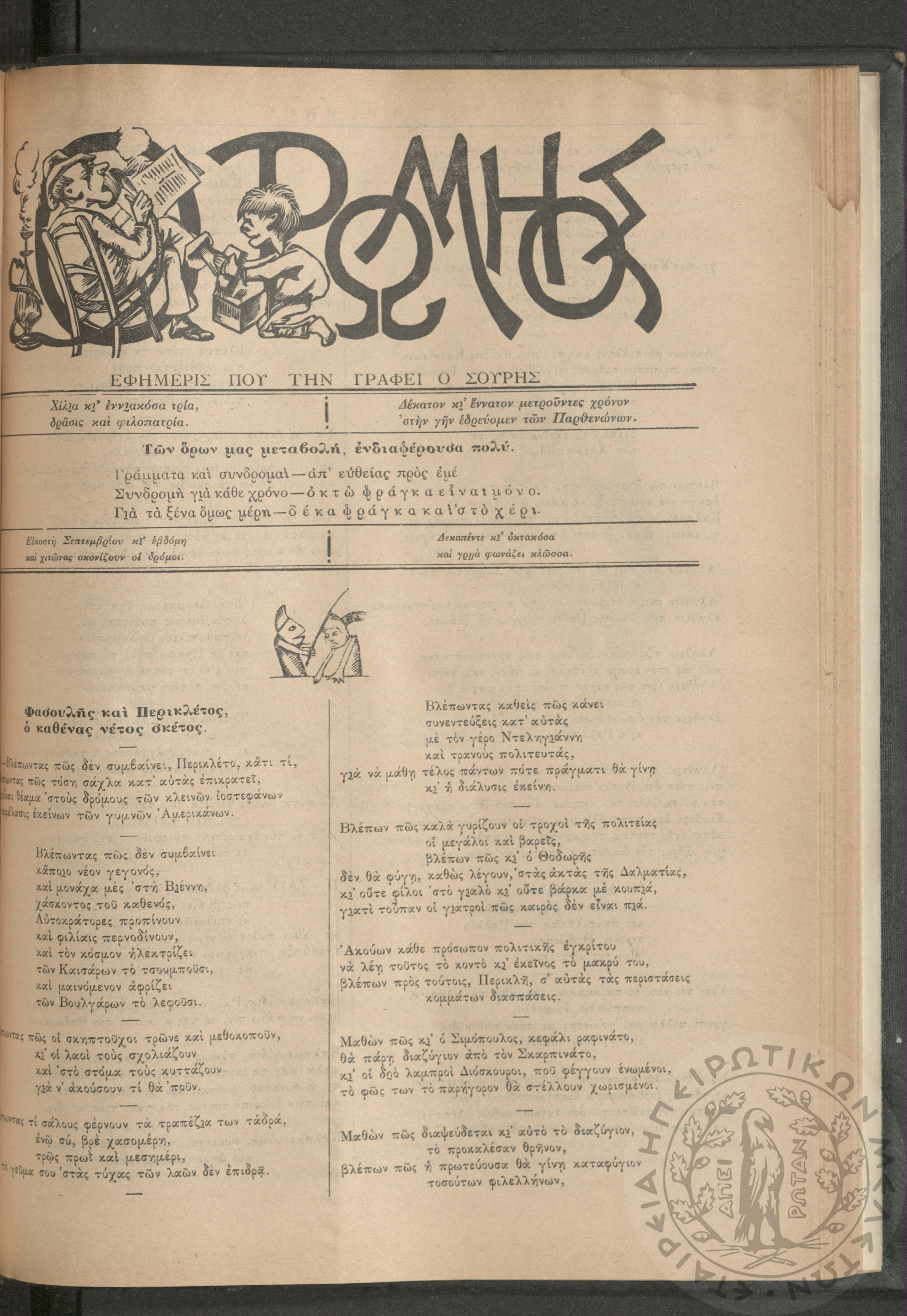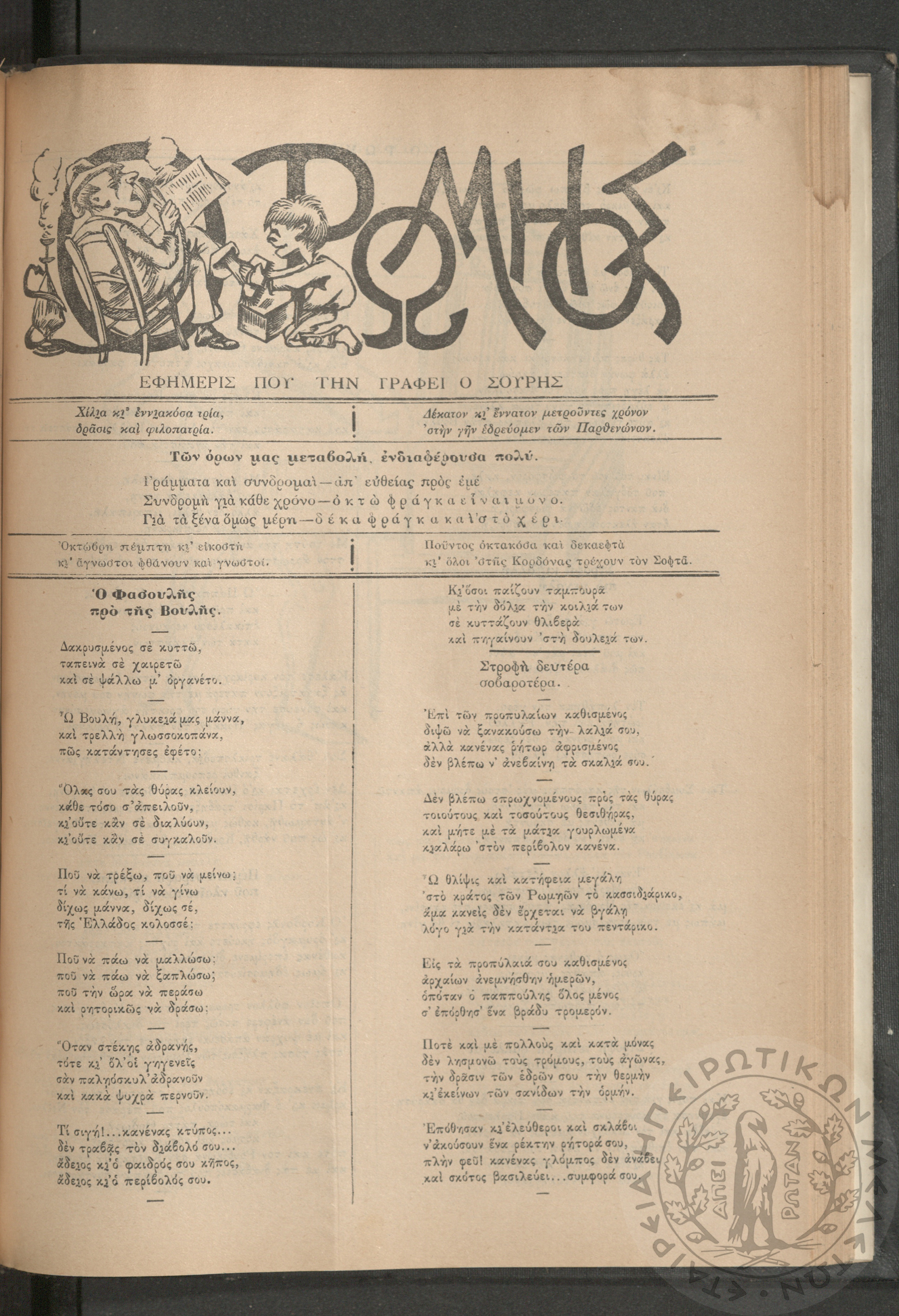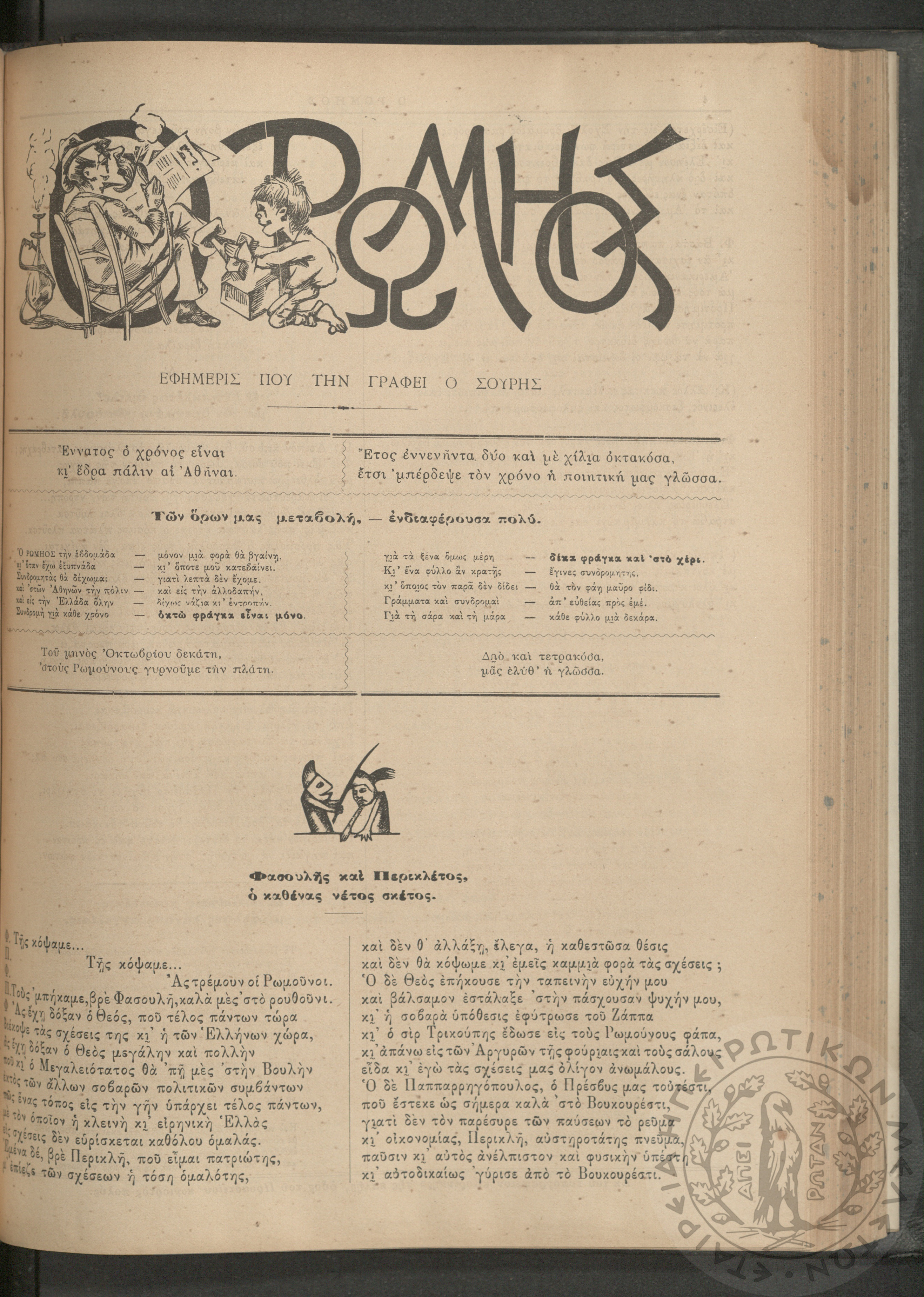Ο Ρωμηός: Εφημερίς που την γράφει ο Σουρής, 1905, φ. 906