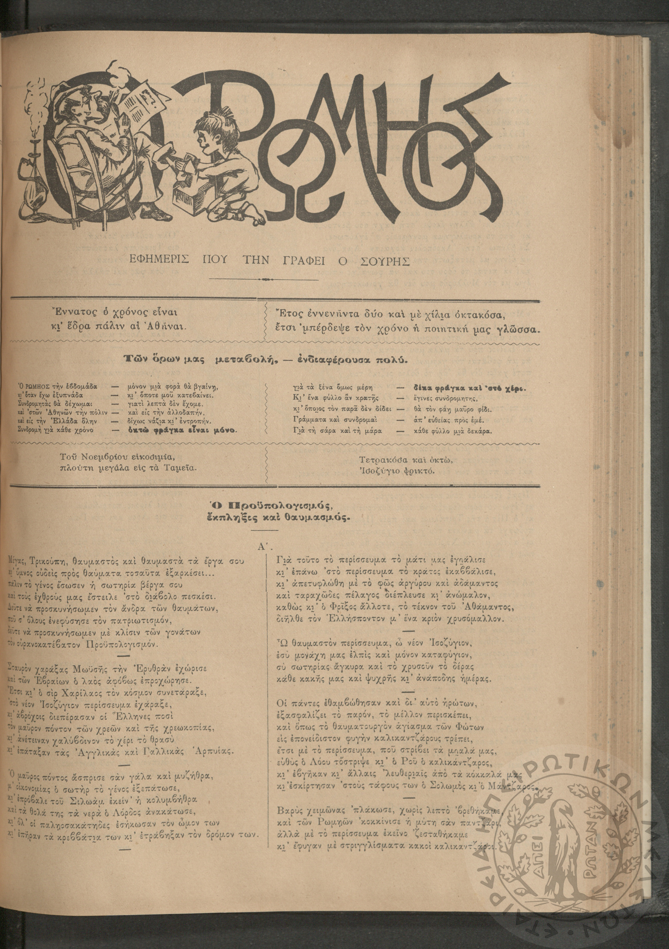 Ο Ρωμηός: Εφημερίς που την γράφει ο Σουρής, 1892, φ. 408