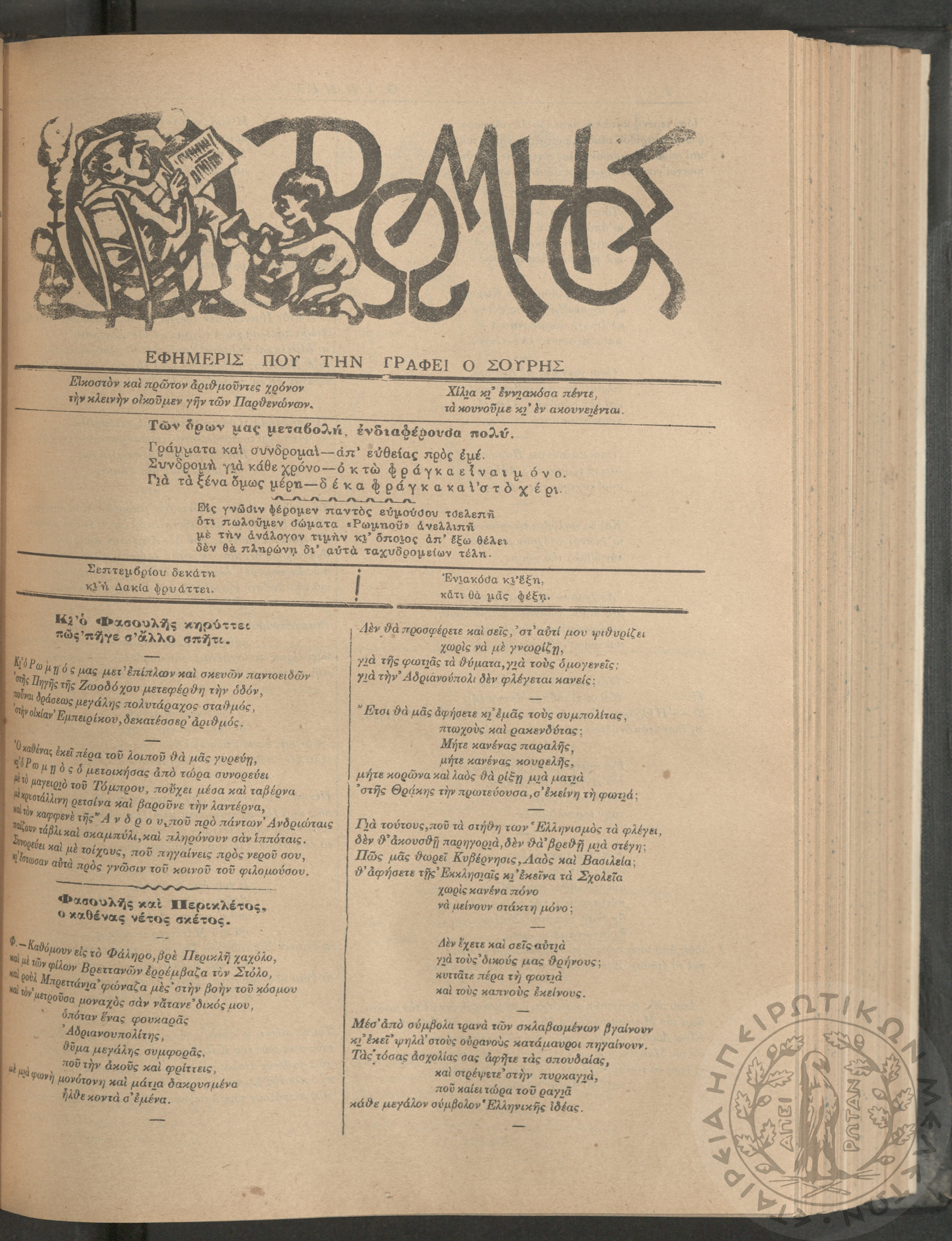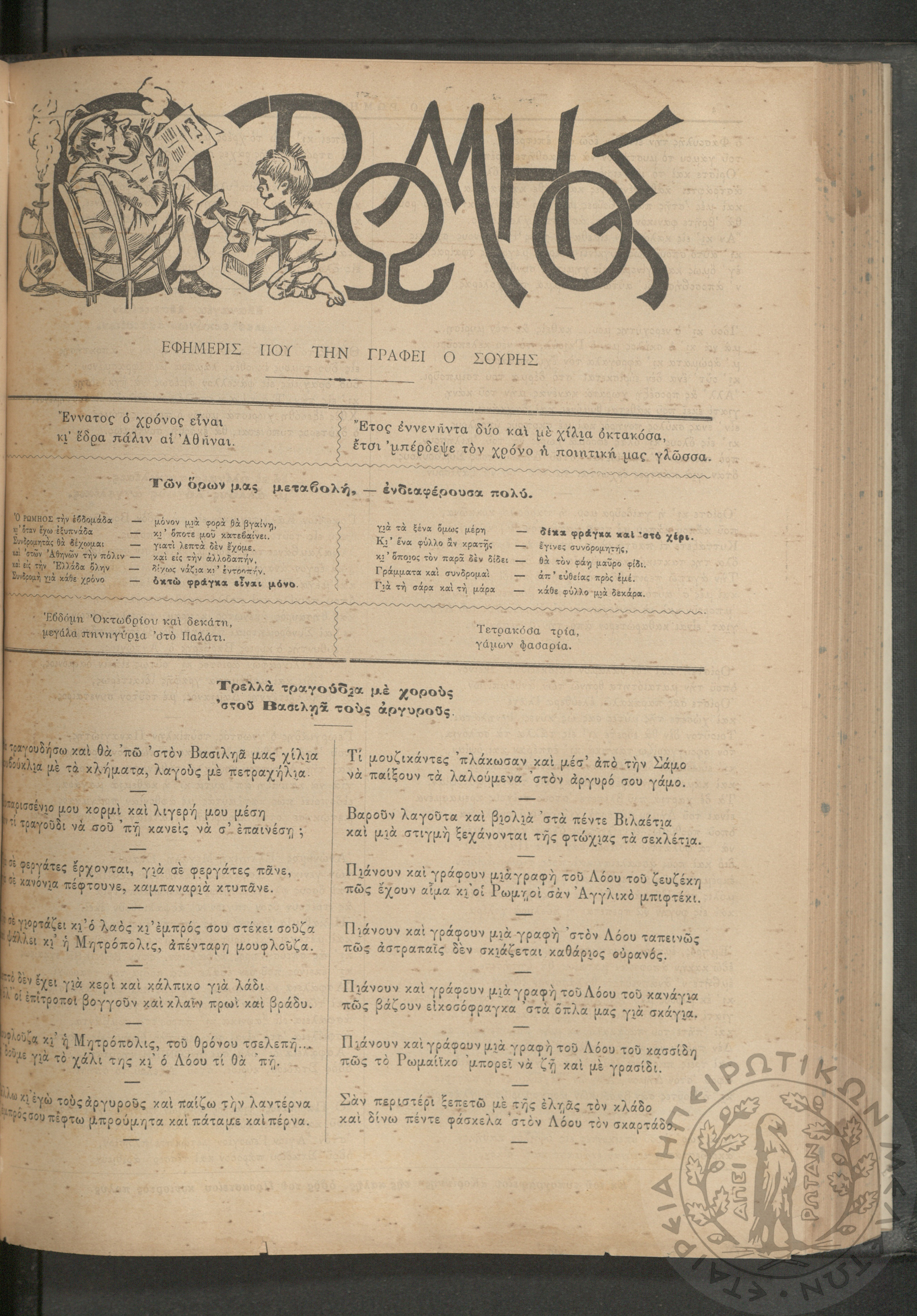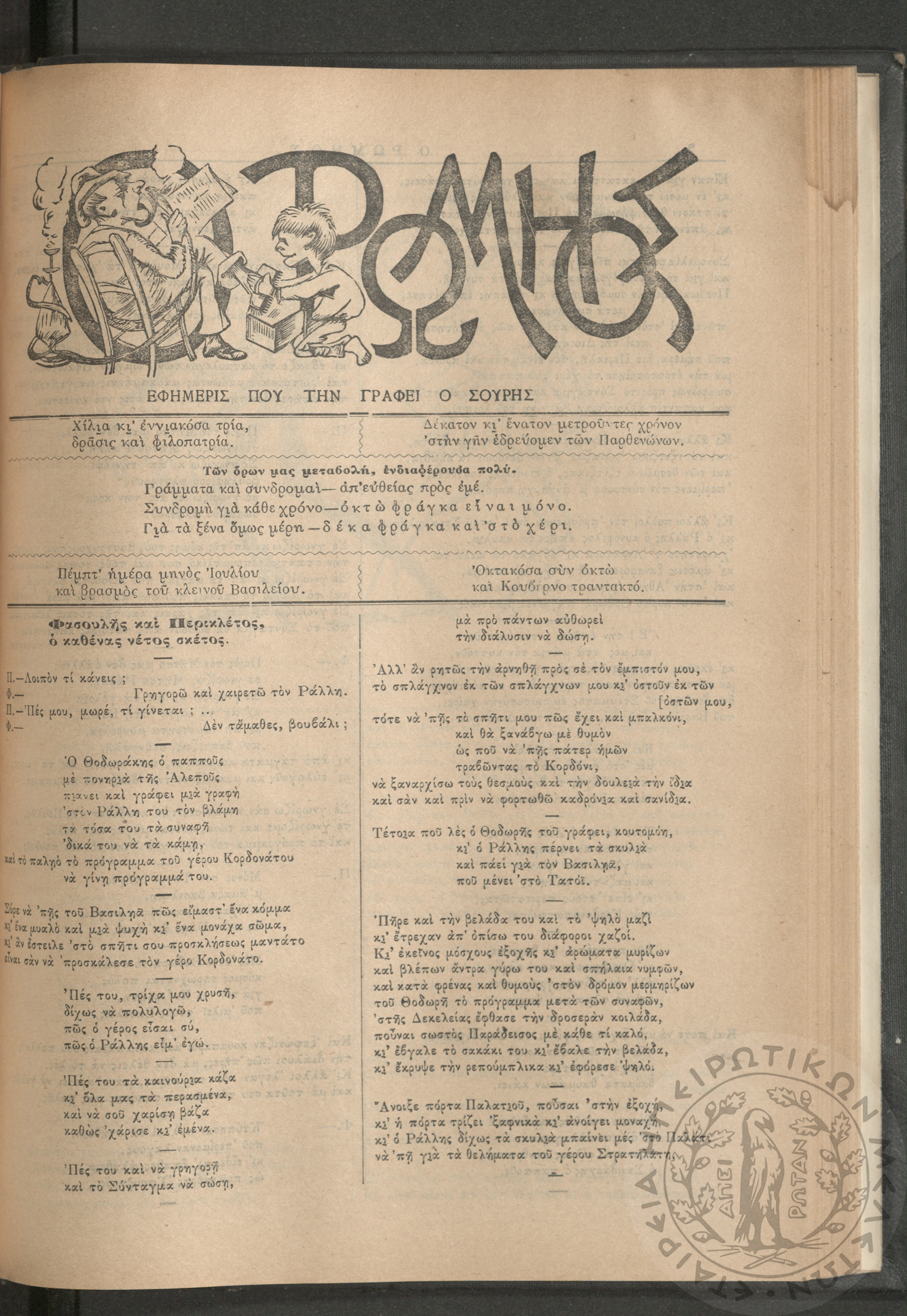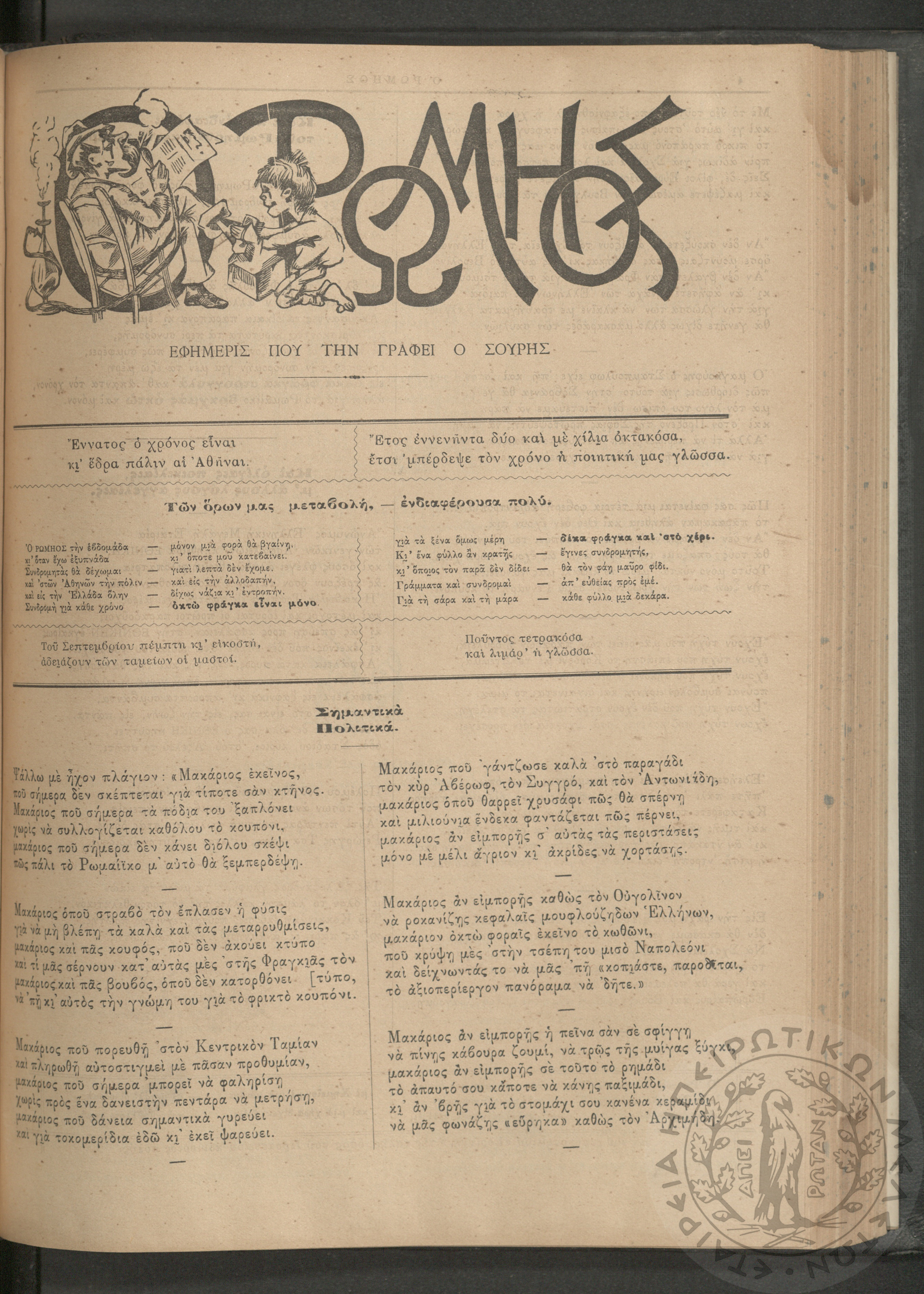 Ο Ρωμηός: Εφημερίς που την γράφει ο Σουρής, 1905, φ. 905
