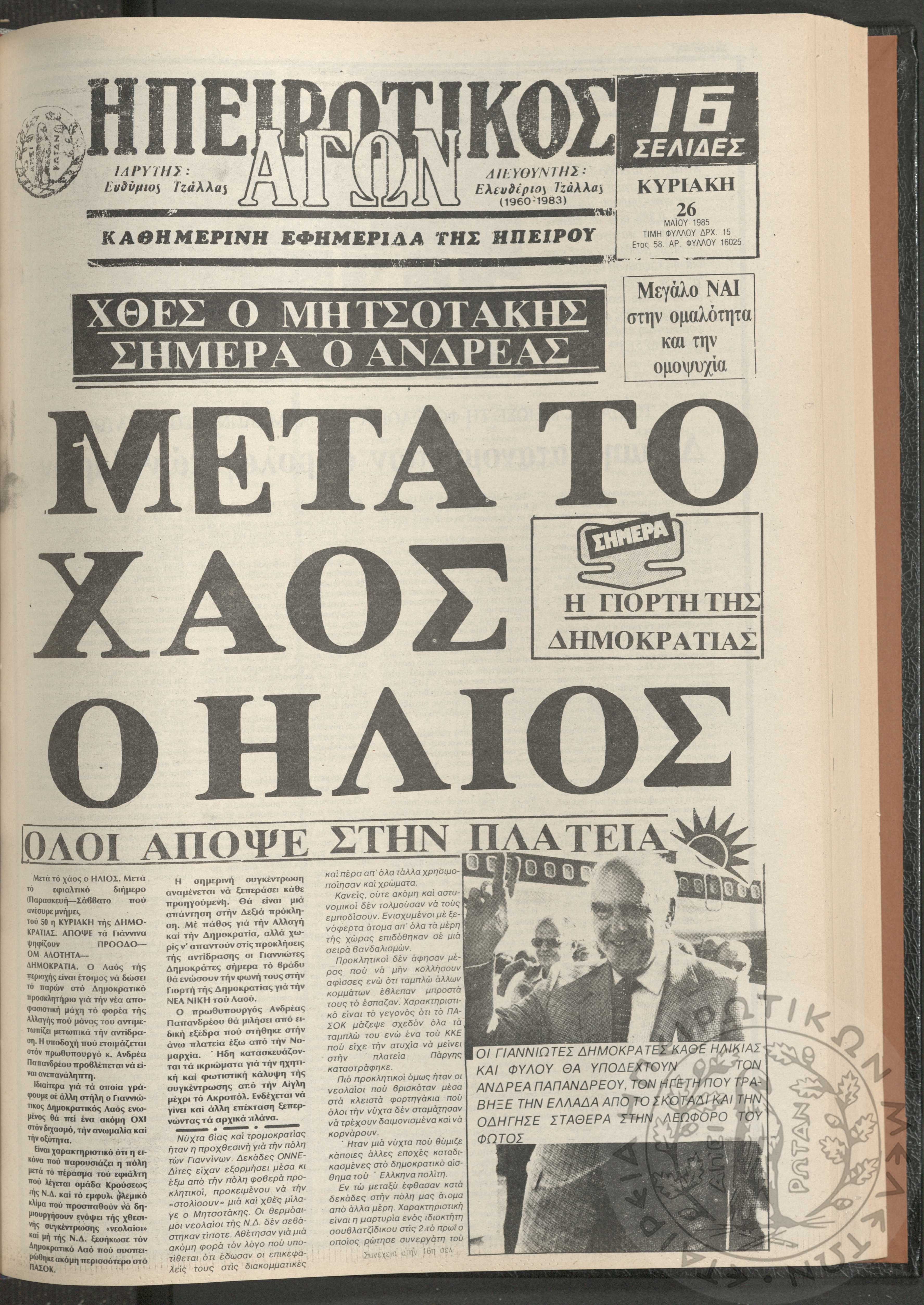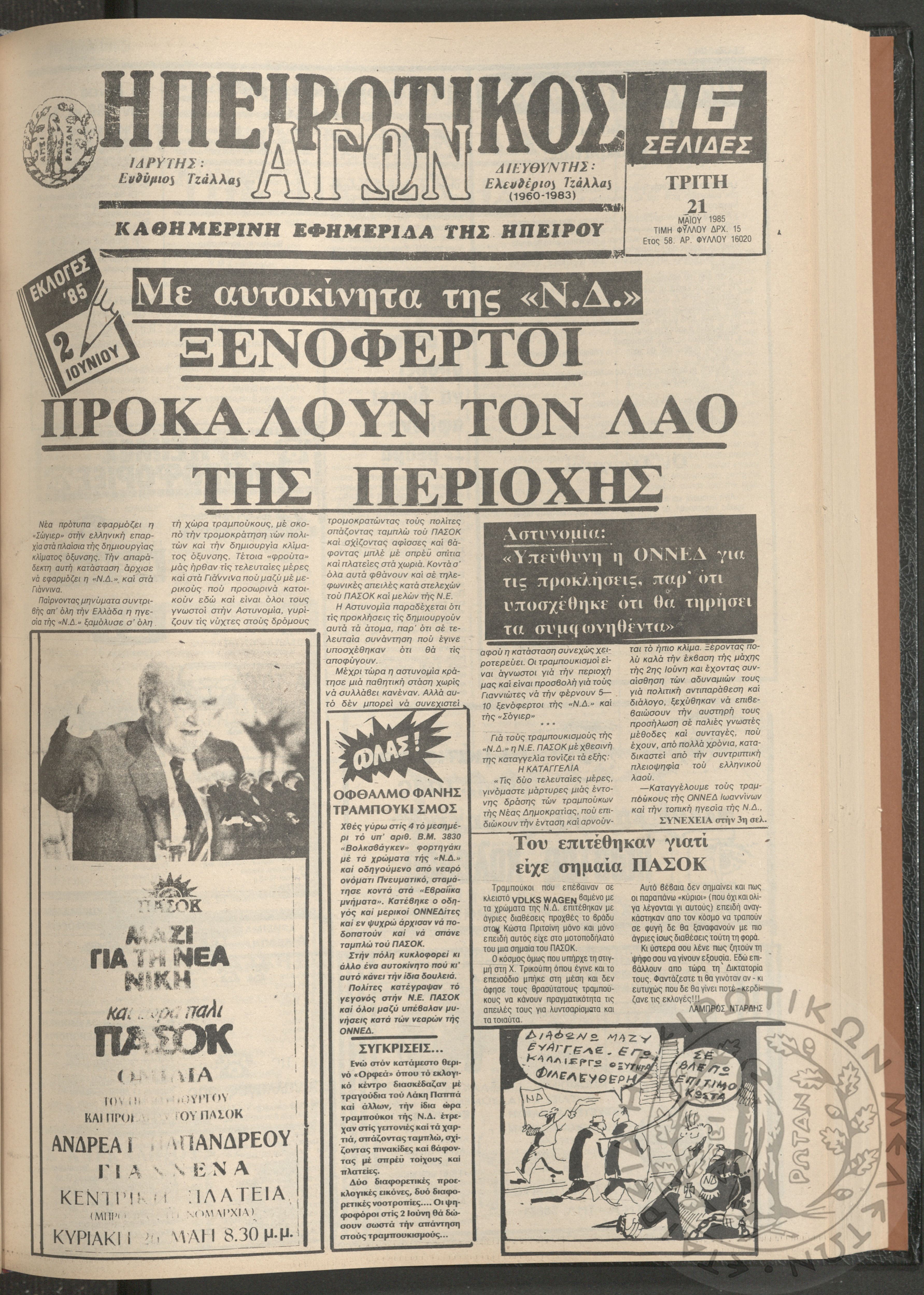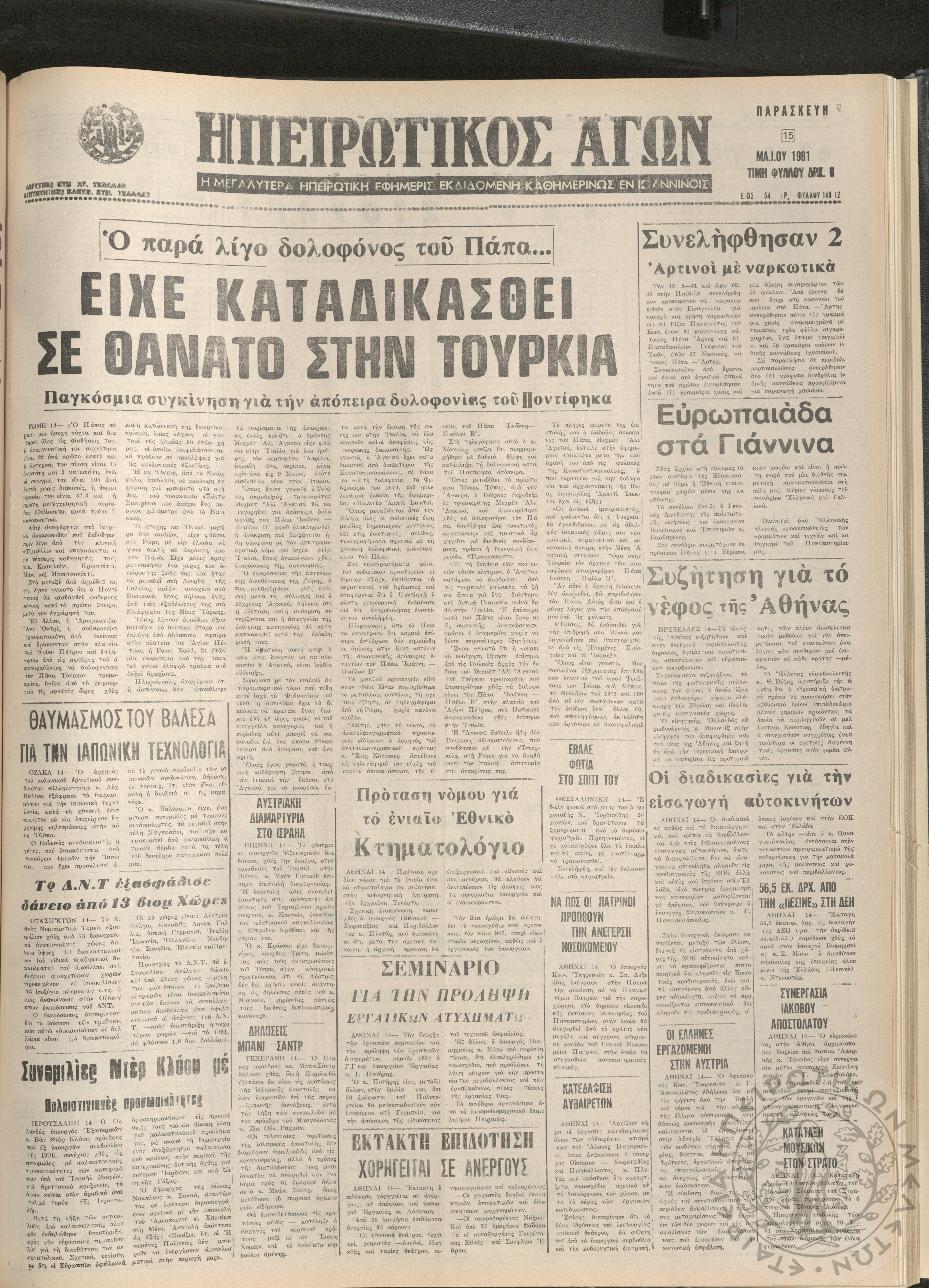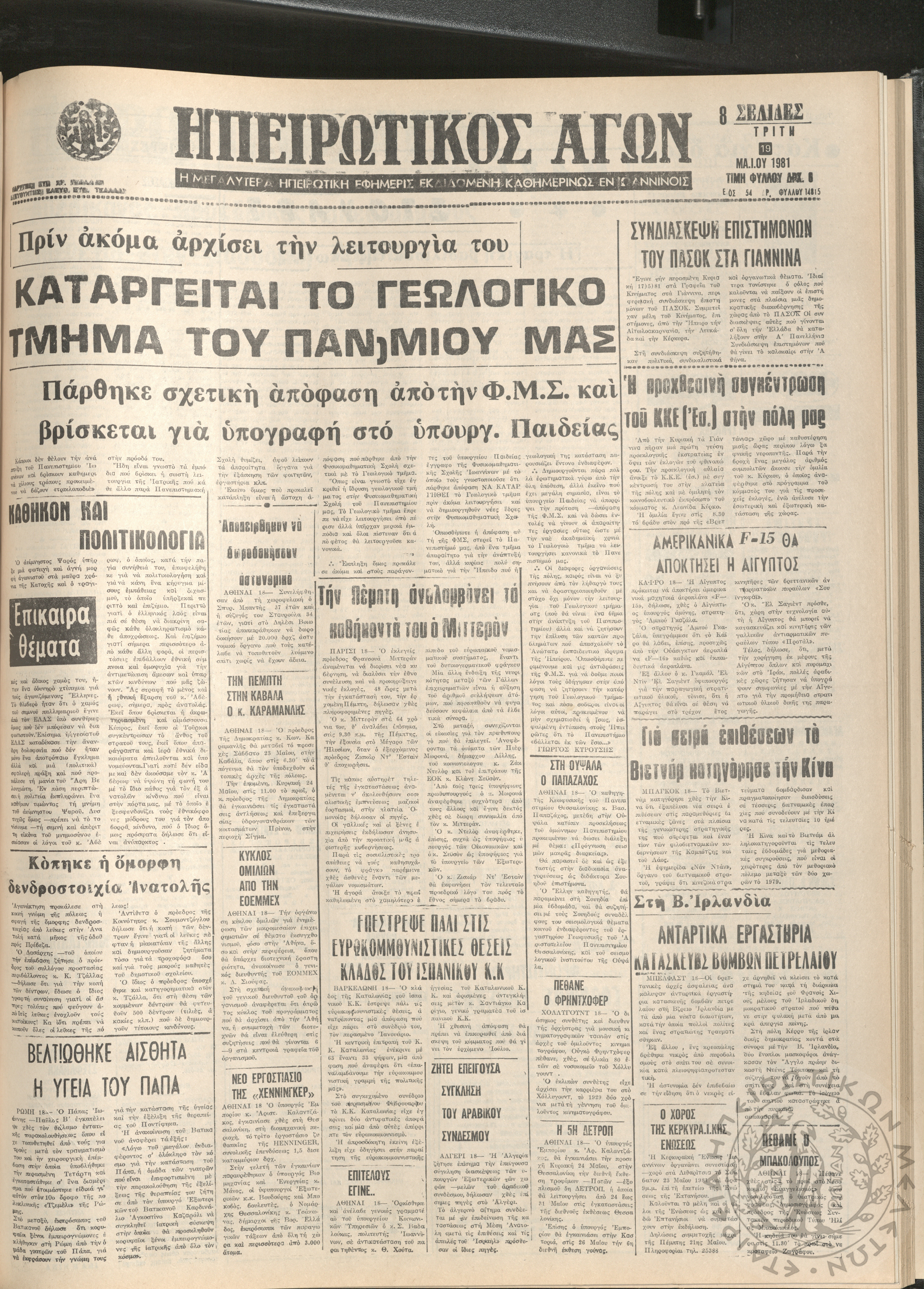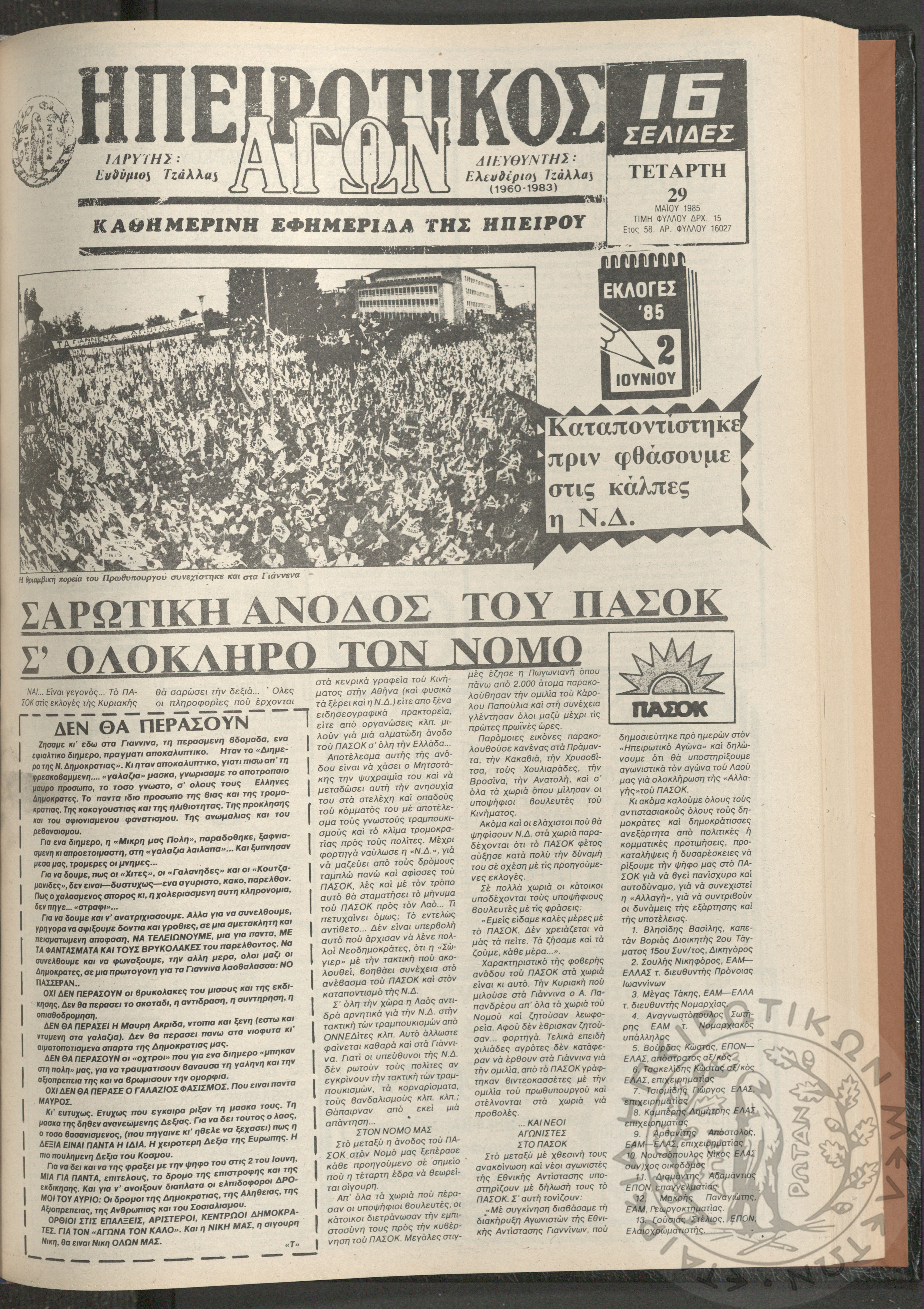 Ηπειρωτικός Αγών: η μεγαλυτέρα Ηπειρωτική εφημερίς εκδιδόμενη καθημερινώς εν Ιωαννίνοις, 1980, φ. 14367Έτος 53, φ. 14367...