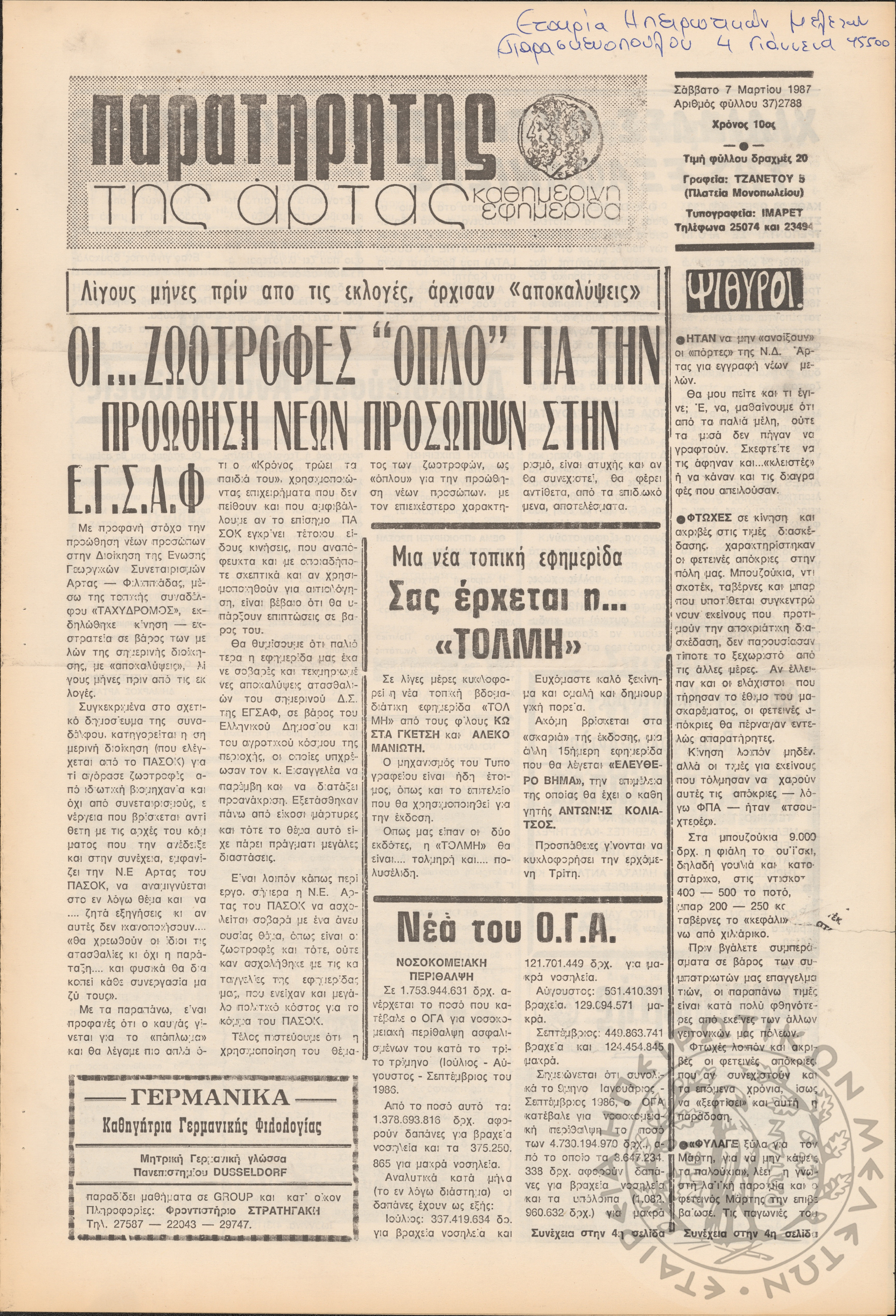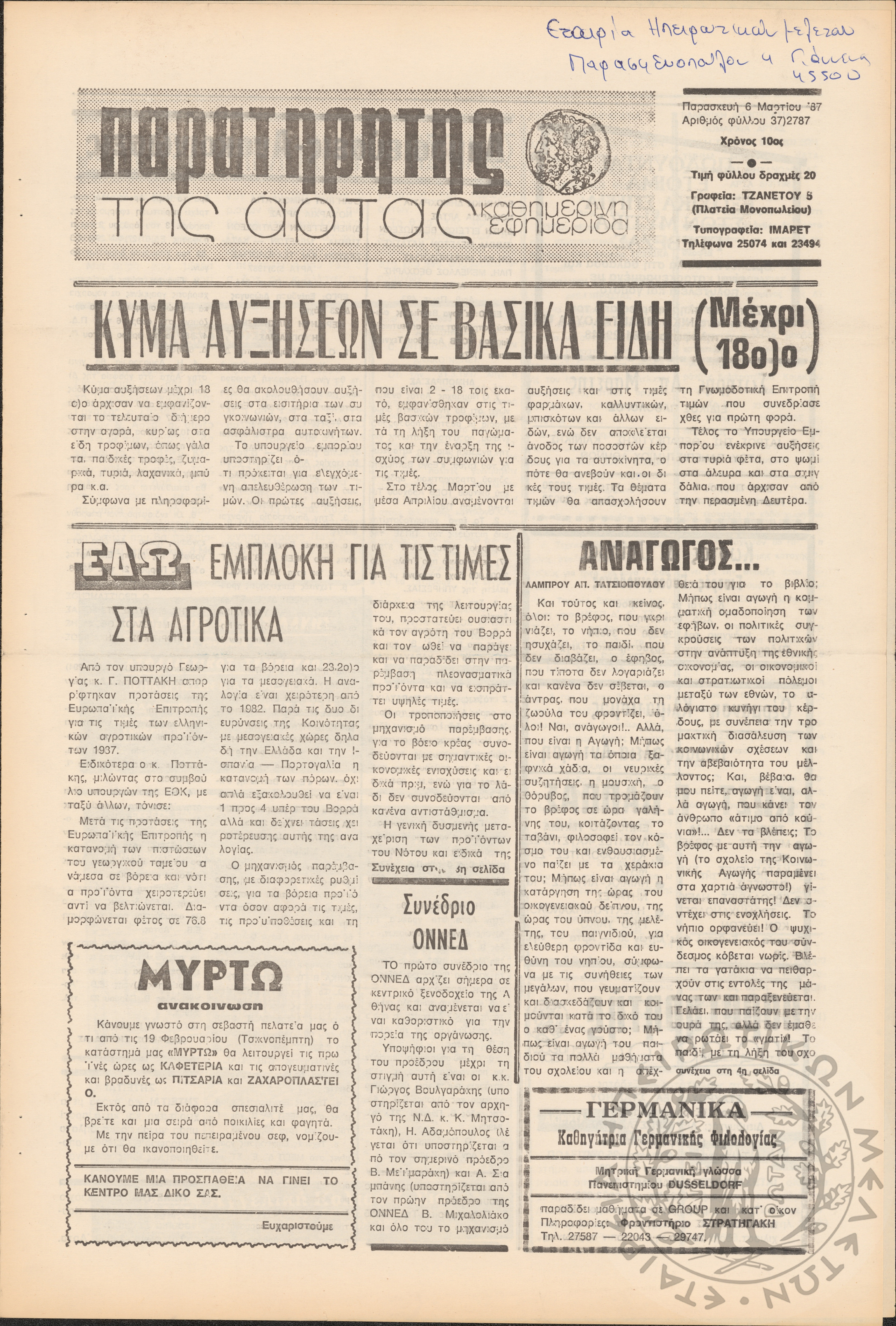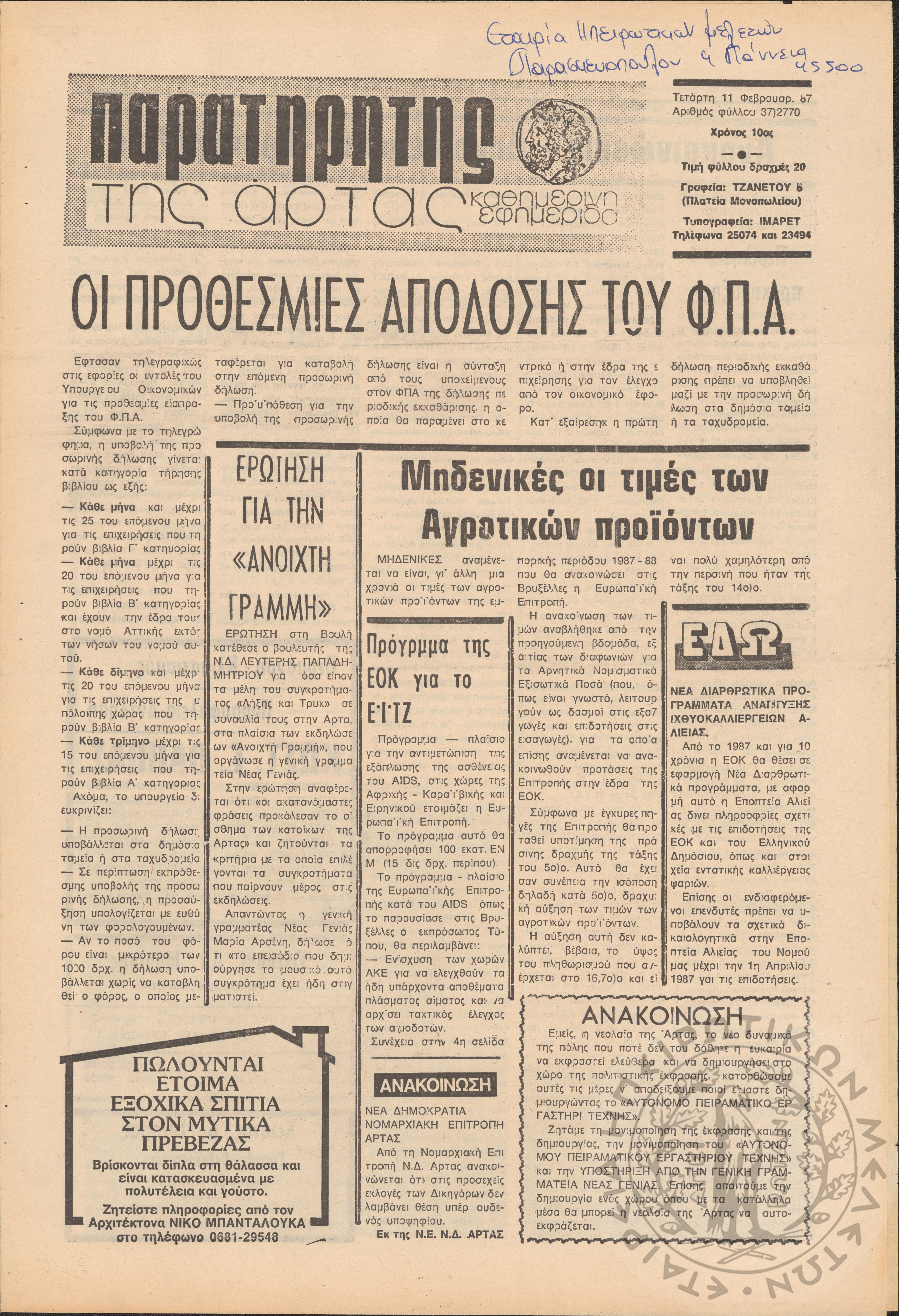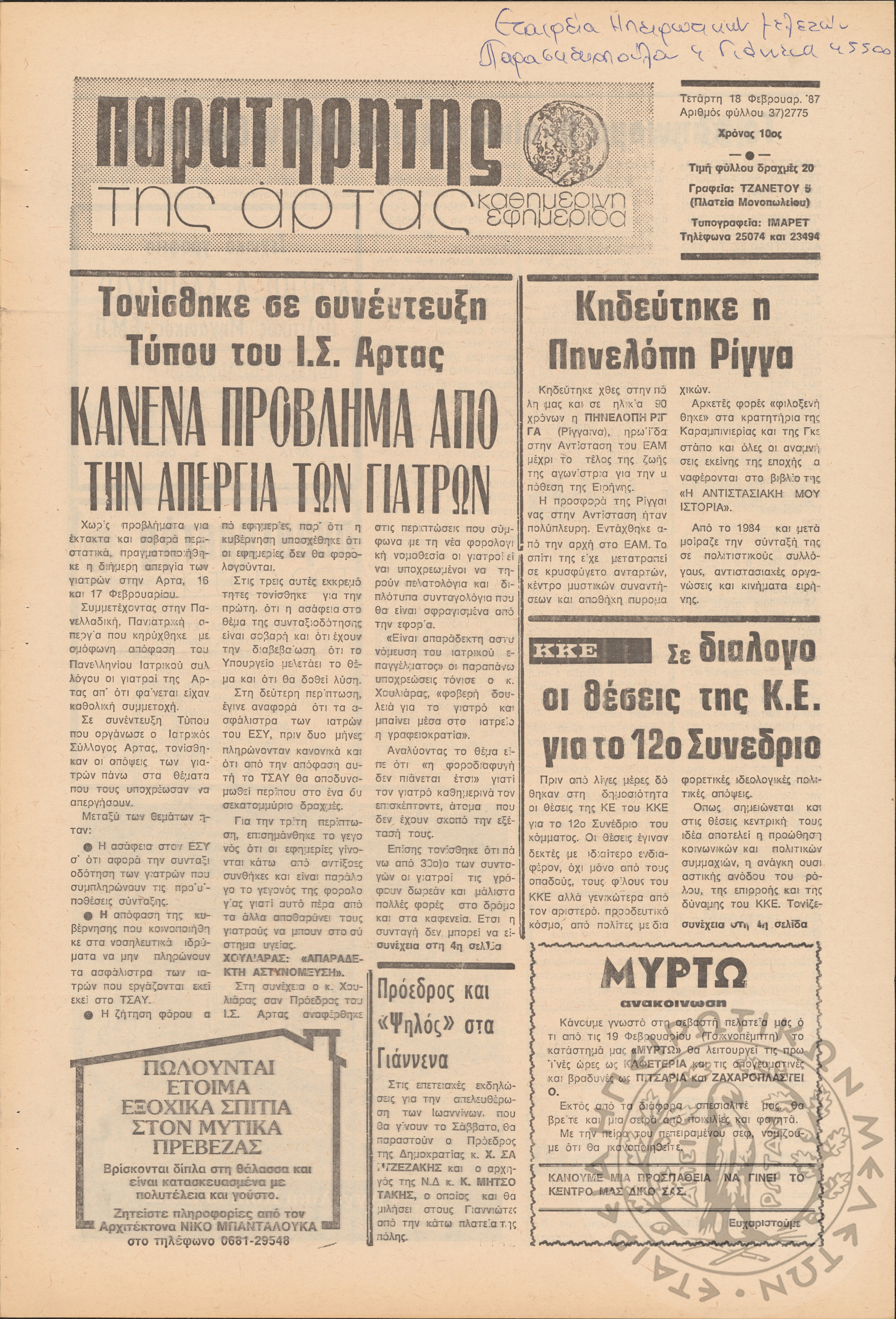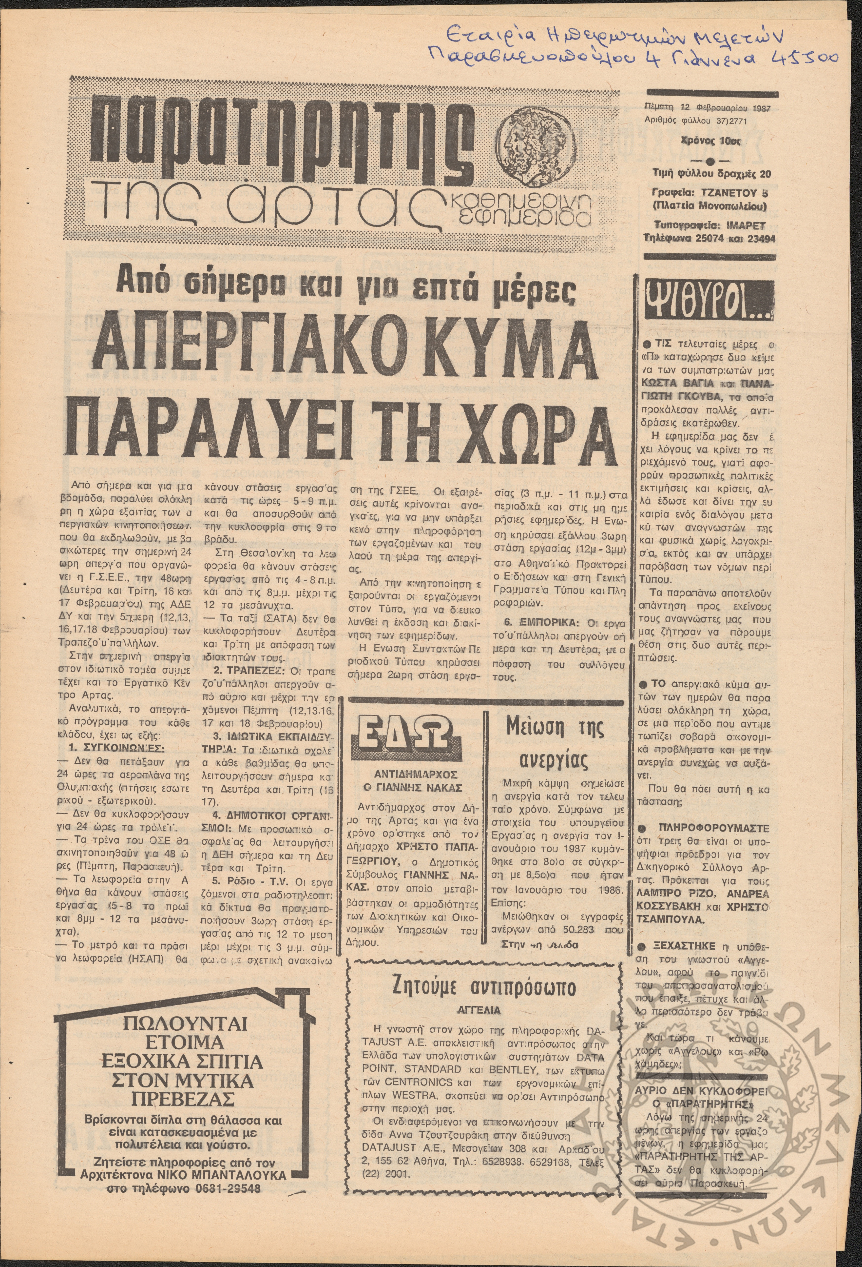 Ηπειρωτικός Αγών: η μεγαλυτέρα Ηπειρωτική εφημερίς εκδιδόμενη καθημερινώς εν Ιωαννίνοις, 1980, φ. 14367Έτος 53, φ. 14367...