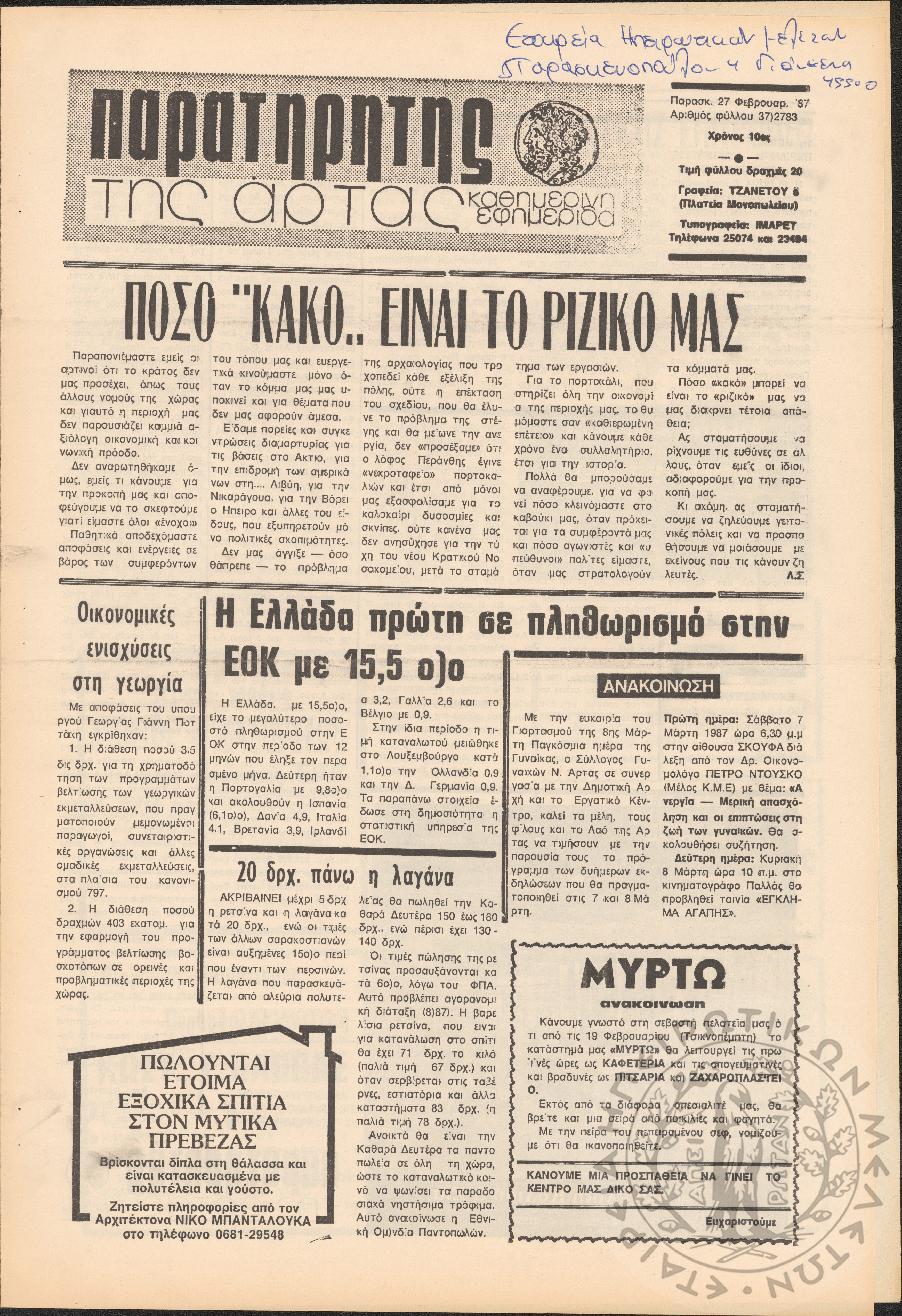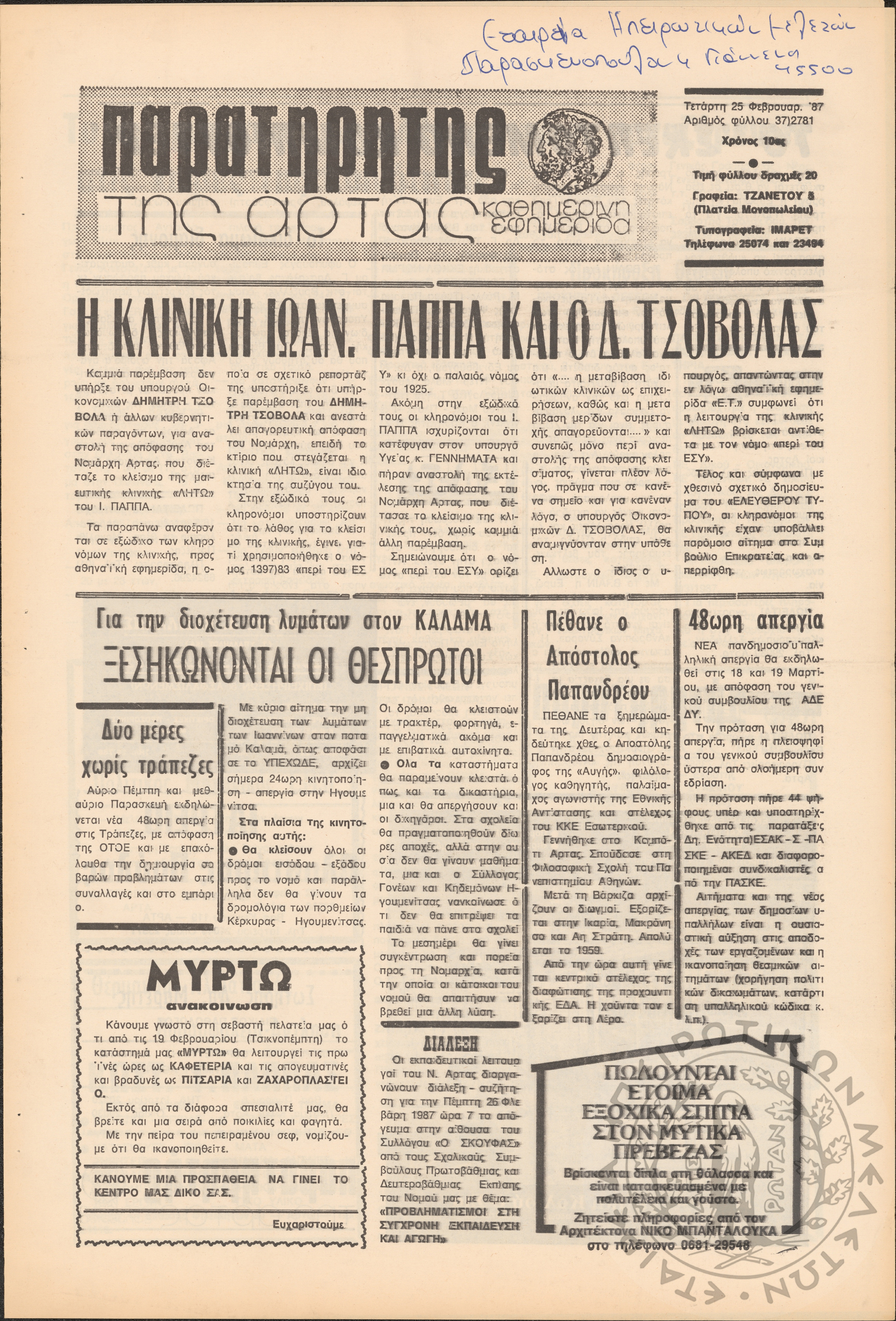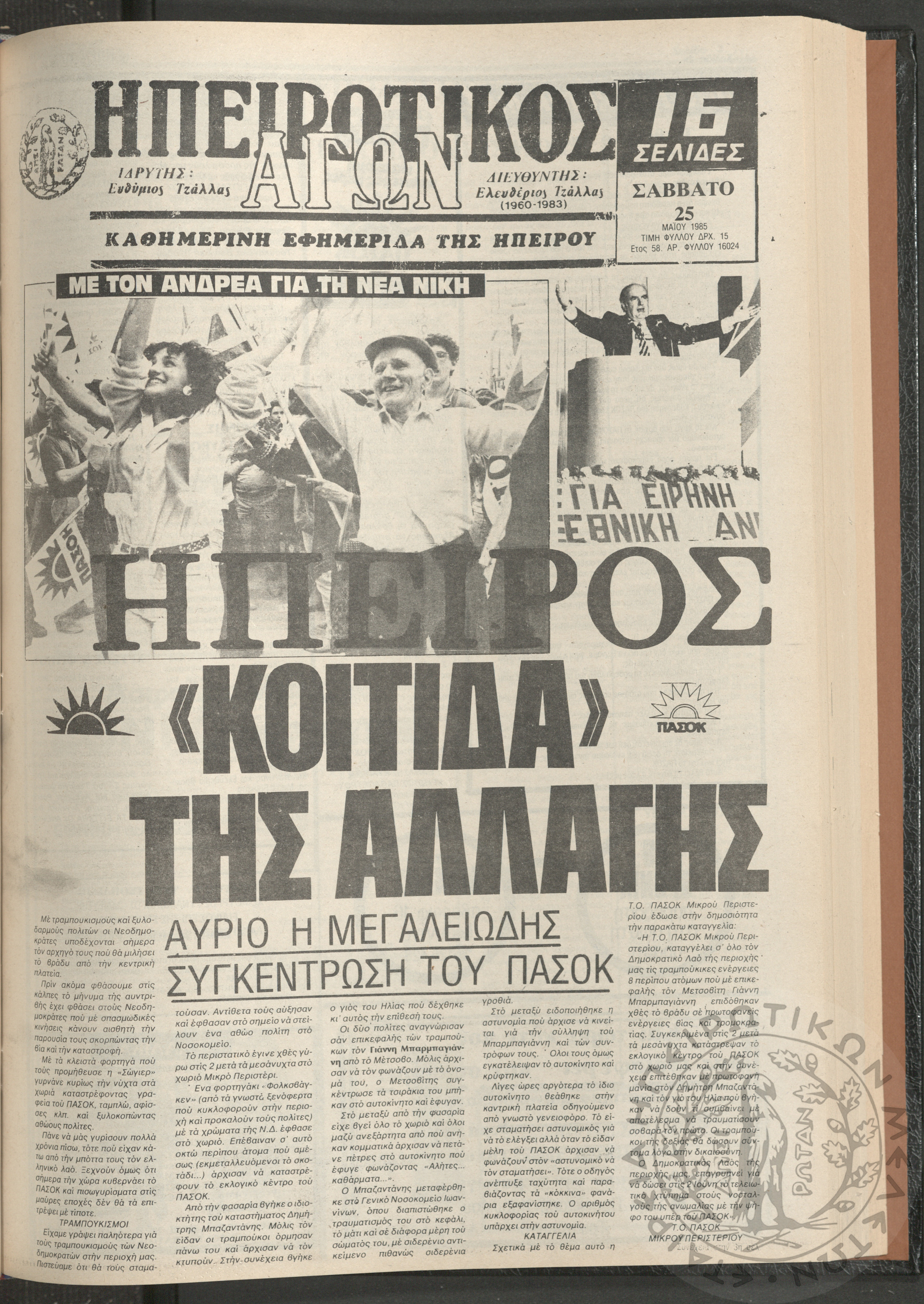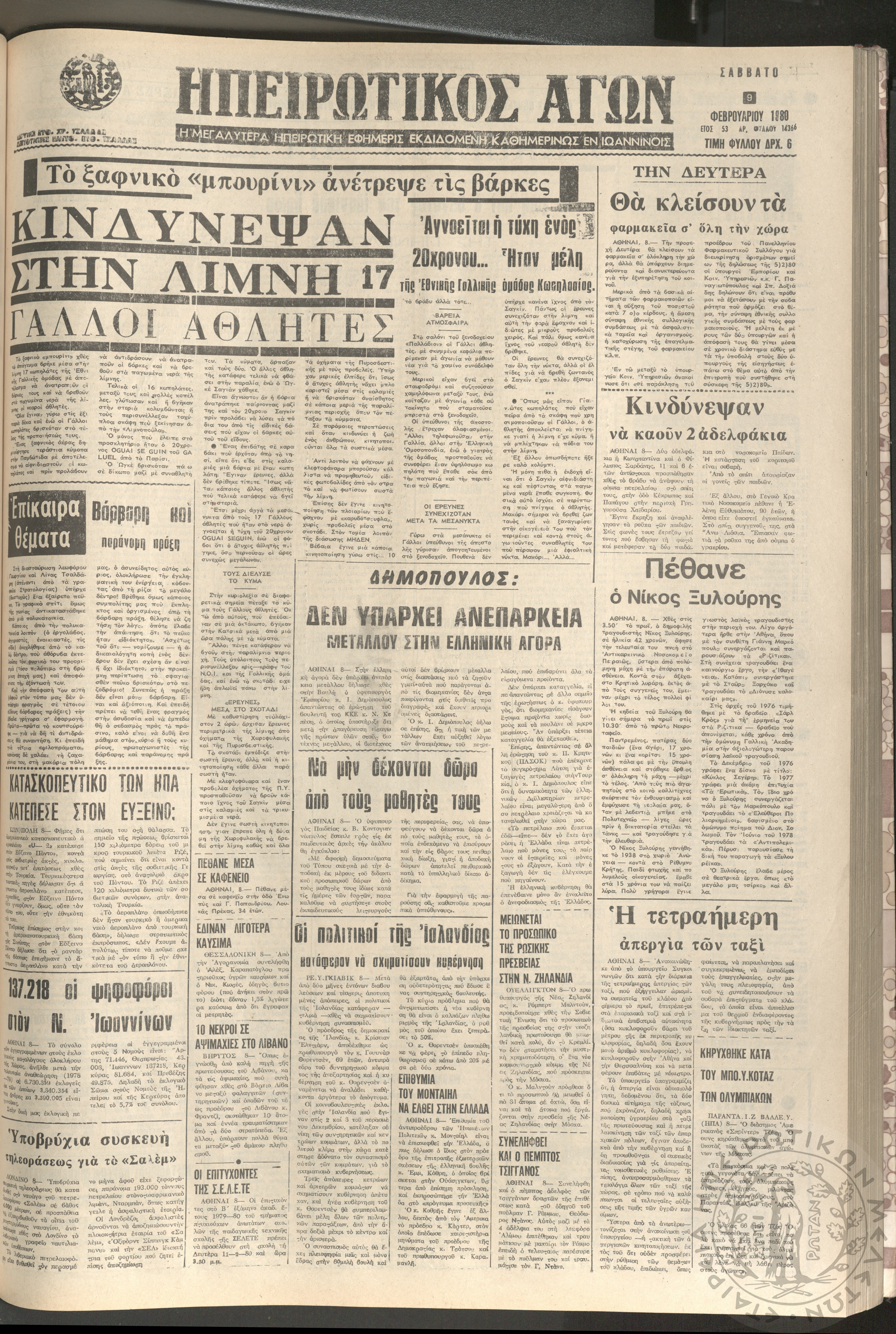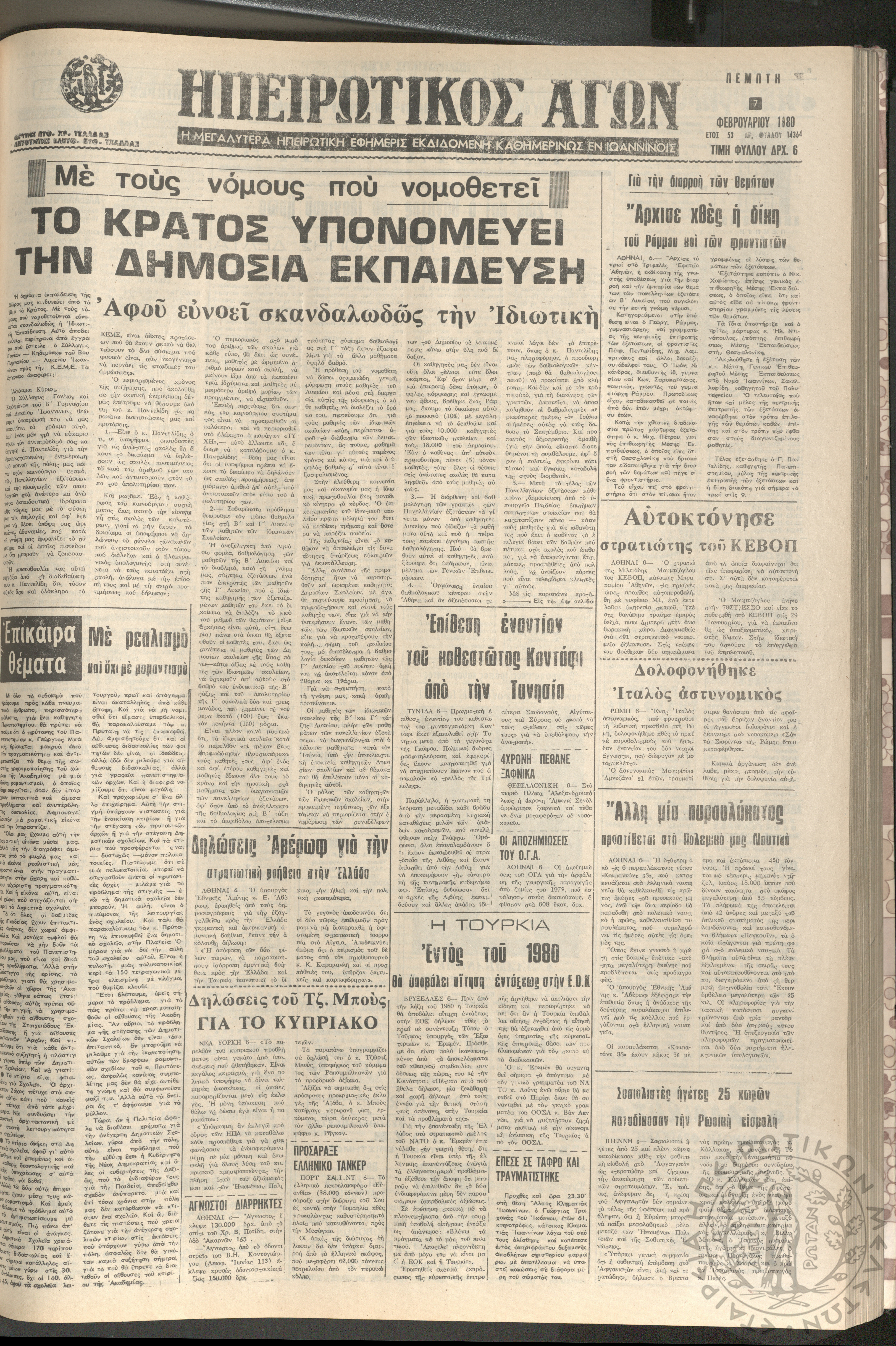 Ηπειρωτικός Αγών: η μεγαλυτέρα Ηπειρωτική εφημερίς εκδιδόμενη καθημερινώς εν Ιωαννίνοις, 1980, φ. 14364Έτος 53, φ. 14364...