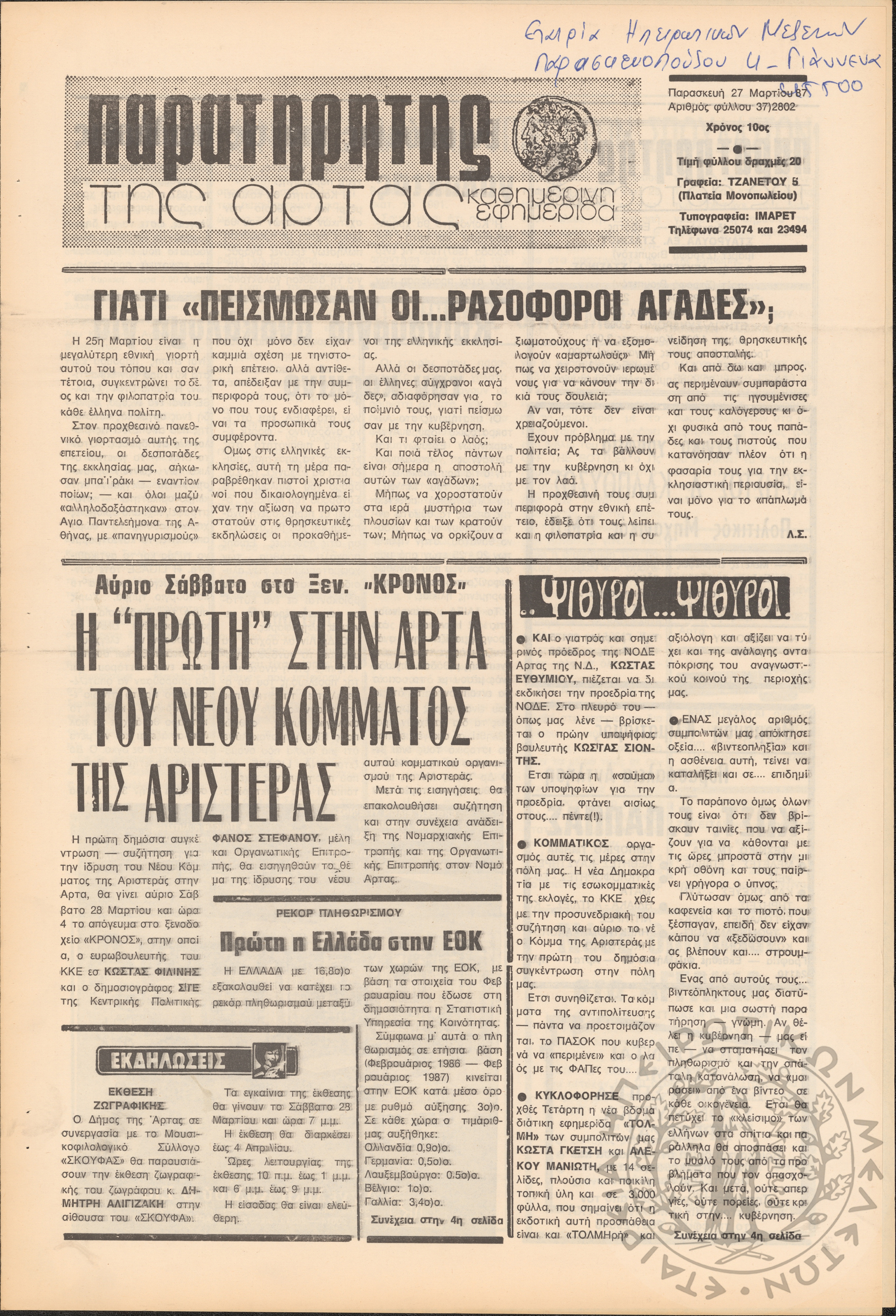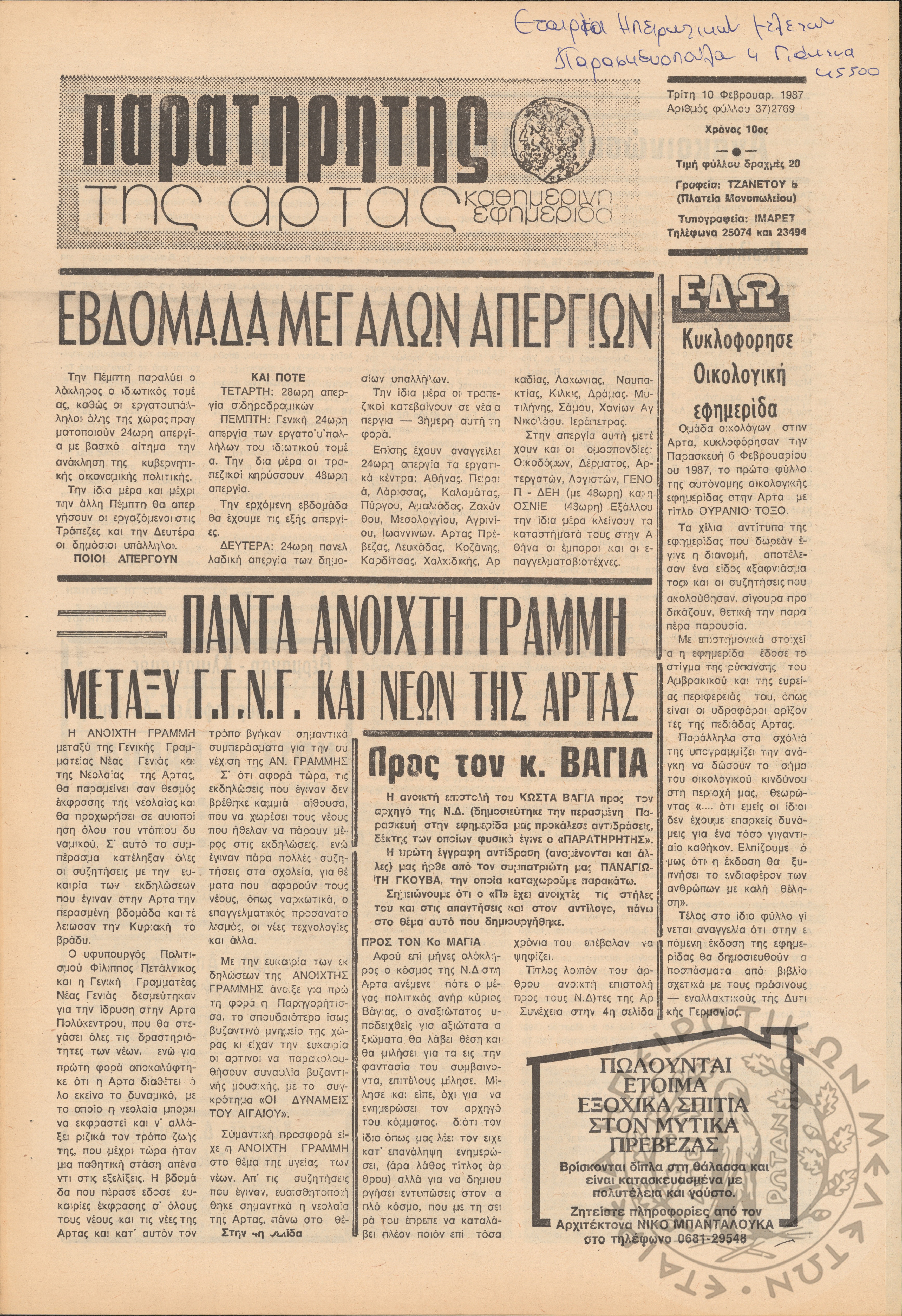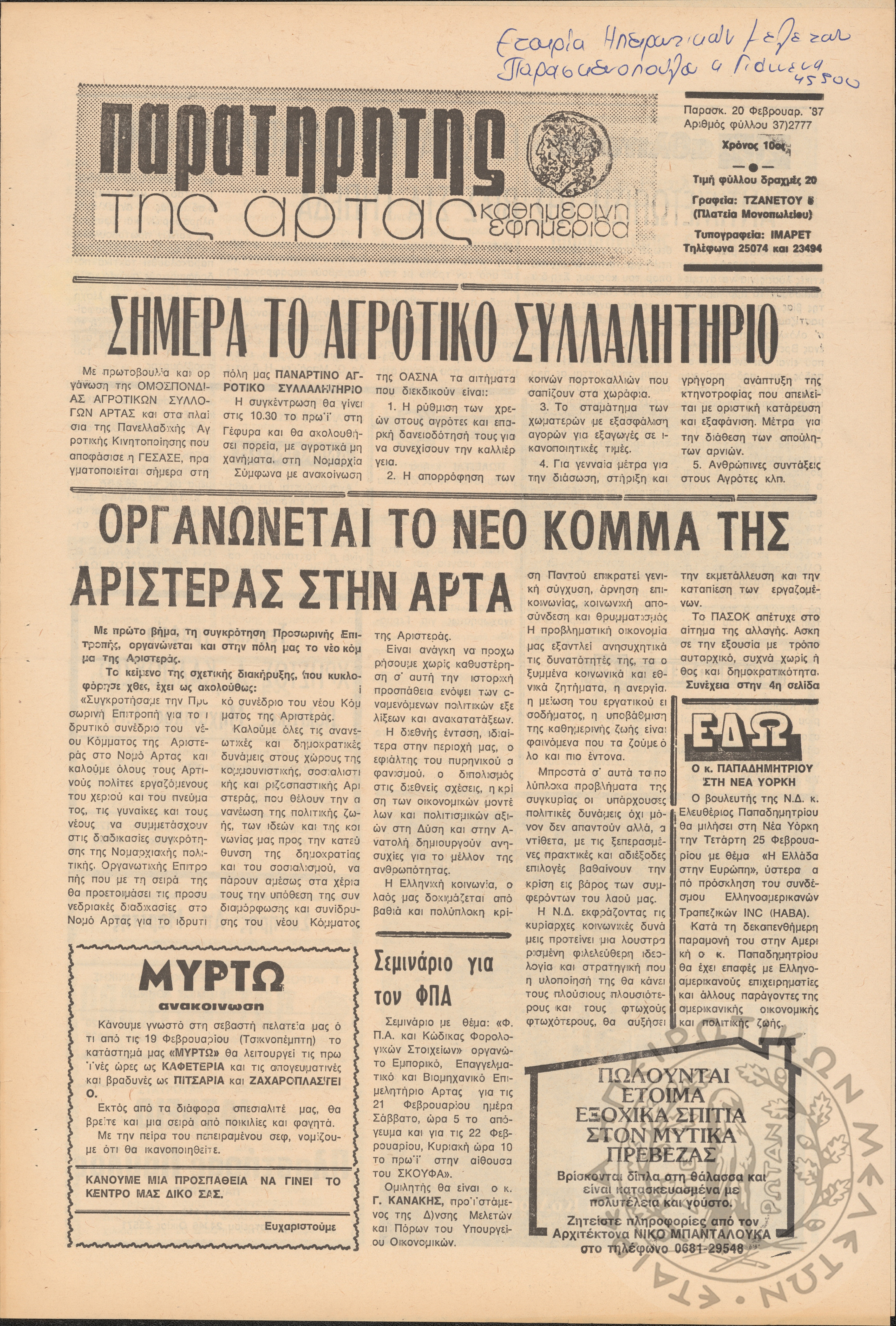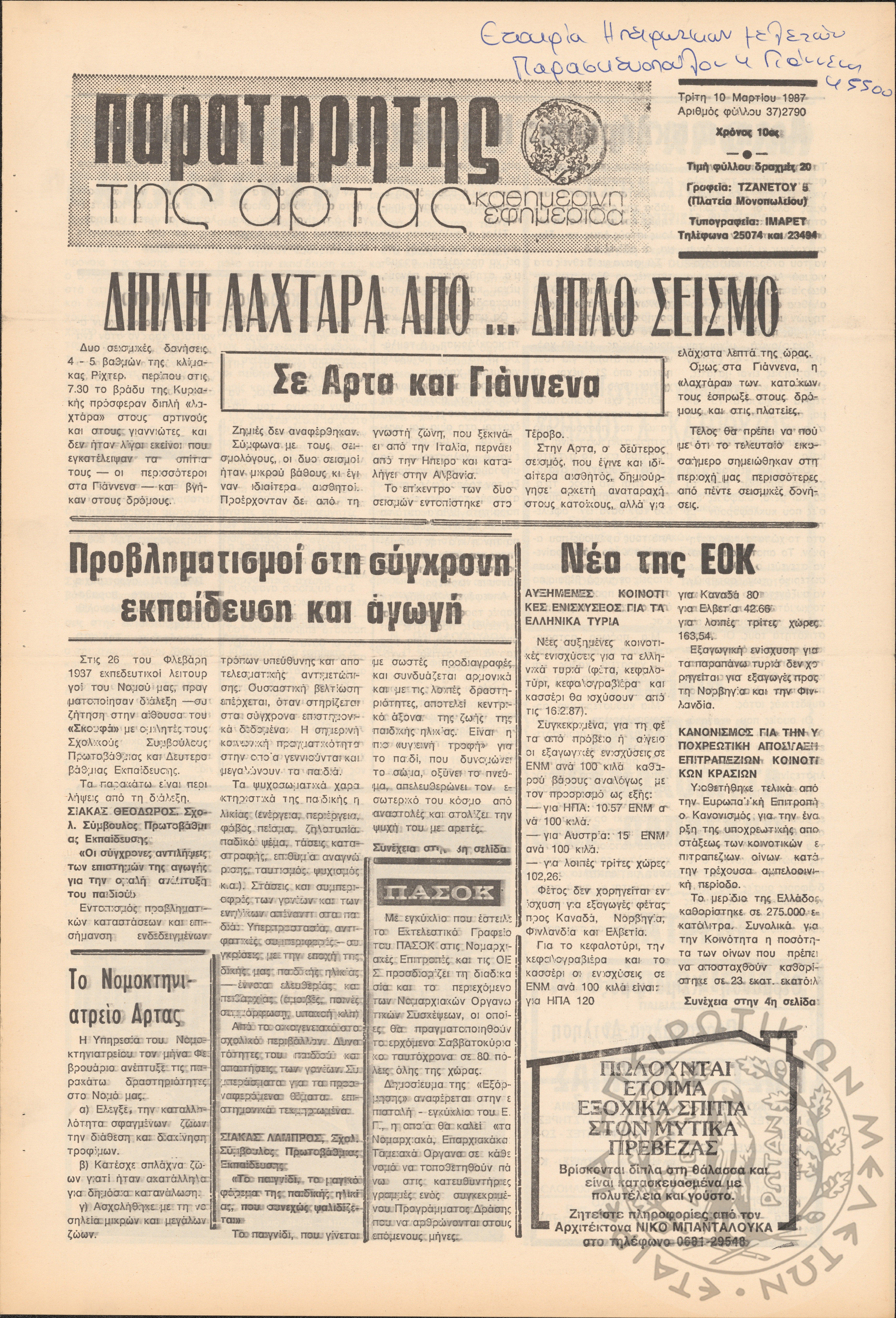 Ηπειρωτικός Αγών: η μεγαλυτέρα Ηπειρωτική εφημερίς εκδιδόμενη καθημερινώς εν Ιωαννίνοις, 1980, φ. 14364Έτος 53, φ. 14364...