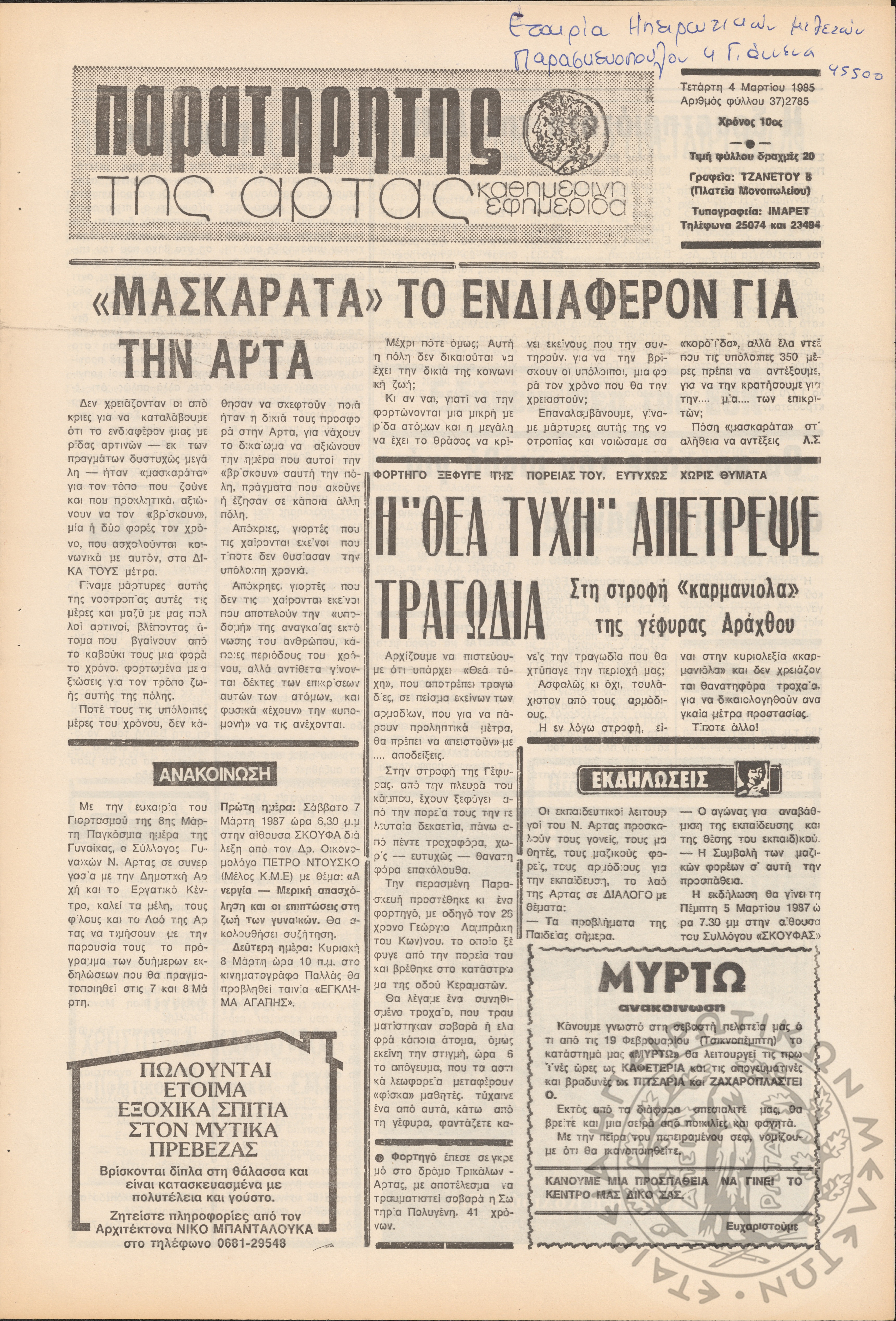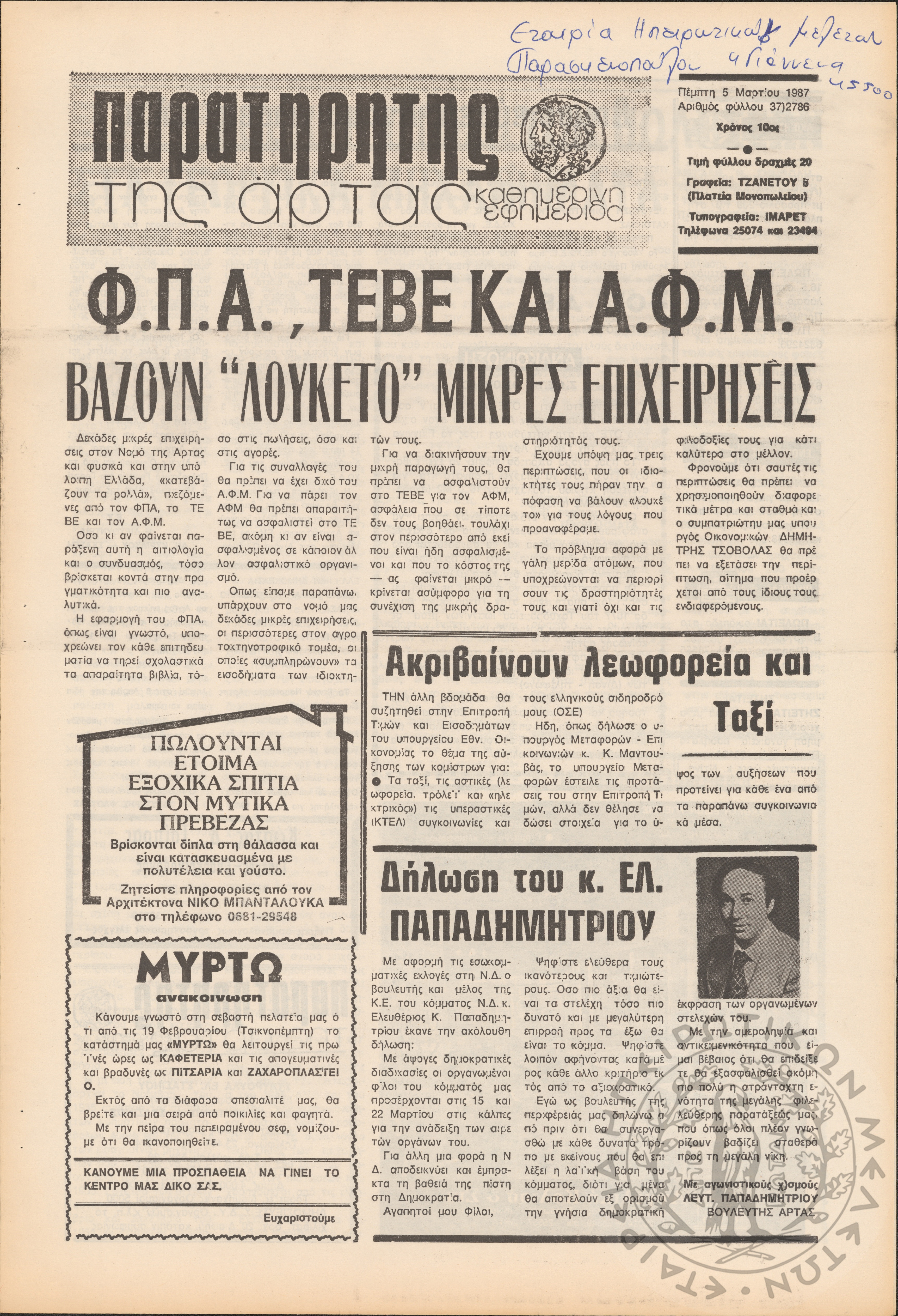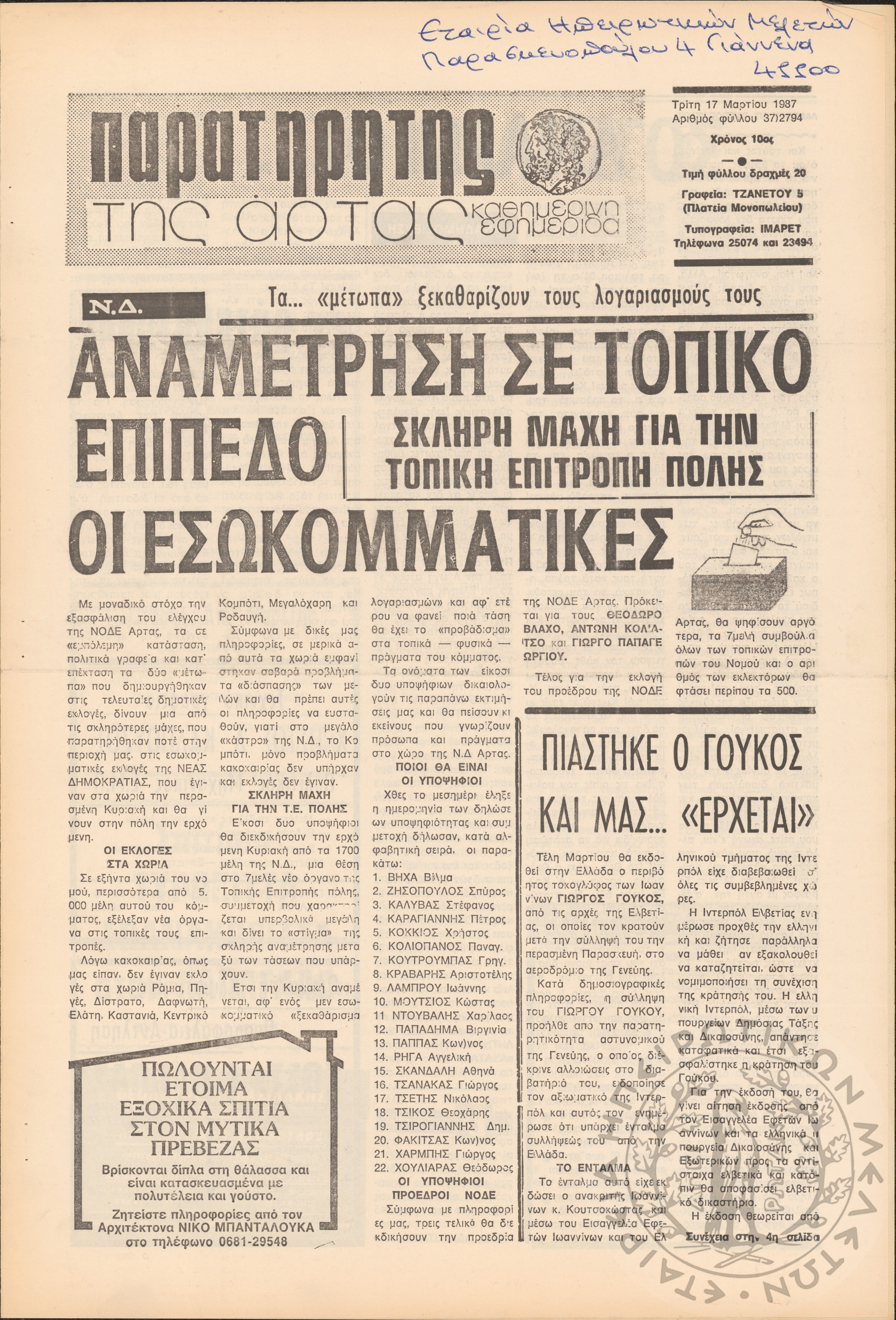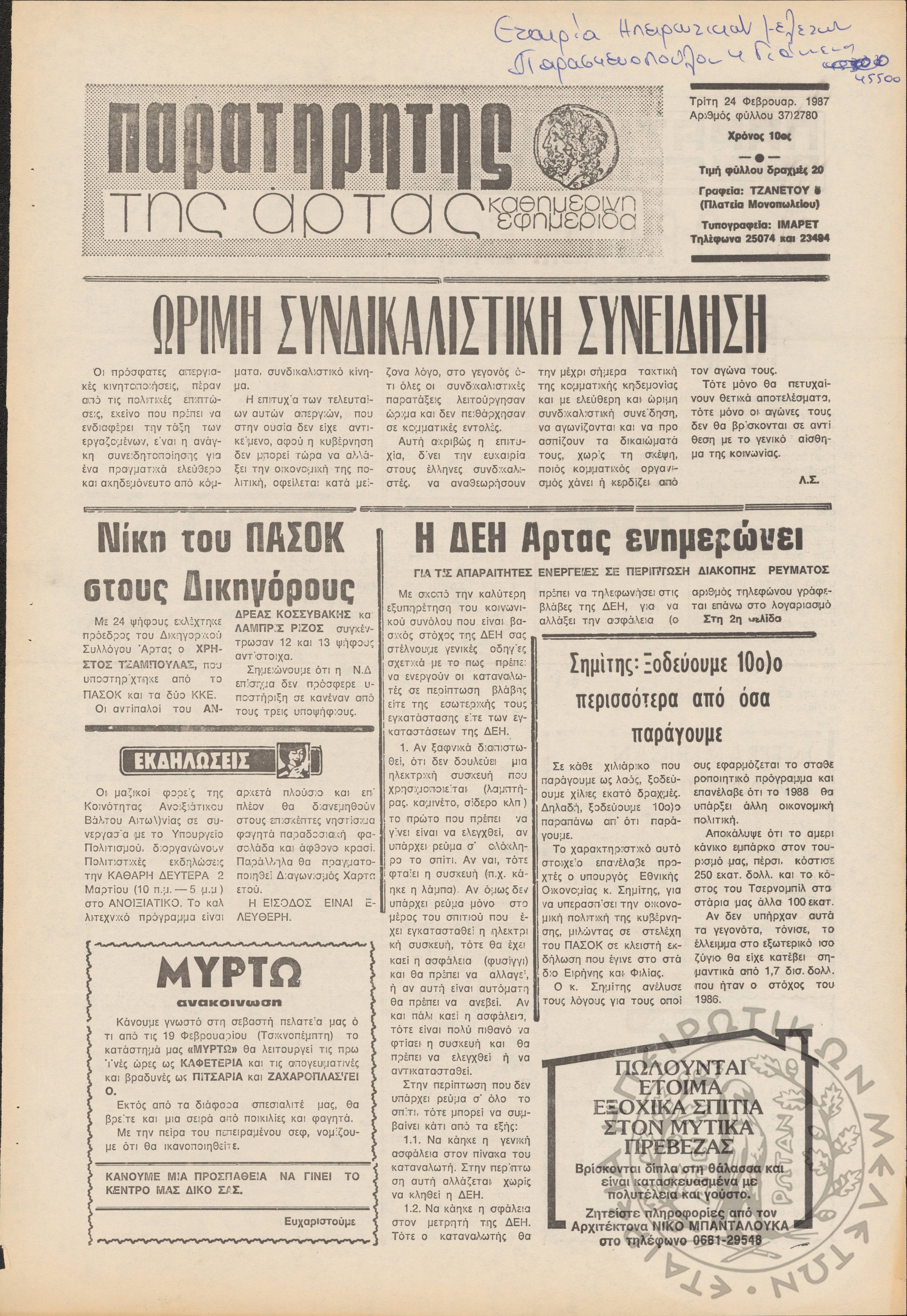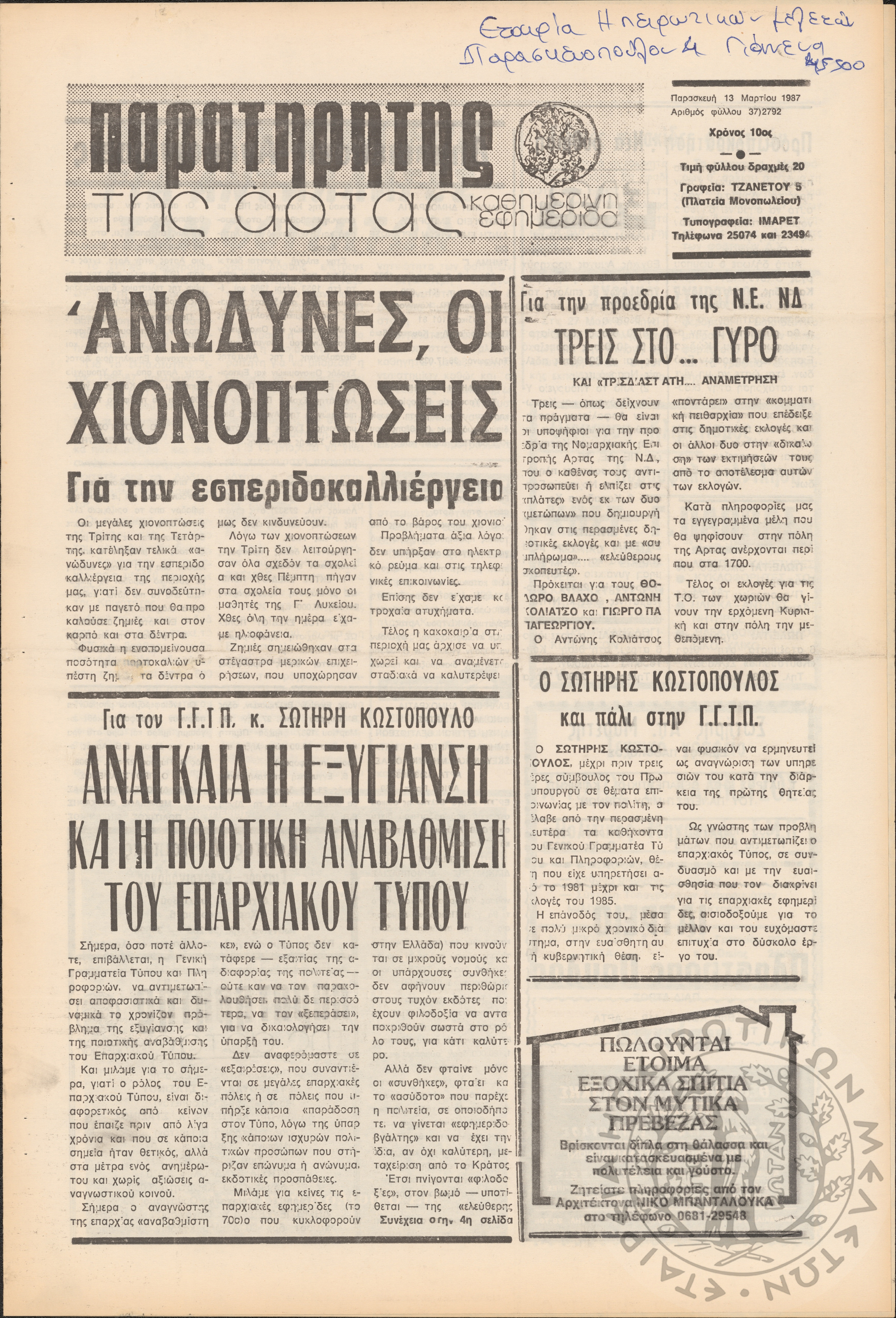 Ηπειρωτικός Αγών: η μεγαλυτέρα Ηπειρωτική εφημερίς εκδιδόμενη καθημερινώς εν Ιωαννίνοις, 1980, φ. 14364Έτος 53, φ. 14364...
