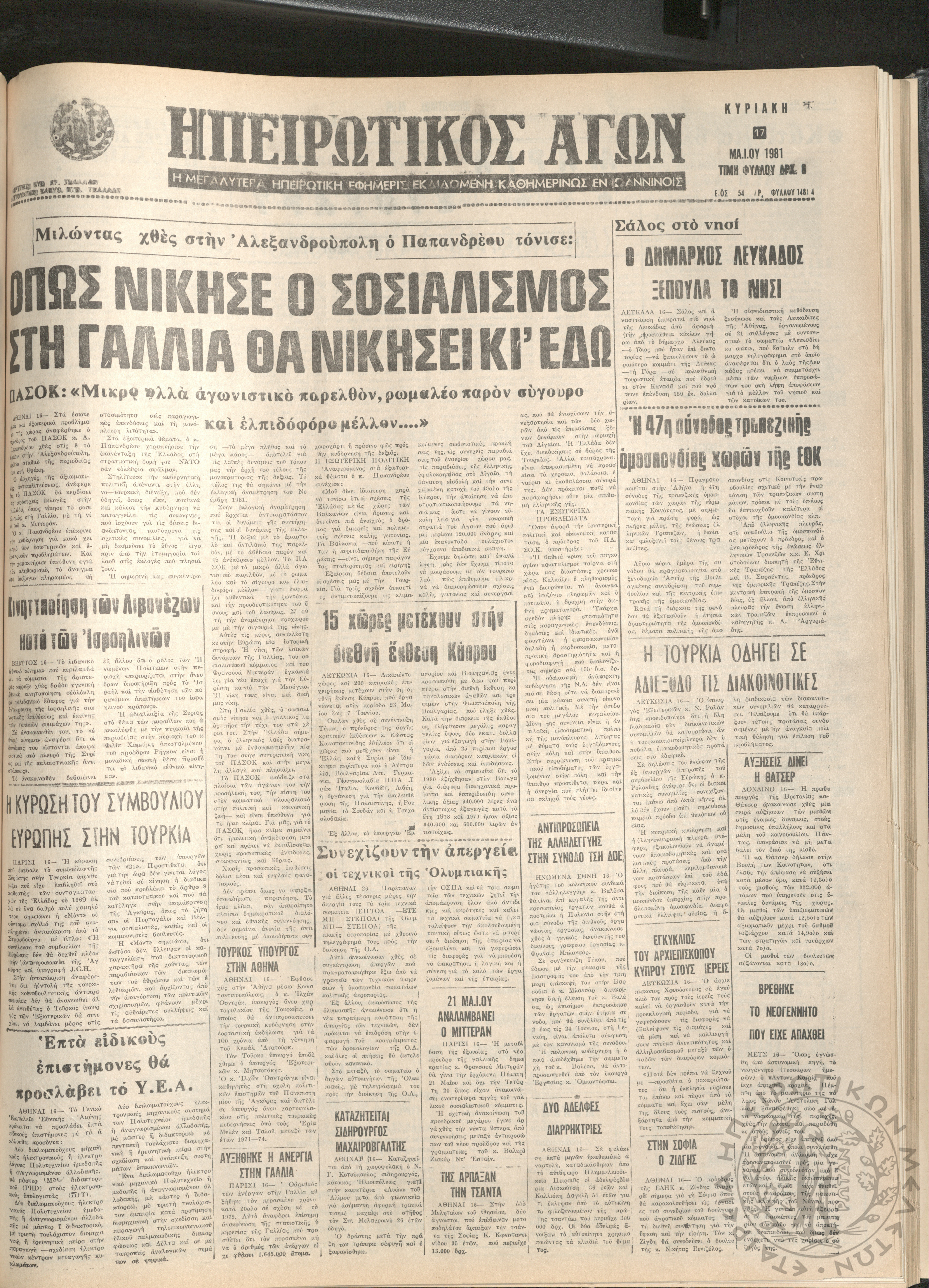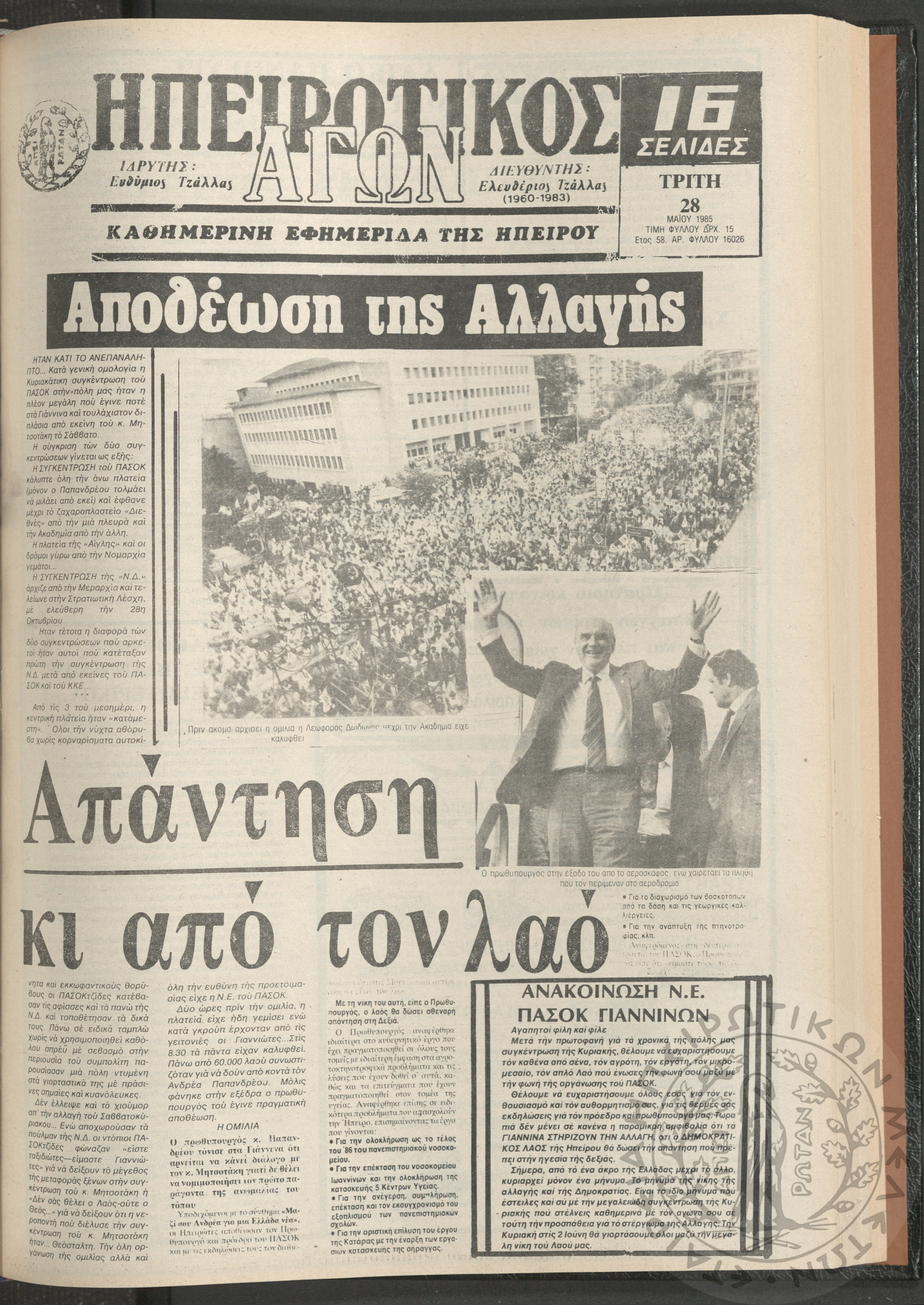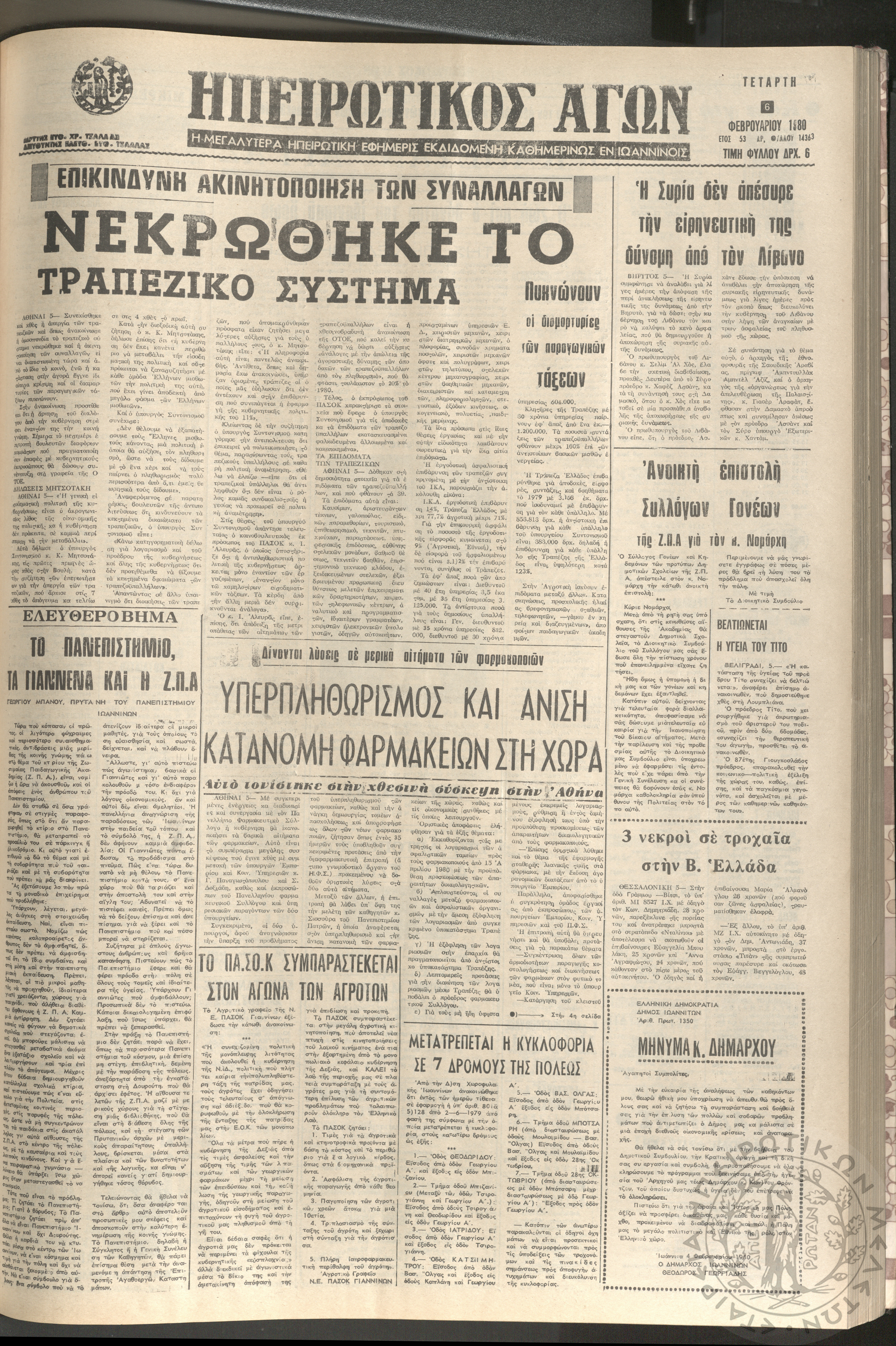Ηπειρωτικός Αγών: η μεγαλυτέρα Ηπειρωτική εφημερίς εκδιδόμενη καθημερινώς εν Ιωαννίνοις, 1980, φ. 14366Έτος 53, φ. 14366...