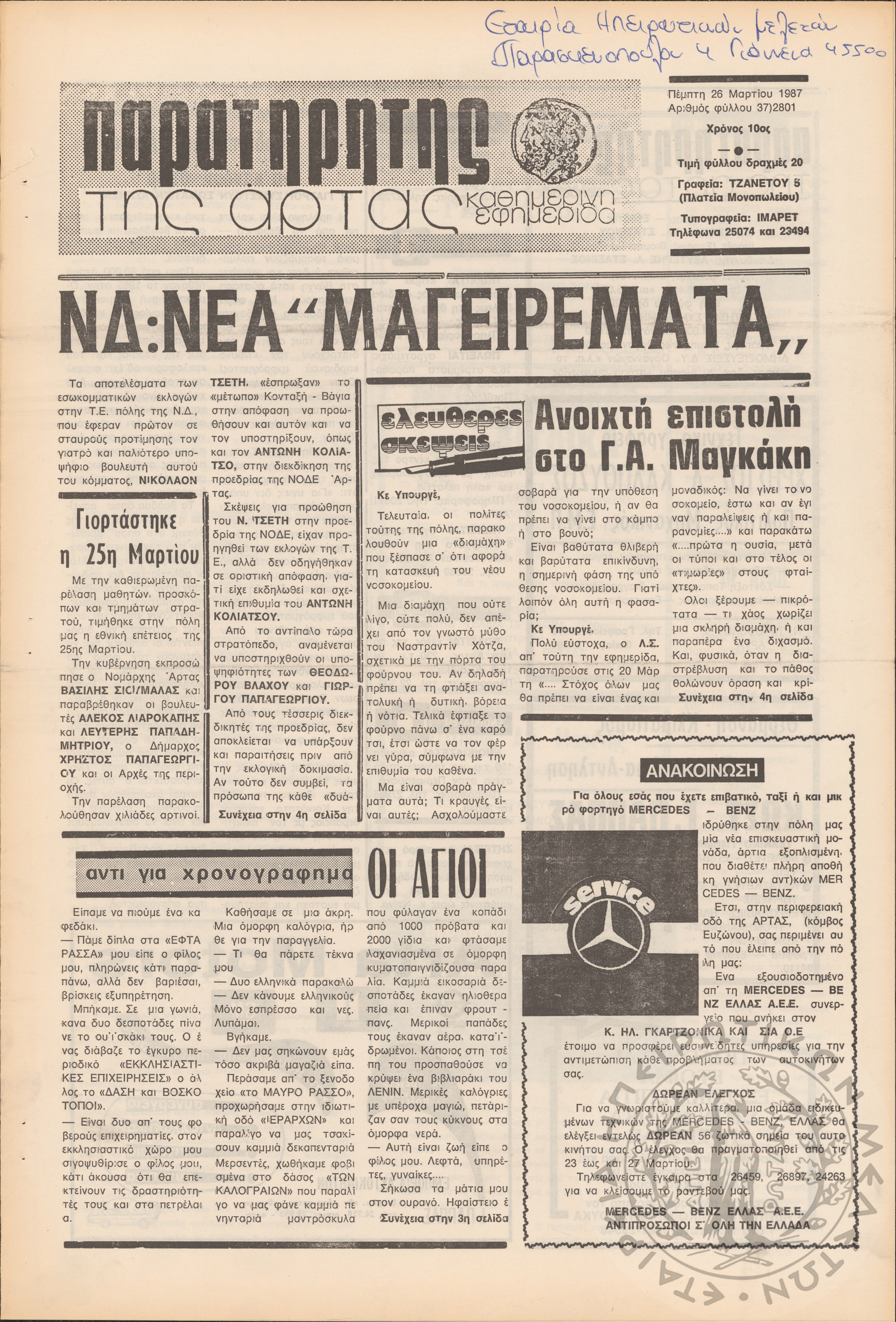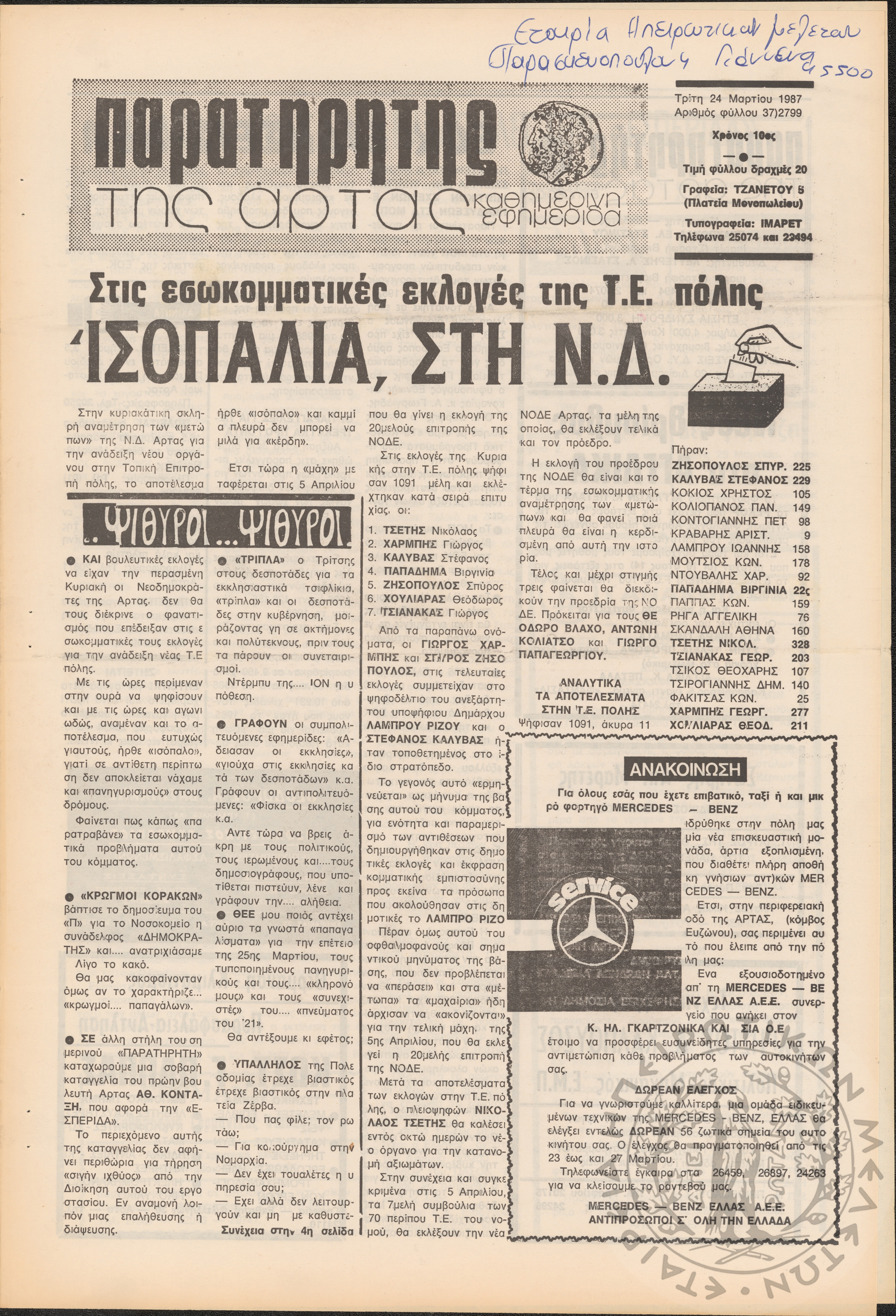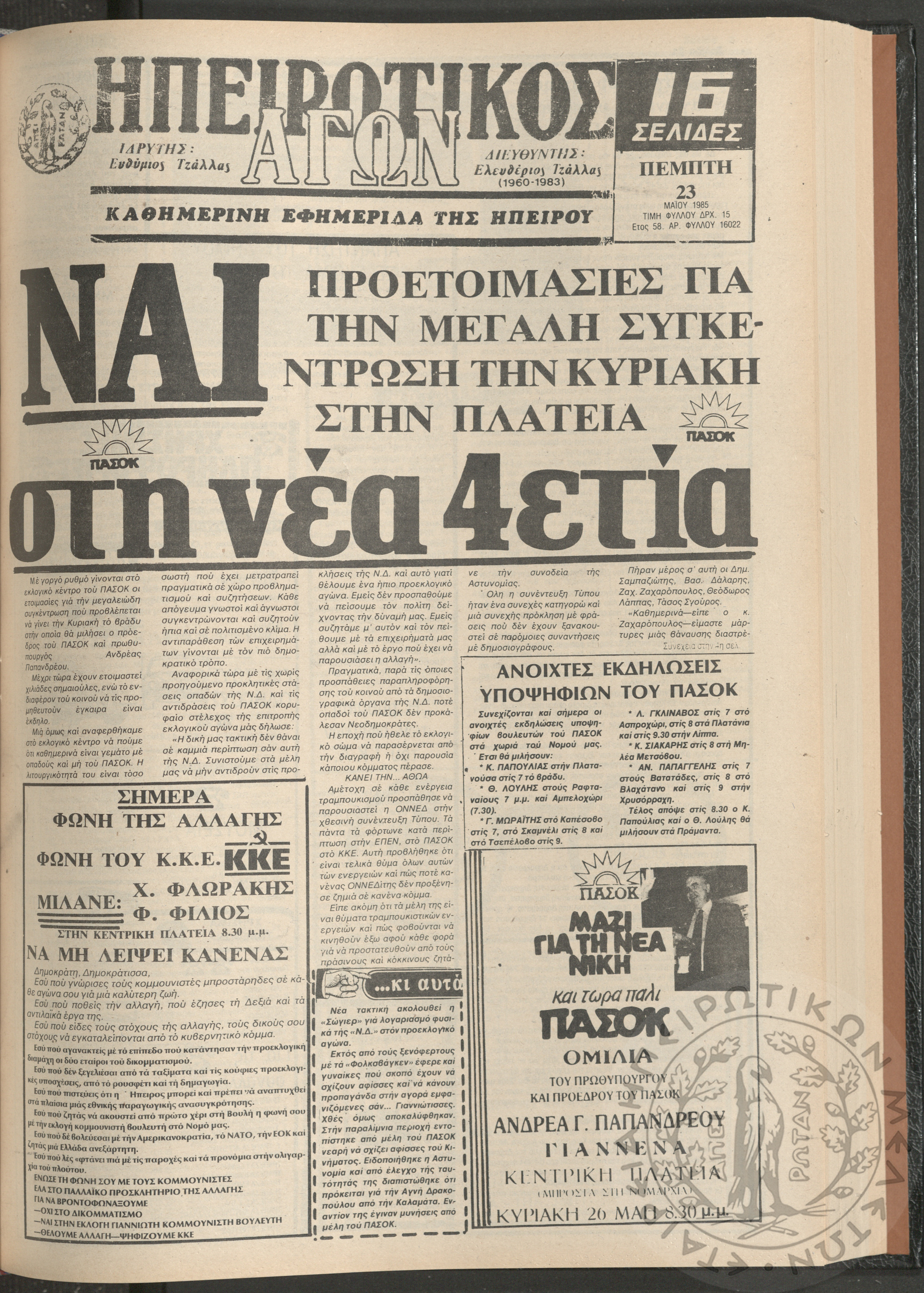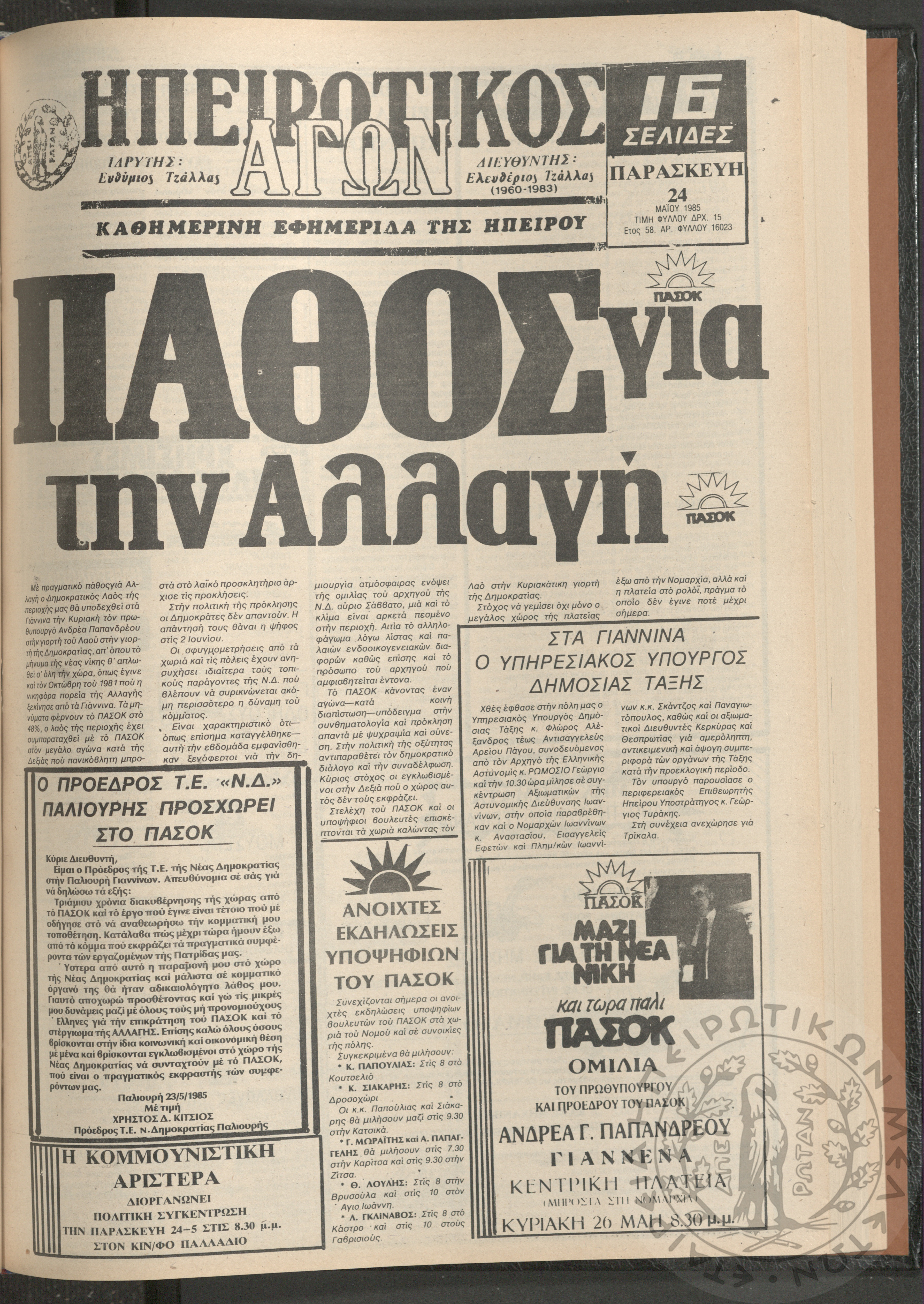 Ηπειρωτικός Αγών: η μεγαλυτέρα Ηπειρωτική εφημερίς εκδιδόμενη καθημερινώς εν Ιωαννίνοις, 1980, φ. 14366Έτος 53, φ. 14366...
