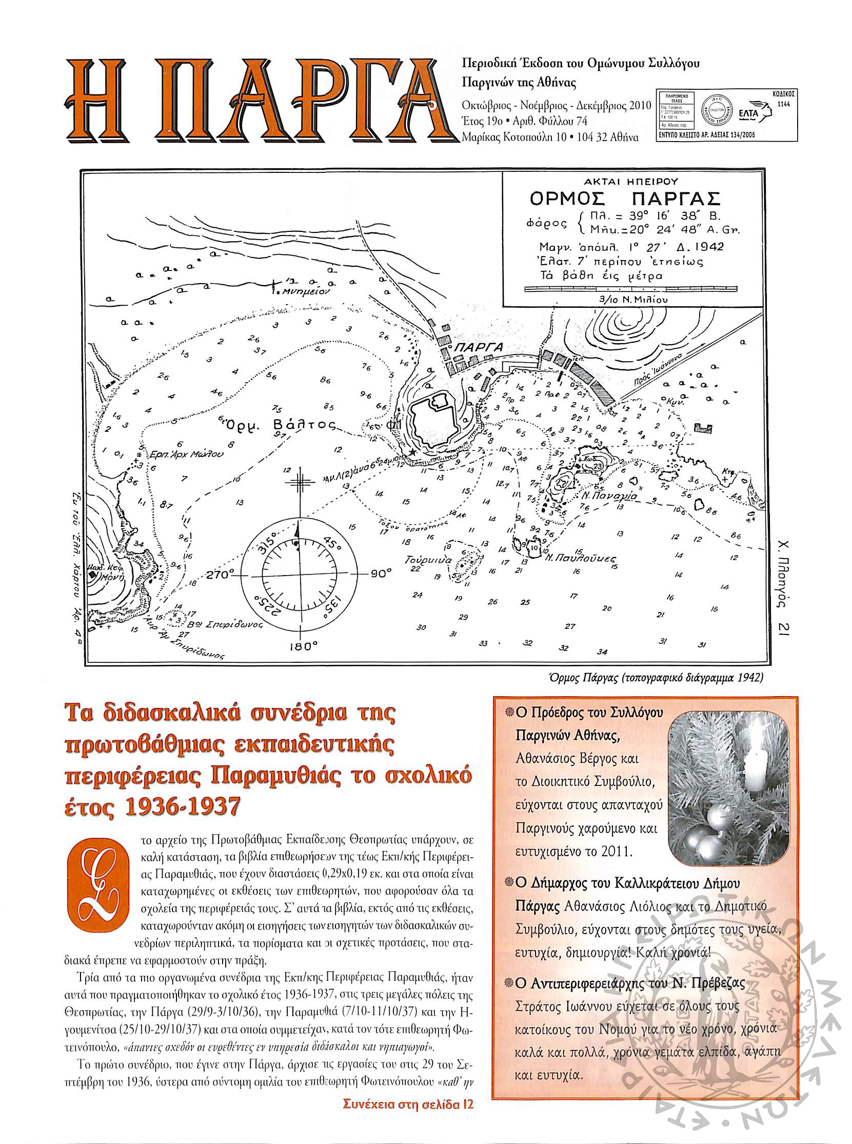Η Πάργα: περιοδική έκδοση του ομώνυμου Συλλόγου Παργινών της Αθήνας, 2010, φ. 74Έτος 19ο, αρ. φ. 74...
