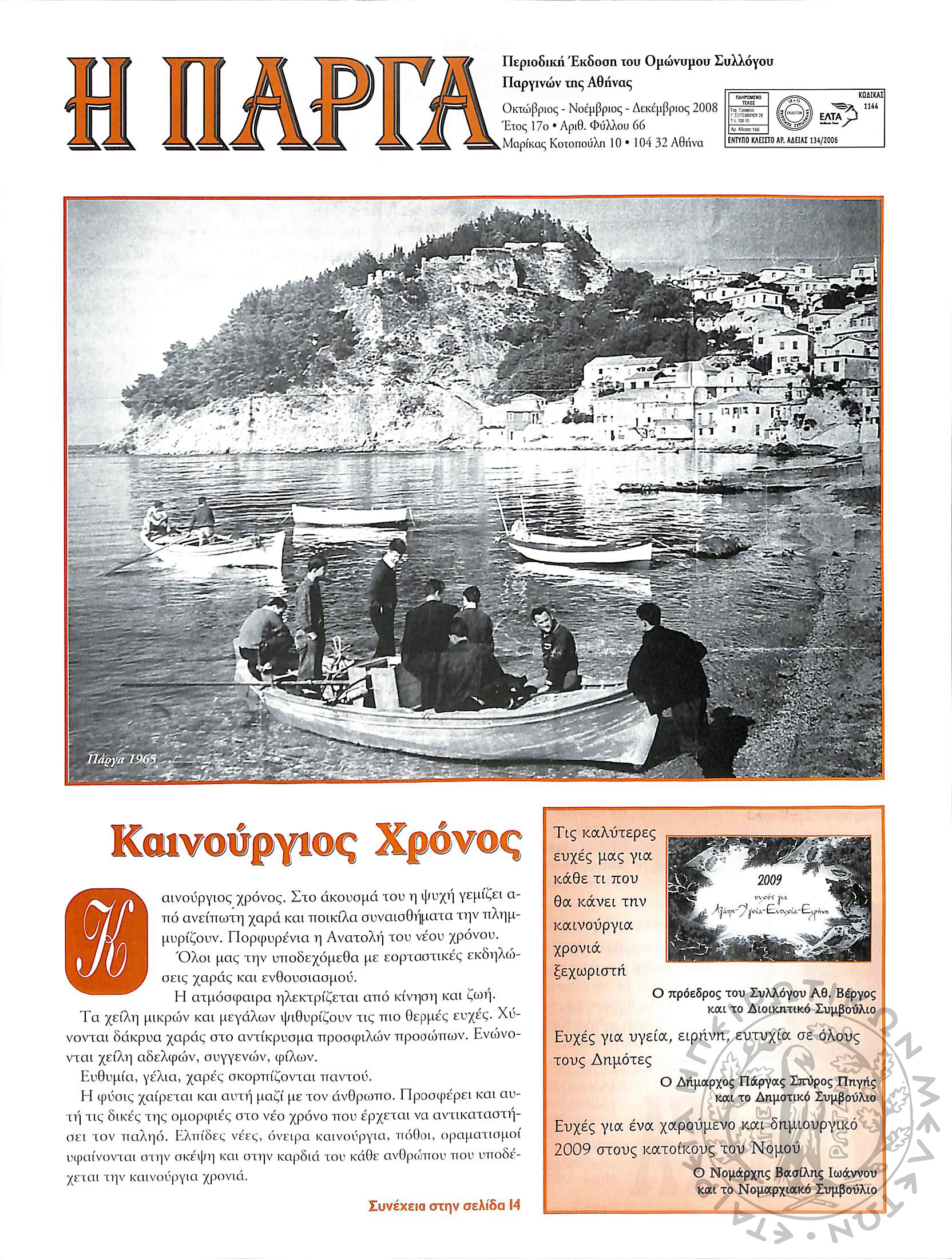 Η Πάργα: περιοδική έκδοση του ομώνυμου Συλλόγου Παργινών της Αθήνας, 2008, φ. 66Έτος 17ο, αρ. φ. 66...