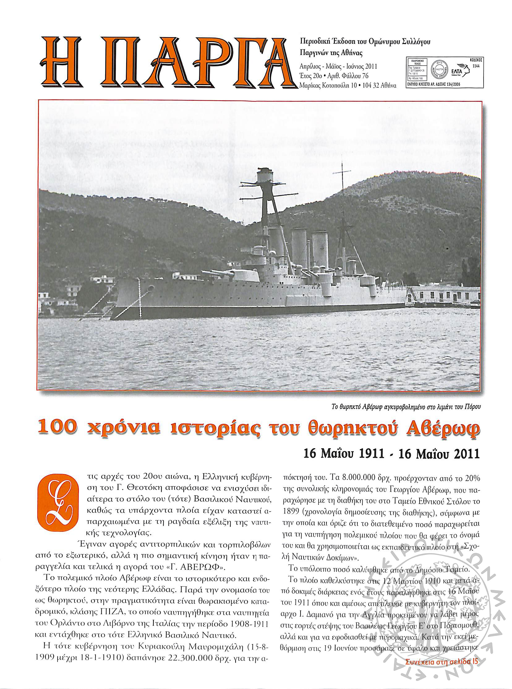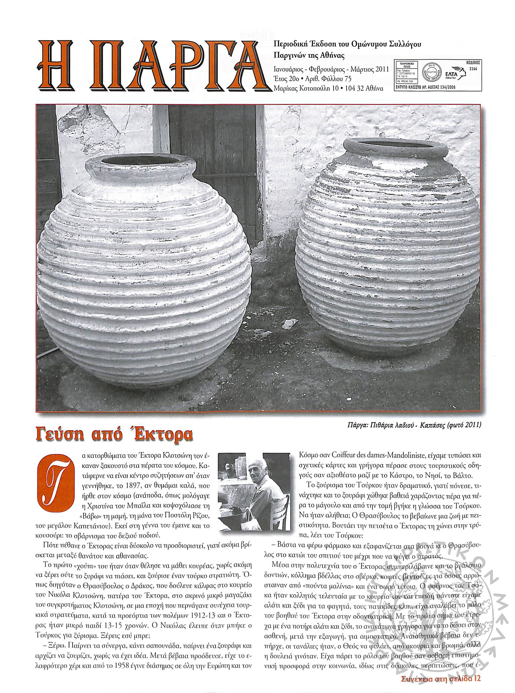 Η Πάργα: περιοδική έκδοση του ομώνυμου Συλλόγου Παργινών της Αθήνας, 2011, φ. 76Έτος 20ο, αρ. φ. 75...