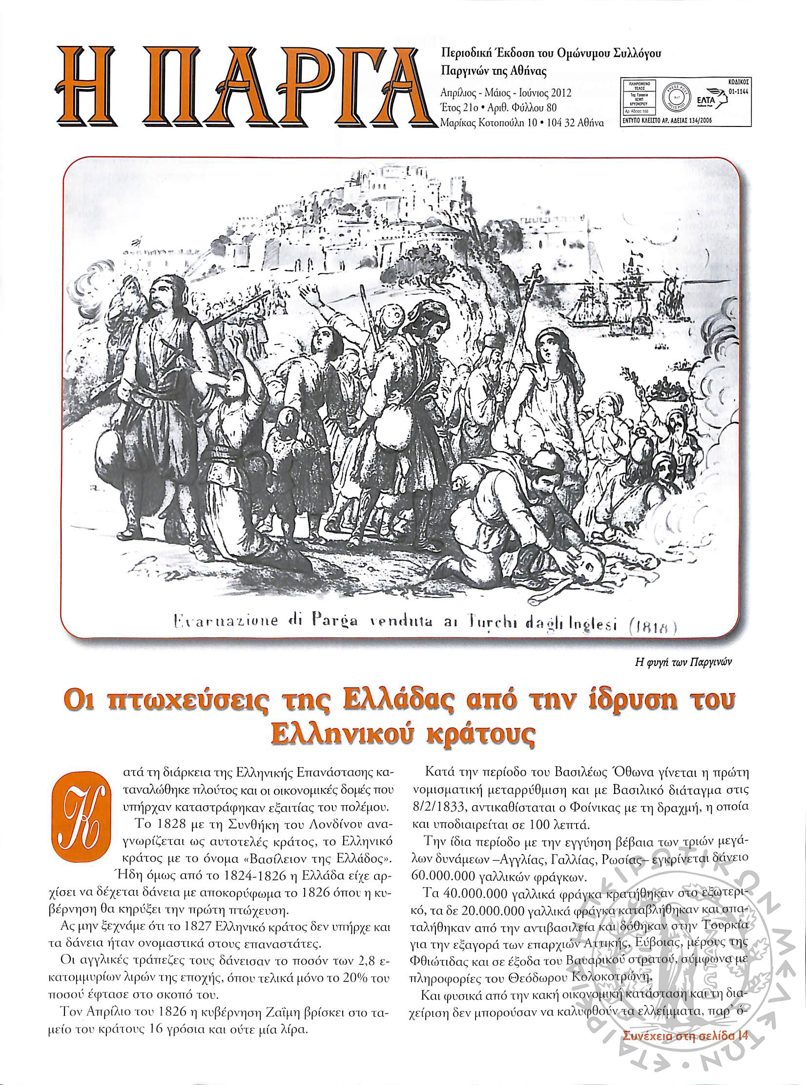 Η Πάργα: περιοδική έκδοση του ομώνυμου Συλλόγου Παργινών της Αθήνας, 2012, φ. 80Έτος 21ο, αρ. φ. 80...