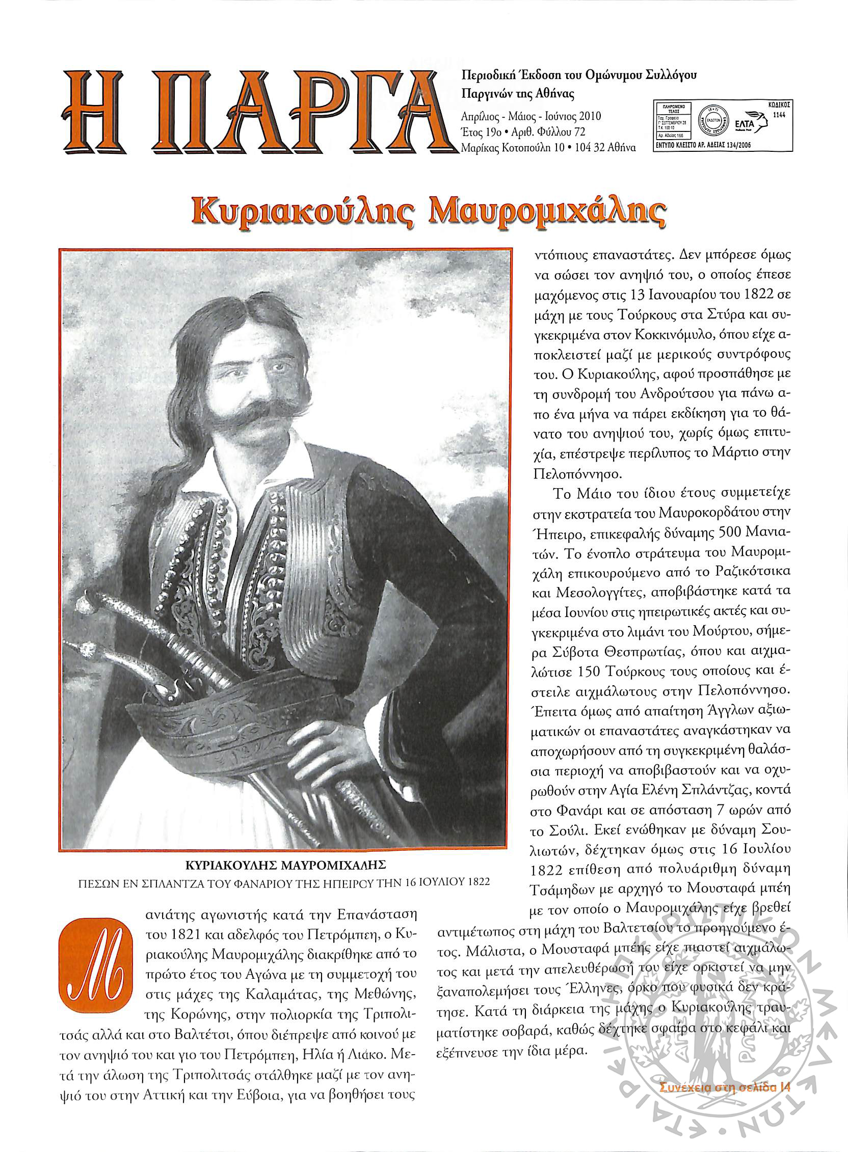 Η Πάργα: περιοδική έκδοση του ομώνυμου Συλλόγου Παργινών της Αθήνας, 2010, φ. 72Έτος 19ο, αρ. φ. 72...