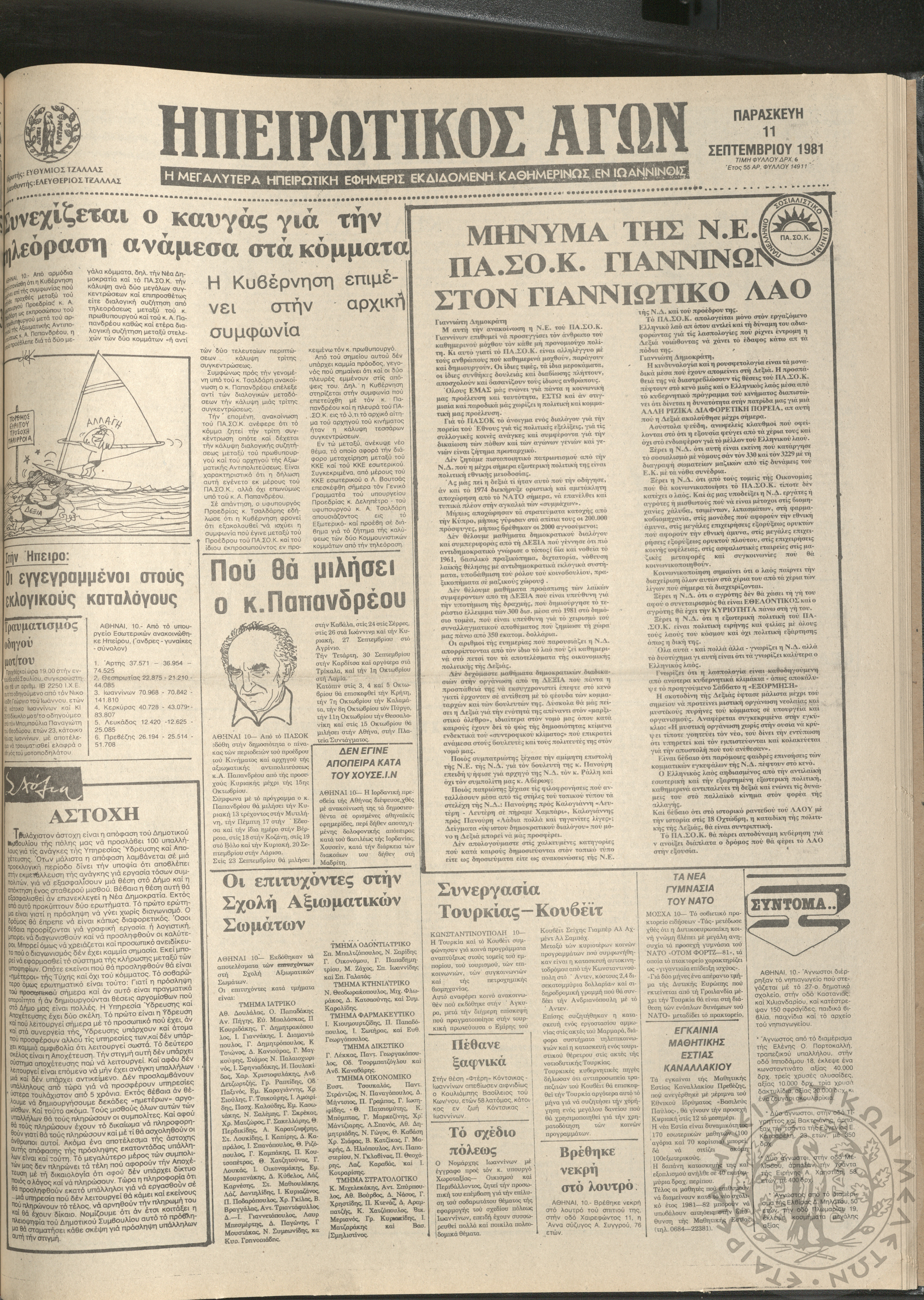 Ηπειρωτικός Αγών: η μεγαλυτέρα Ηπειρωτική εφημερίς εκδιδόμενη καθημερινώς εν Ιωαννίνοις, 1981, φ. 14911Έτος 55, φ. 14911...