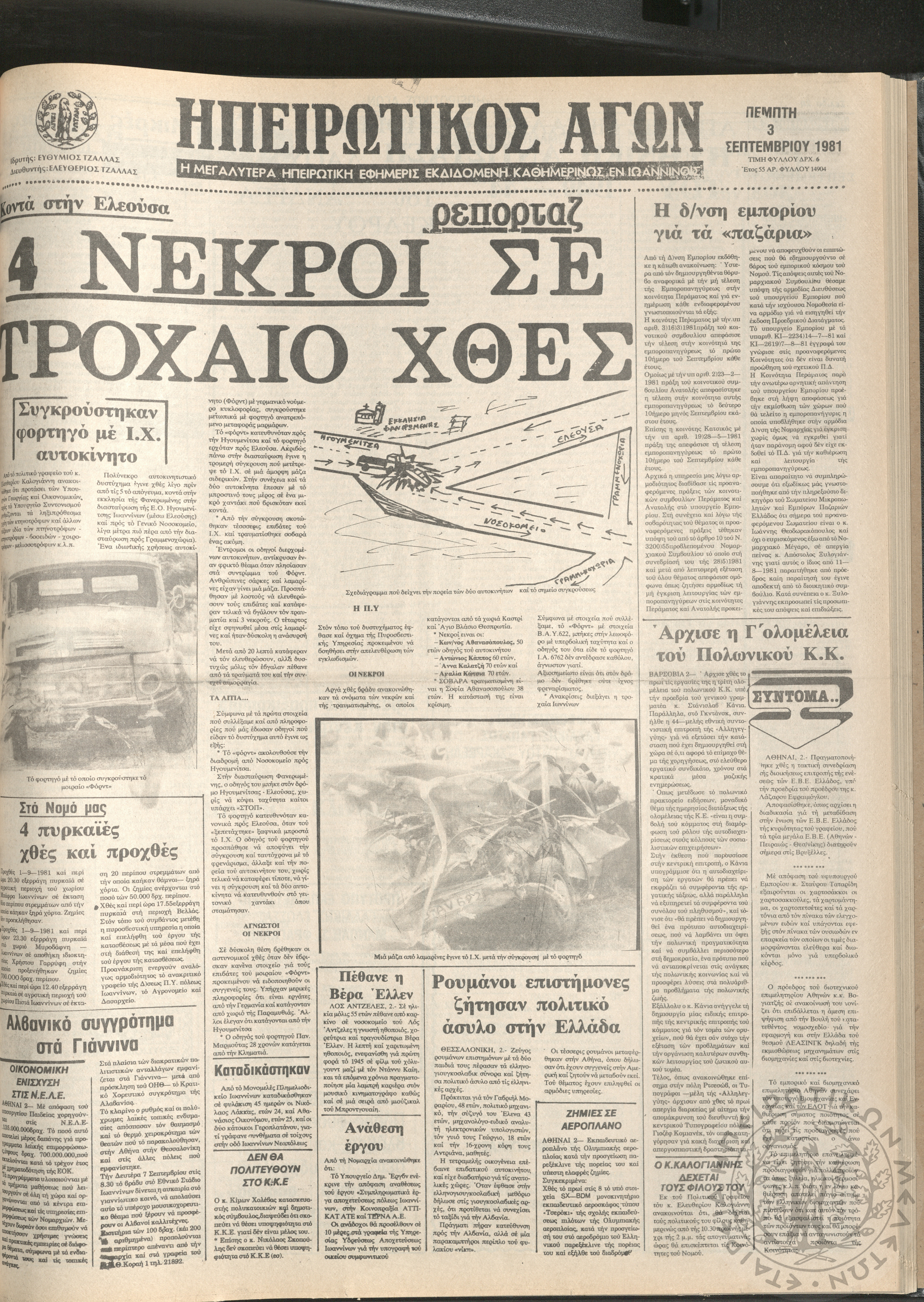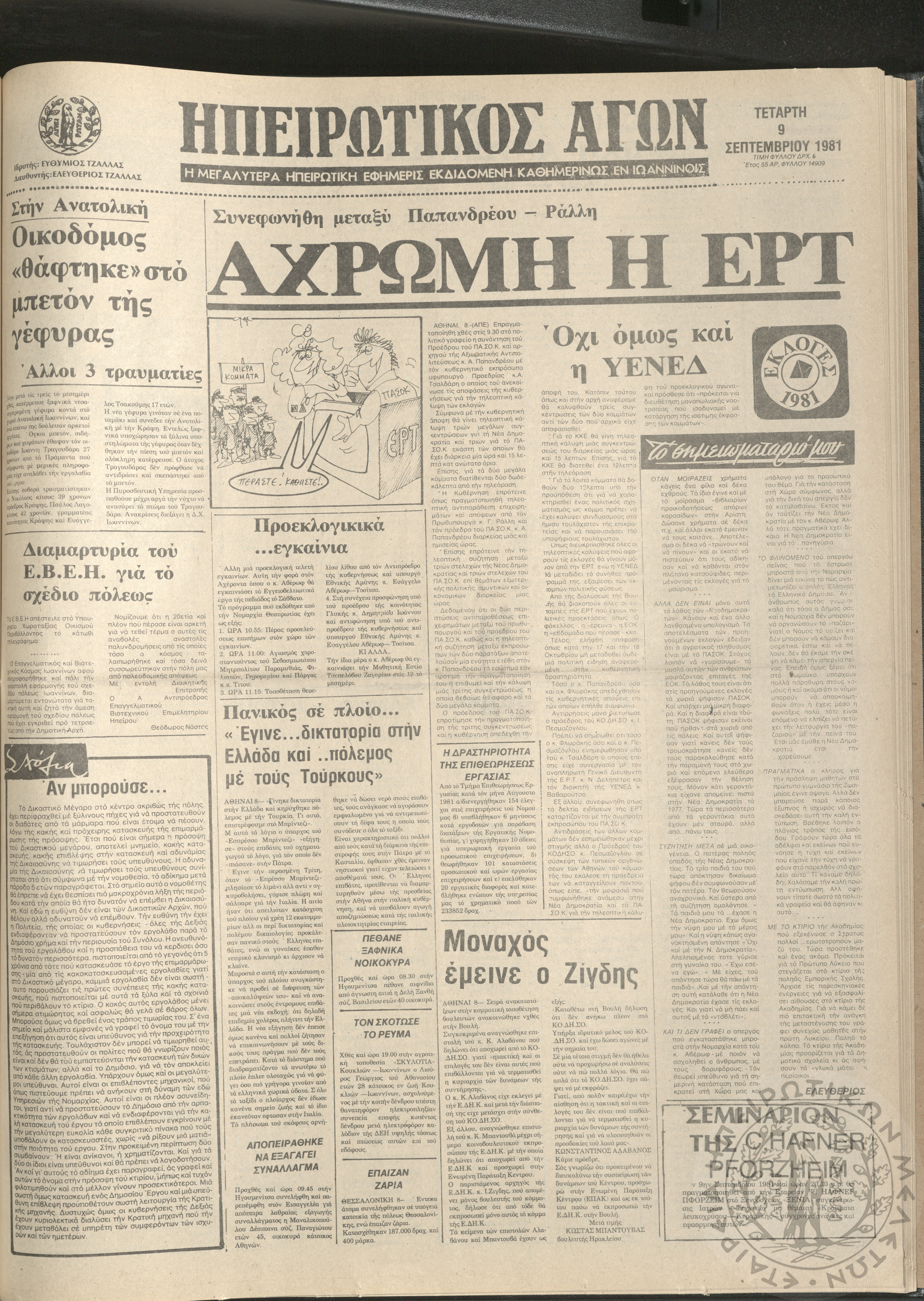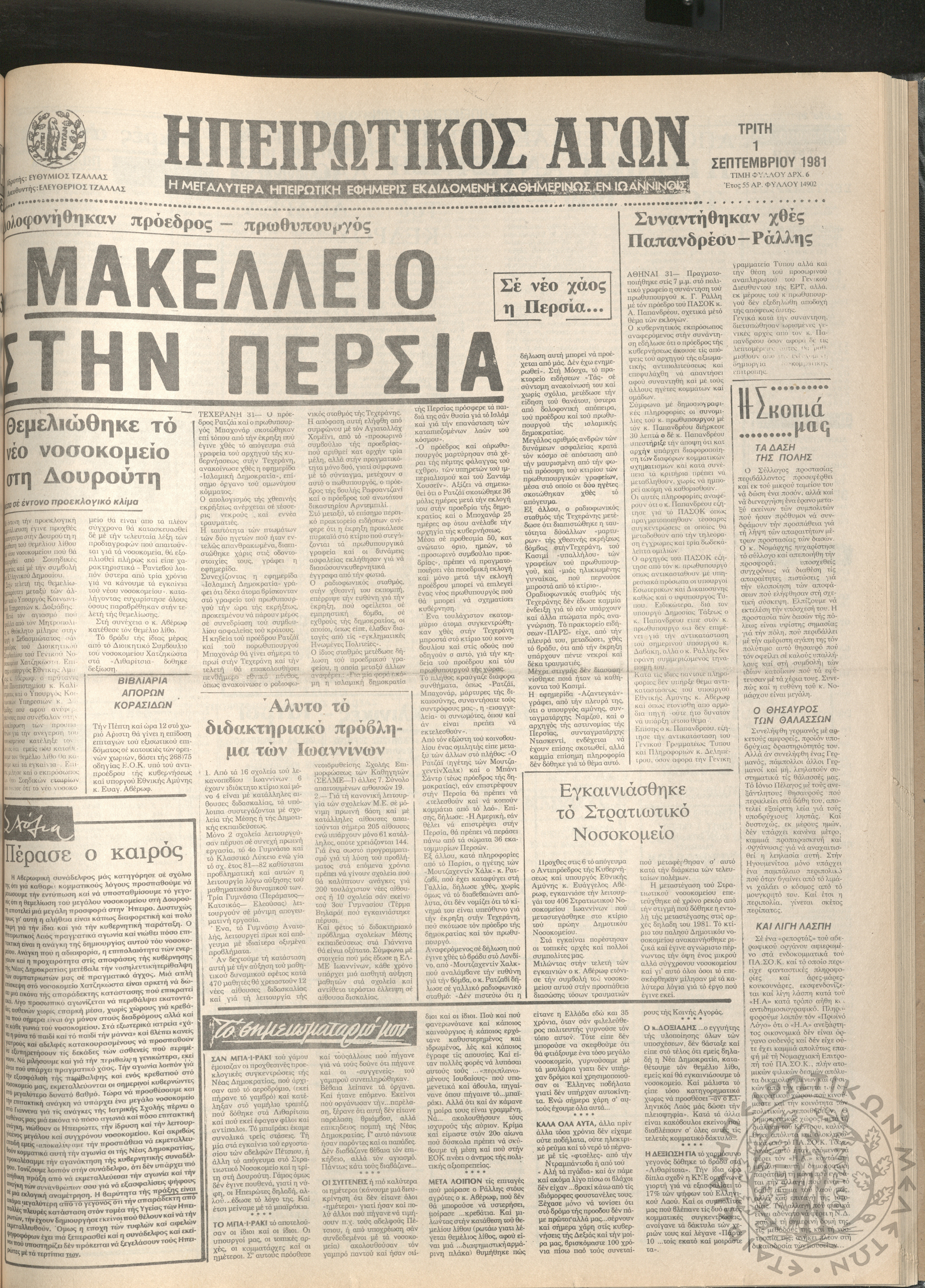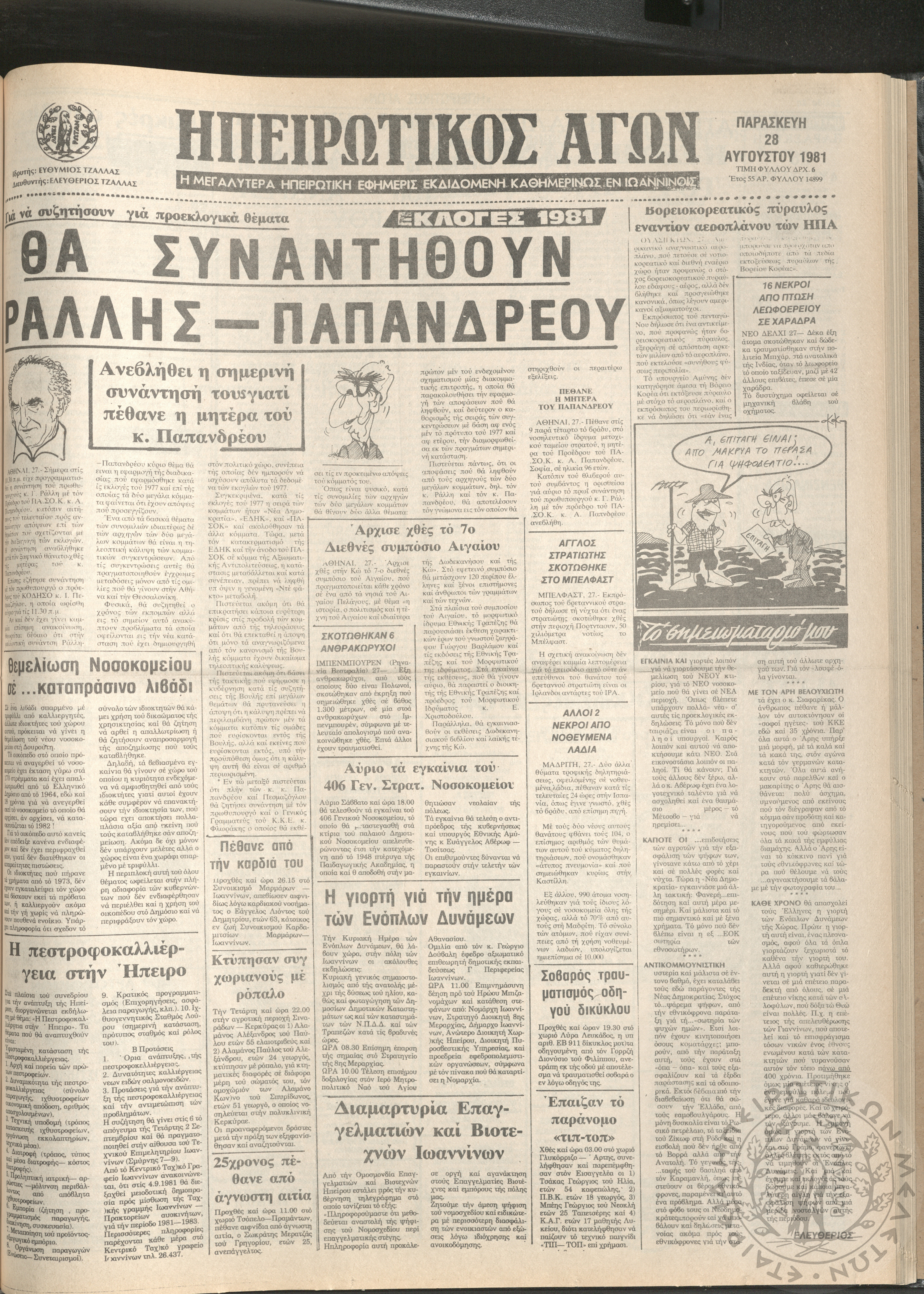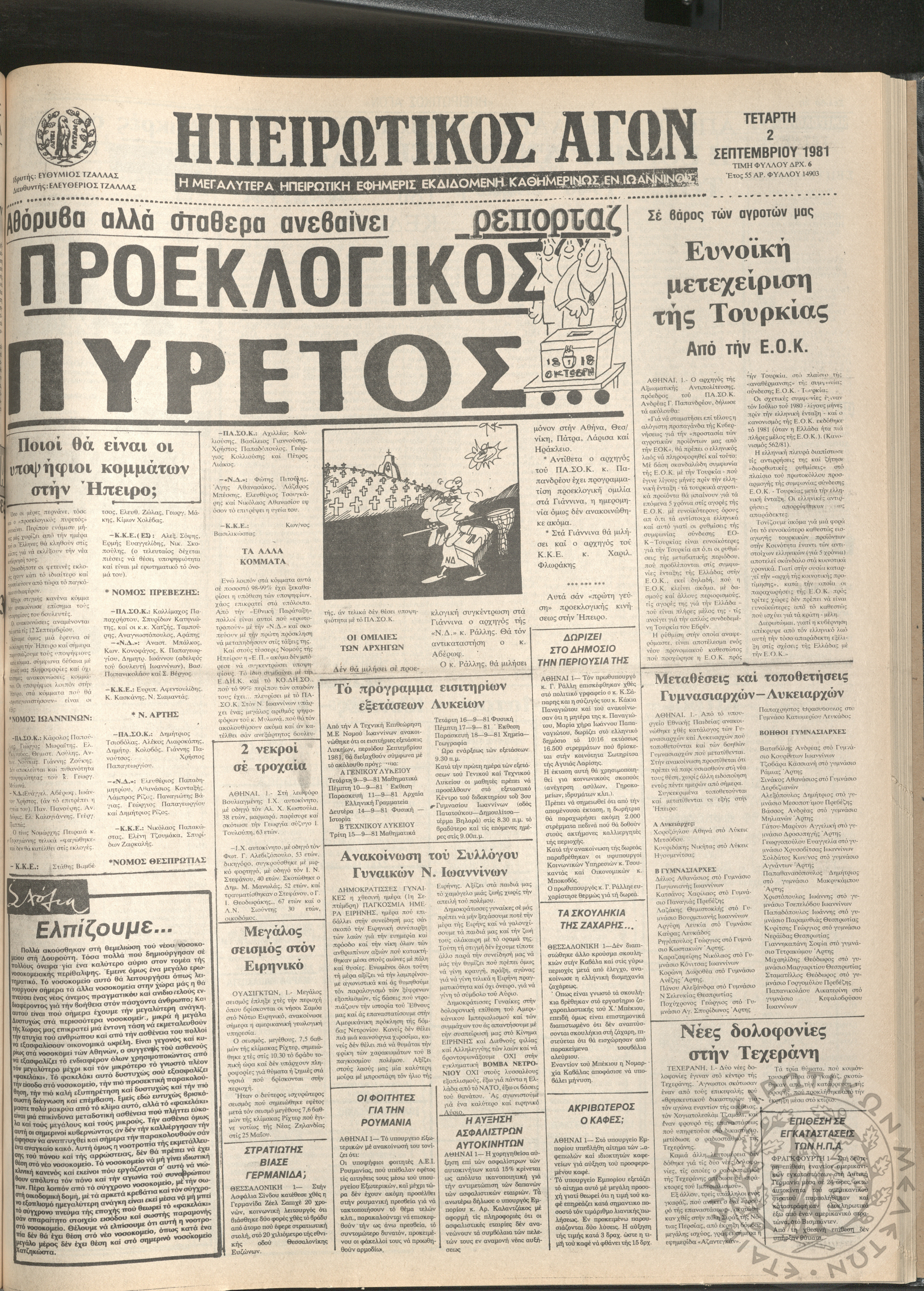 Ηπειρωτικός Αγών: η μεγαλυτέρα Ηπειρωτική εφημερίς εκδιδόμενη καθημερινώς εν Ιωαννίνοις, 1981, φ. 14901Έτος 55, φ. 14901...