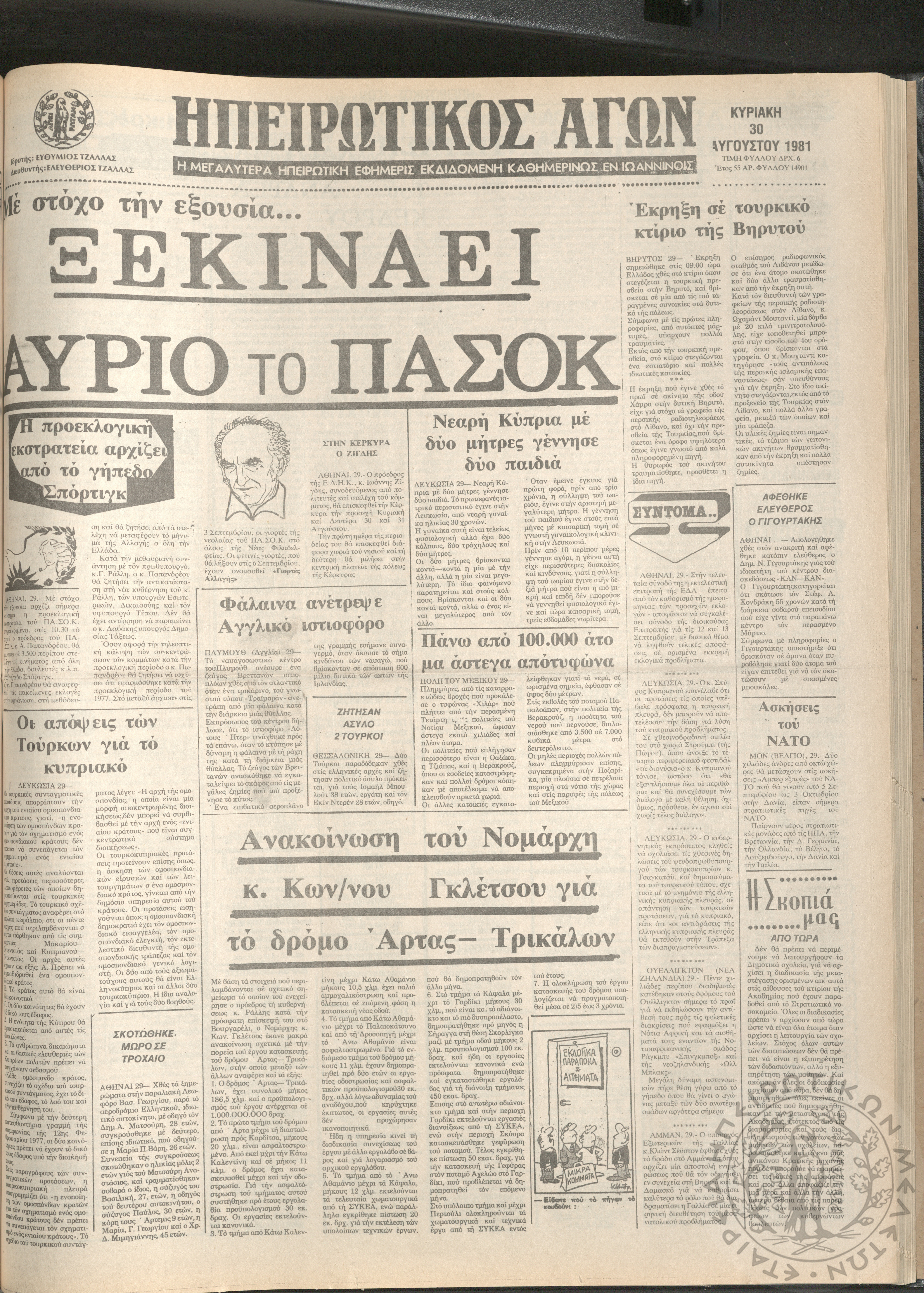 Ηπειρωτικός Αγών: η μεγαλυτέρα Ηπειρωτική εφημερίς εκδιδόμενη καθημερινώς εν Ιωαννίνοις, 1981, φ. 14904Έτος 55, φ. 14904...