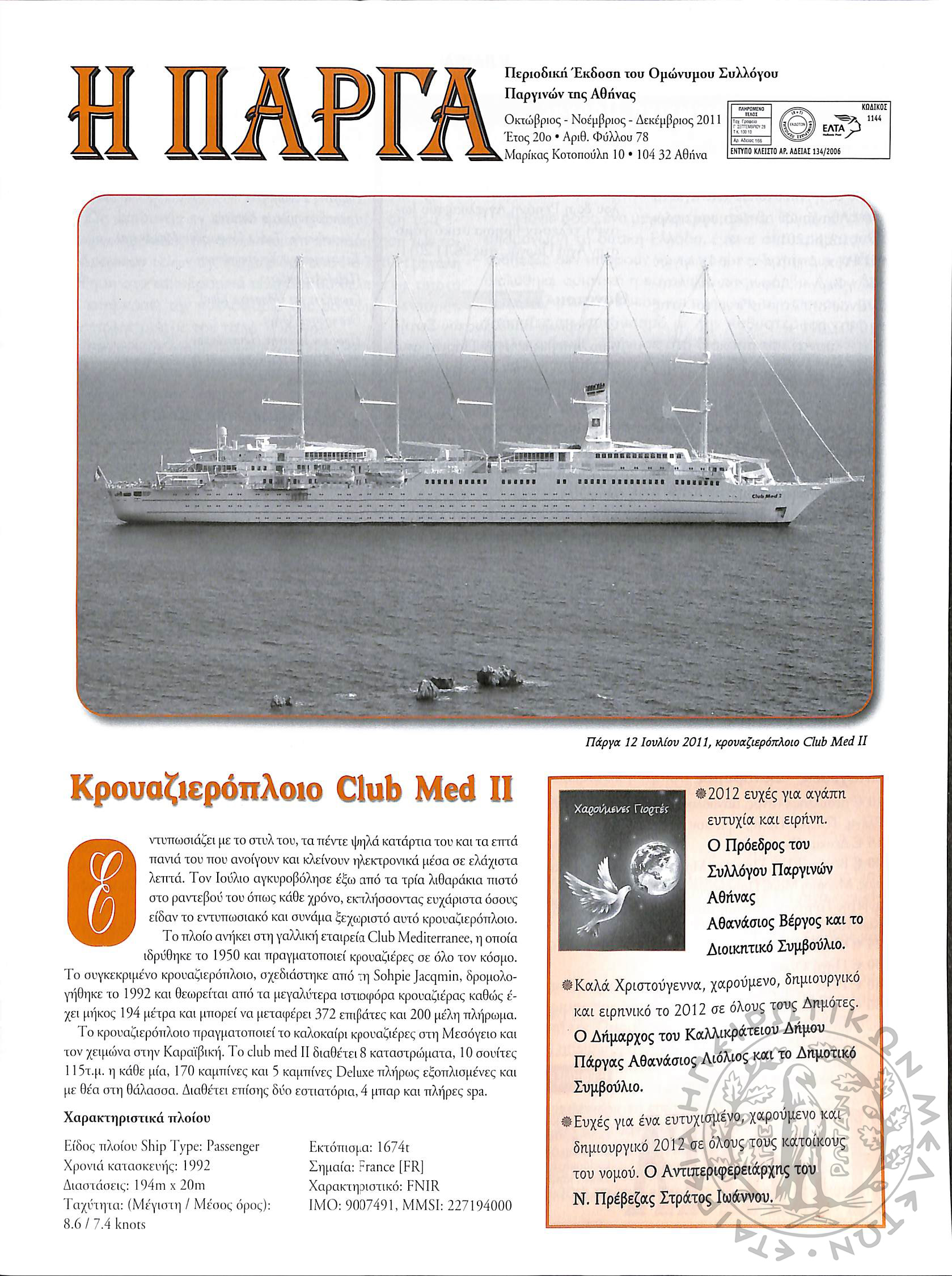 Η Πάργα: περιοδική έκδοση του ομώνυμου Συλλόγου Παργινών της Αθήνας, 2011, φ. 78Έτος 20ο, αρ. φ. 78...